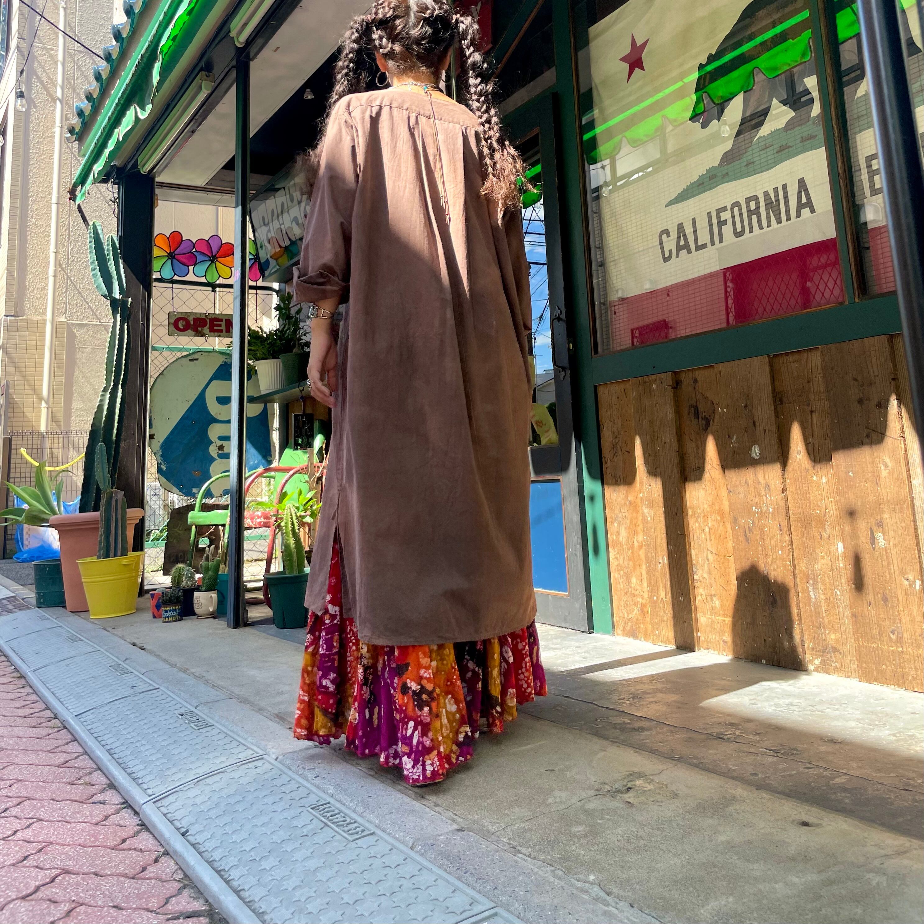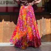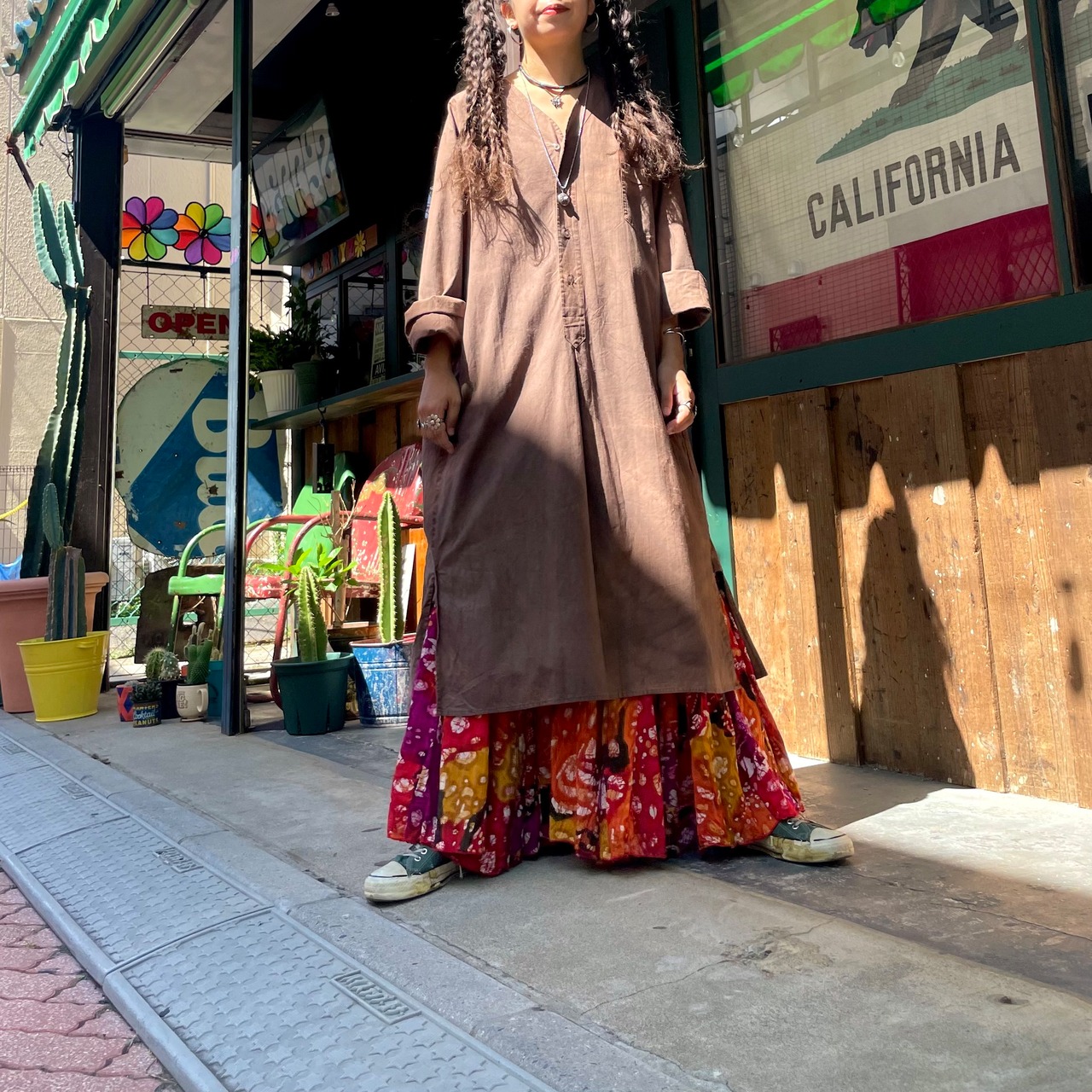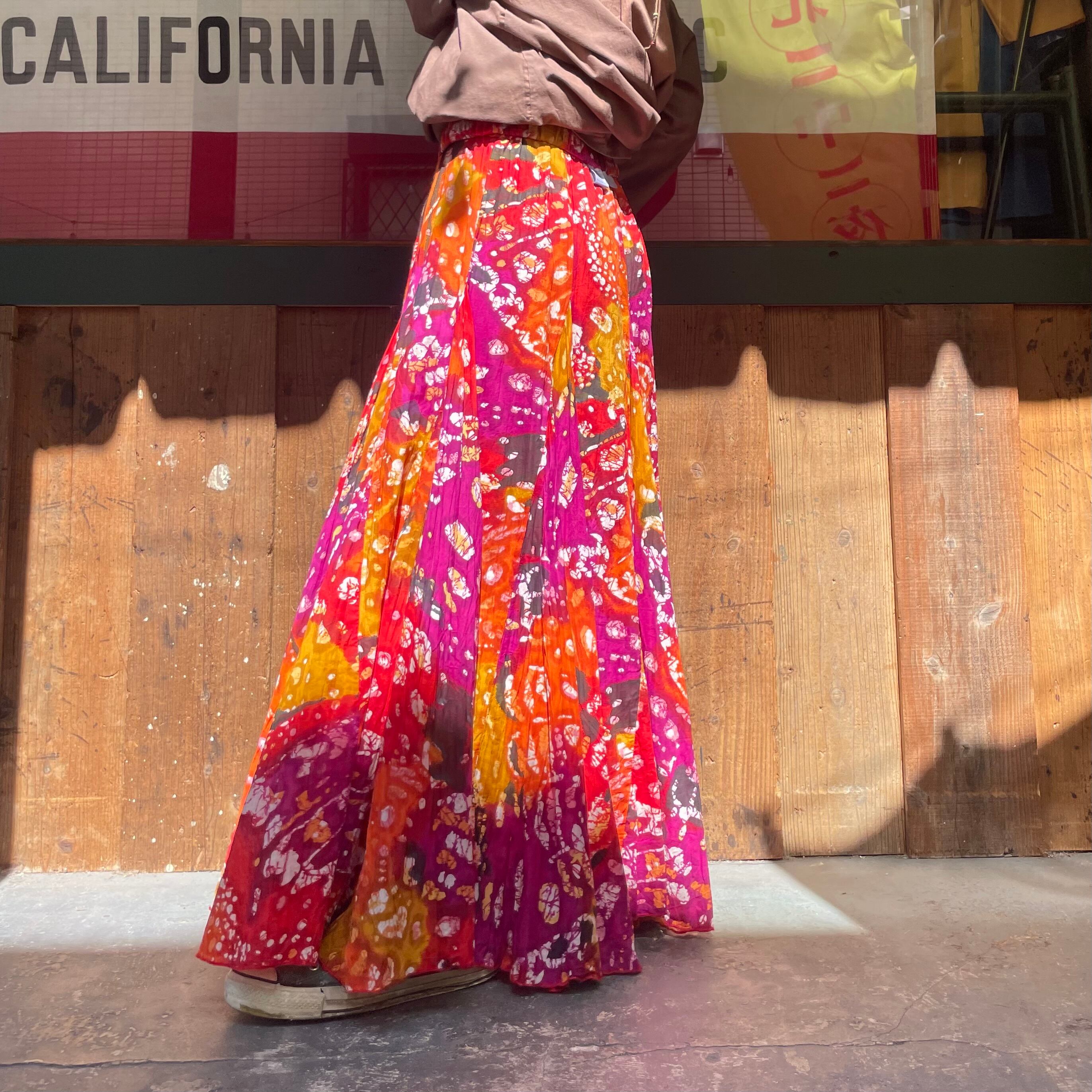 激しめな色味や柄なのに大人っぽい雰囲気がかわいいロングスカートです。