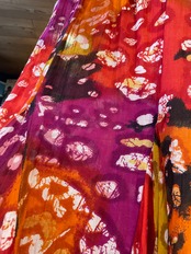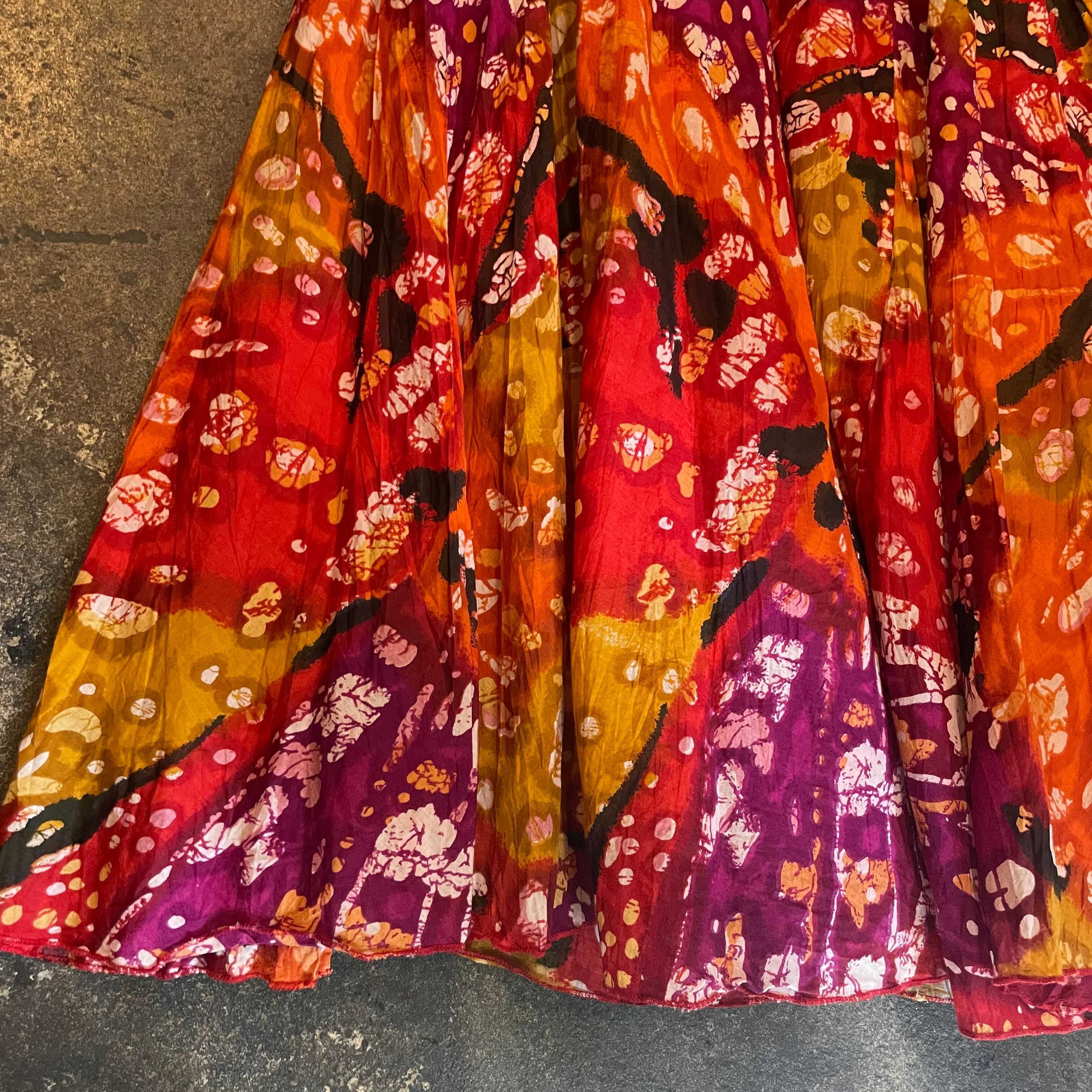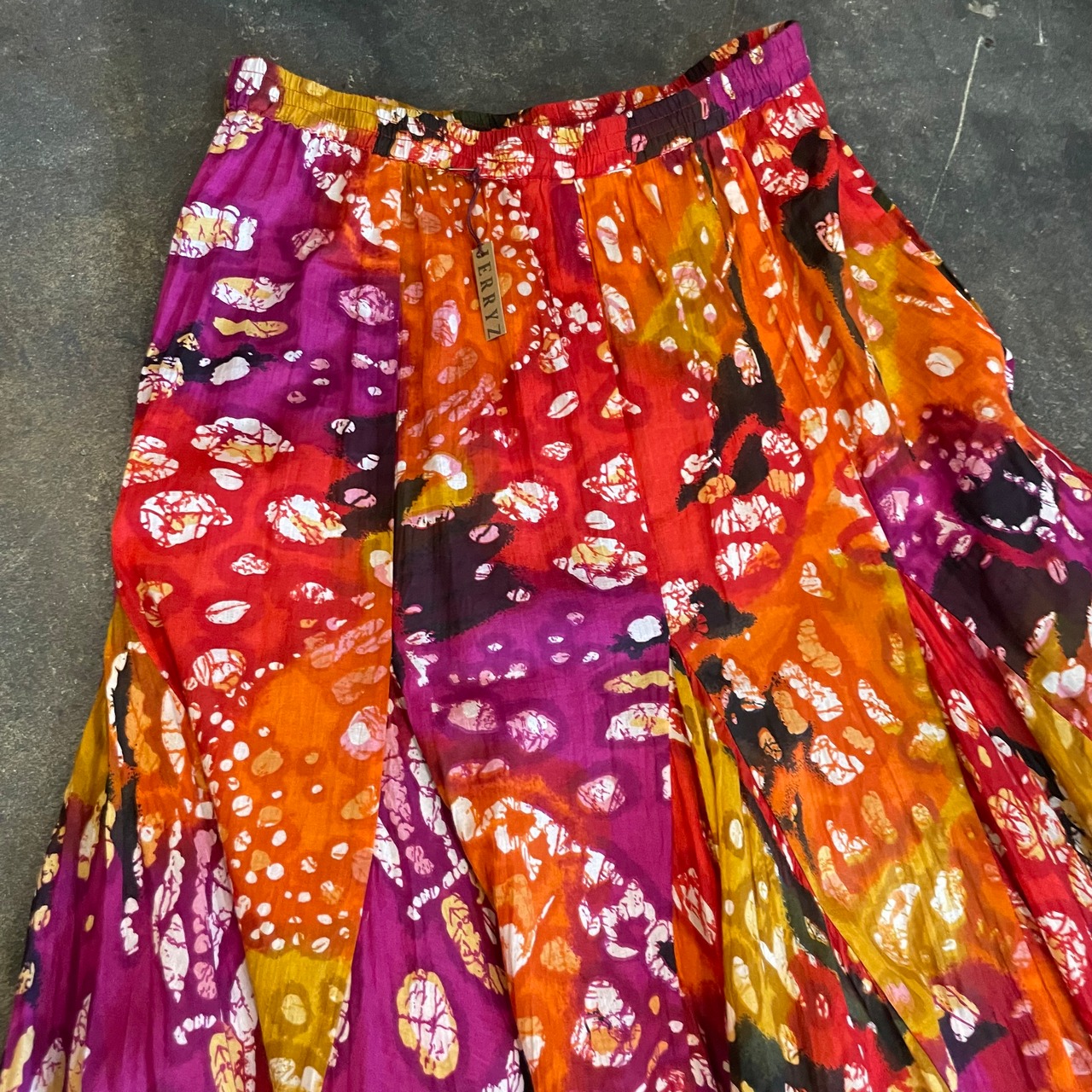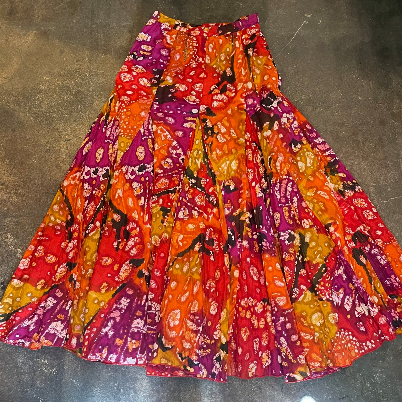 激しめな色味や柄なのに大人っぽい雰囲気がかわいいロングスカートです。