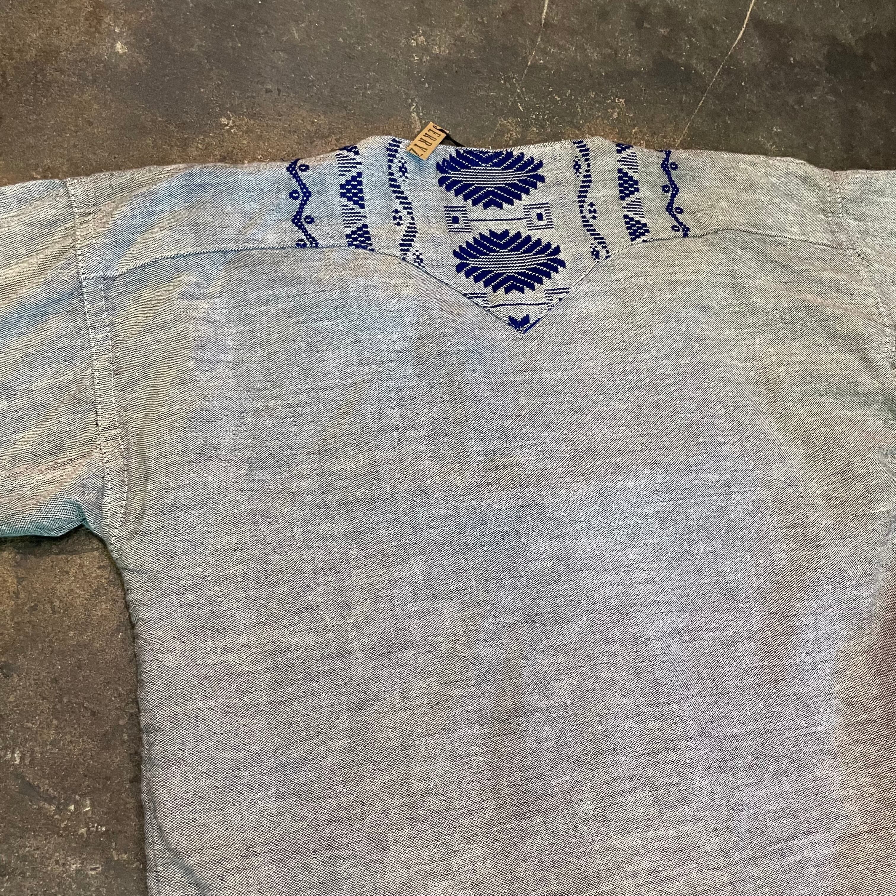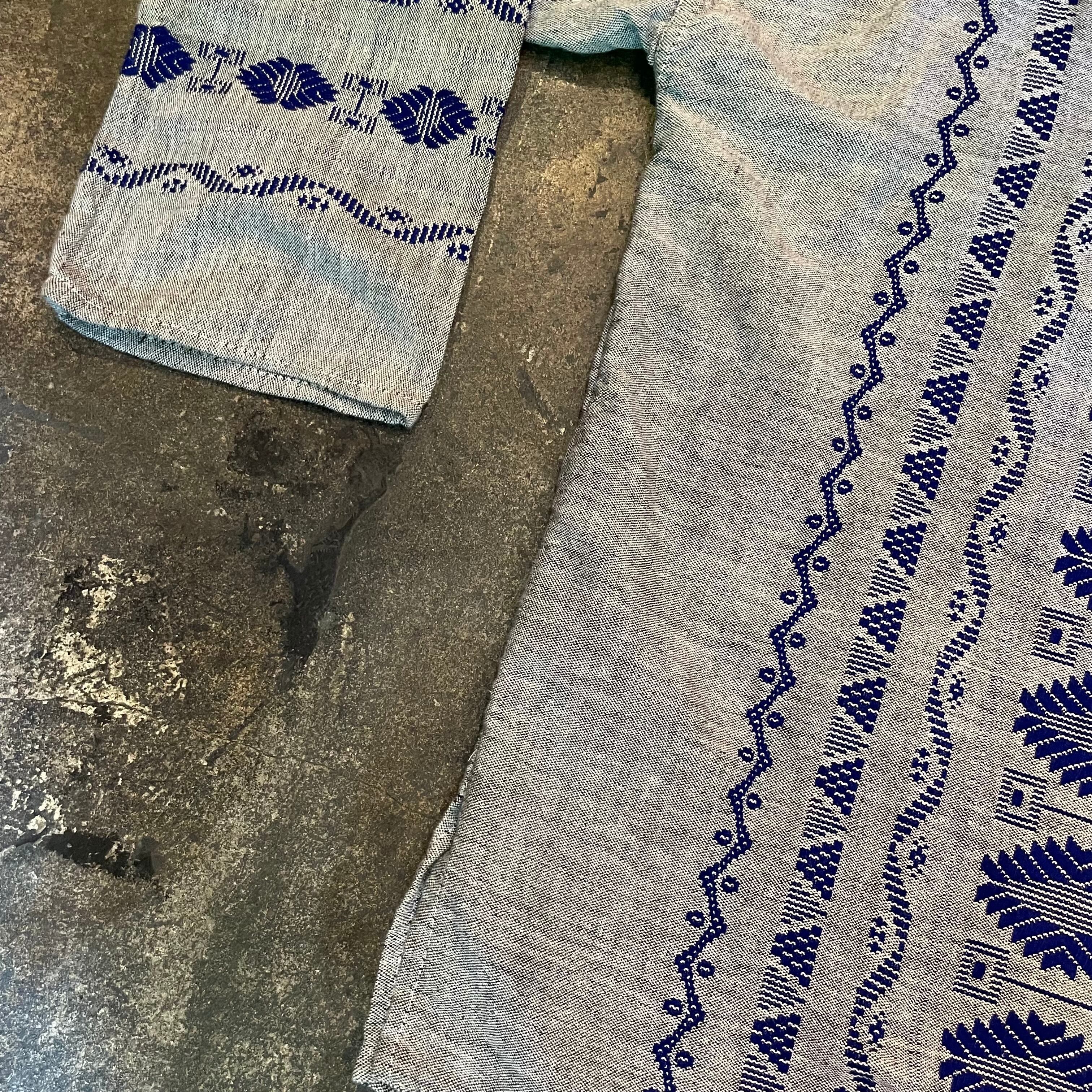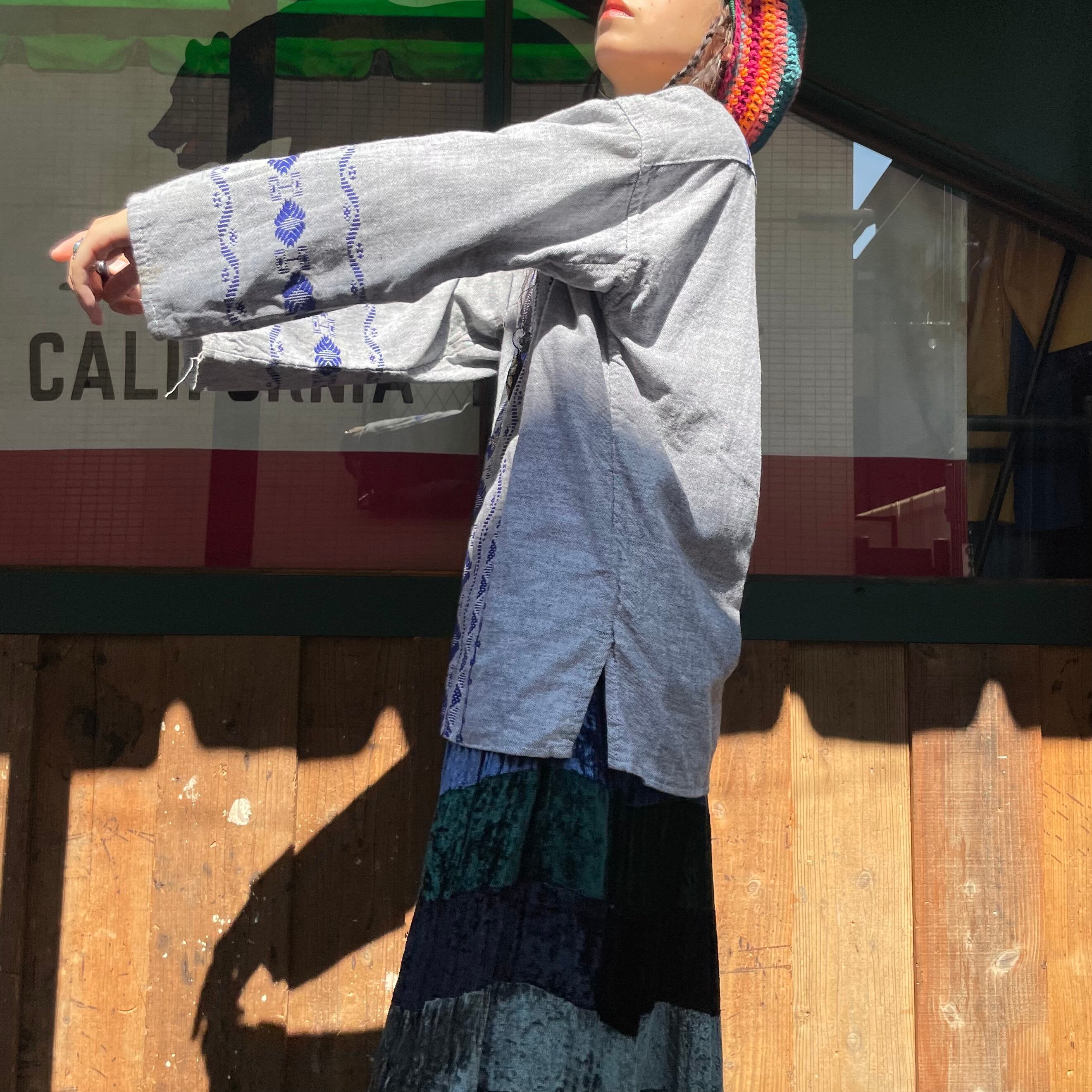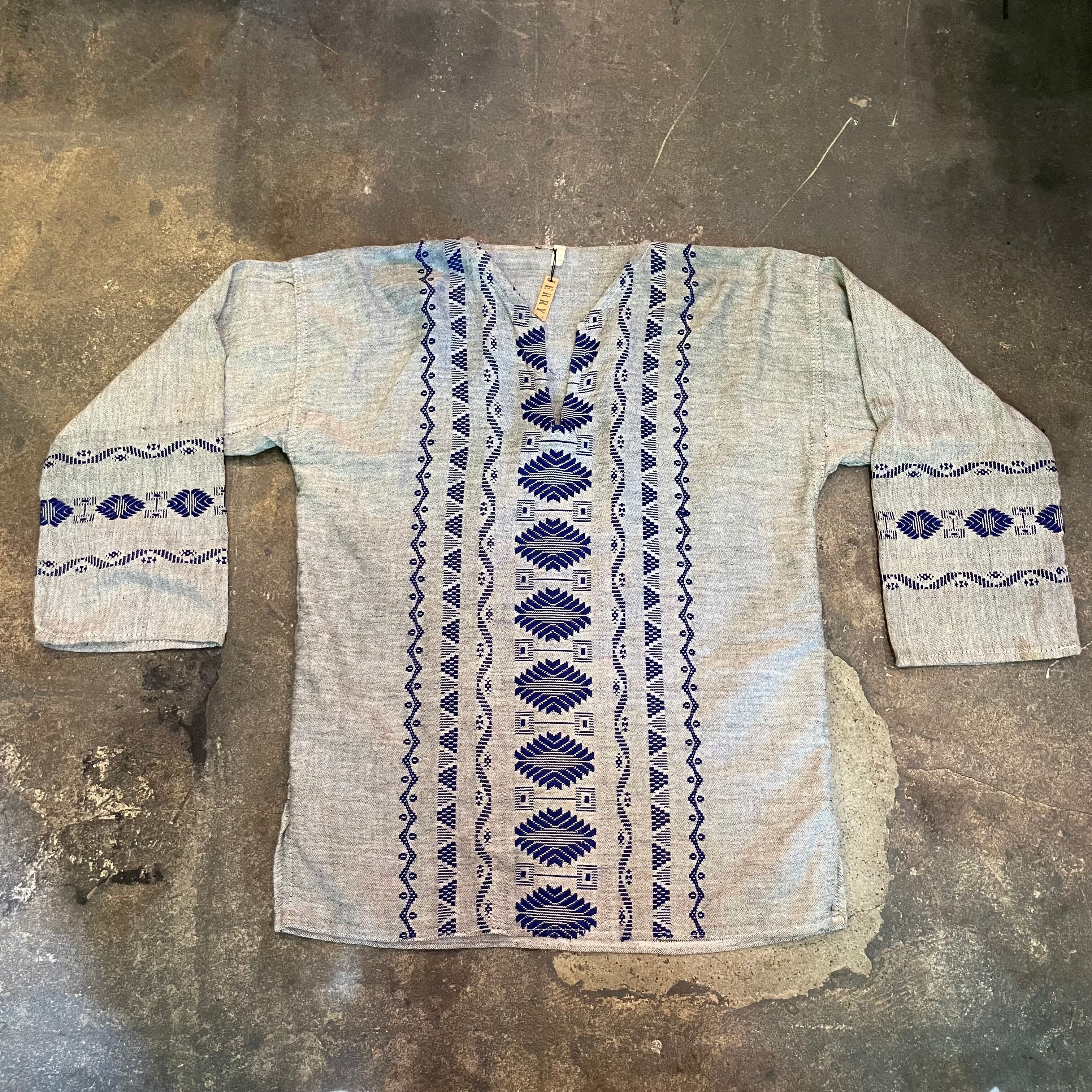 刺繍がかわいいグアテマラのメンズのシャツです。首にスリップがありプルオーバータイプで、袖は太め、サイドにスリットのボヘミアンなディテールがかわいいですね。