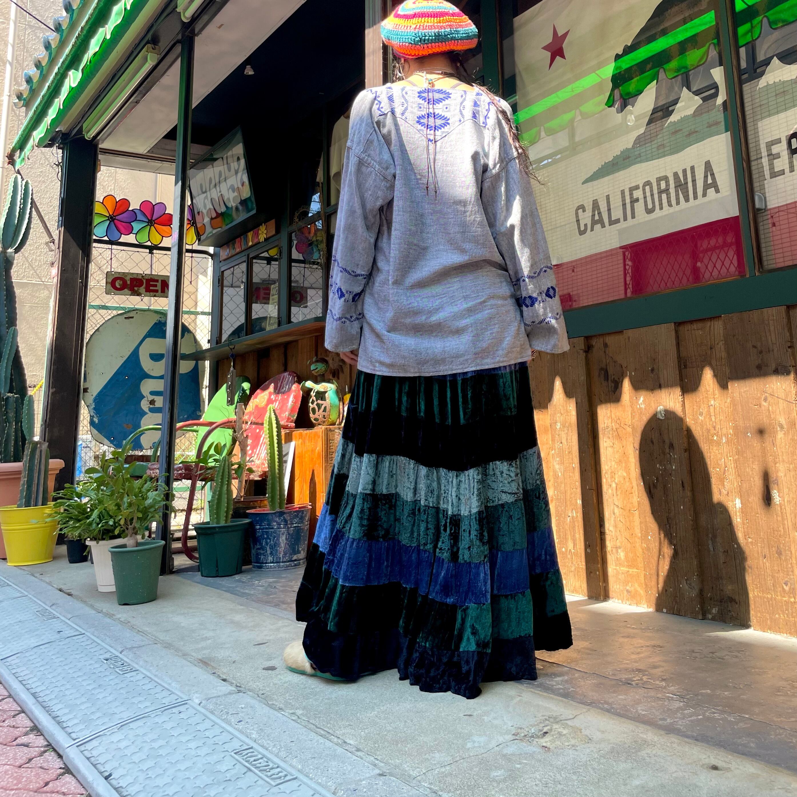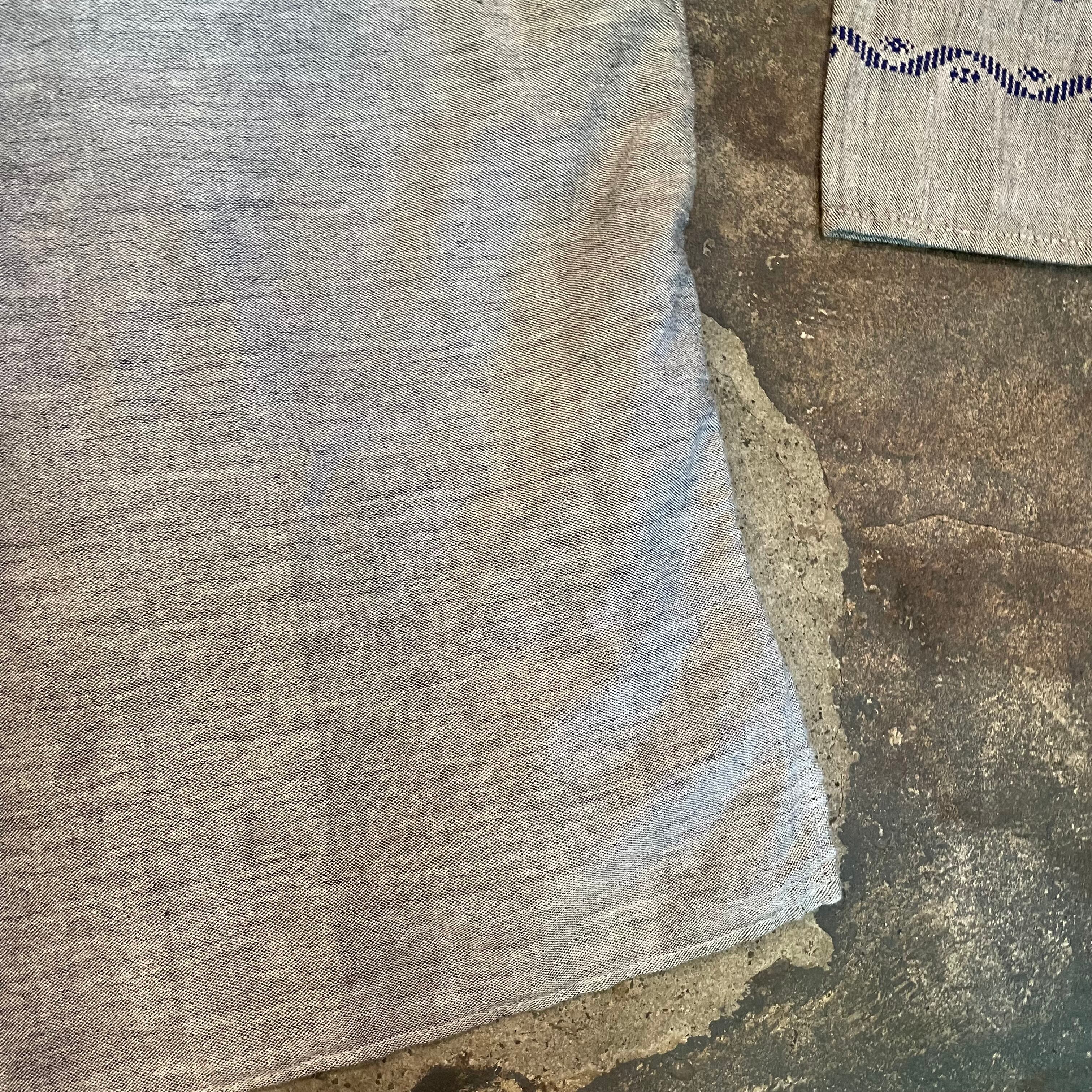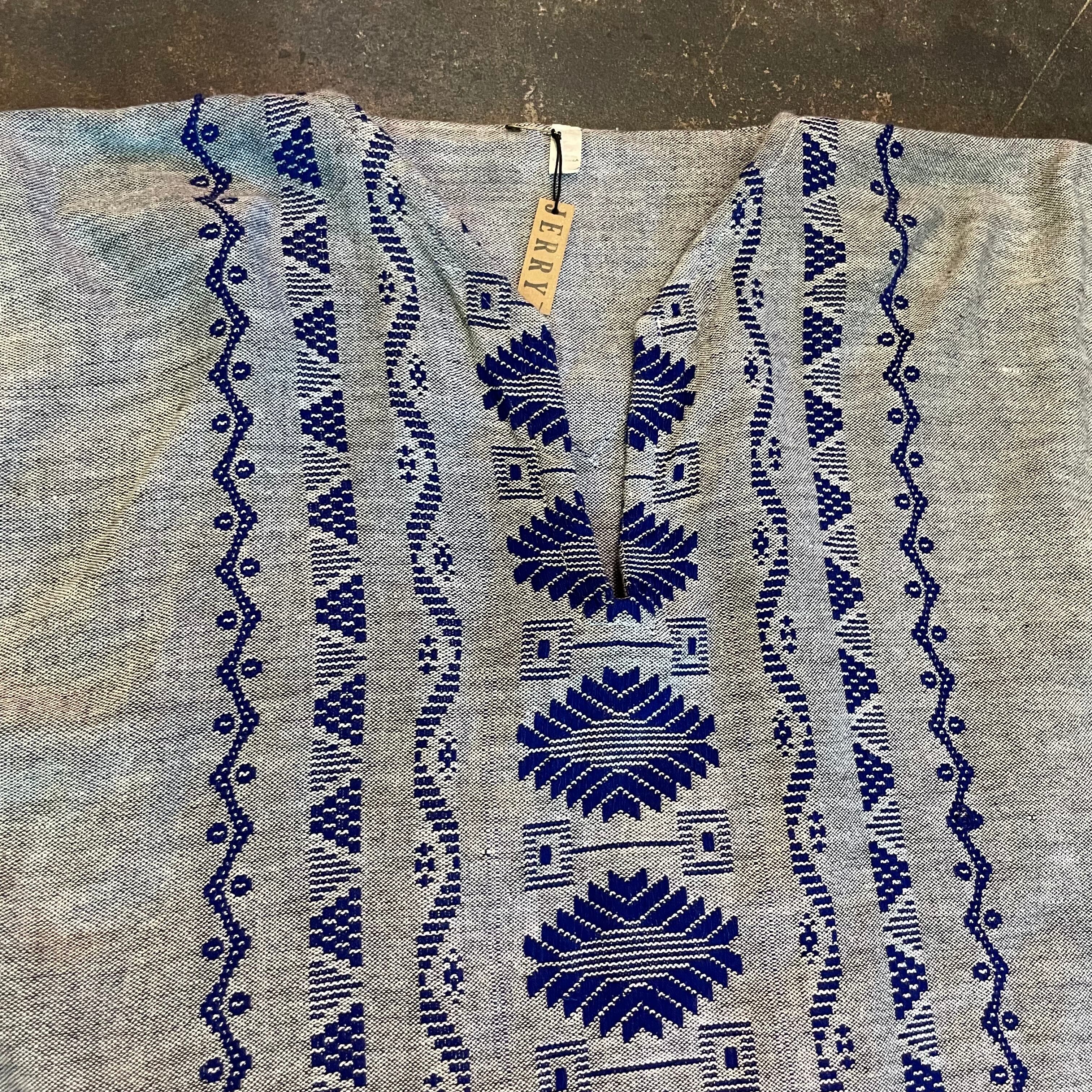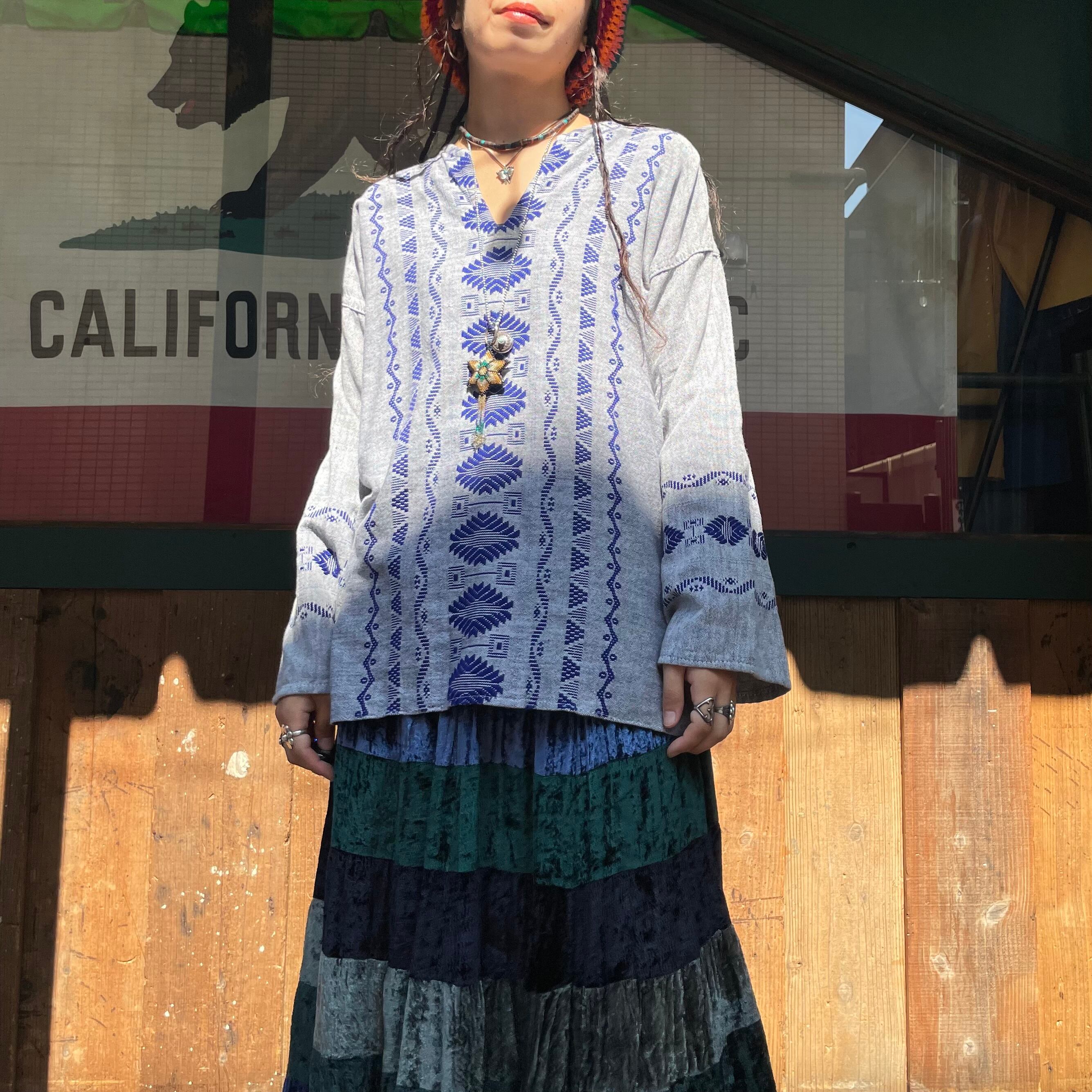 刺繍がかわいいグアテマラのメンズのシャツです。首にスリップがありプルオーバータイプで、袖は太め、サイドにスリットのボヘミアンなディテールがかわいいですね。