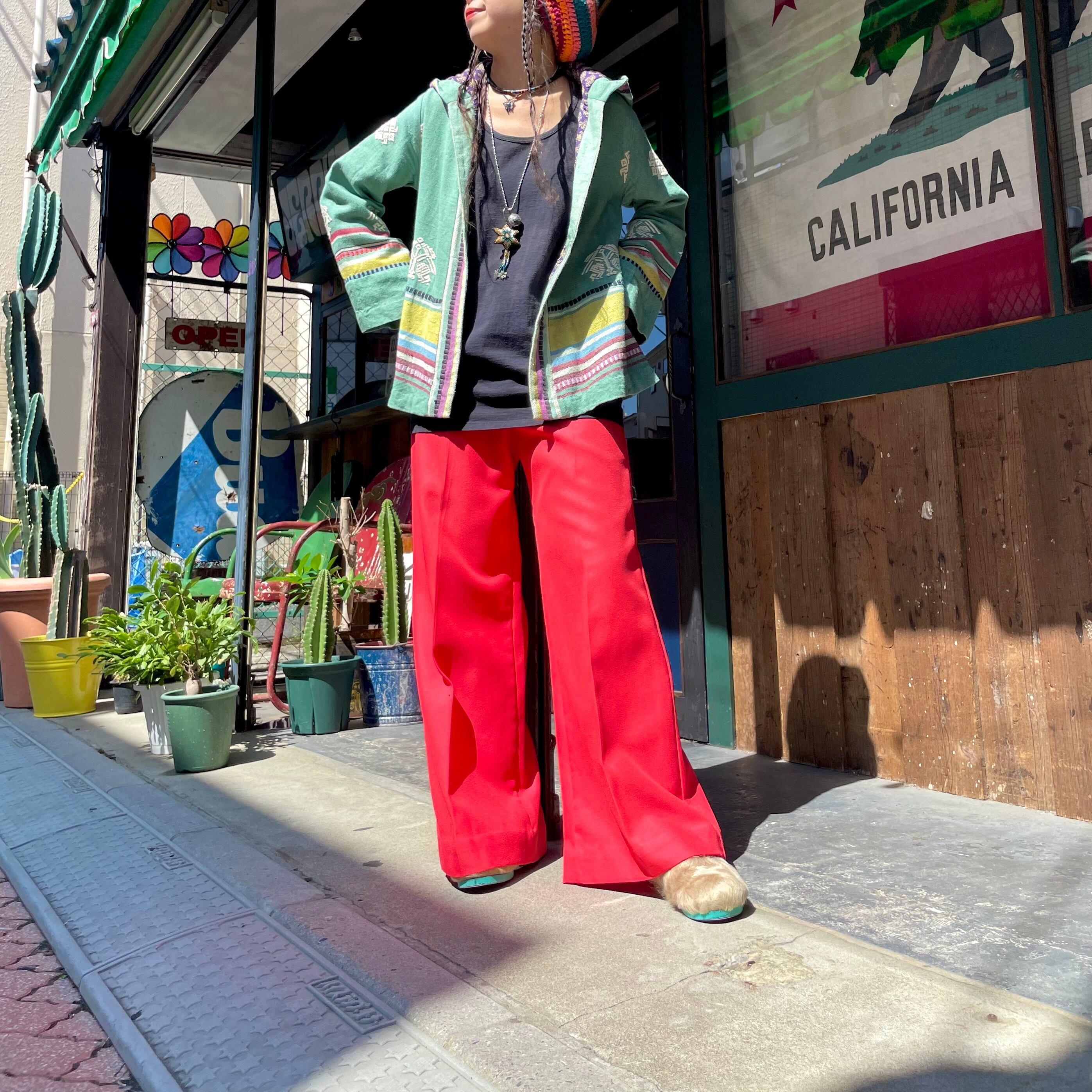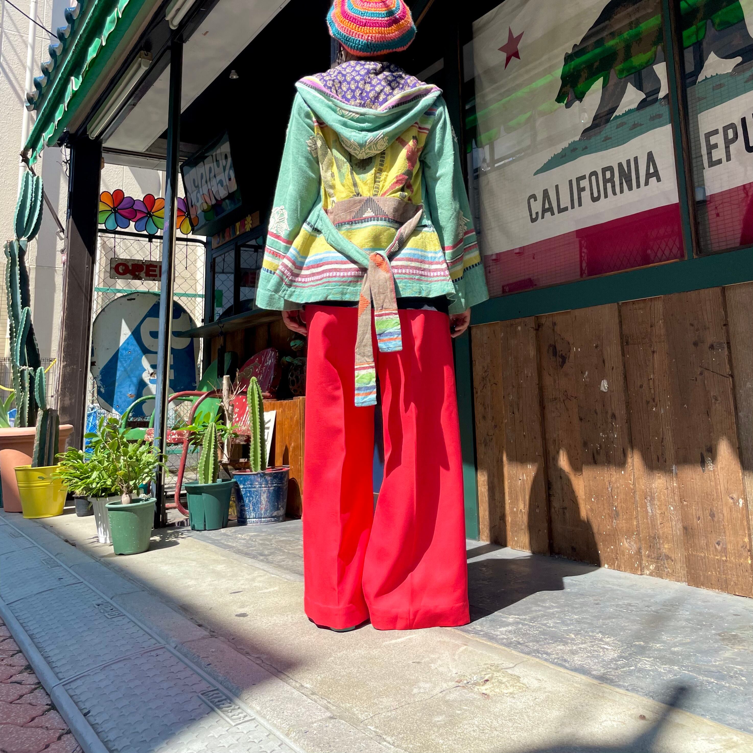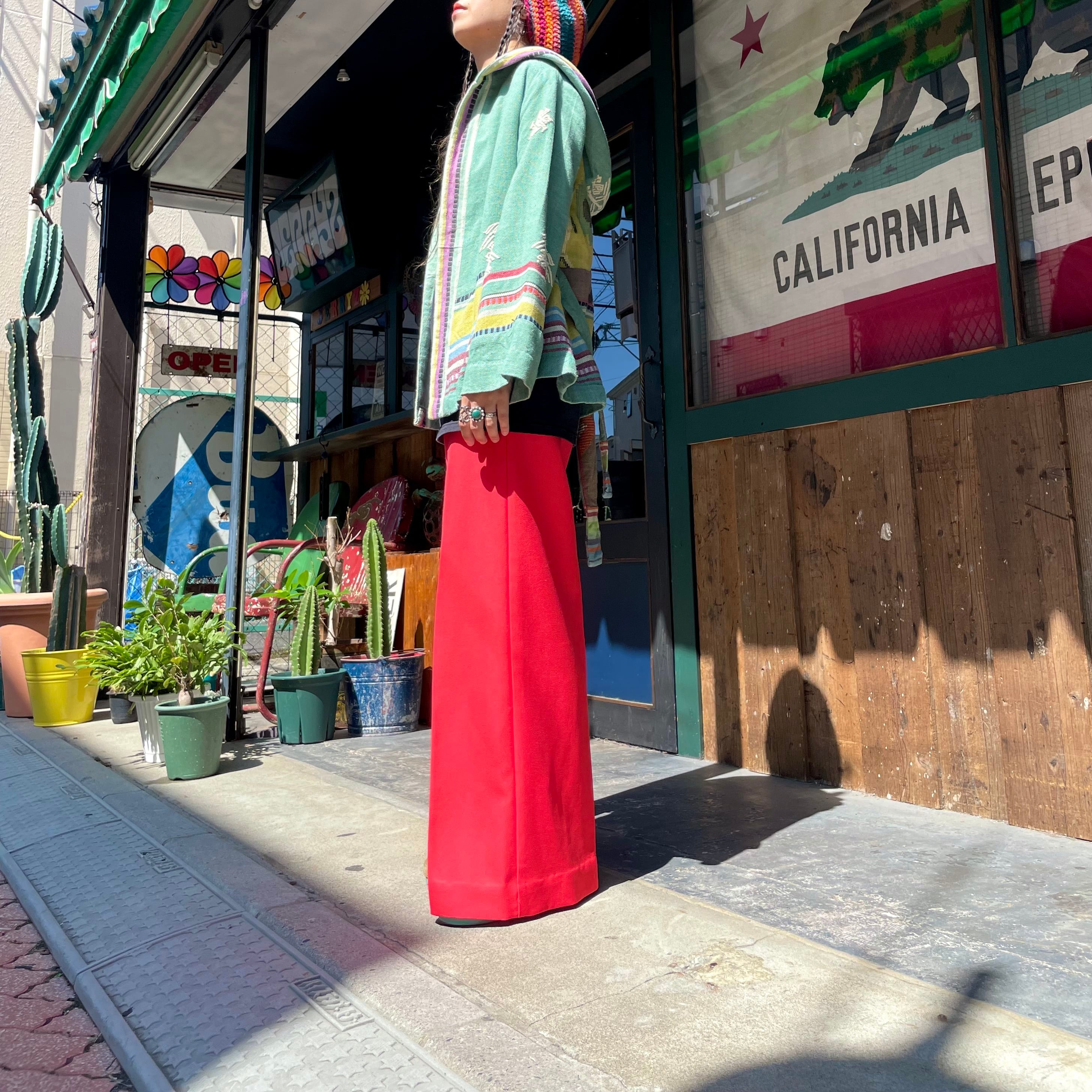 蛍光っぽいオレンジがかわいいバギーパンツです。シルエットが太めでフレアでかっこいい一本です。