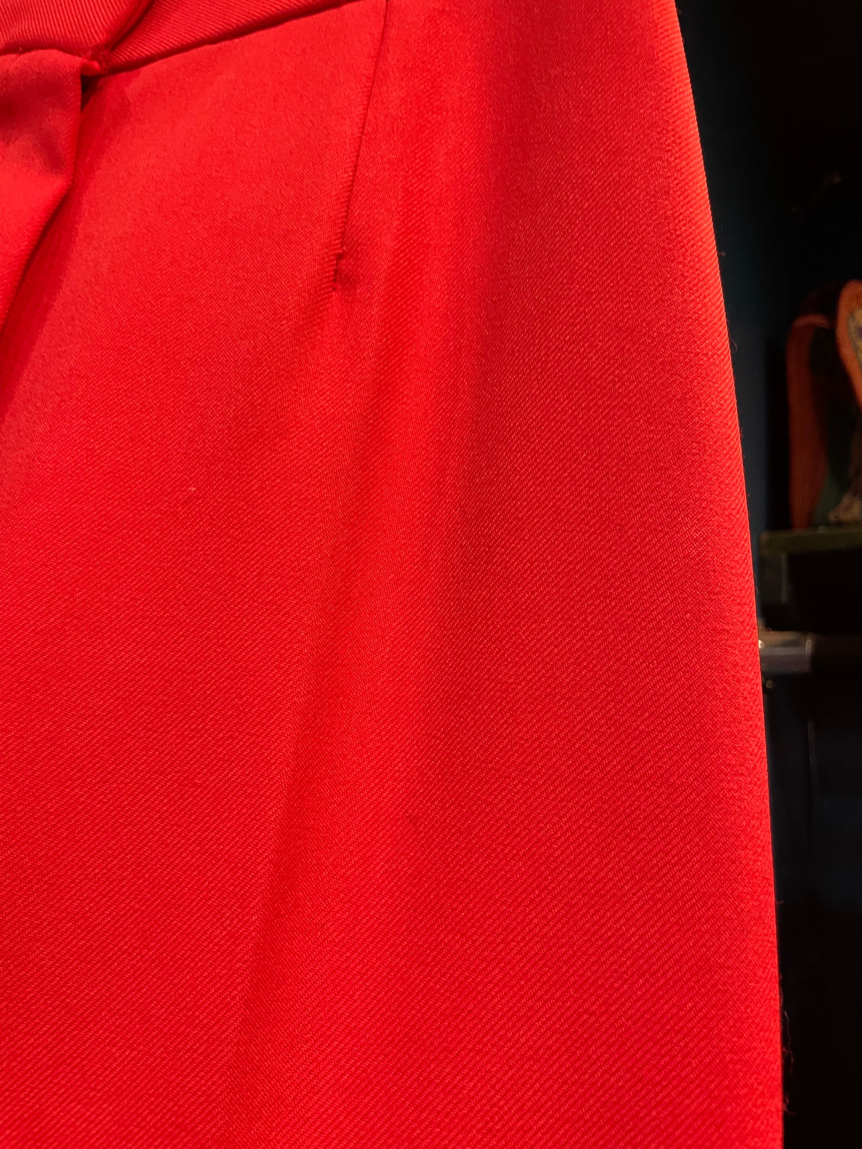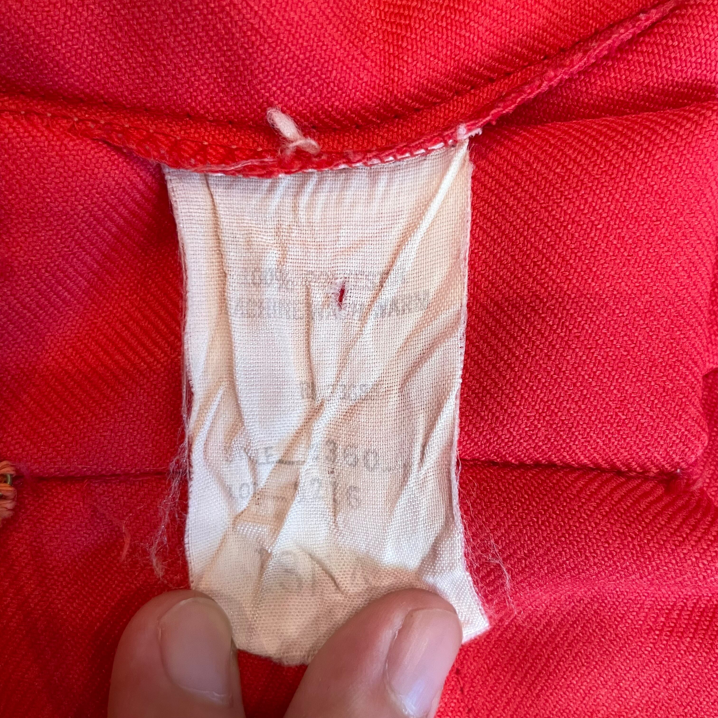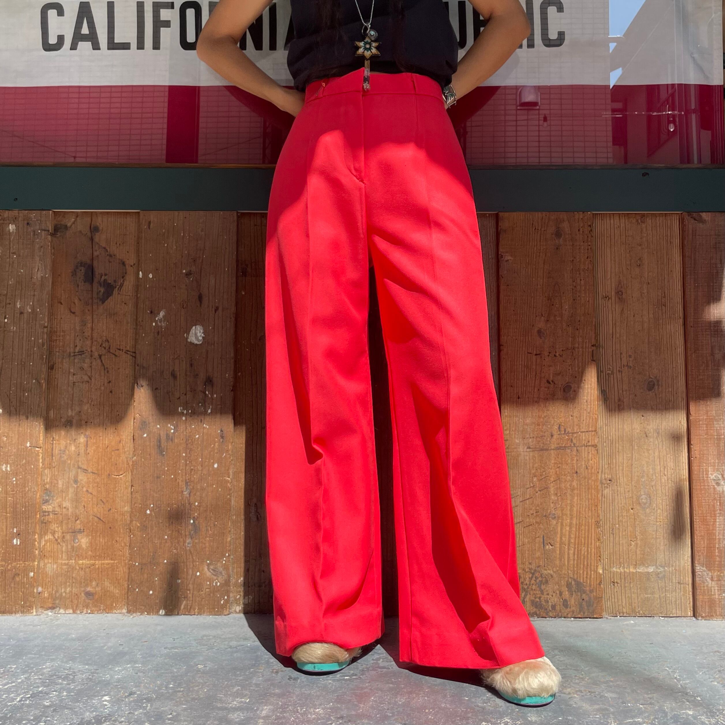 蛍光っぽいオレンジがかわいいバギーパンツです。シルエットが太めでフレアでかっこいい一本です。