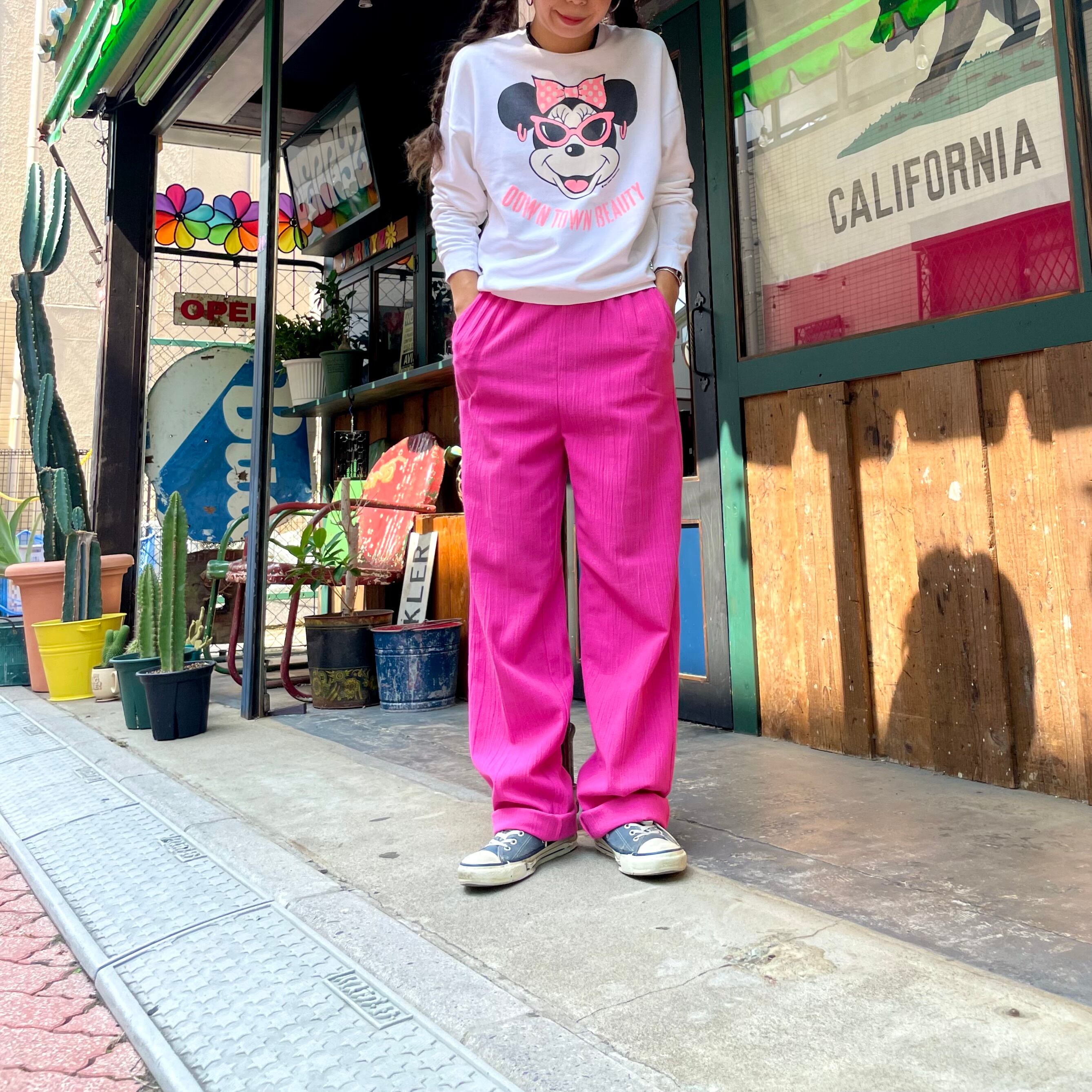 ポップで発色の良いピンクがかわいいイージーパンツです。