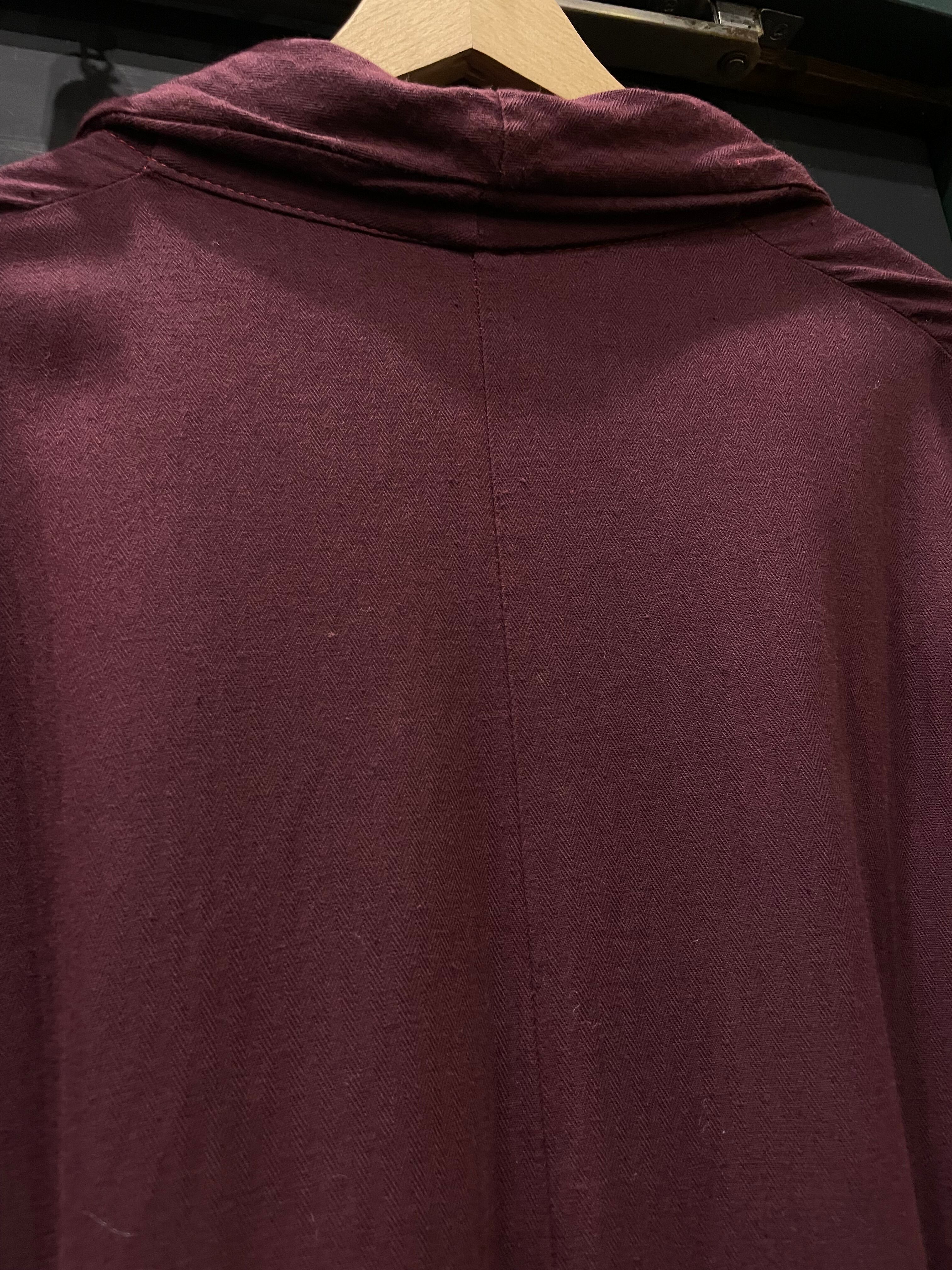 深い紫色のような、エンジ色のような渋めなカラーがかっこいいガウンです。