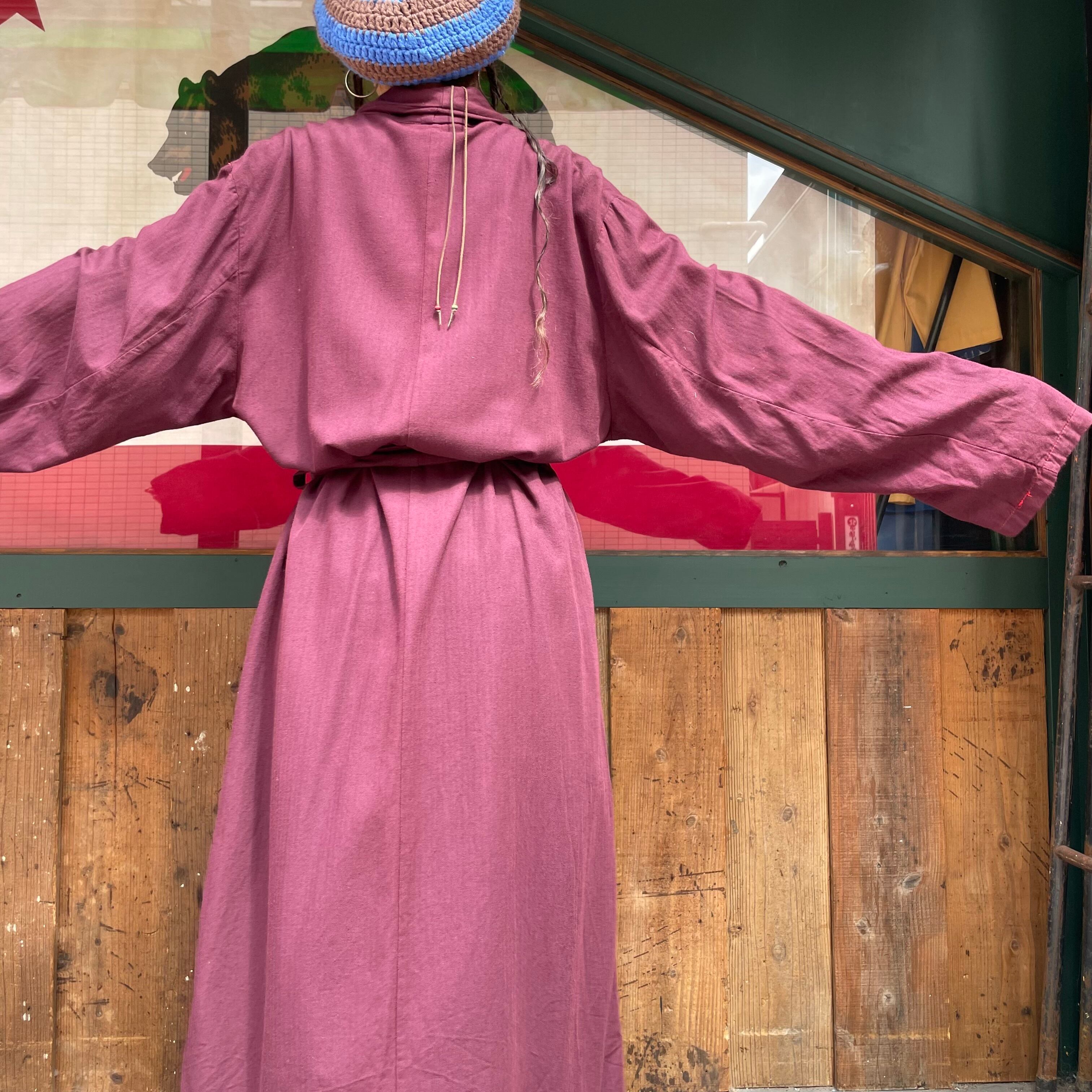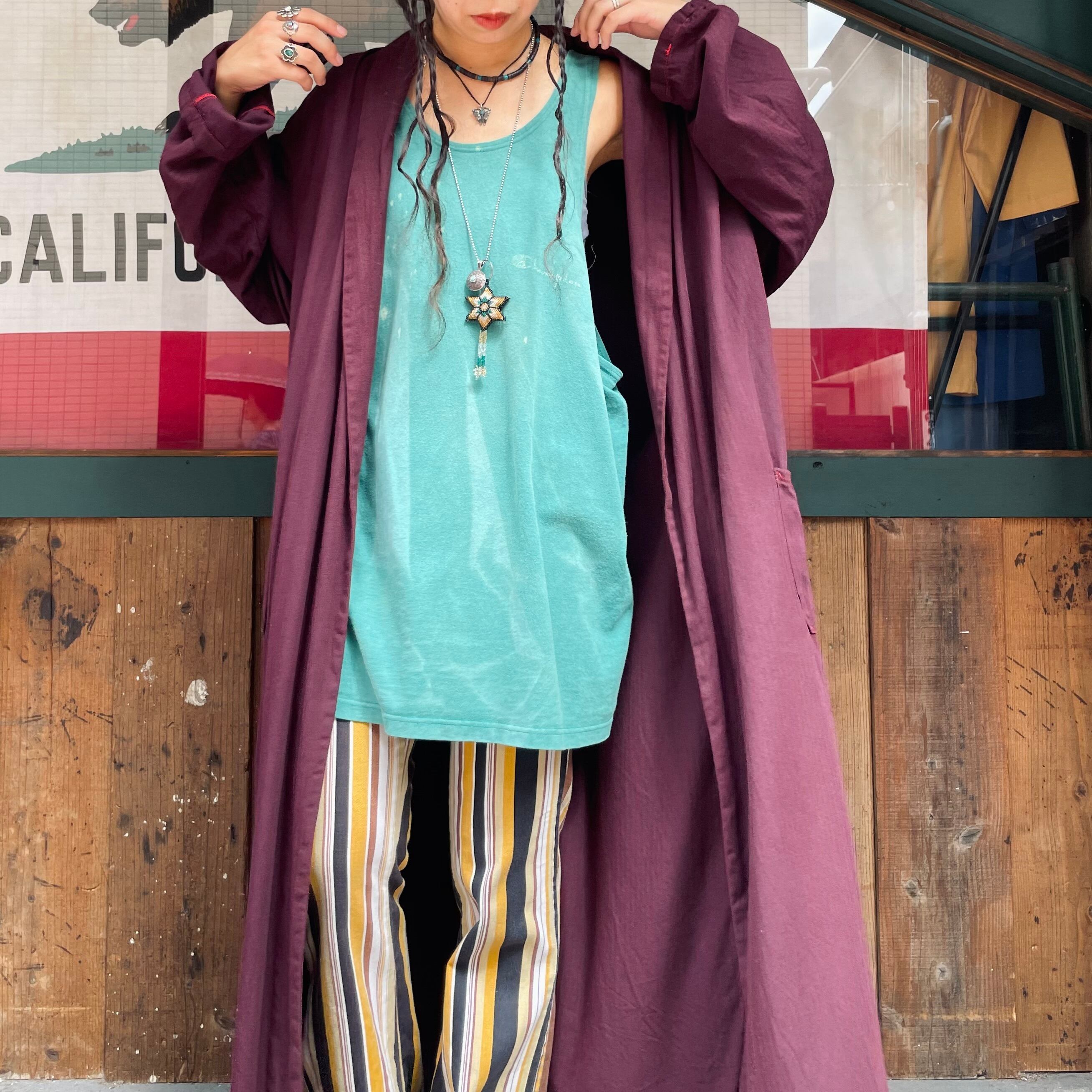 なんといってもこのしっかり長さのある丈感がとても素敵ですね。トロミのある生地感で雰囲気がありますし、厚手すぎず薄手すぎず春や秋のアウターとしても活躍しそうな一枚です。