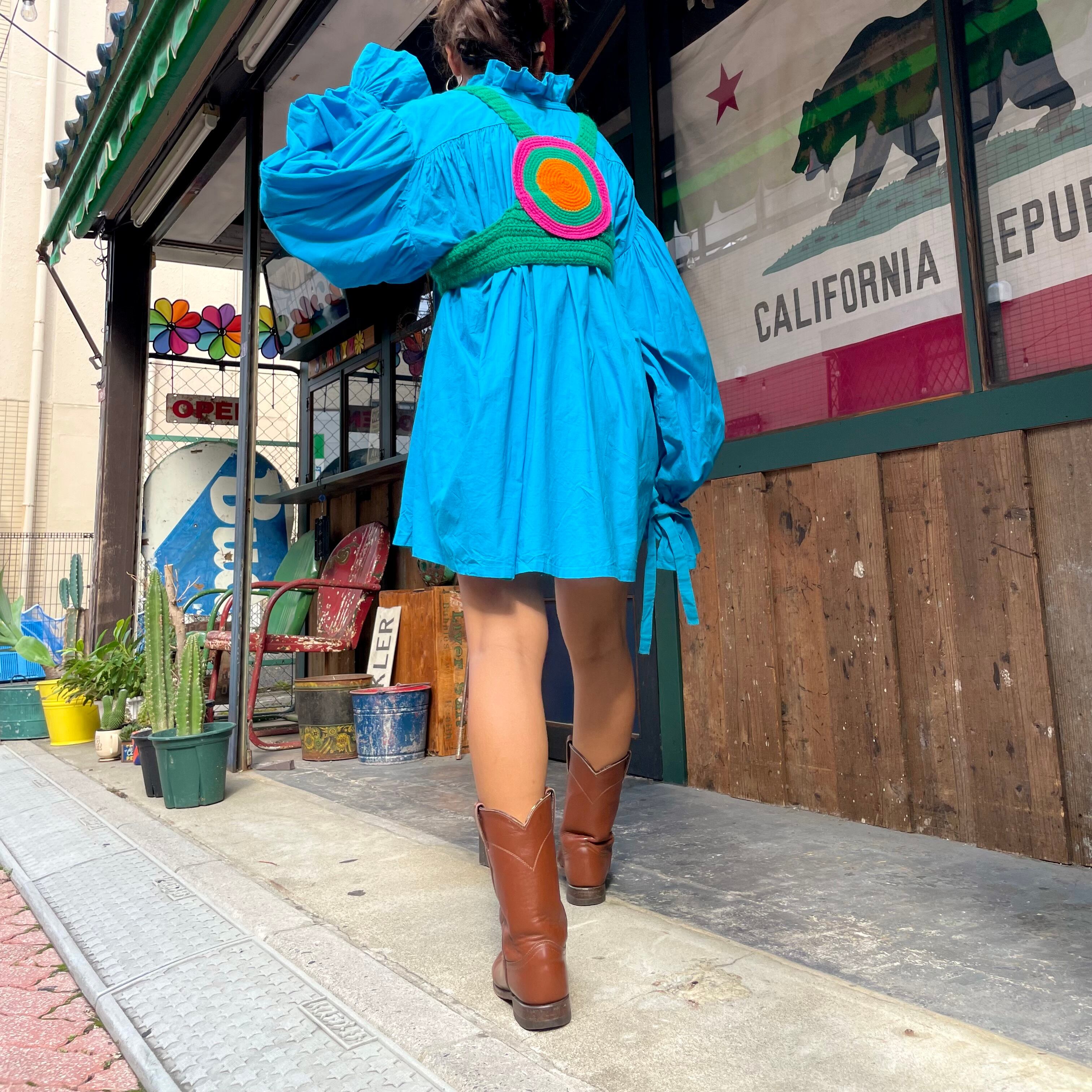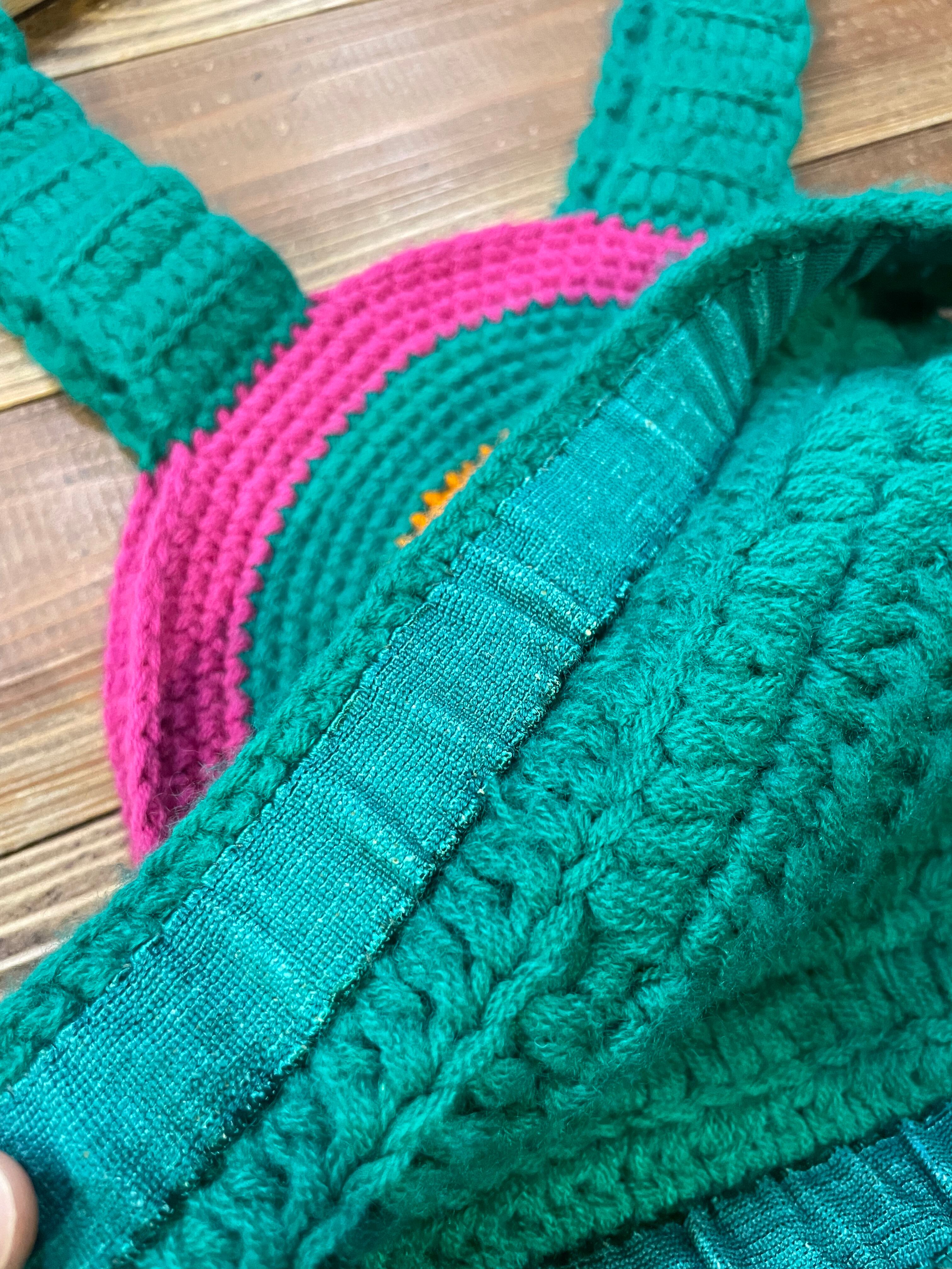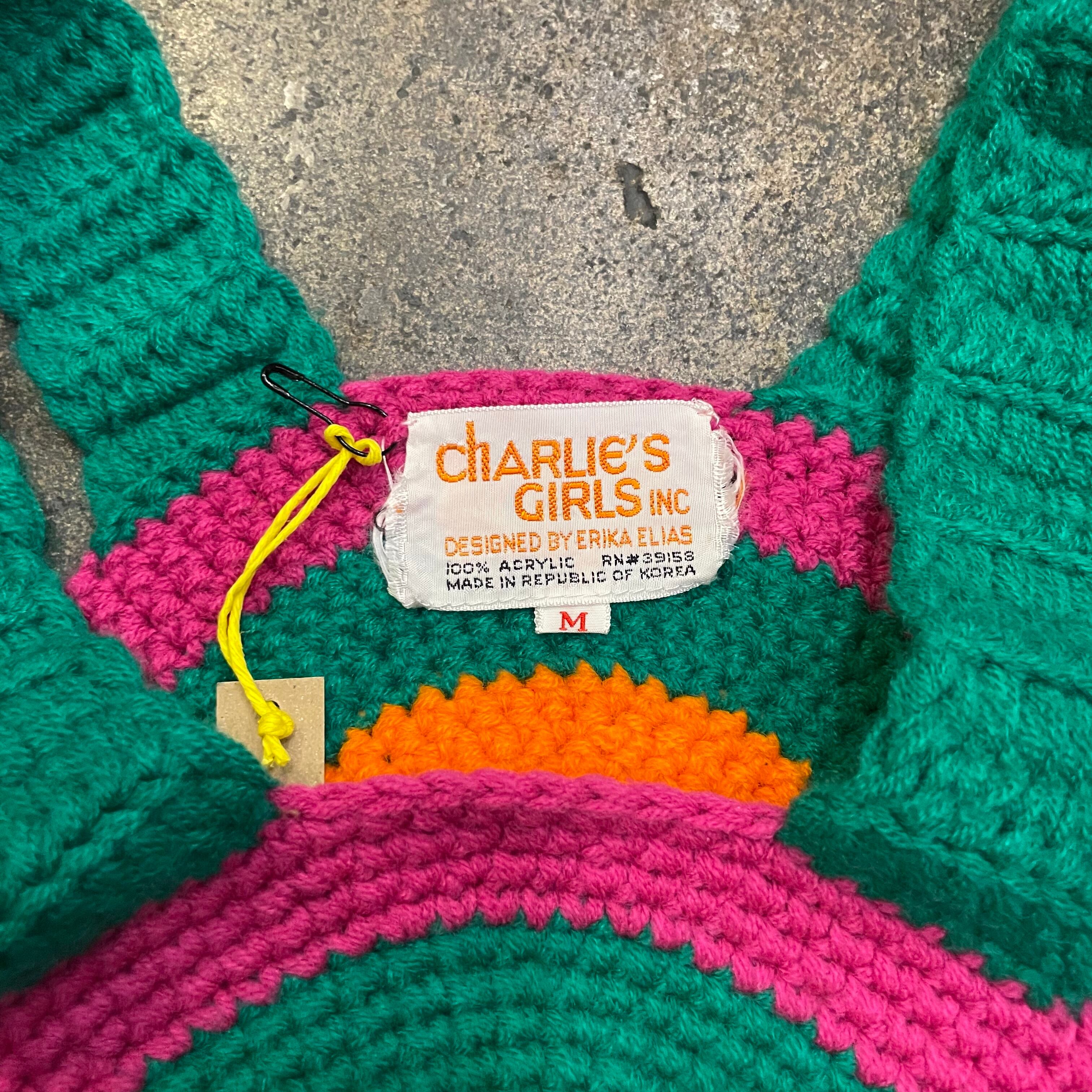 きれいなグリーンにピンクとオレンジの組み合わせがとてもかわいい70年代頃のベストです。