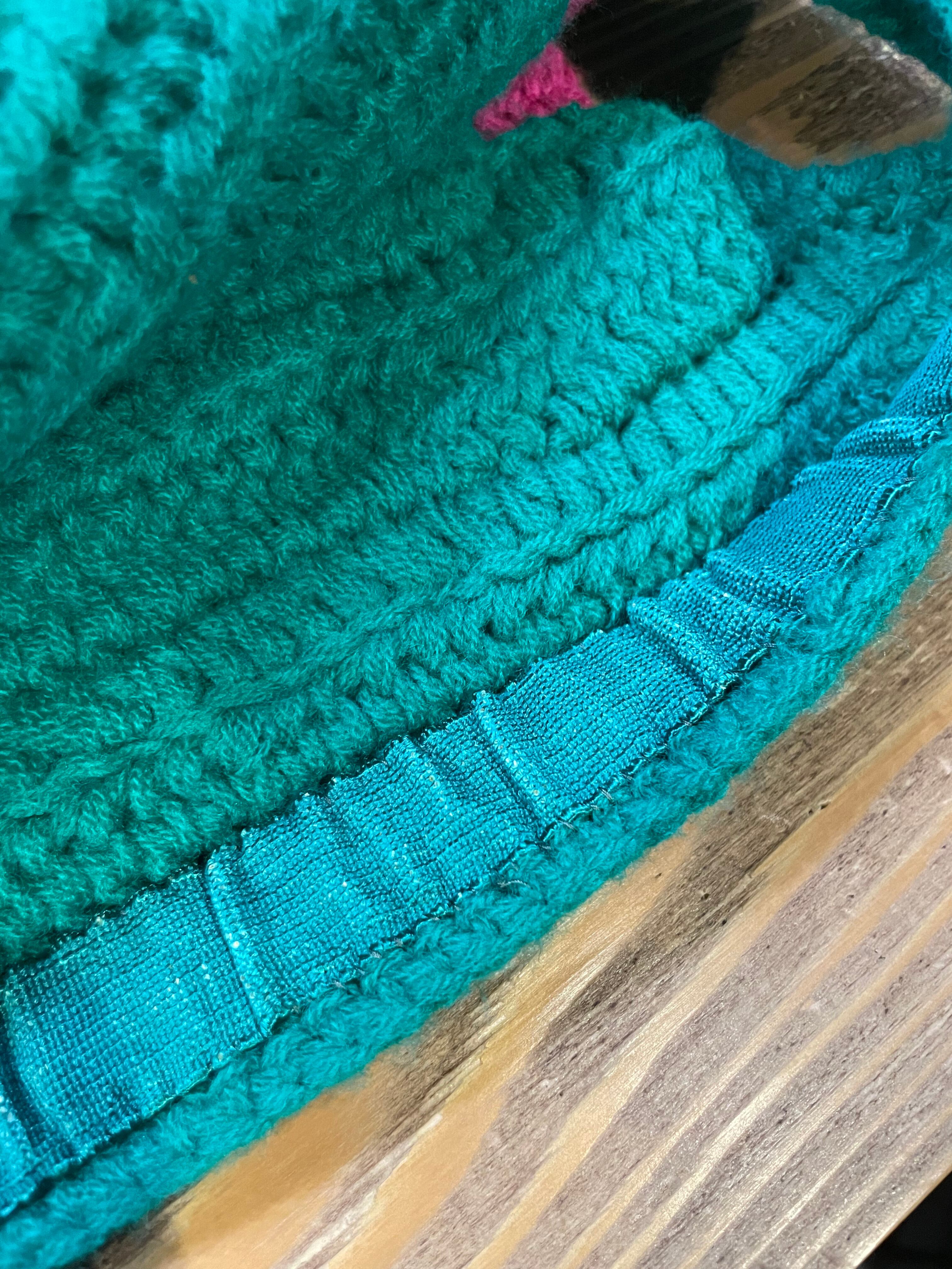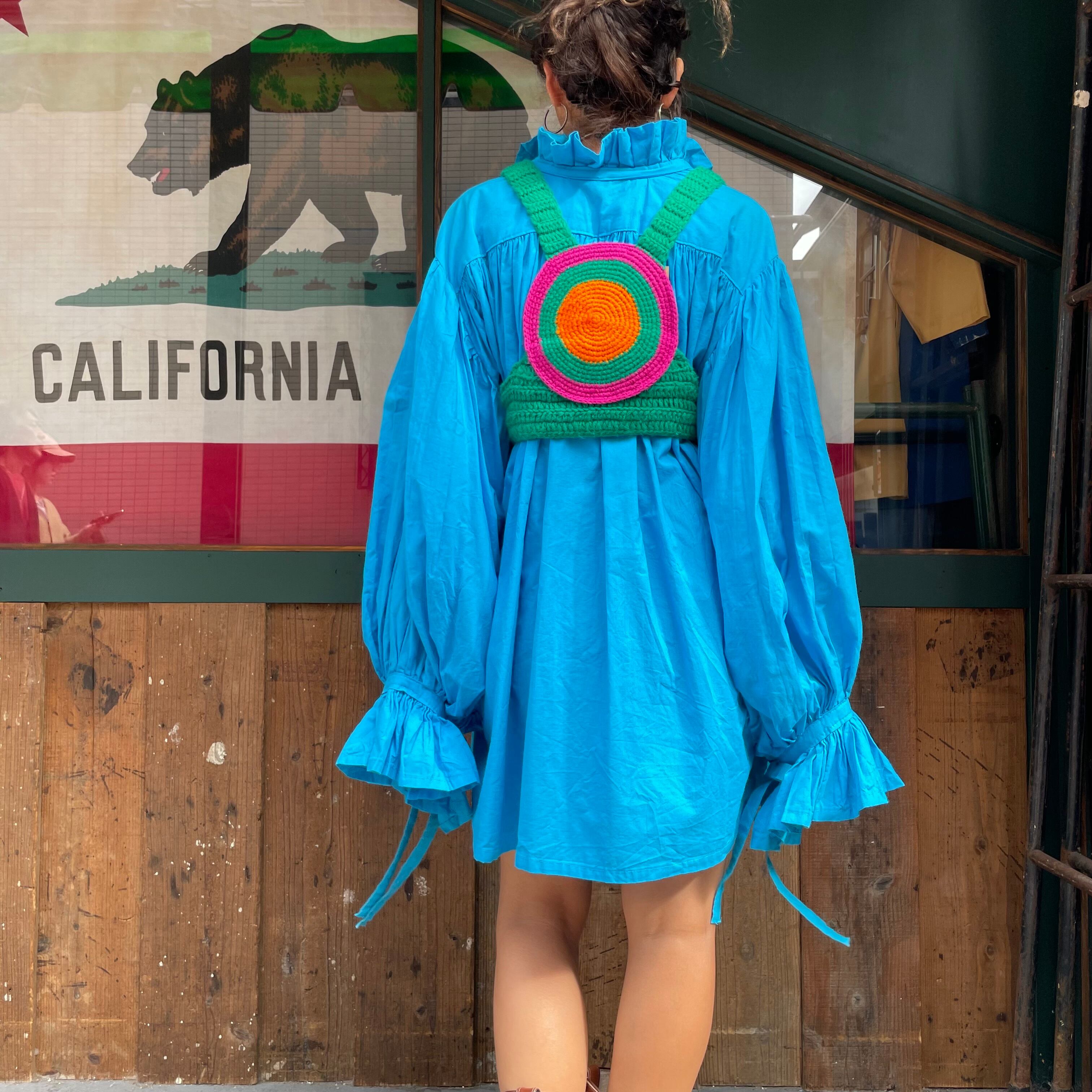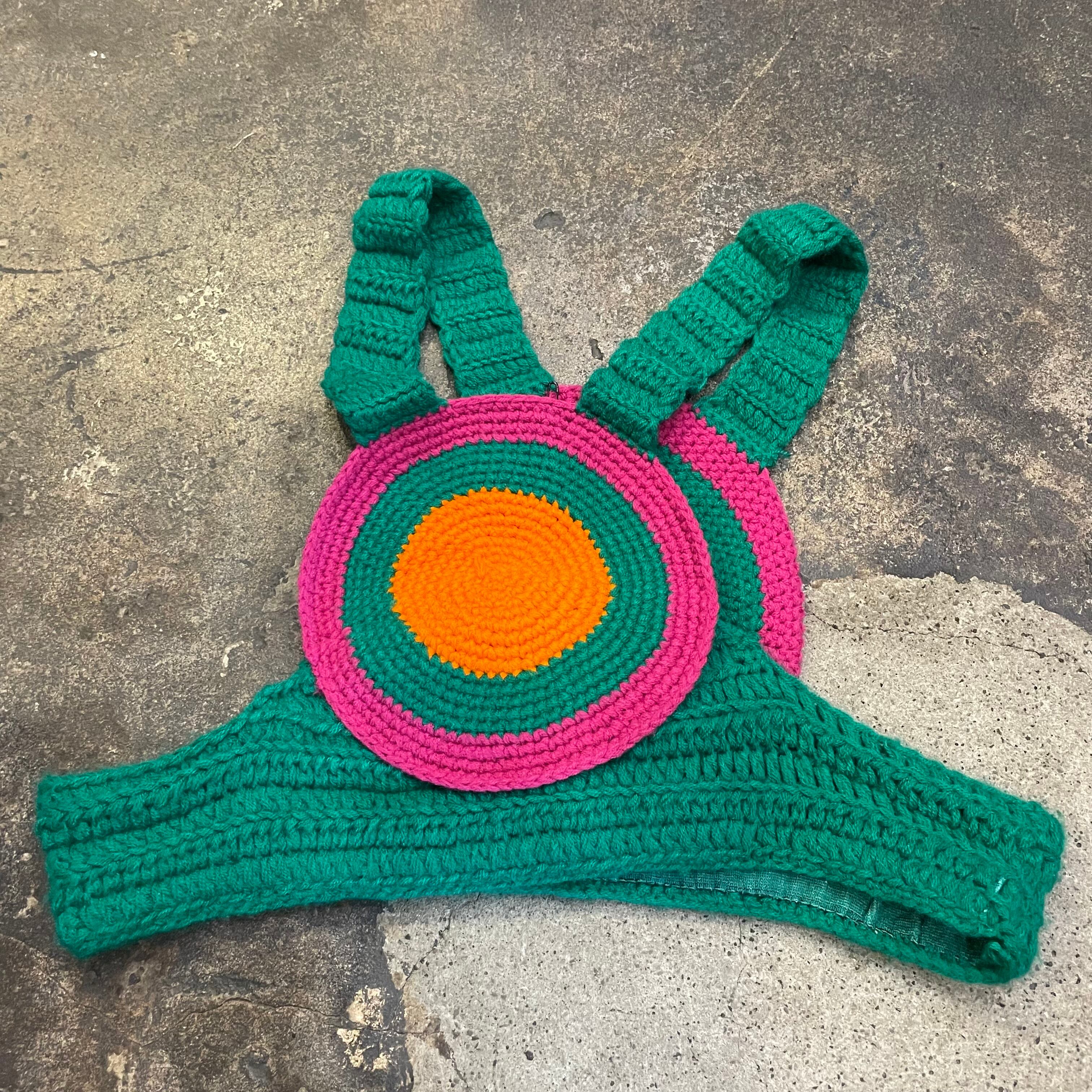 きれいなグリーンにピンクとオレンジの組み合わせがとてもかわいい70年代頃のベストです。