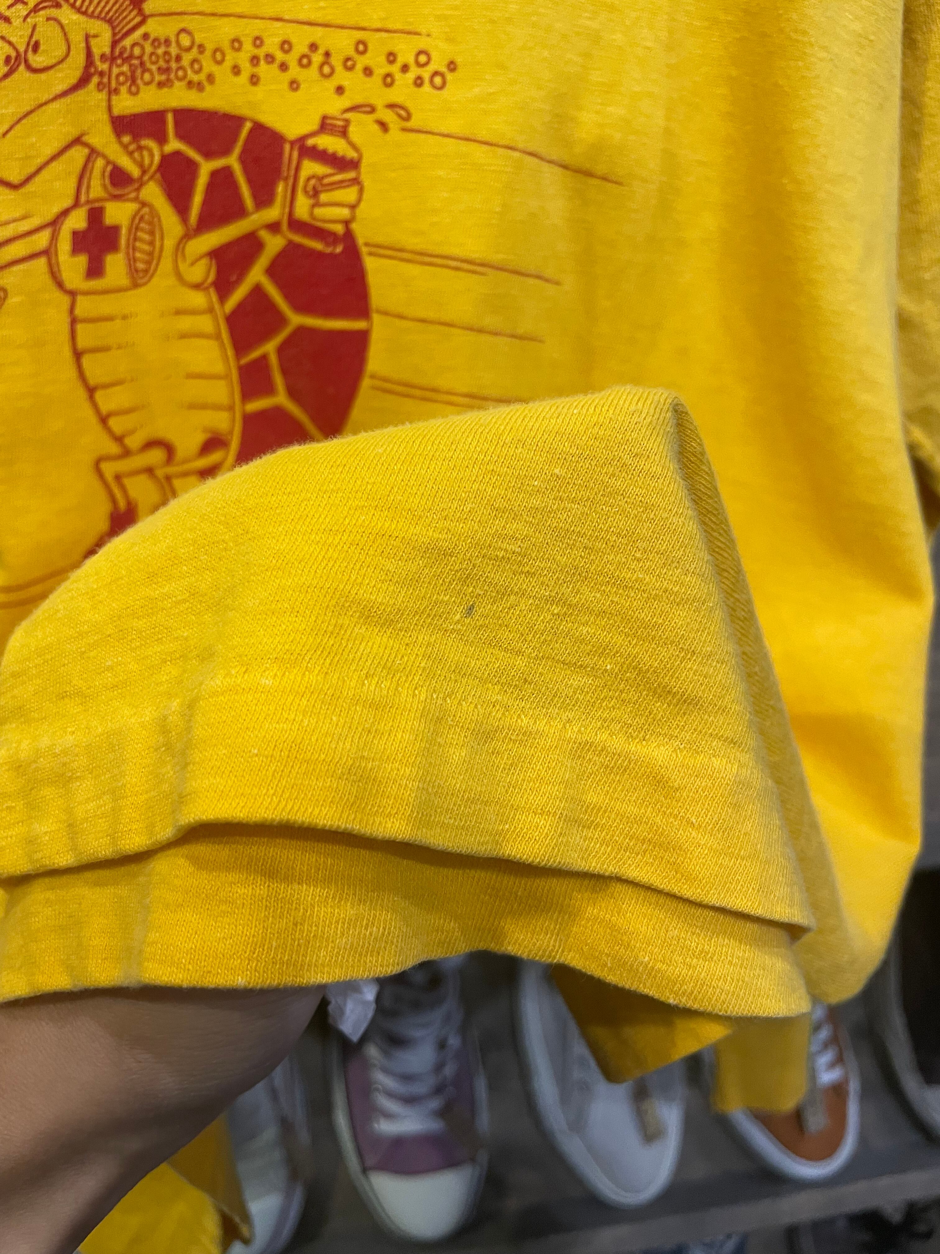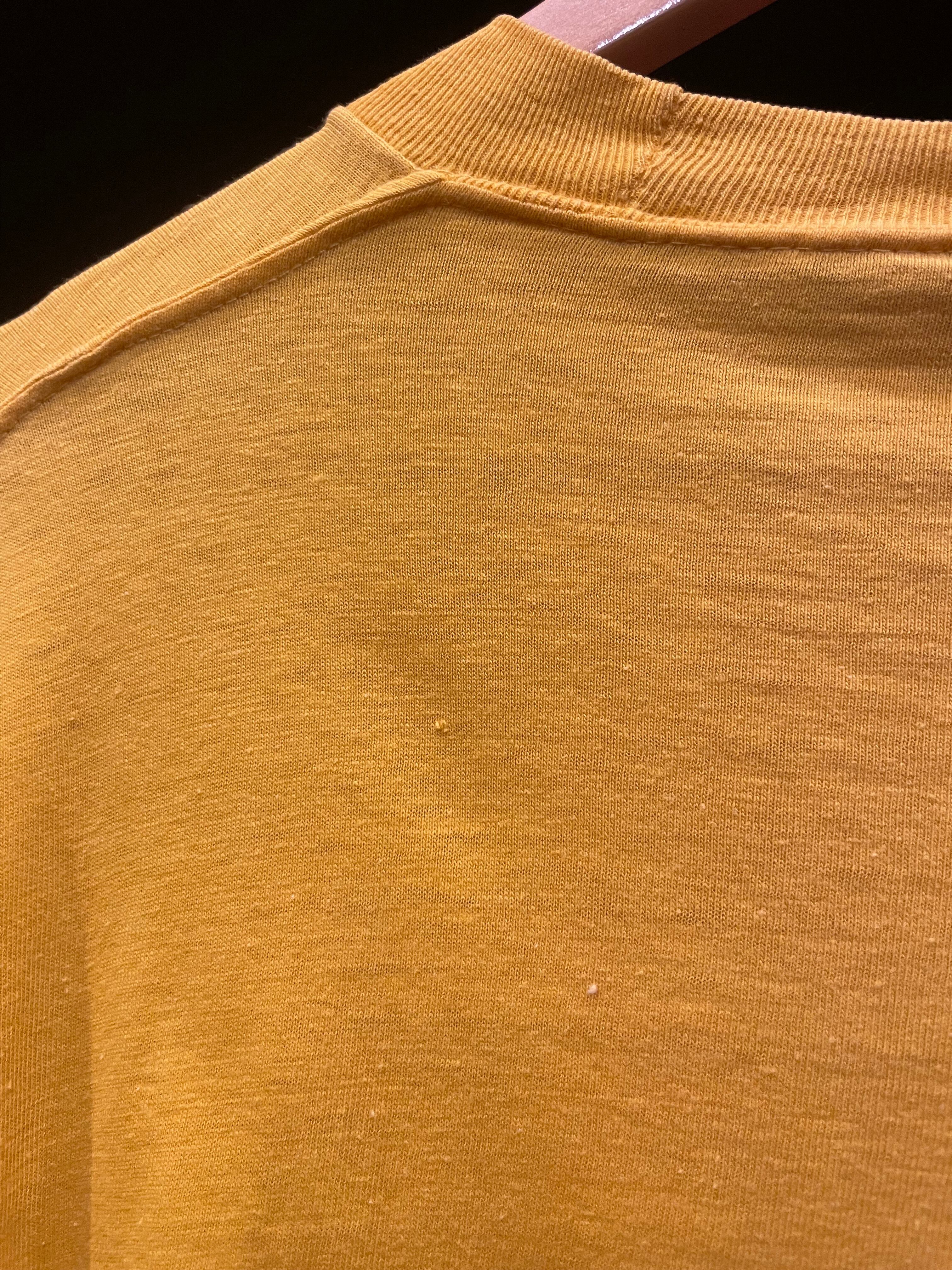 襟ぐりにダメージ(ご希望でしたらリペア可能です。)、全体的な薄さ、シミや毛羽立ち等使用感のある商品です。古着にご理解のある方のご購入をお願い致します。