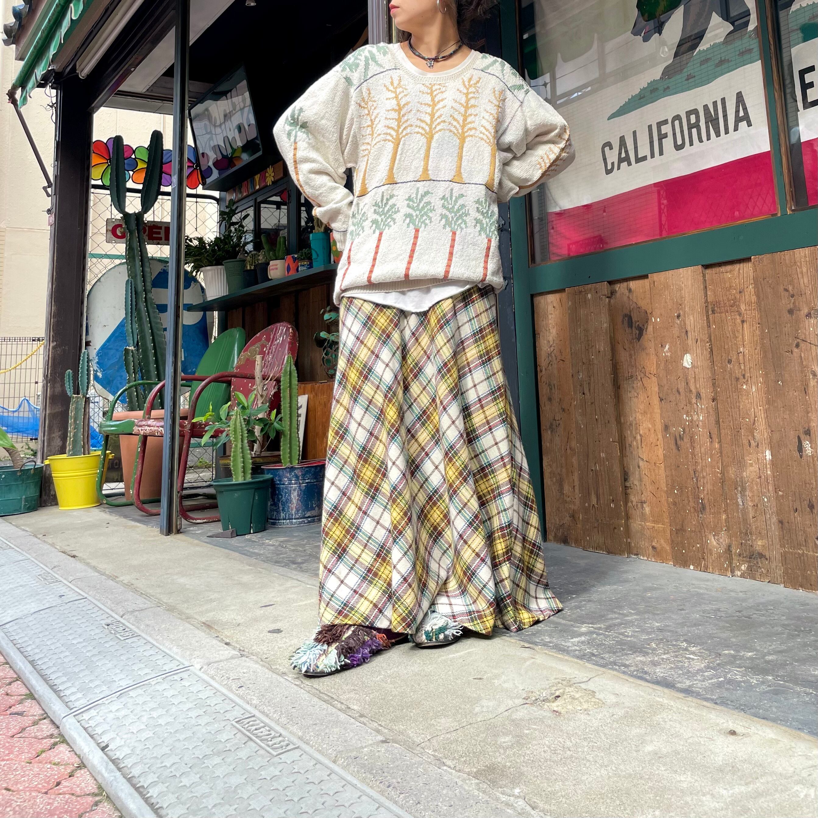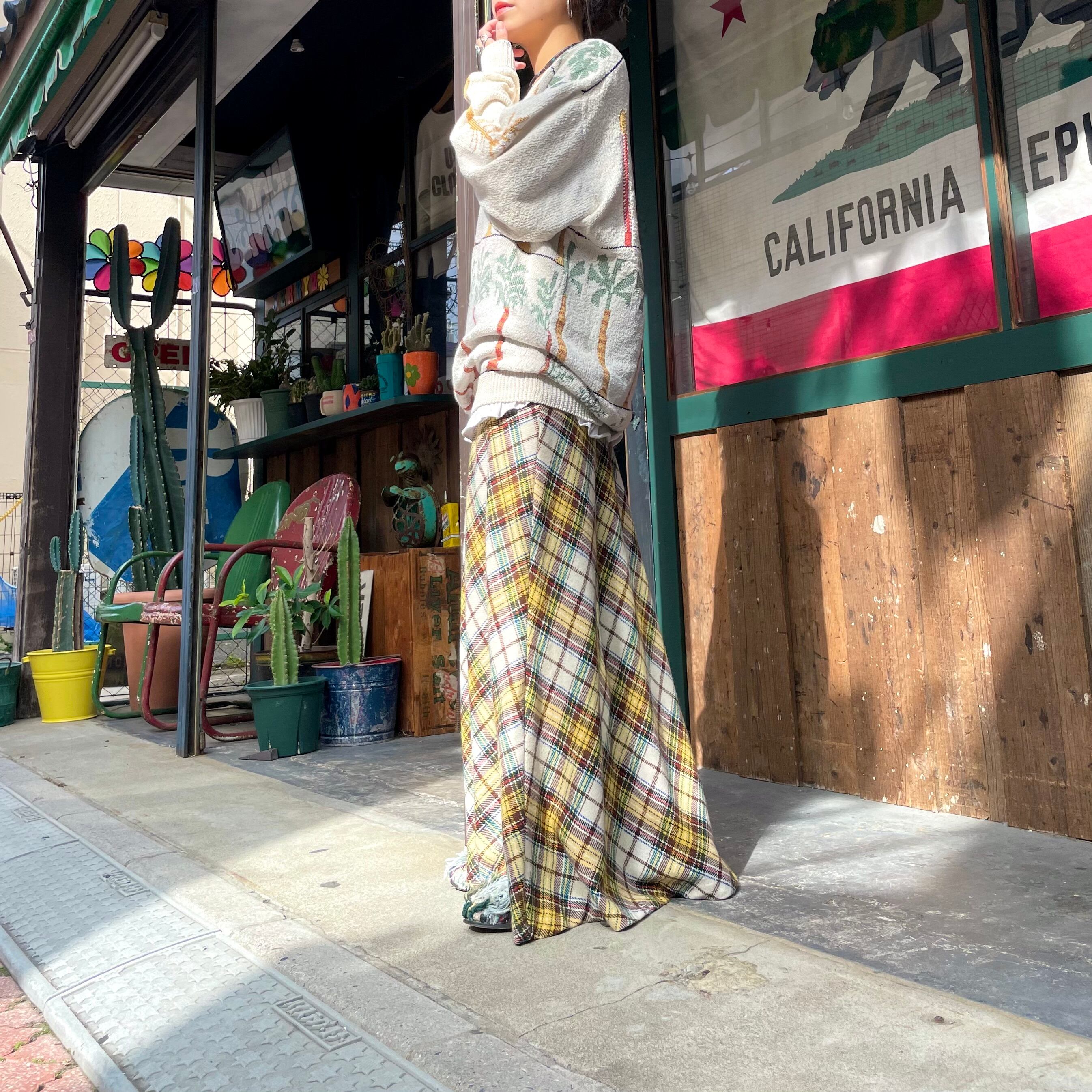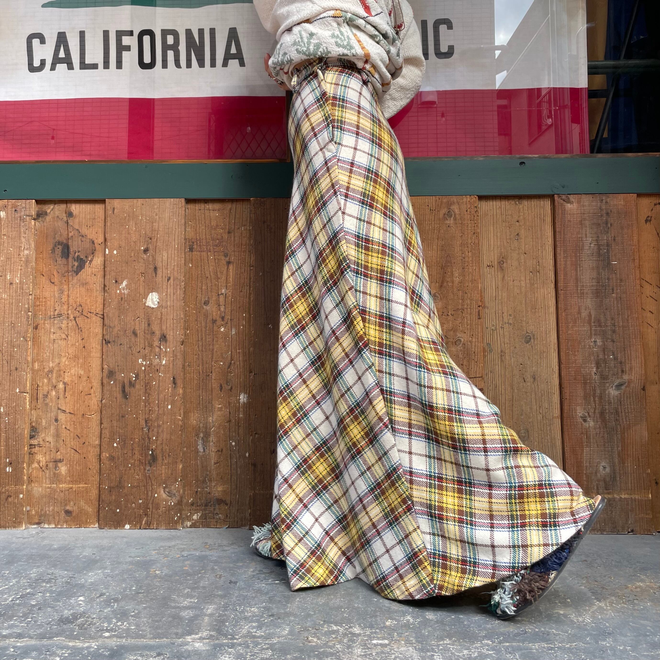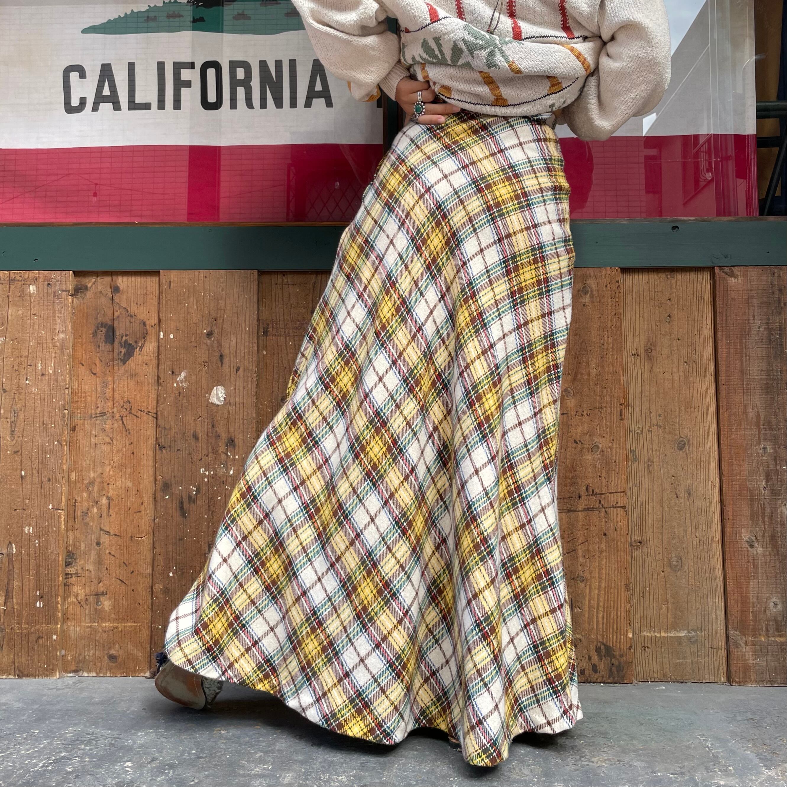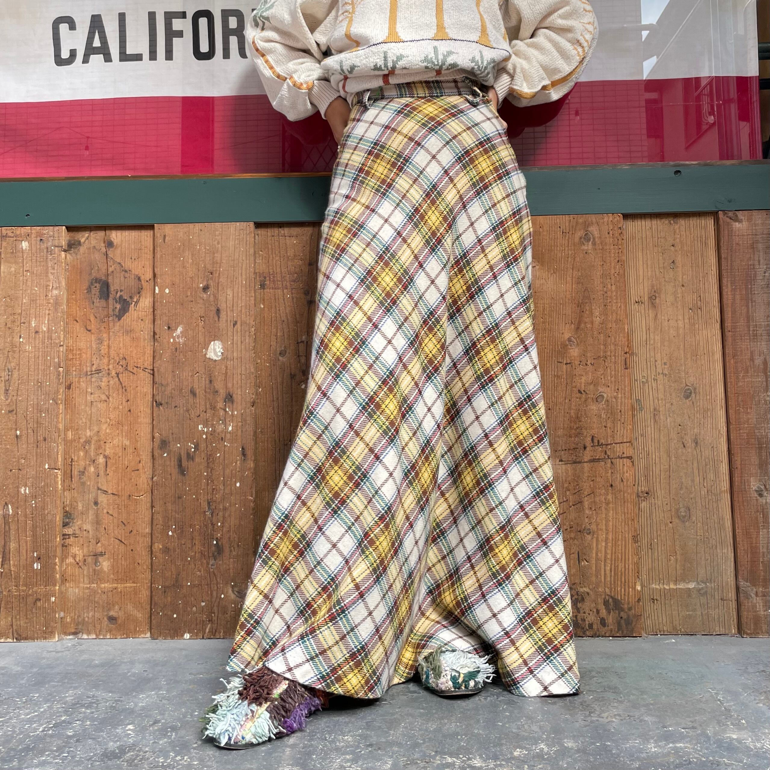 70's〜 plaid long skirt