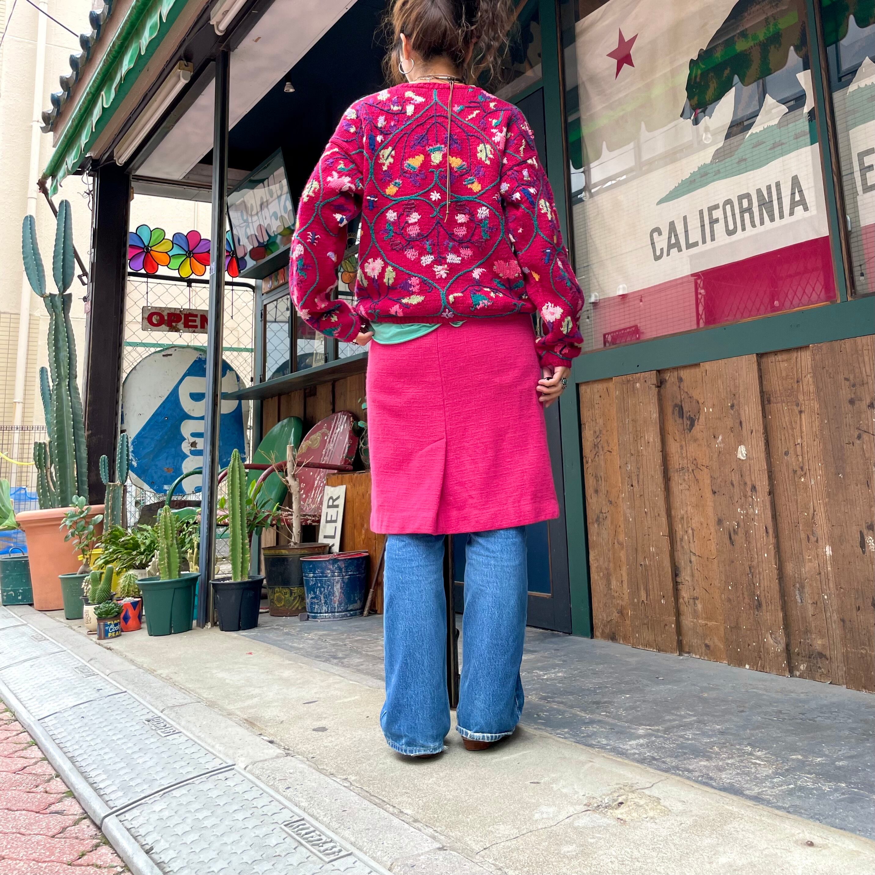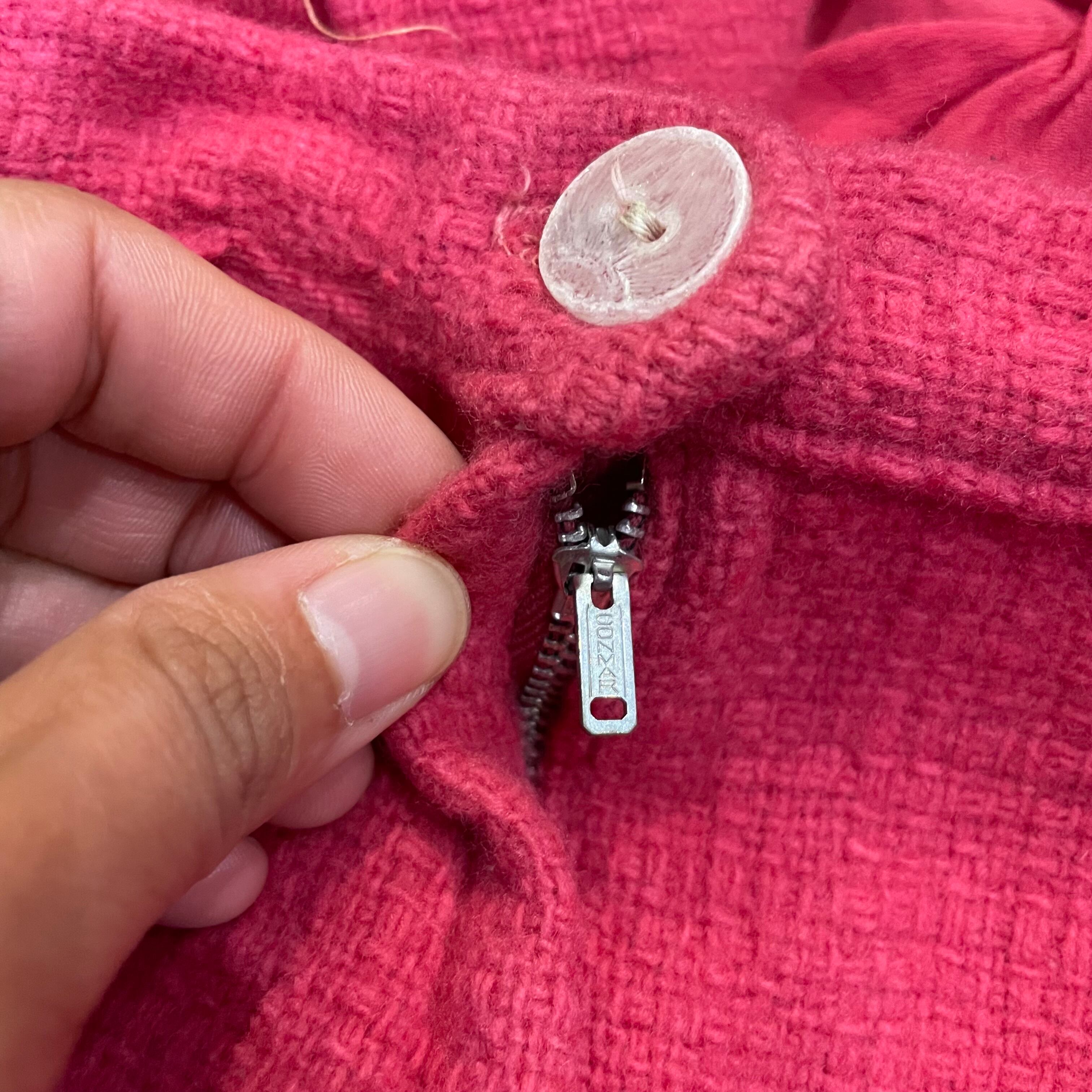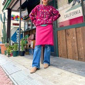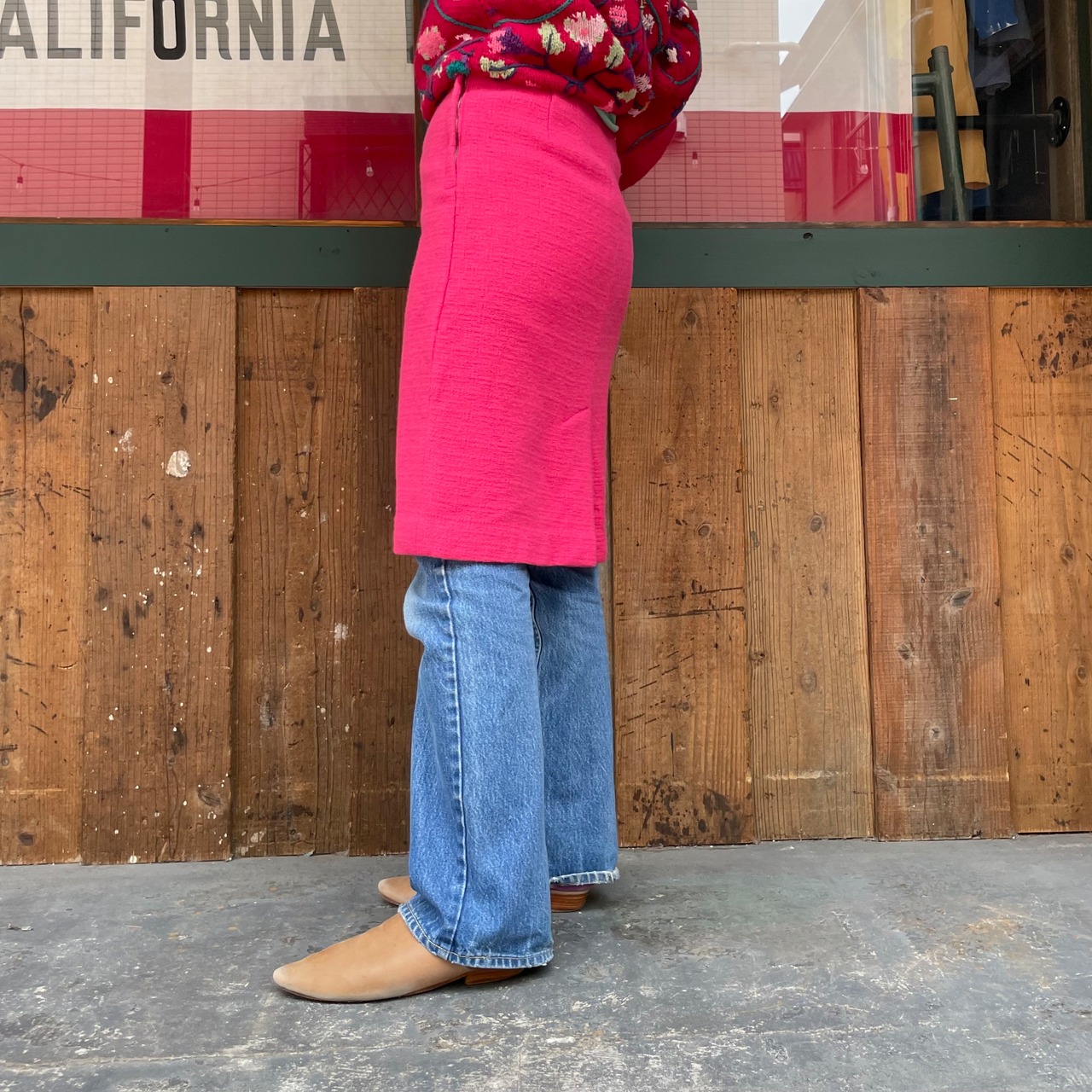 ふわっとフェルトのような暖かい肌触りのスカートです。海外のお菓子のような絶妙なピンク色がとてもかわいいですね。