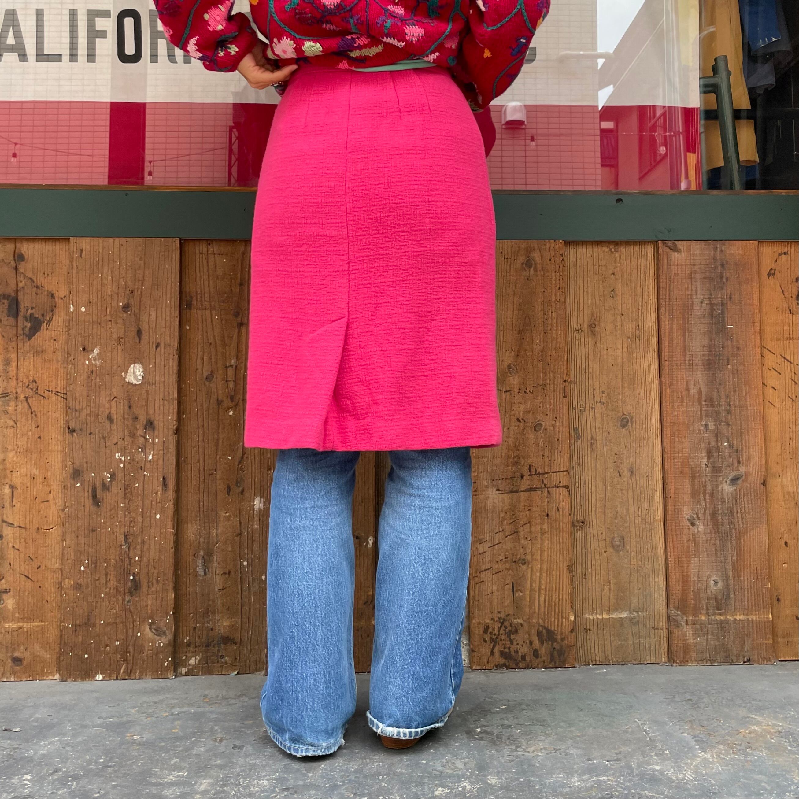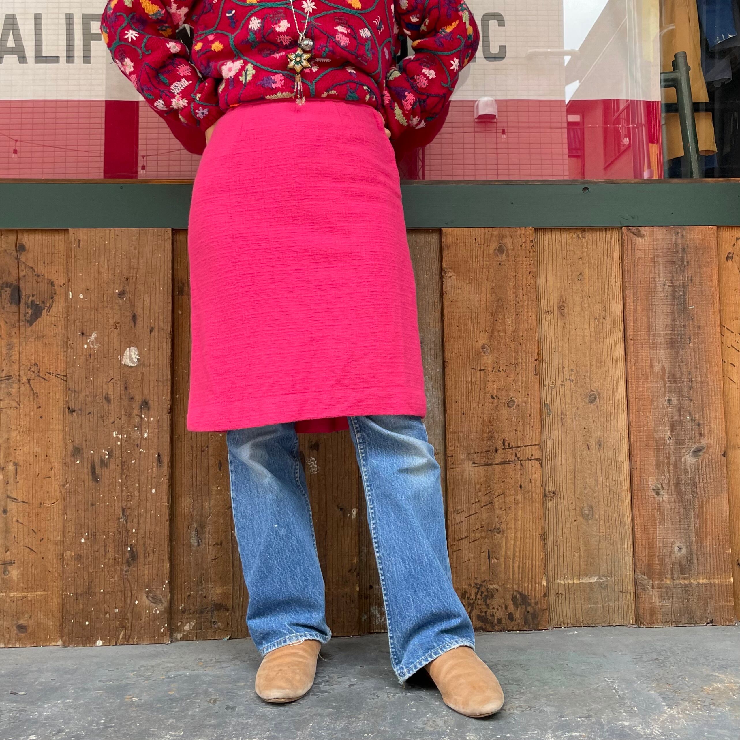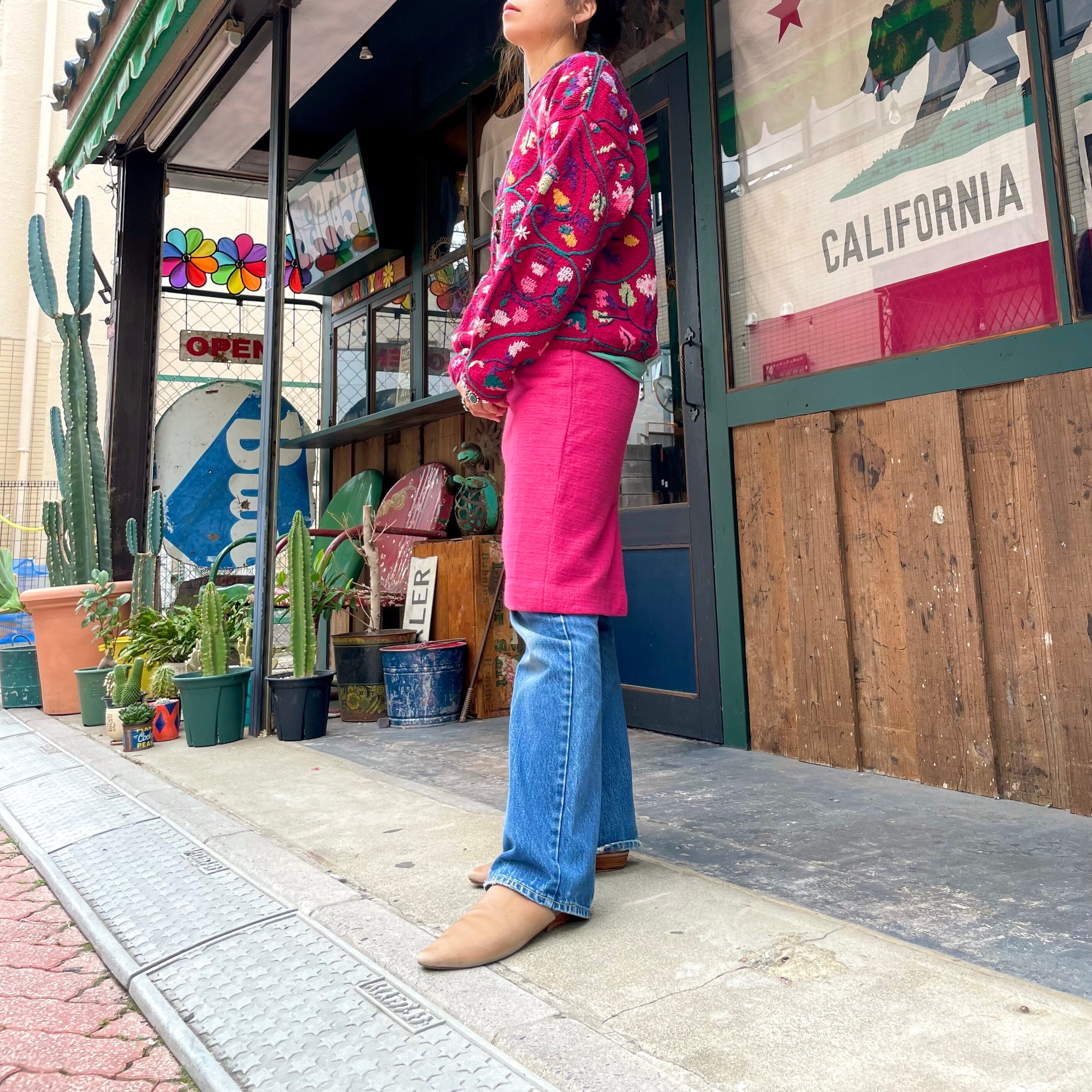 ふわっとフェルトのような暖かい肌触りのスカートです。海外のお菓子のような絶妙なピンク色がとてもかわいいですね。
