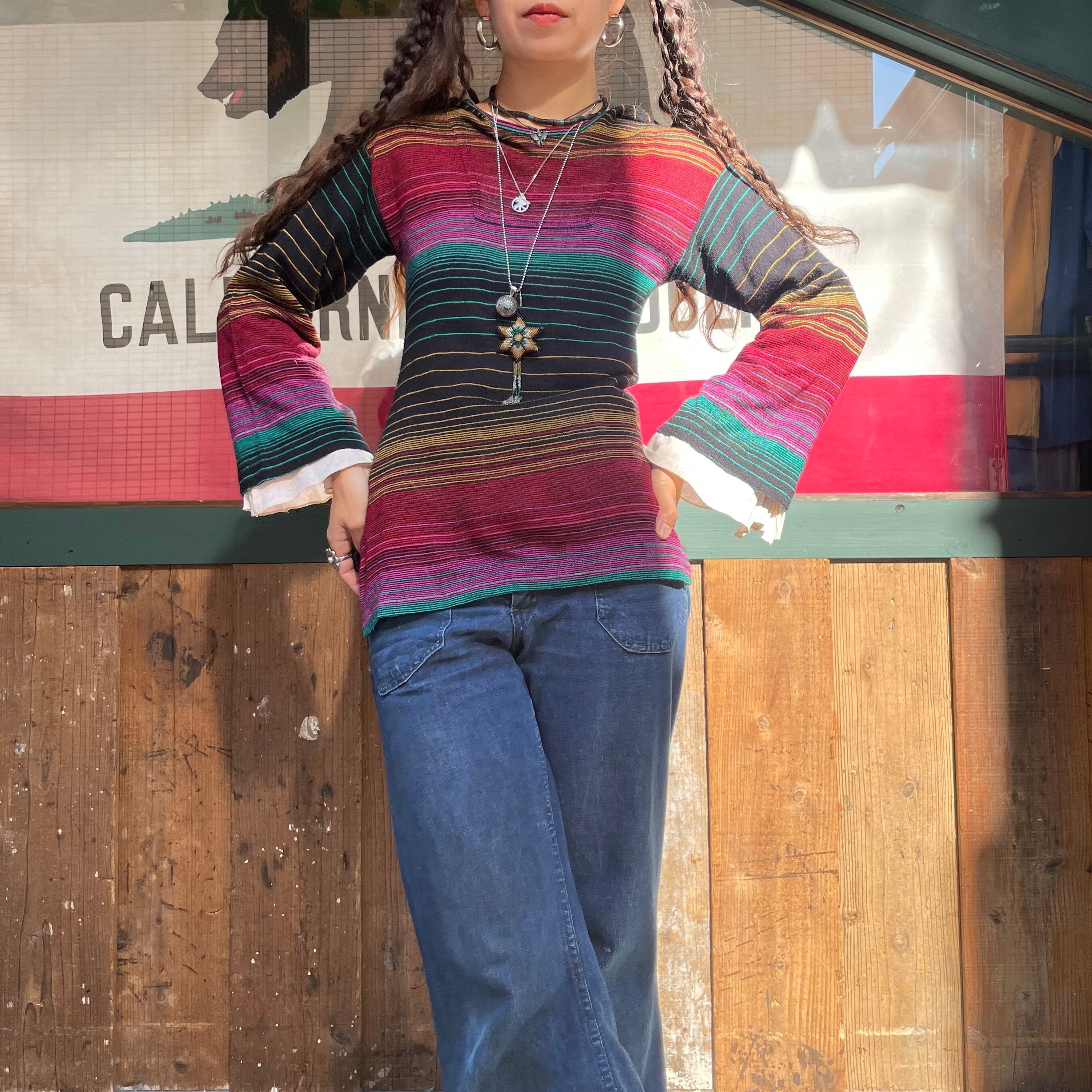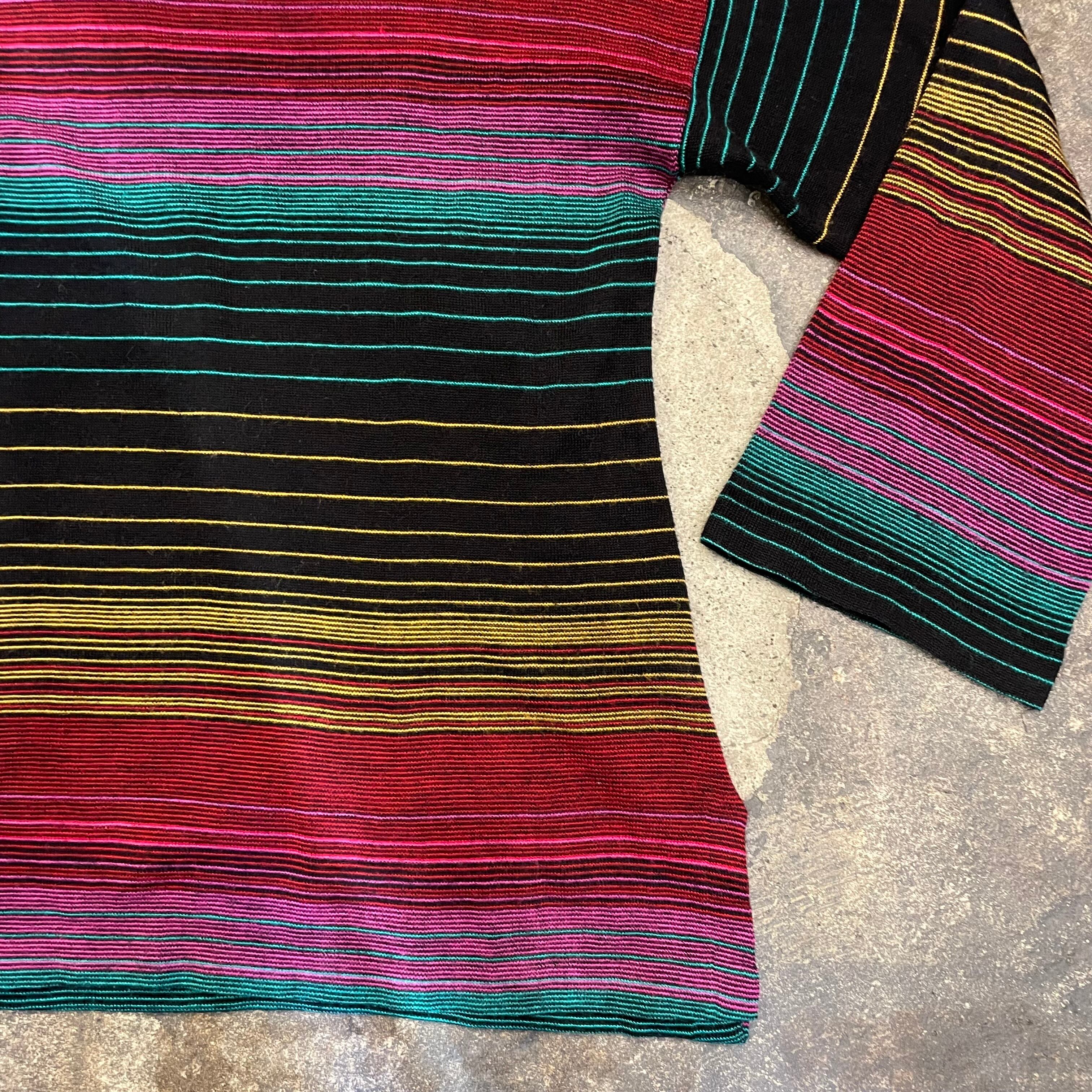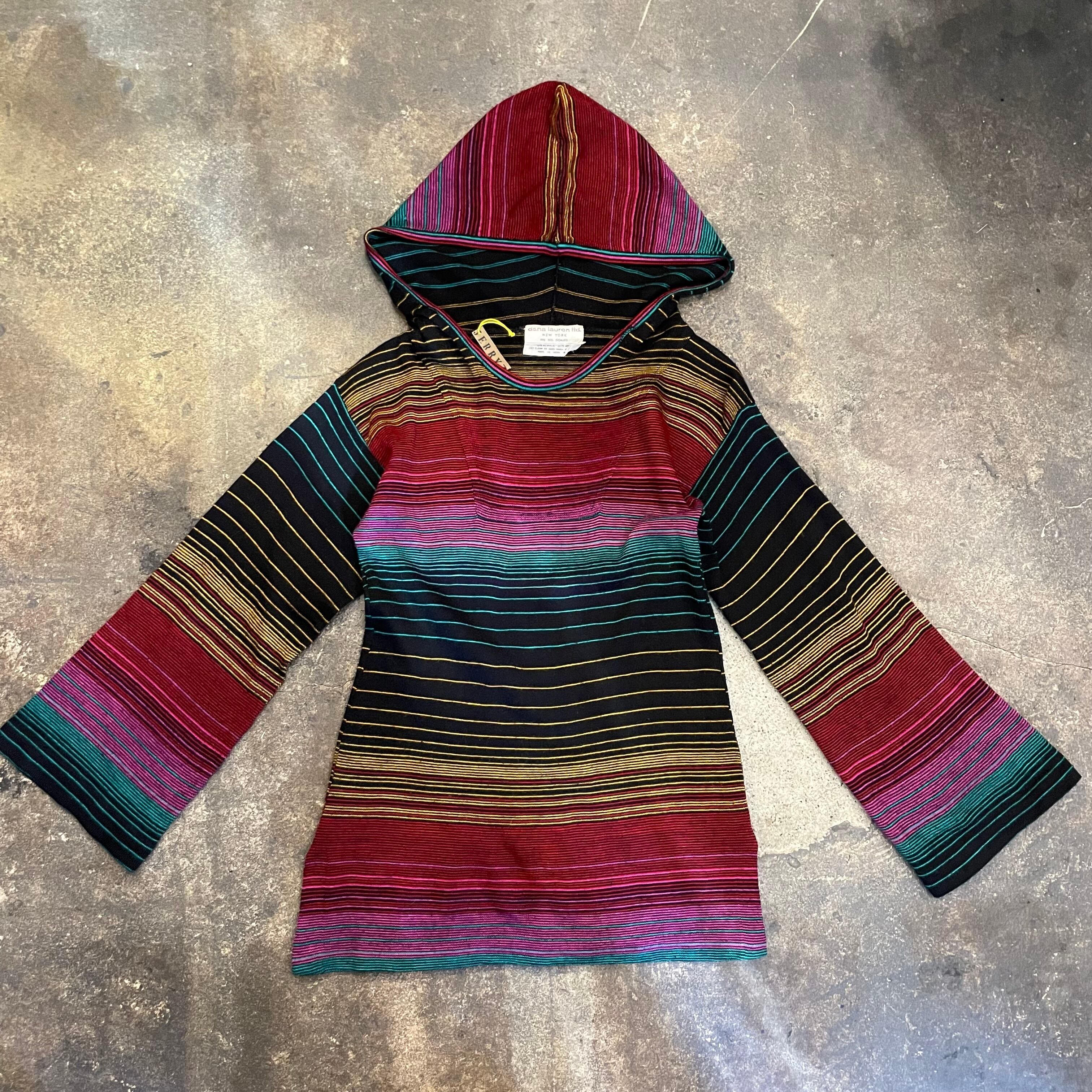 黒ベースに細かいボーダーがかわいい、70-80年代頃のニットパーカーです。