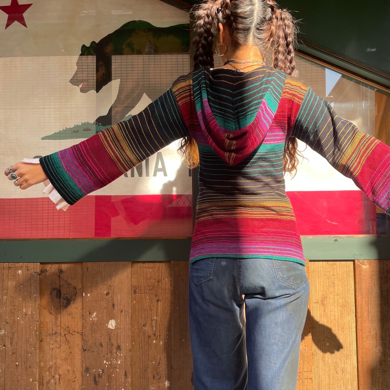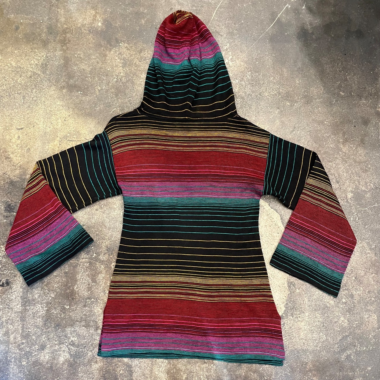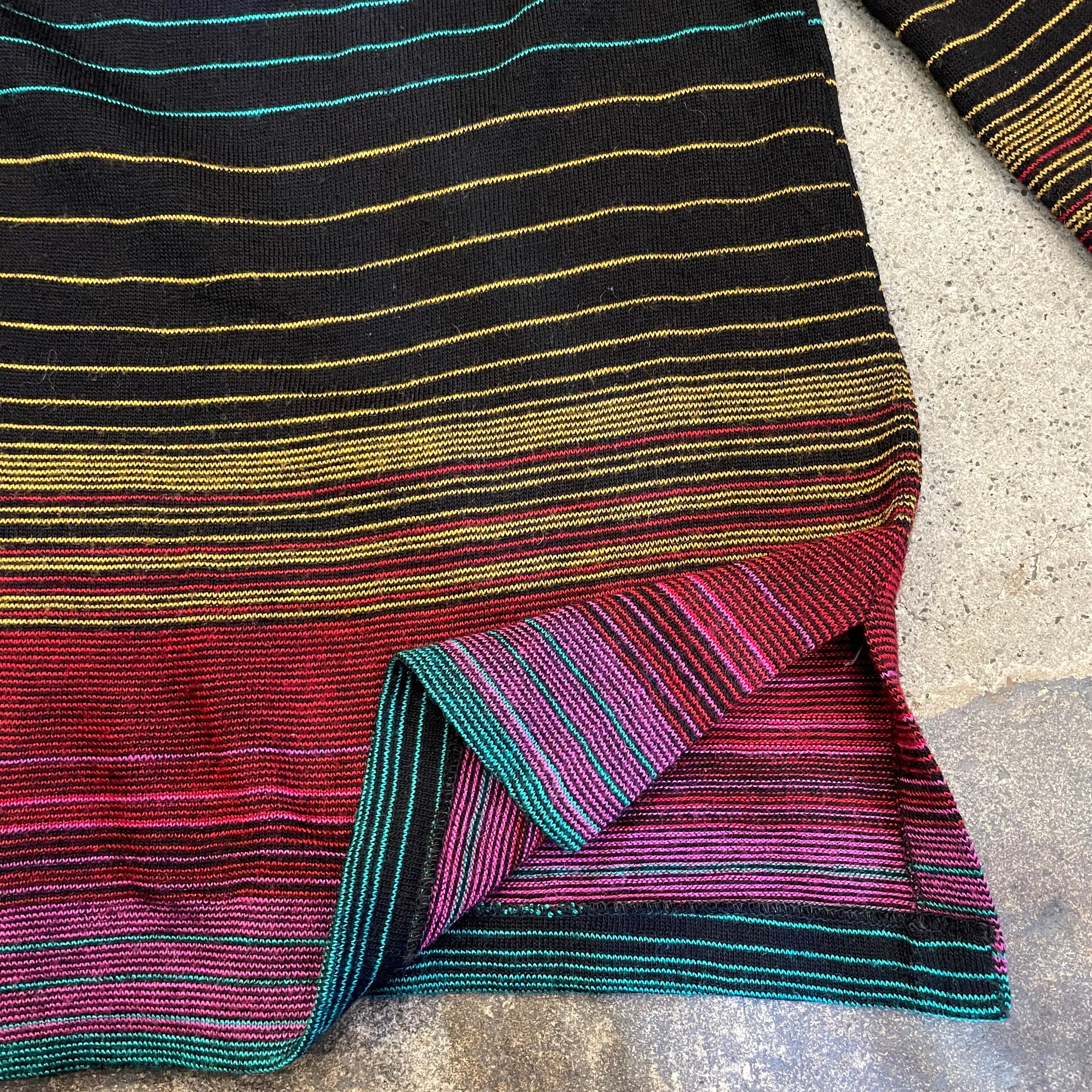 黒ベースに細かいボーダーがかわいい、70-80年代頃のニットパーカーです。