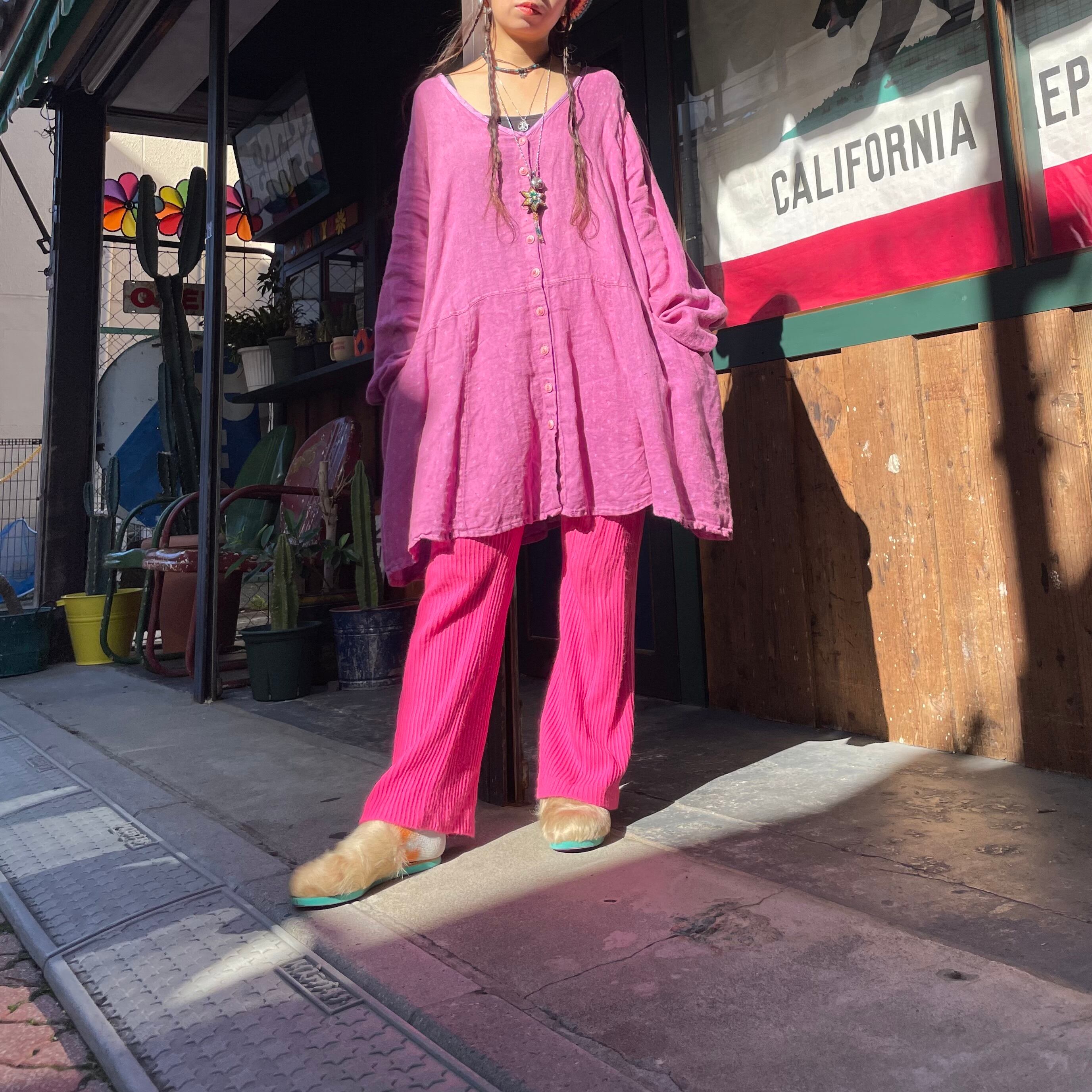サイズがかなり大きめですのでゆったりズルッとだらしなくきてもかわいいですし、袖を捲ったりベルトをしても可愛いと思います。