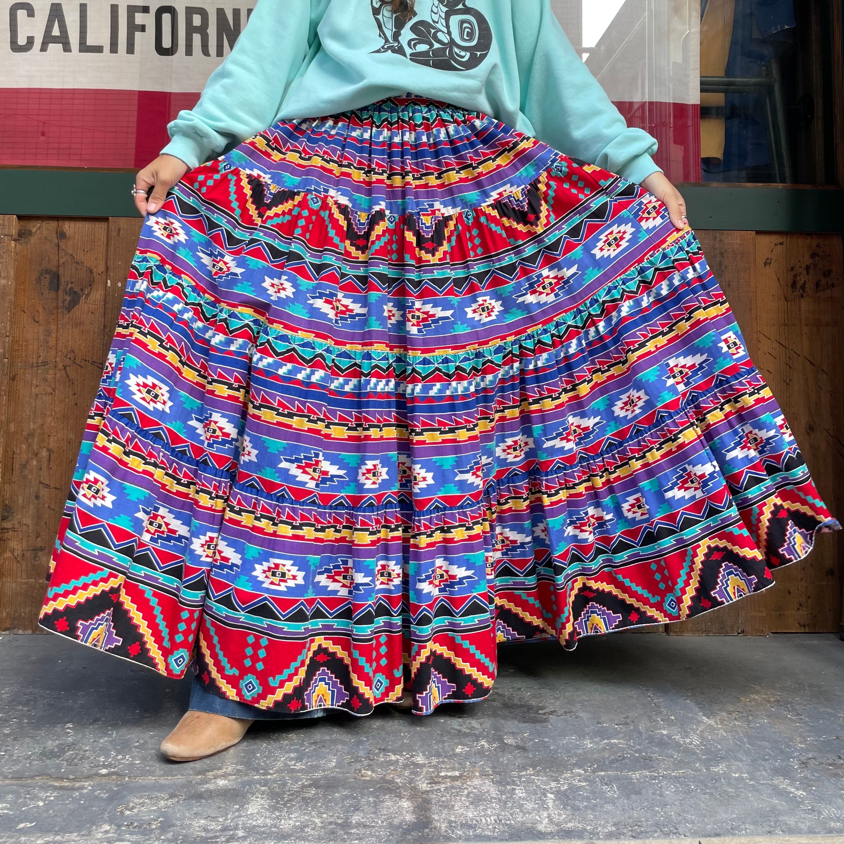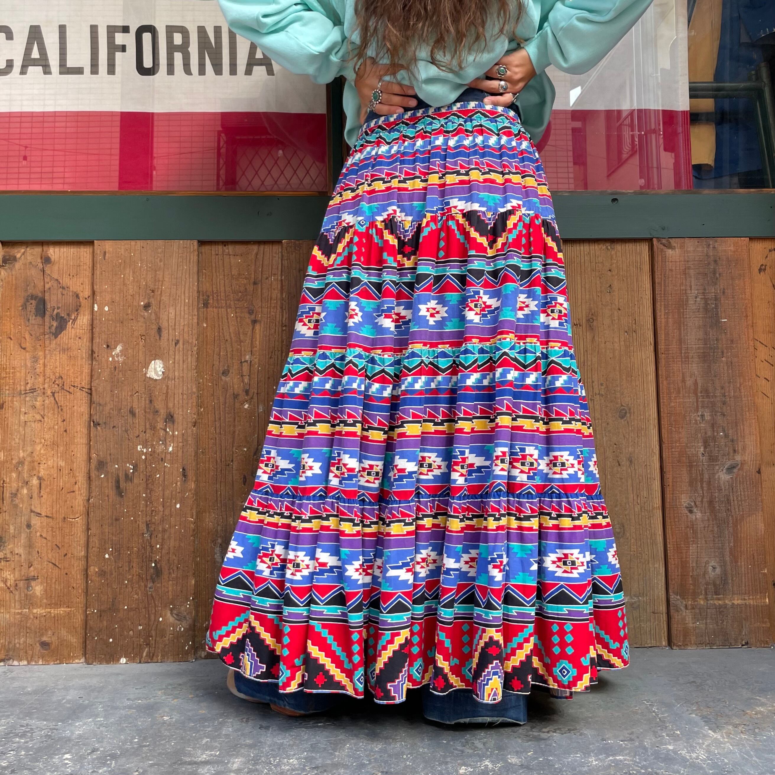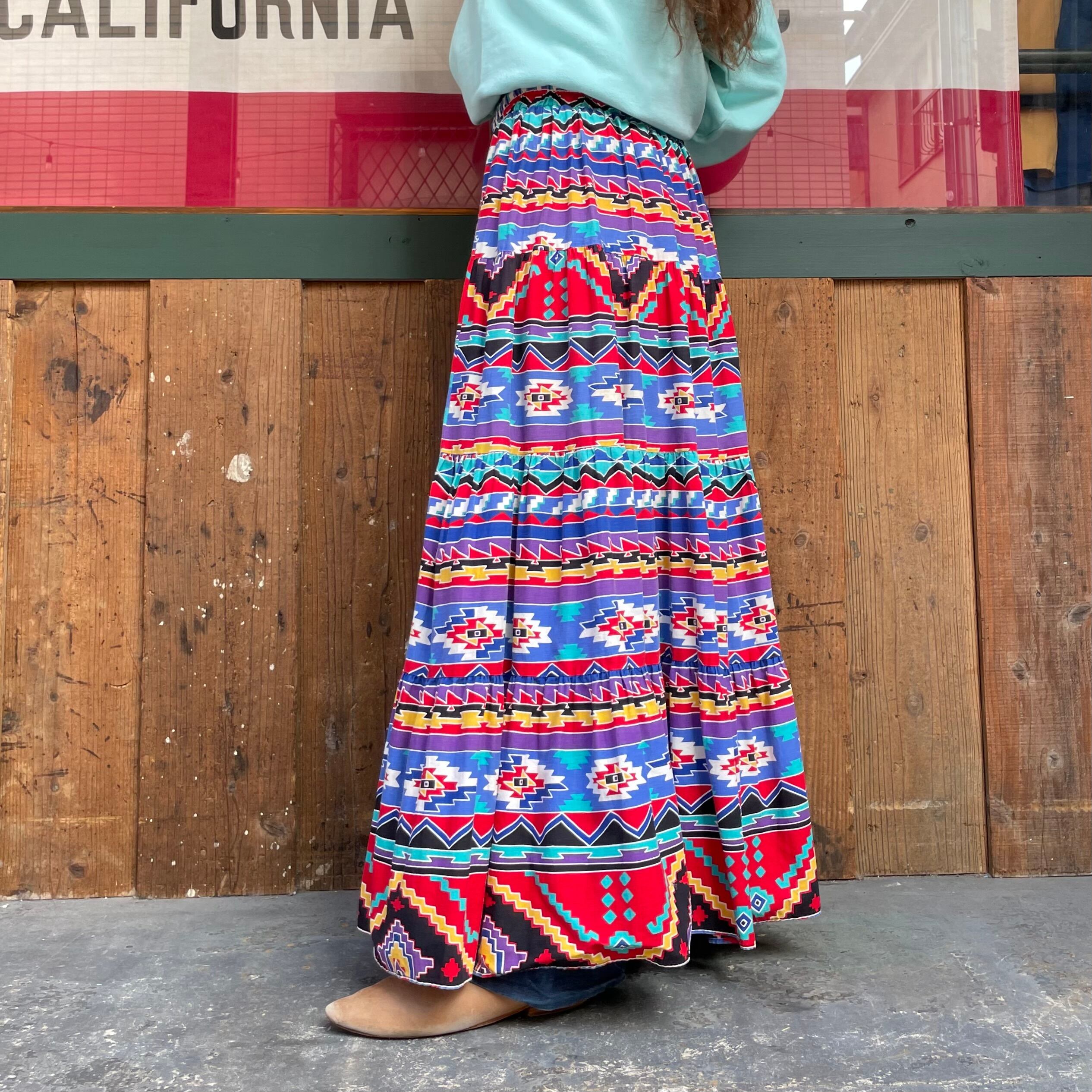 ネイティブ柄がかわいいコットン素材のティアードロングスカートです。