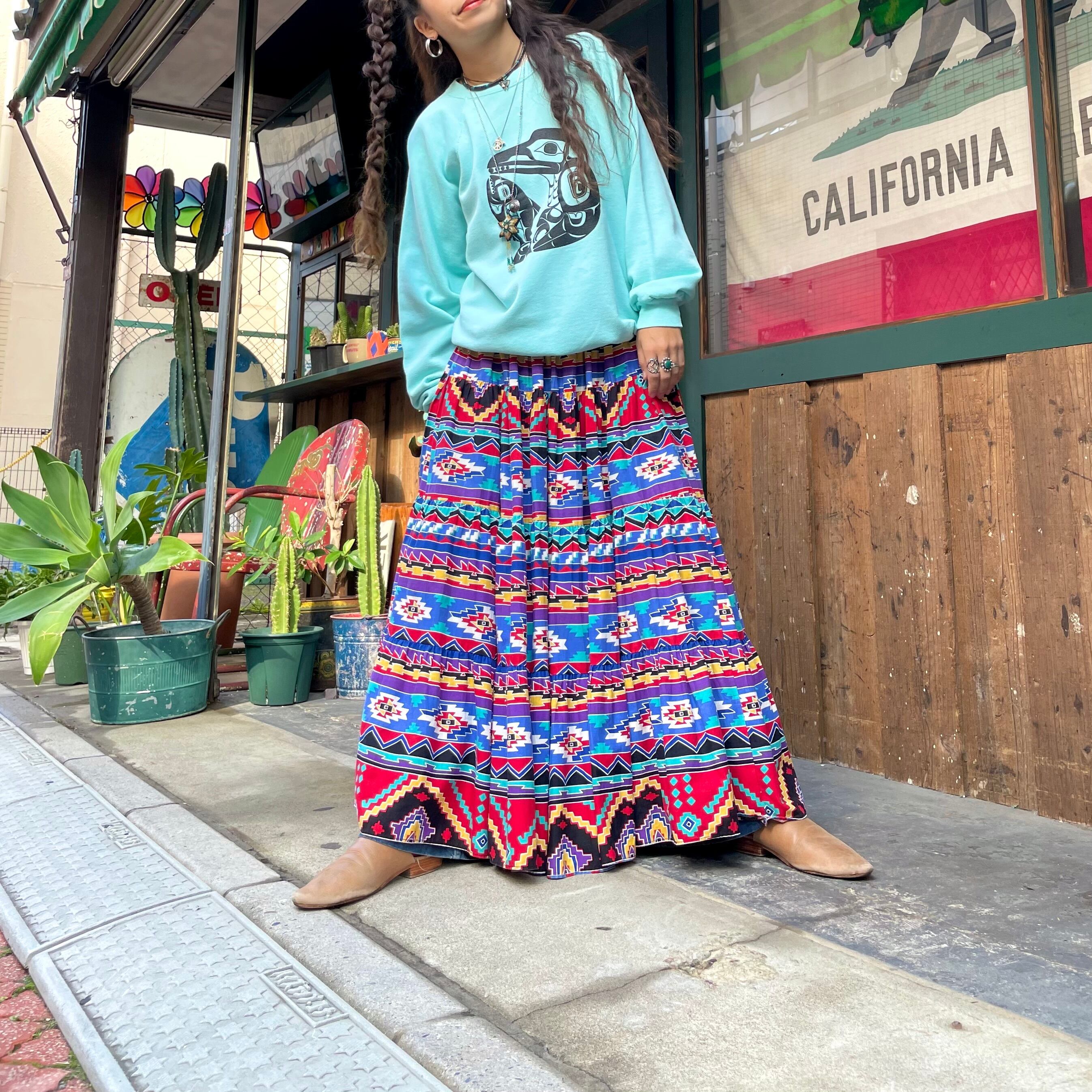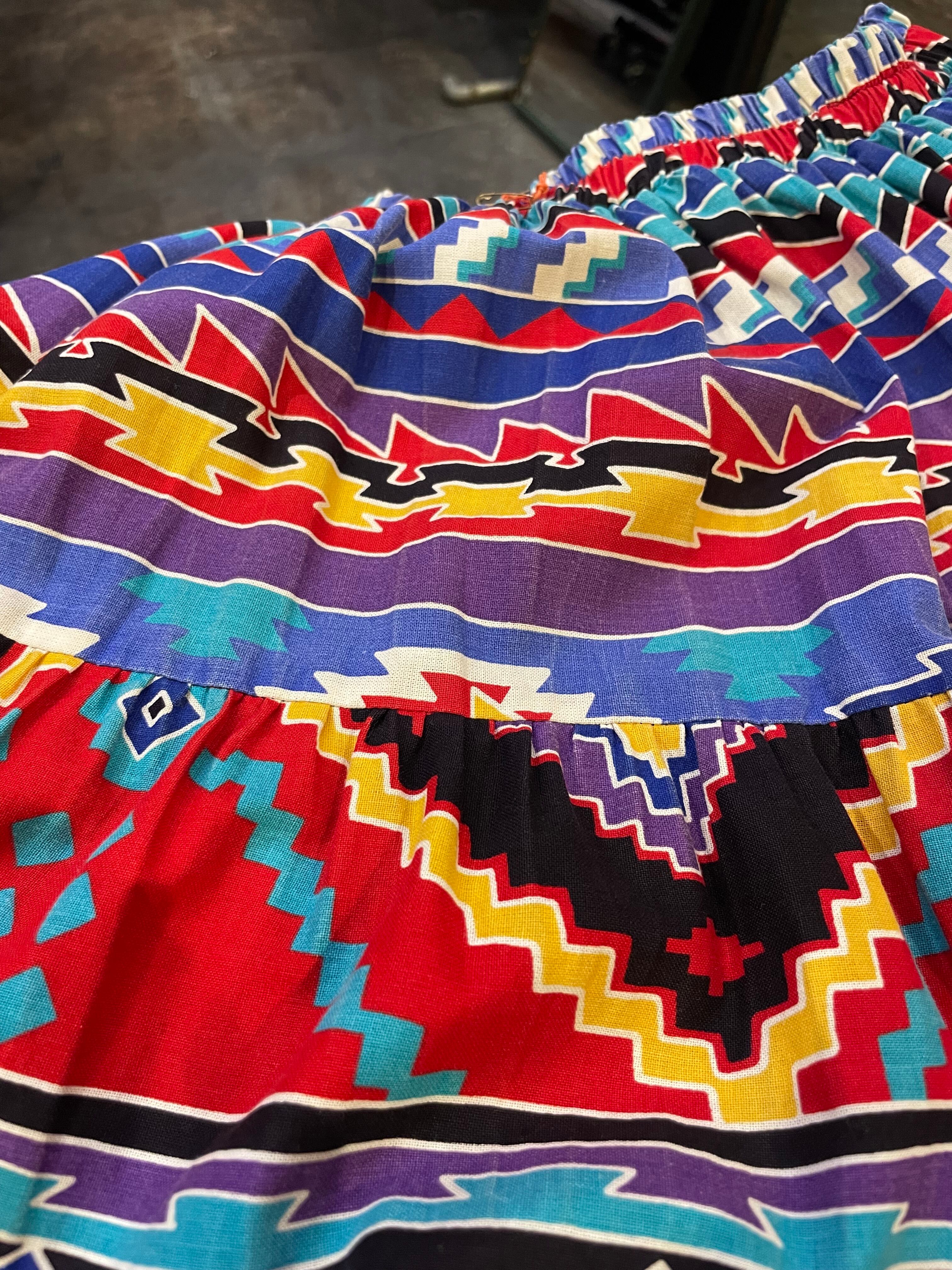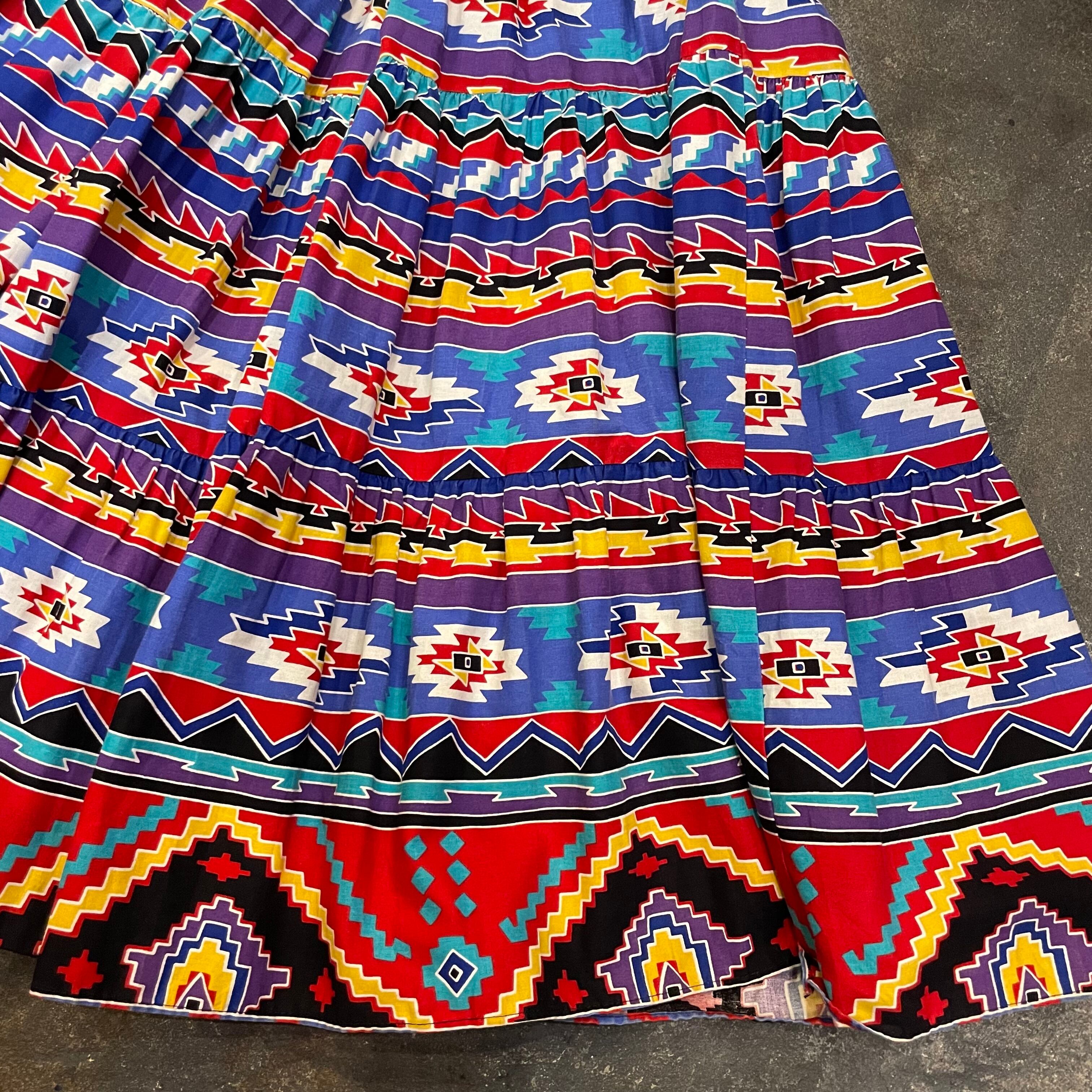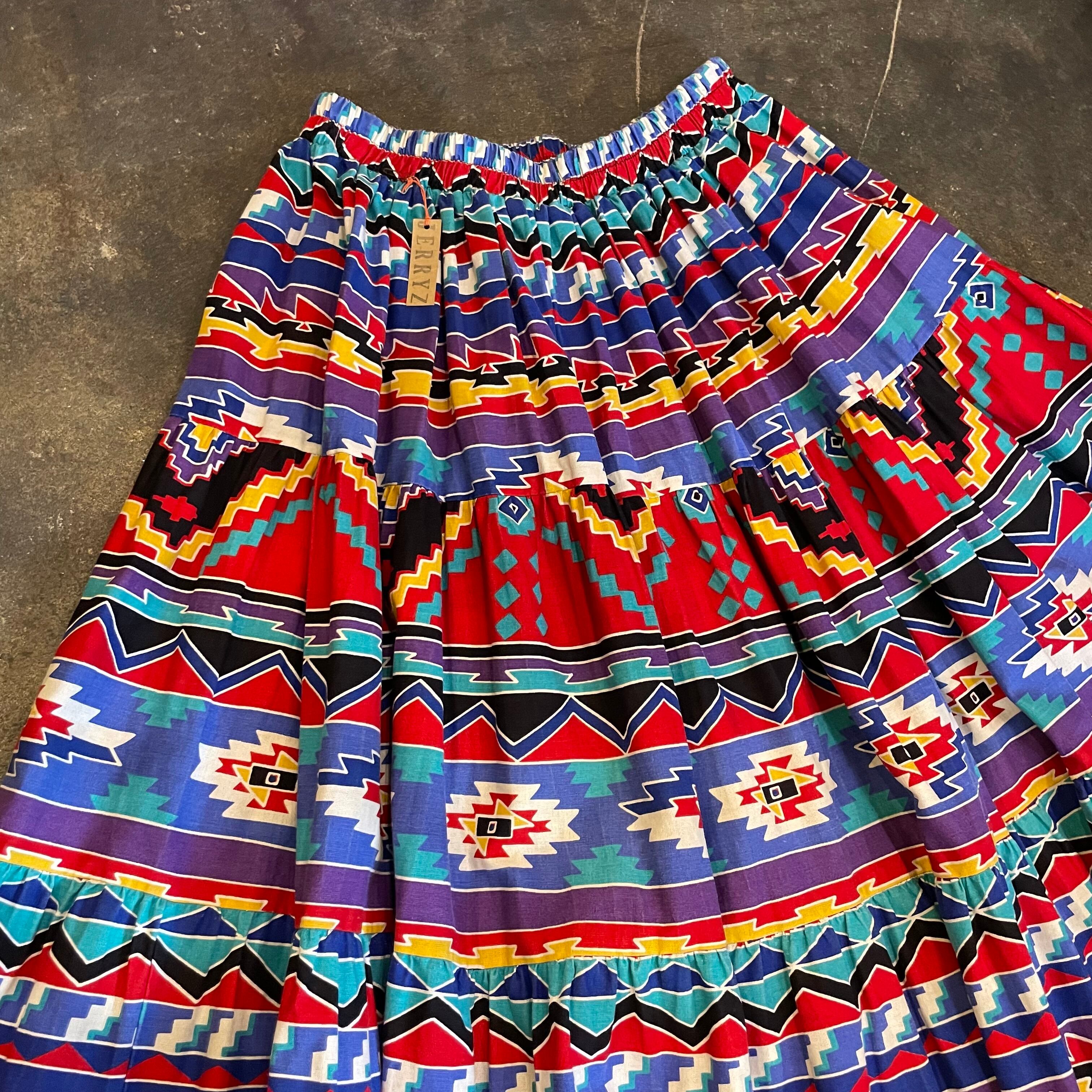 ネイティブ柄がかわいいコットン素材のティアードロングスカートです。