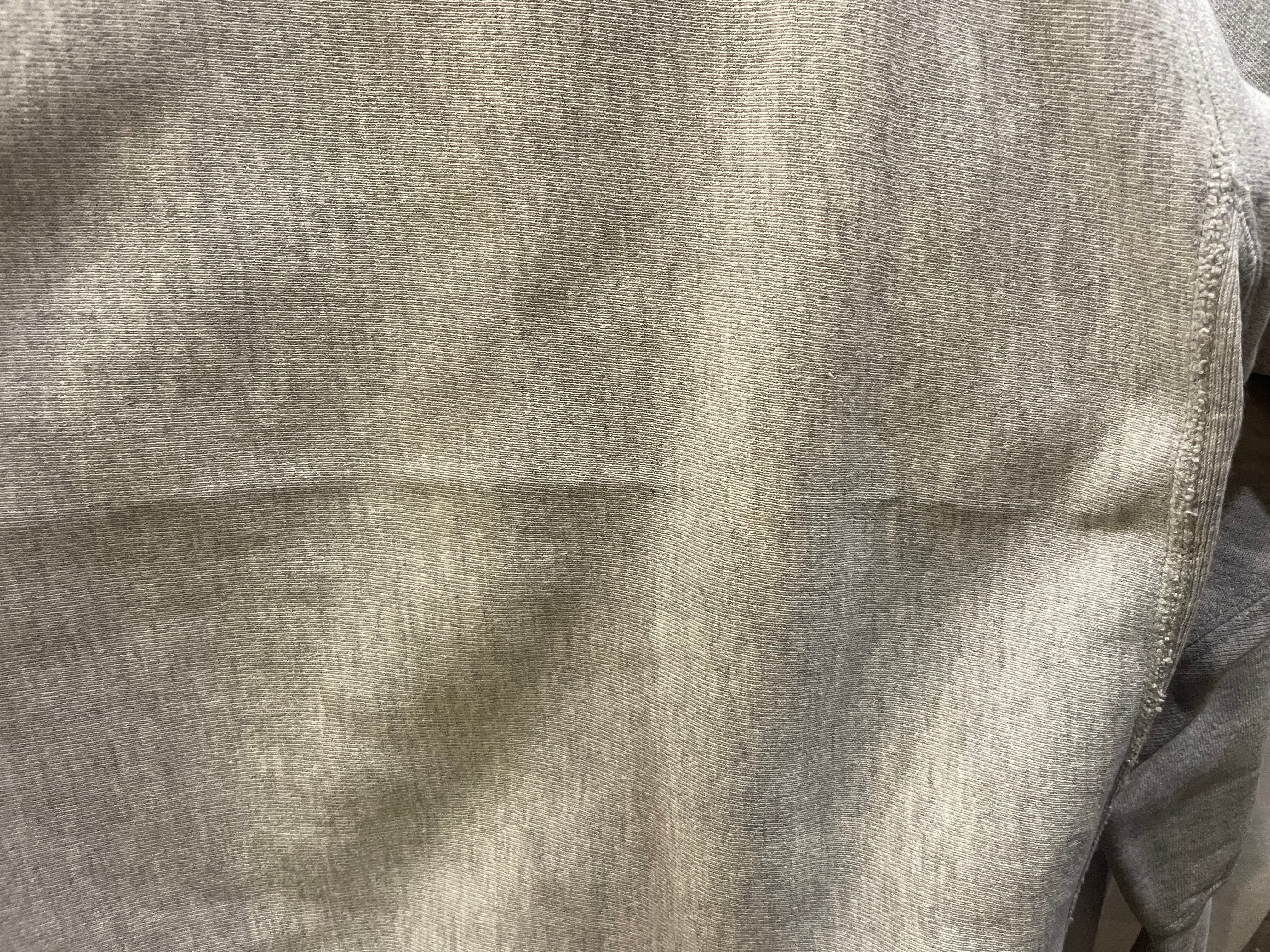 リバースウィーブのガシッと厚みのある素材感は暖かいですし、着ていて安心感のあるスウェットです。男女問わずおすすめです!