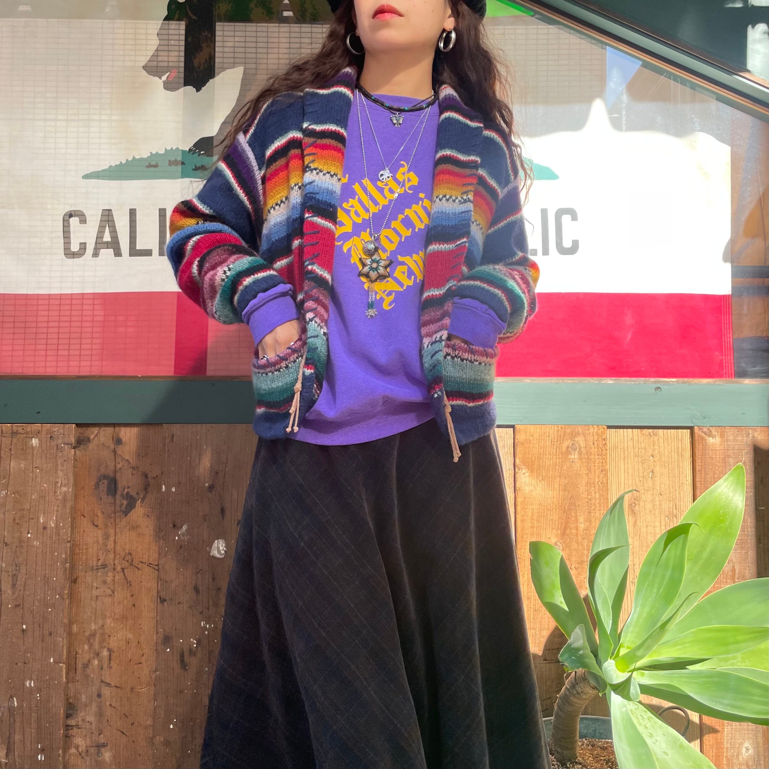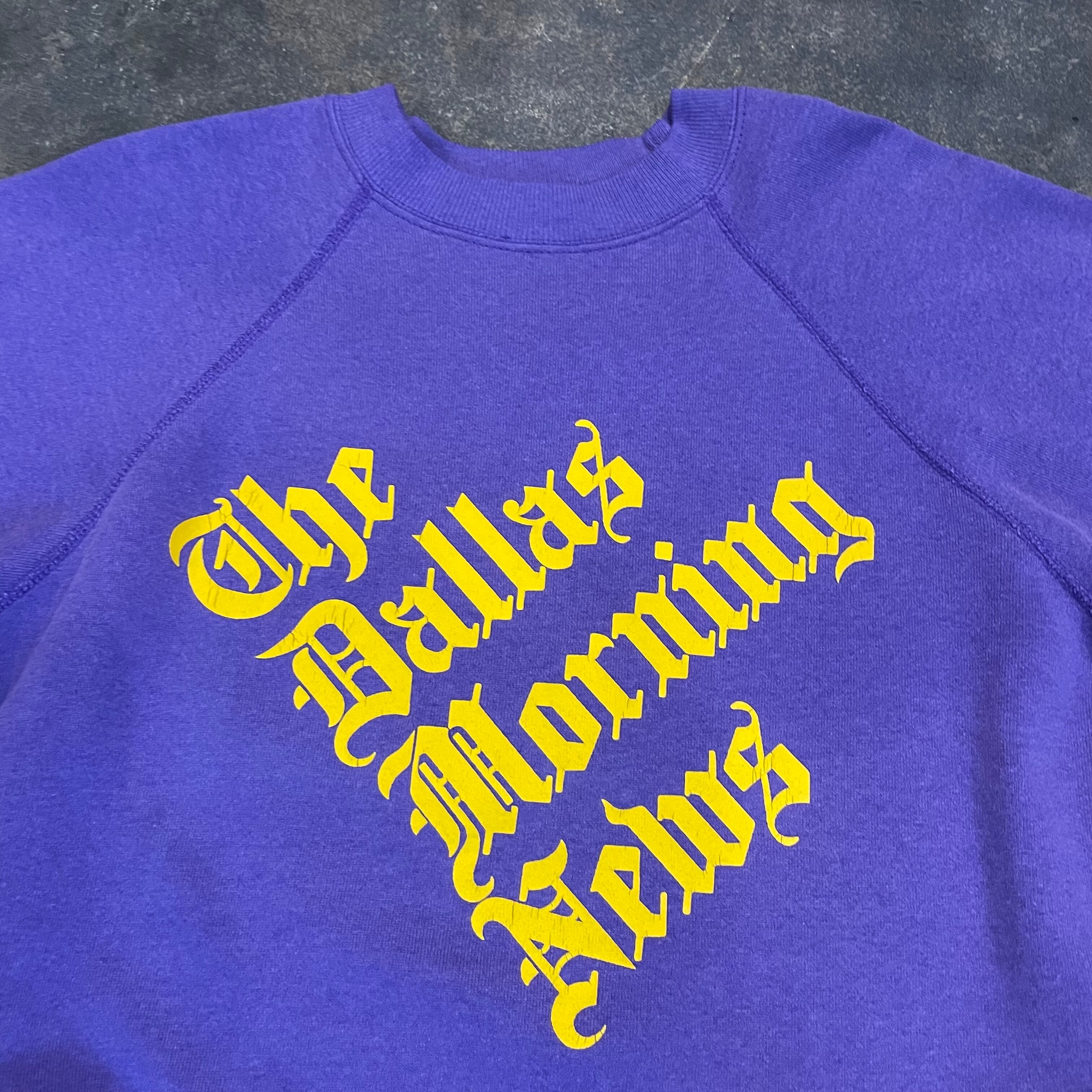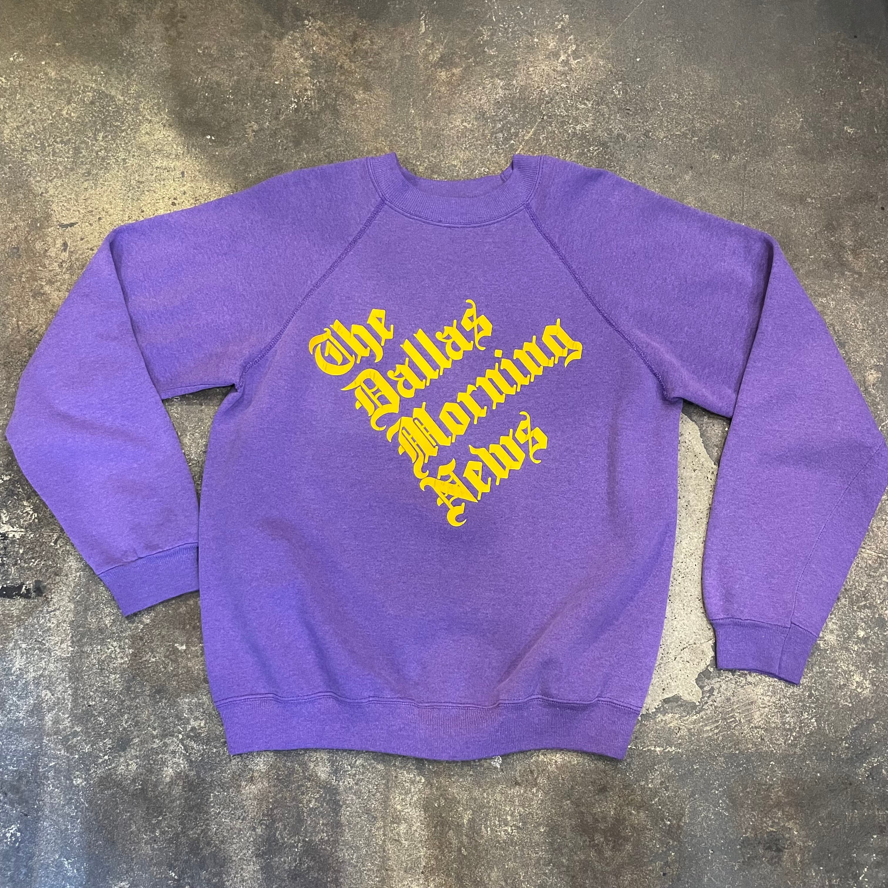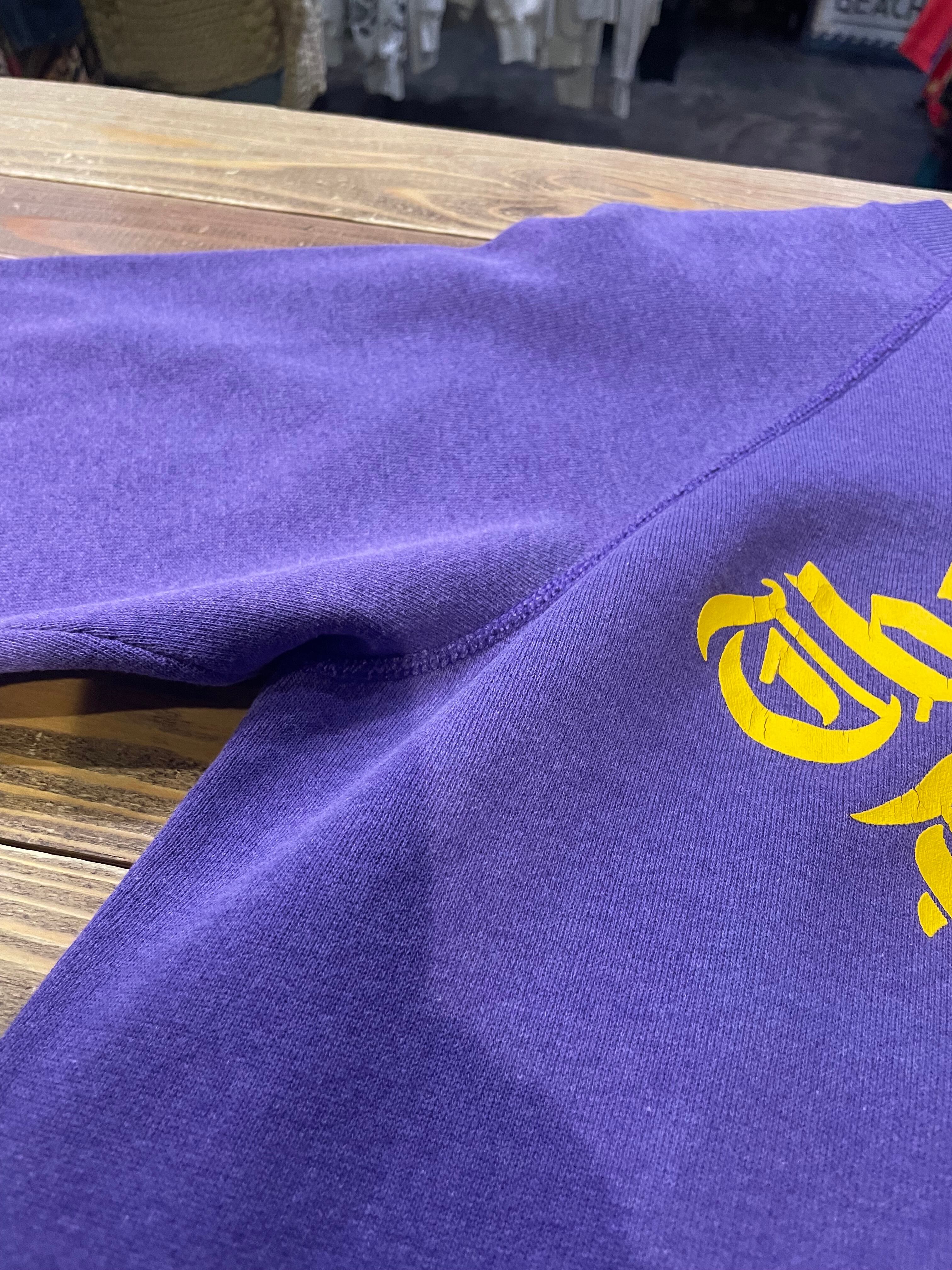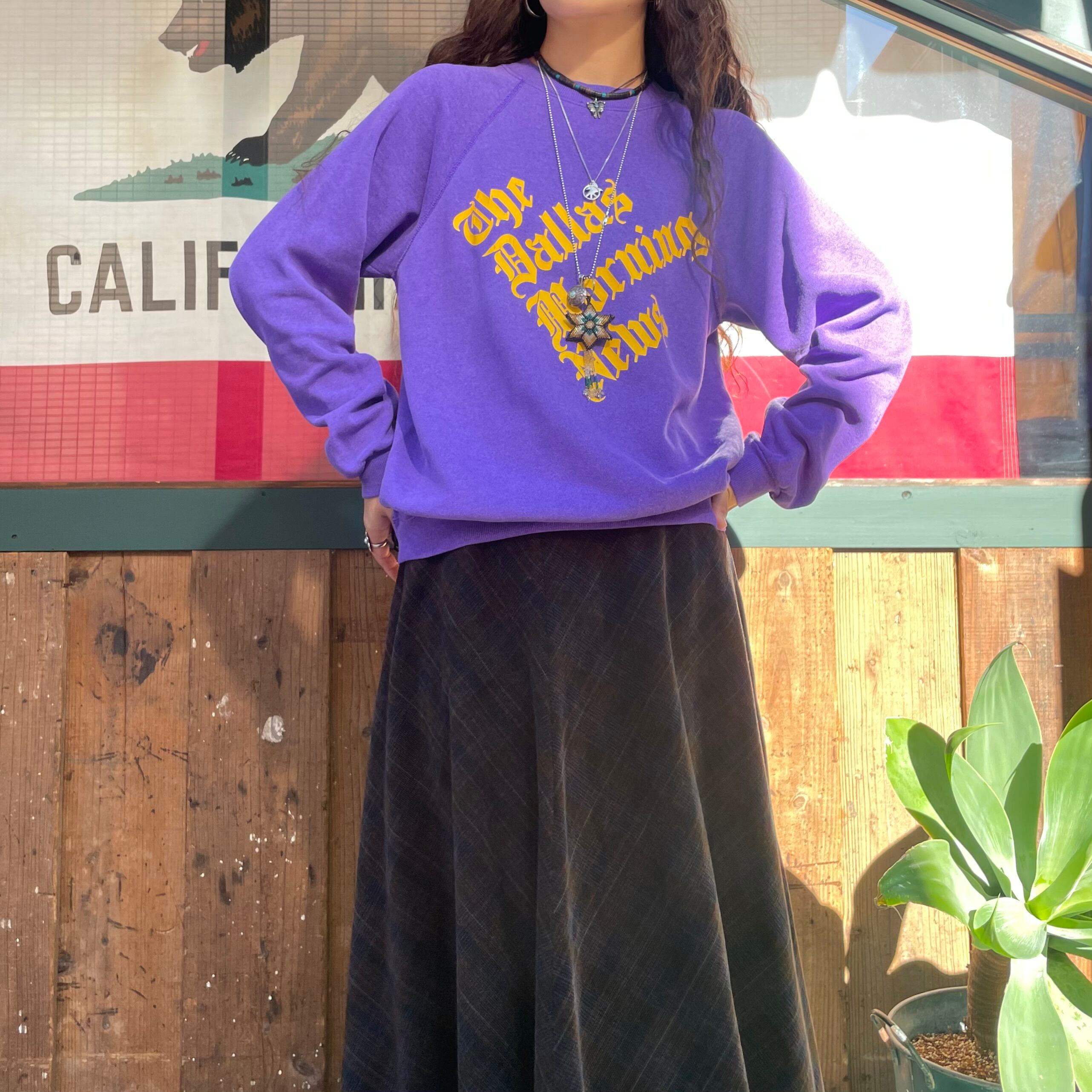 紫ボディに黄色のプリントがかわいい80年代USA製のスウェットです。