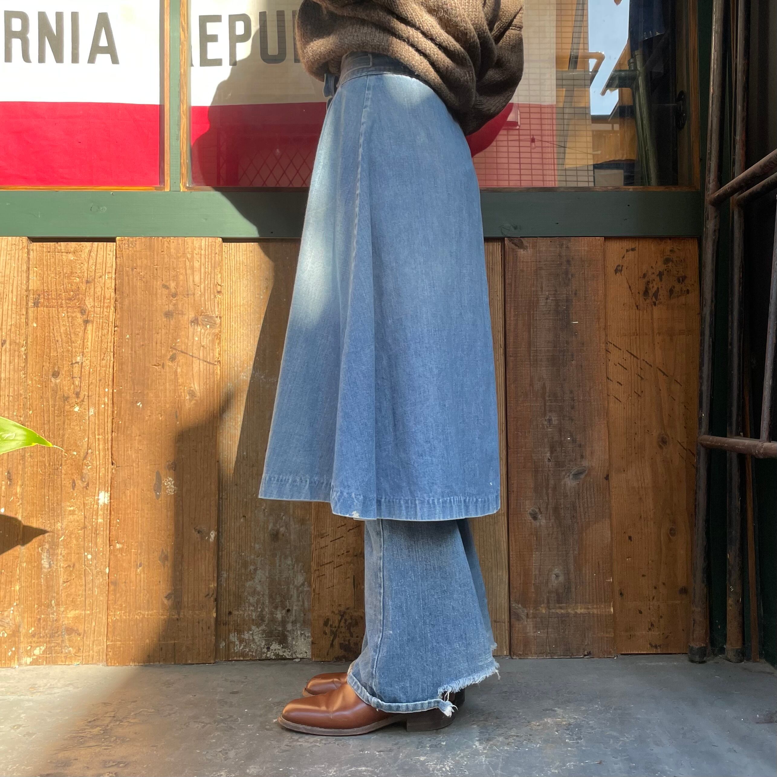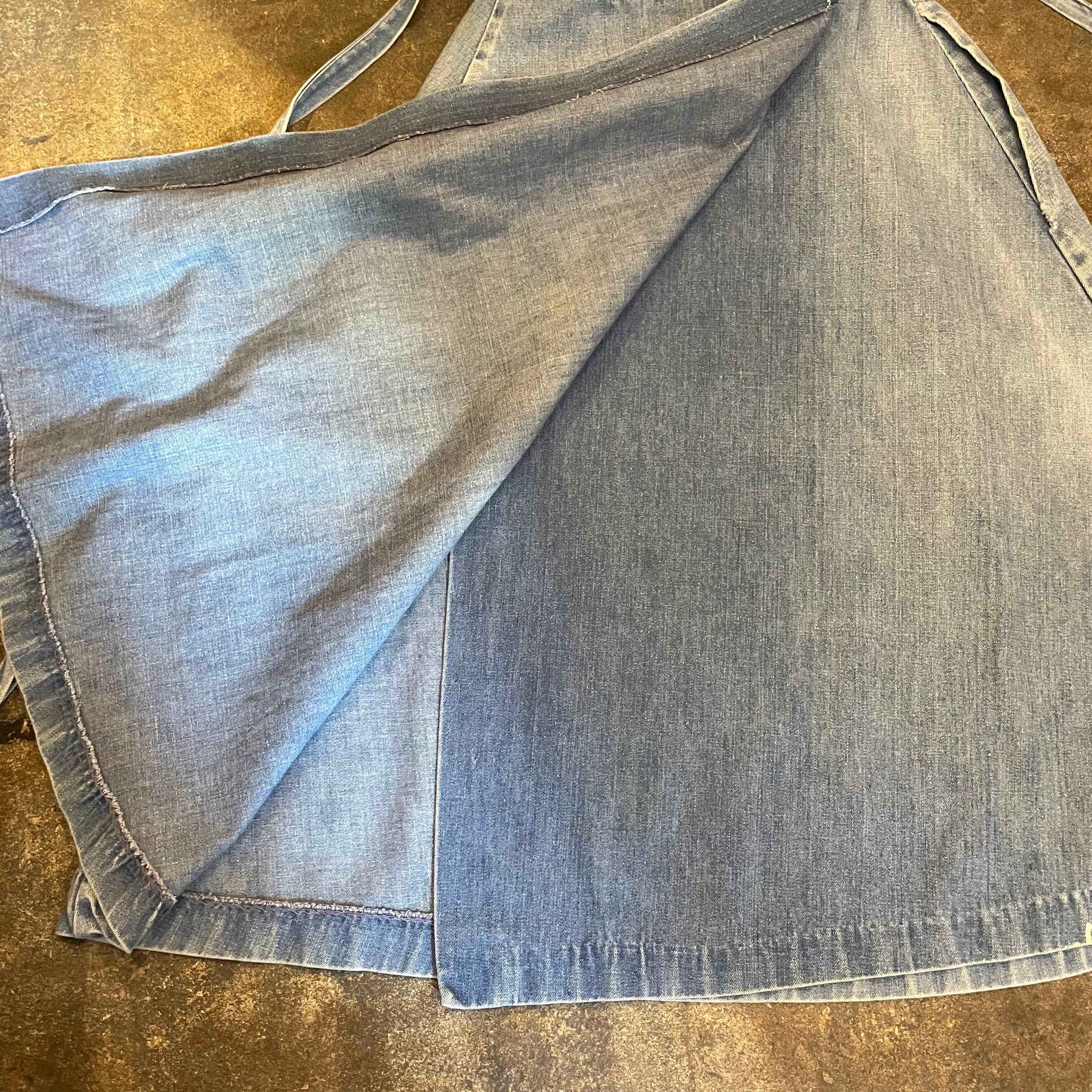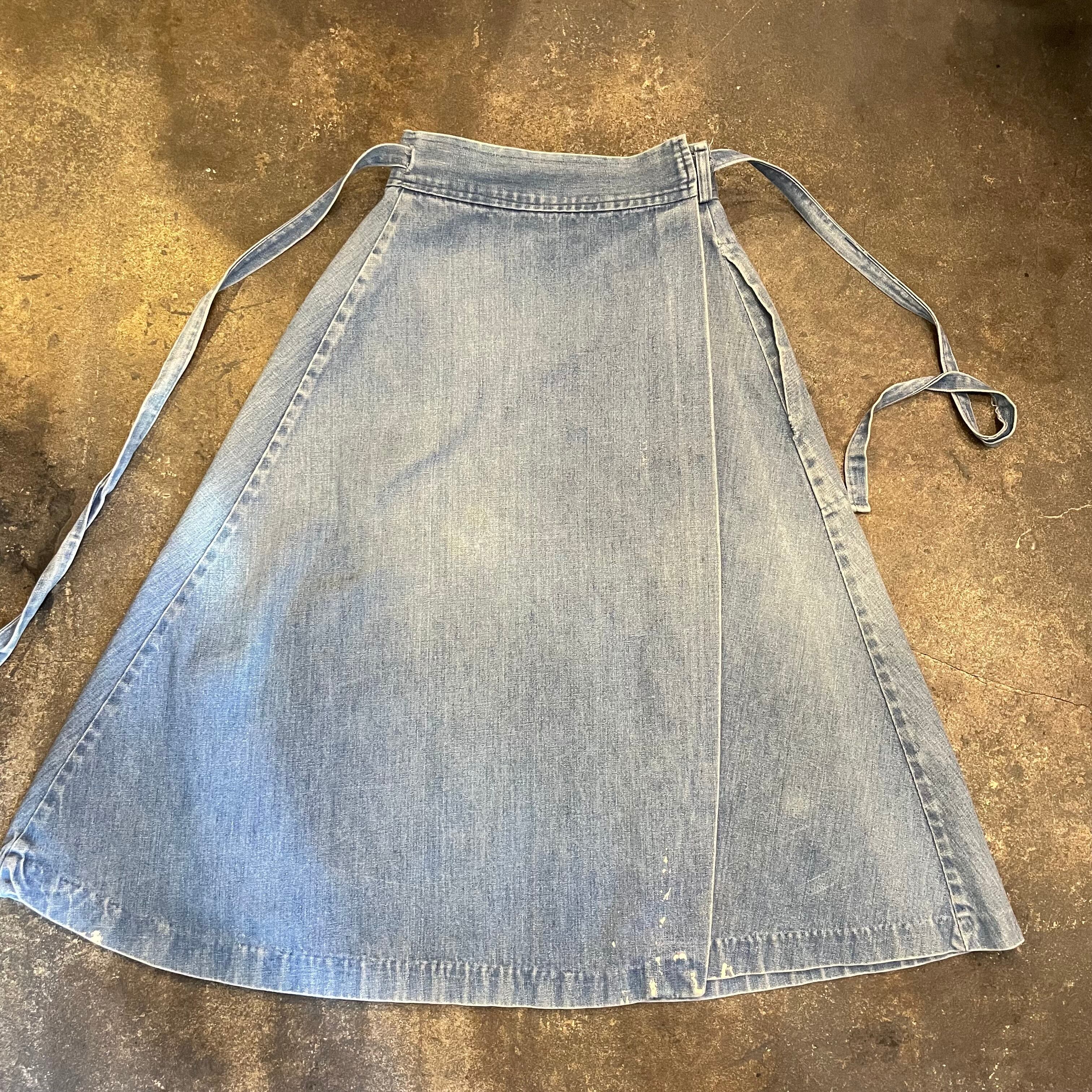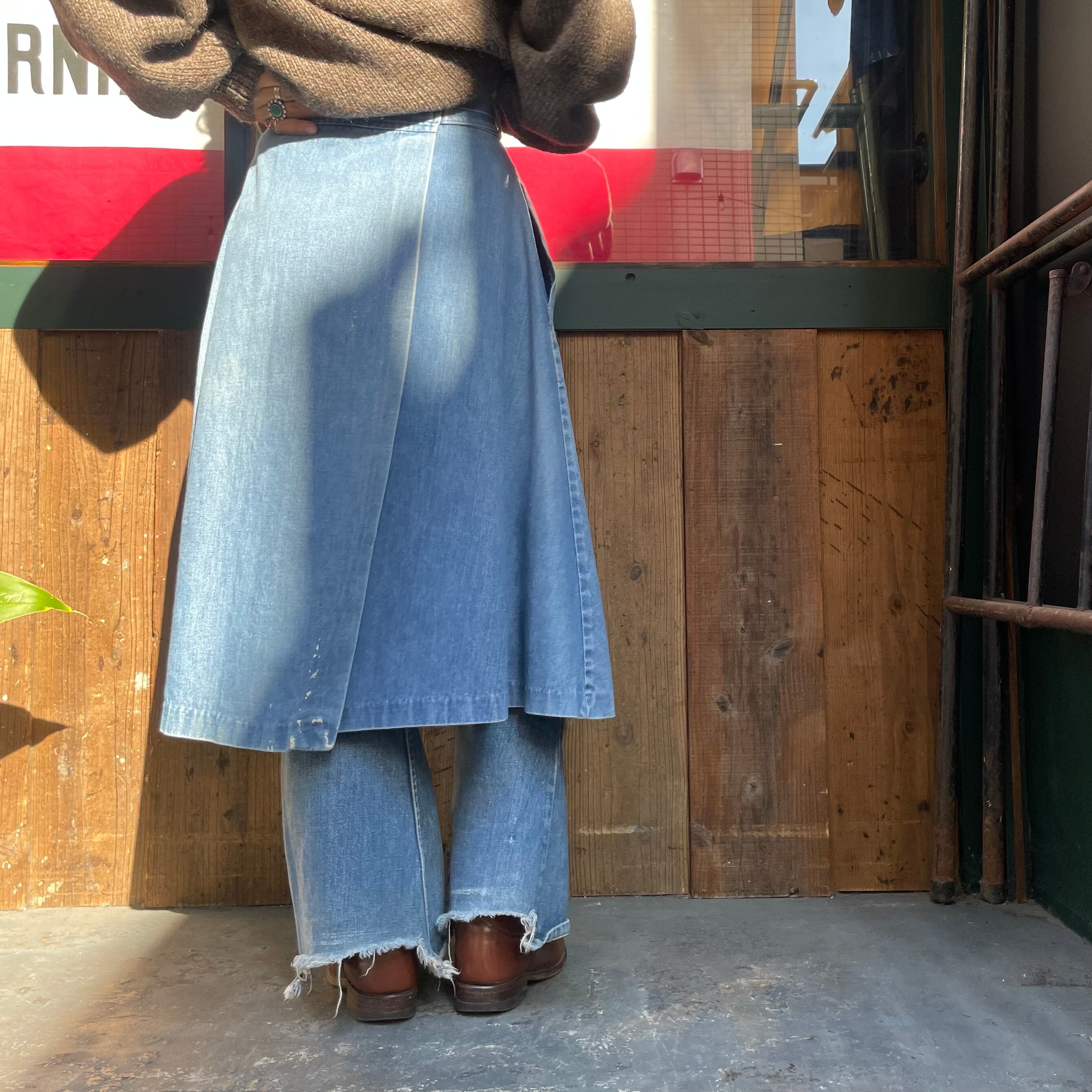 色褪せやペンキなどが程よく雰囲気があってかっこよくてかわいいデニムの巻きスカートです。