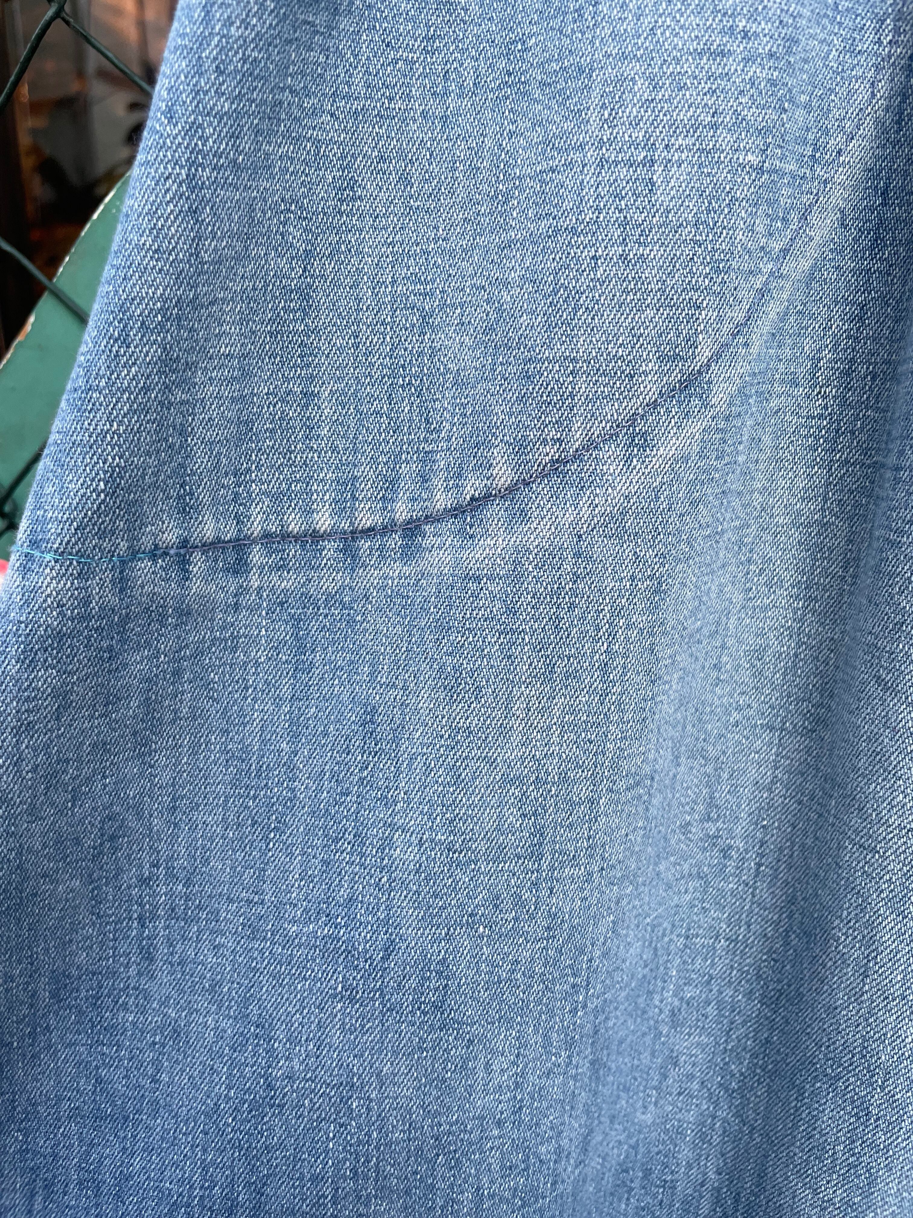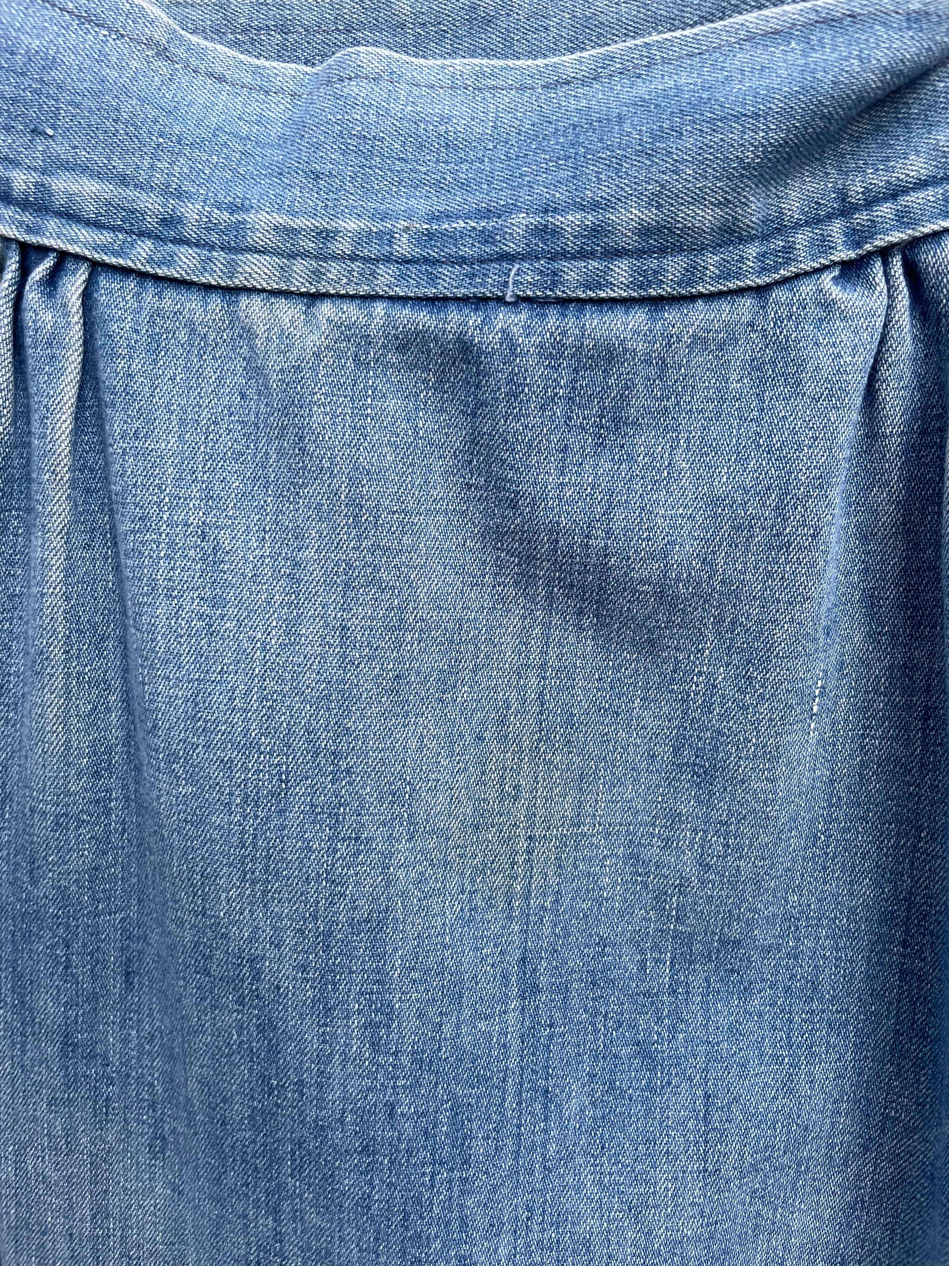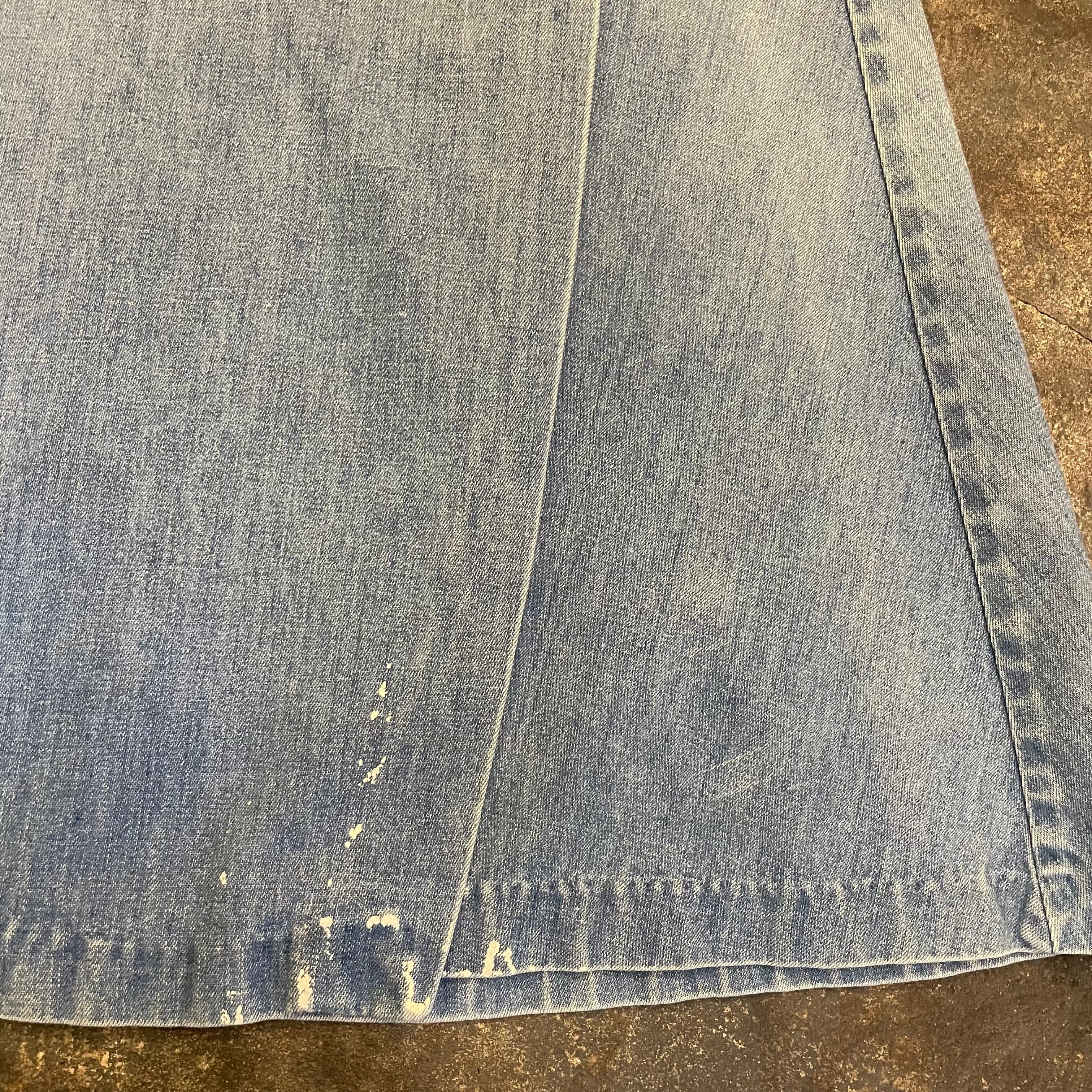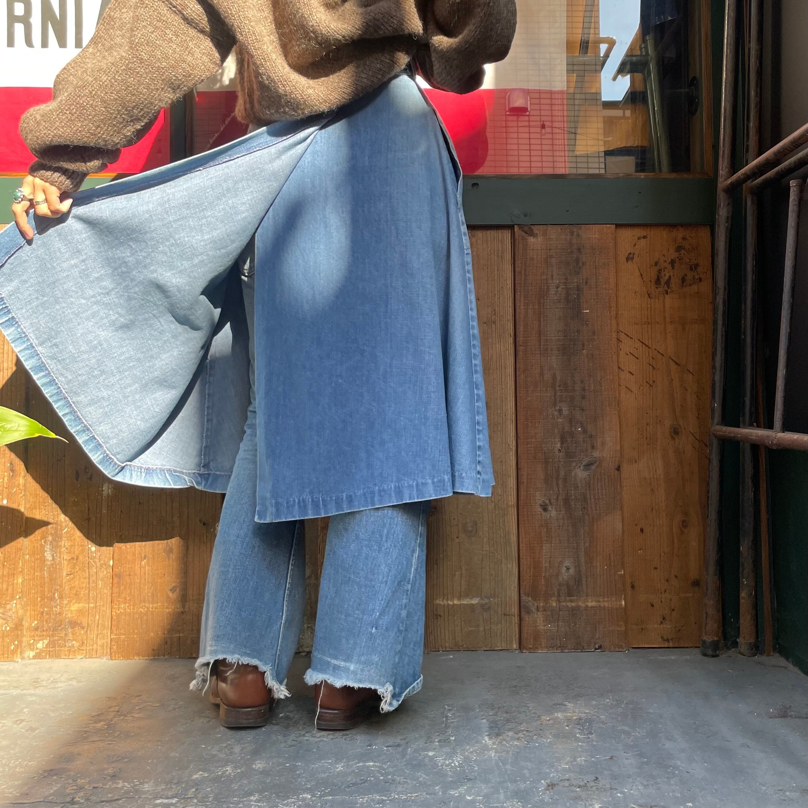 色褪せやペンキなどが程よく雰囲気があってかっこよくてかわいいデニムの巻きスカートです。