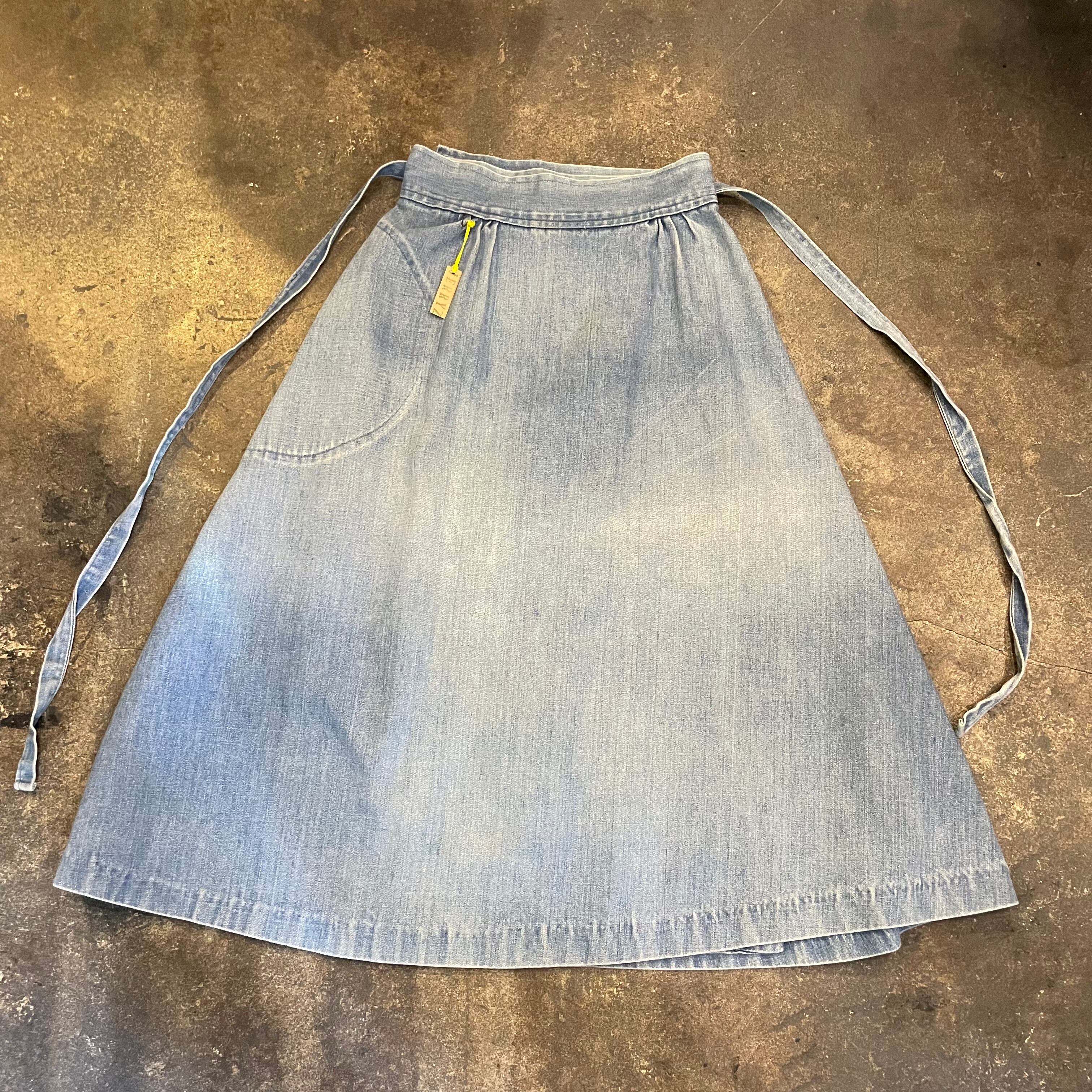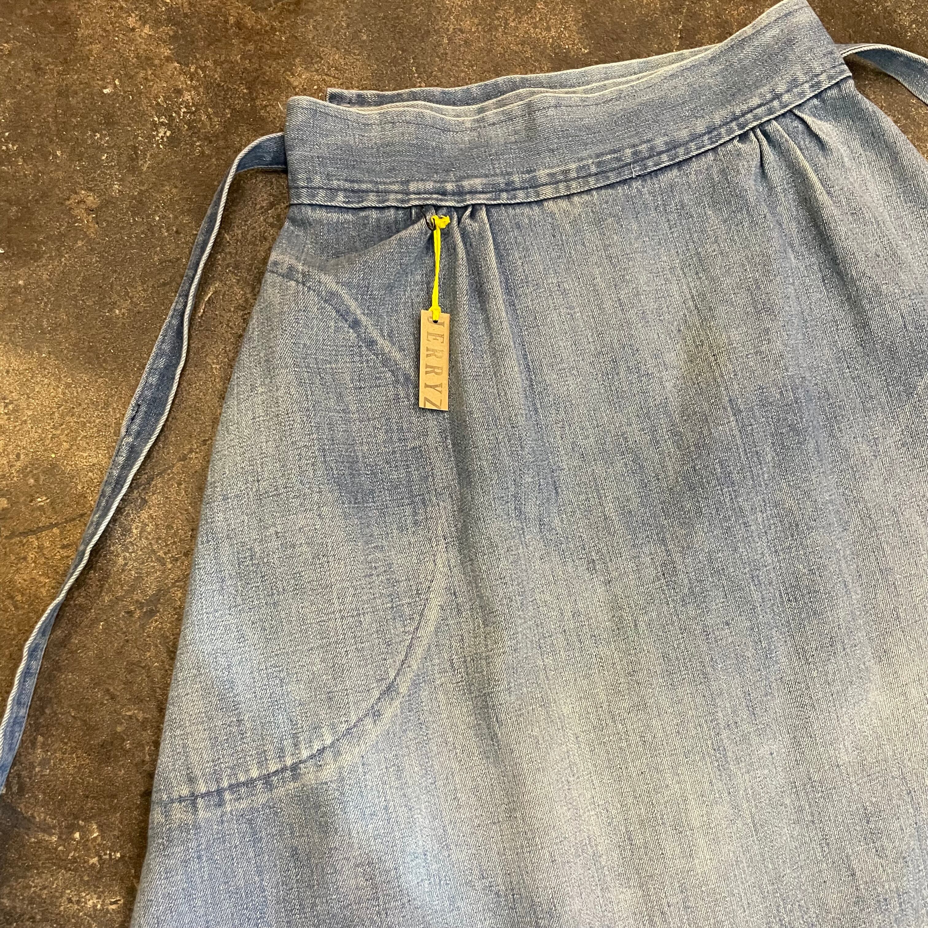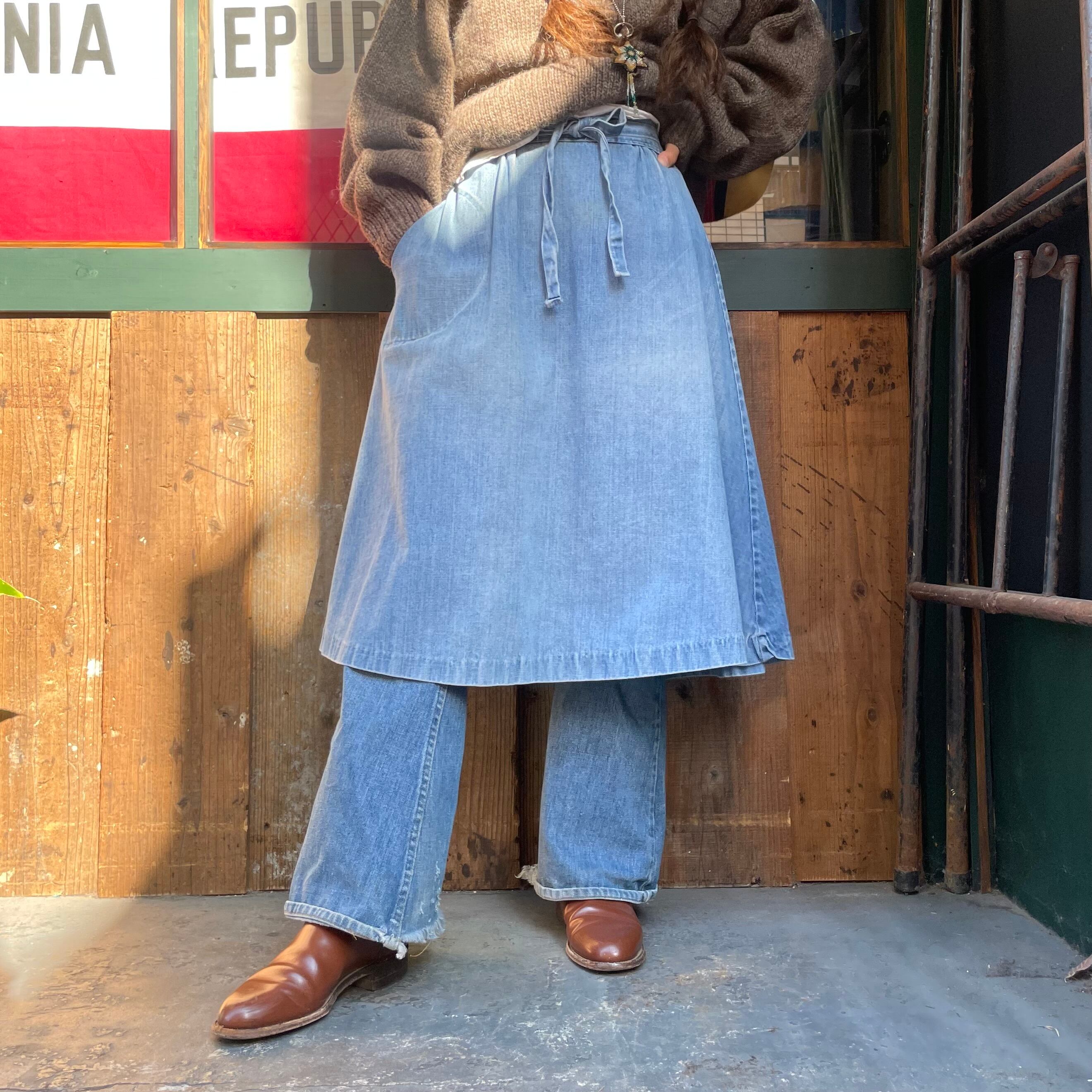 デニムの巻きスカートはエプロンのような気持ちで重ね着出来て、スカートなんだけどボーイッシュな雰囲気が出せる楽しいアイテムだと思います。