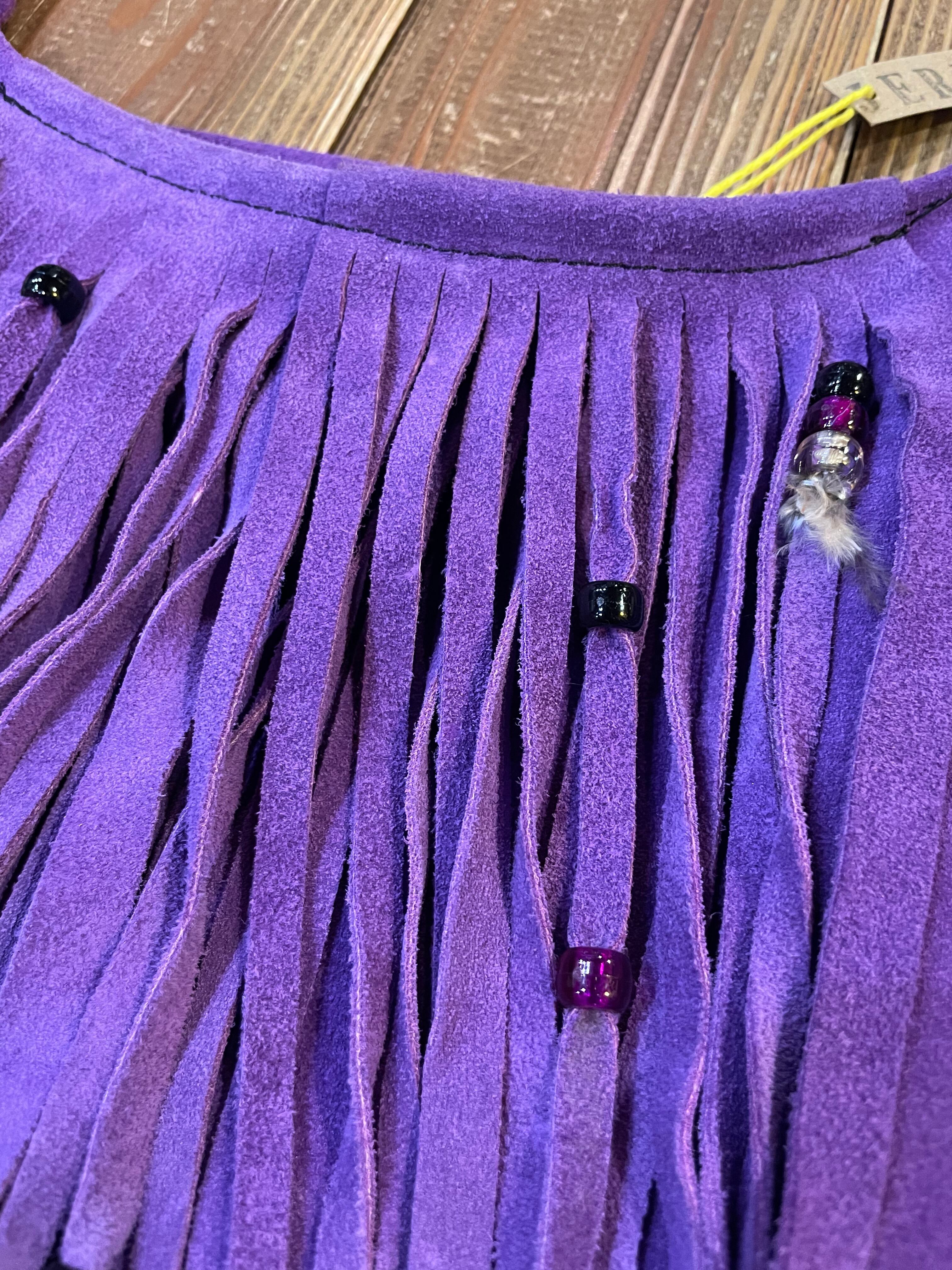 胸元のフリンジにはビーズやフェザーが付いていたり、肩紐は結べるタイプで調節が可能な上に紐が肩から垂れていてかわいいです。