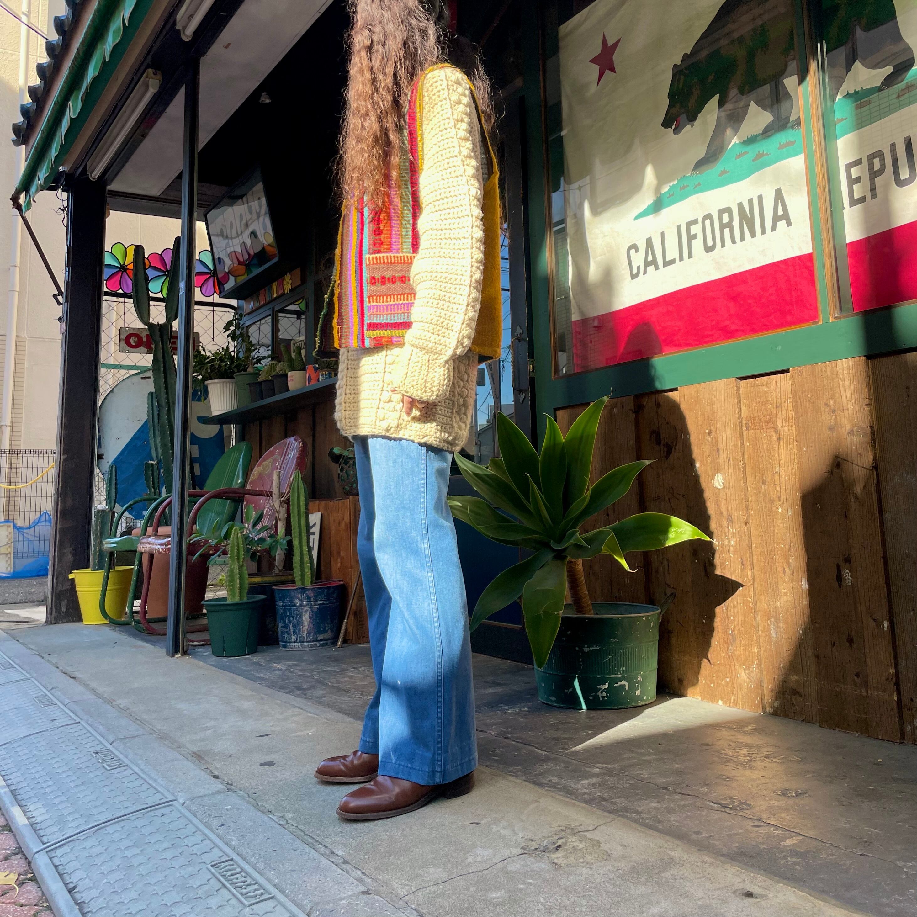 シルエットはベルボトムではなくバギーに近い感じで太もももゆとりがあるのでラフな感じで着ていただけると思います!