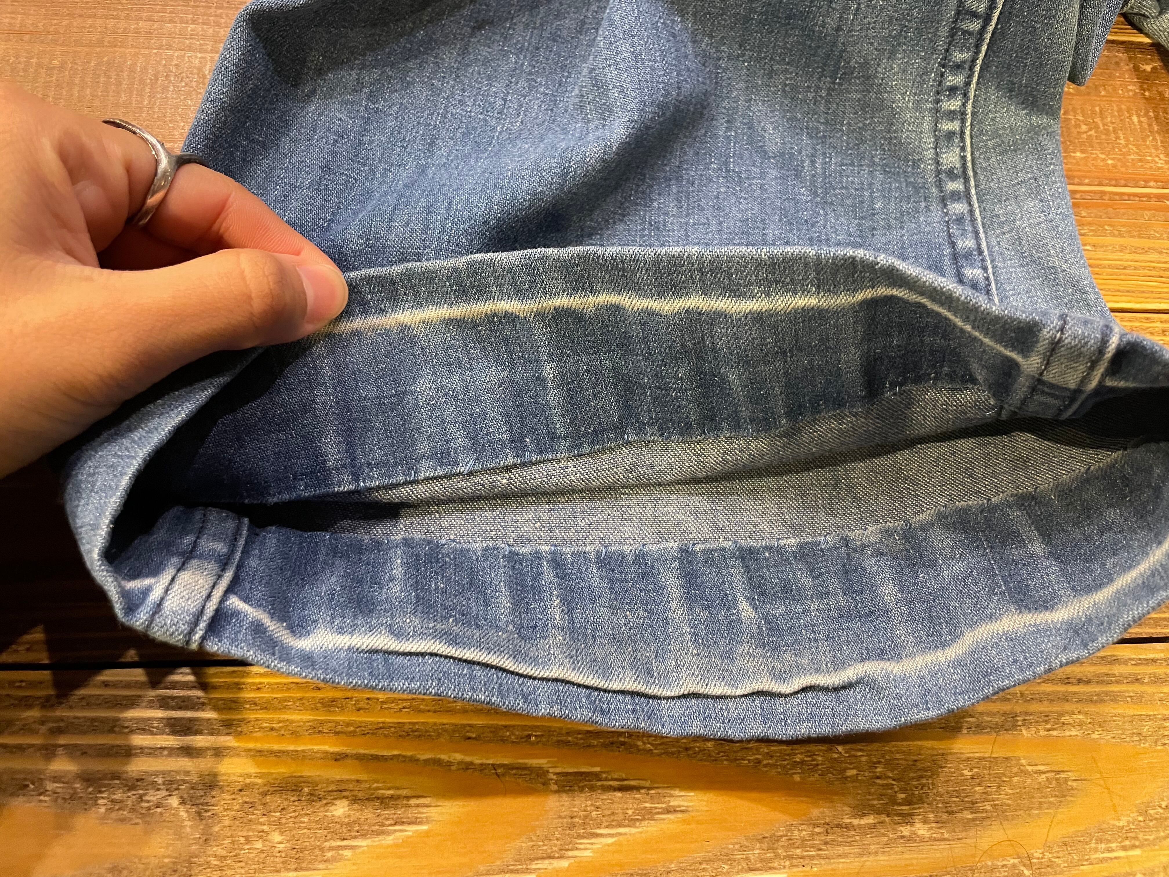 やや薄手のデニムで柔らかいので履き心地も良く、ダメージも程よくてガシガシ履けそうな一枚です。