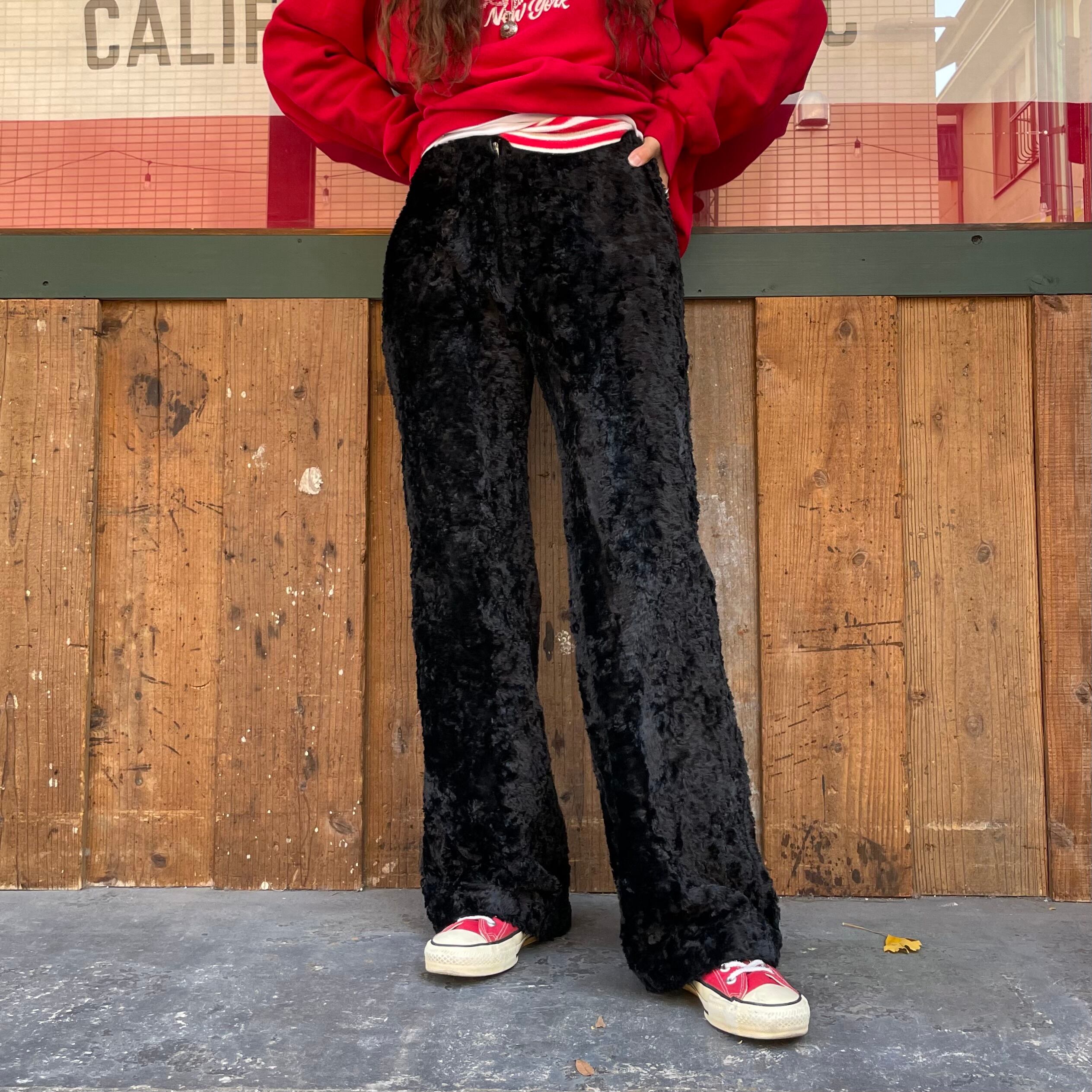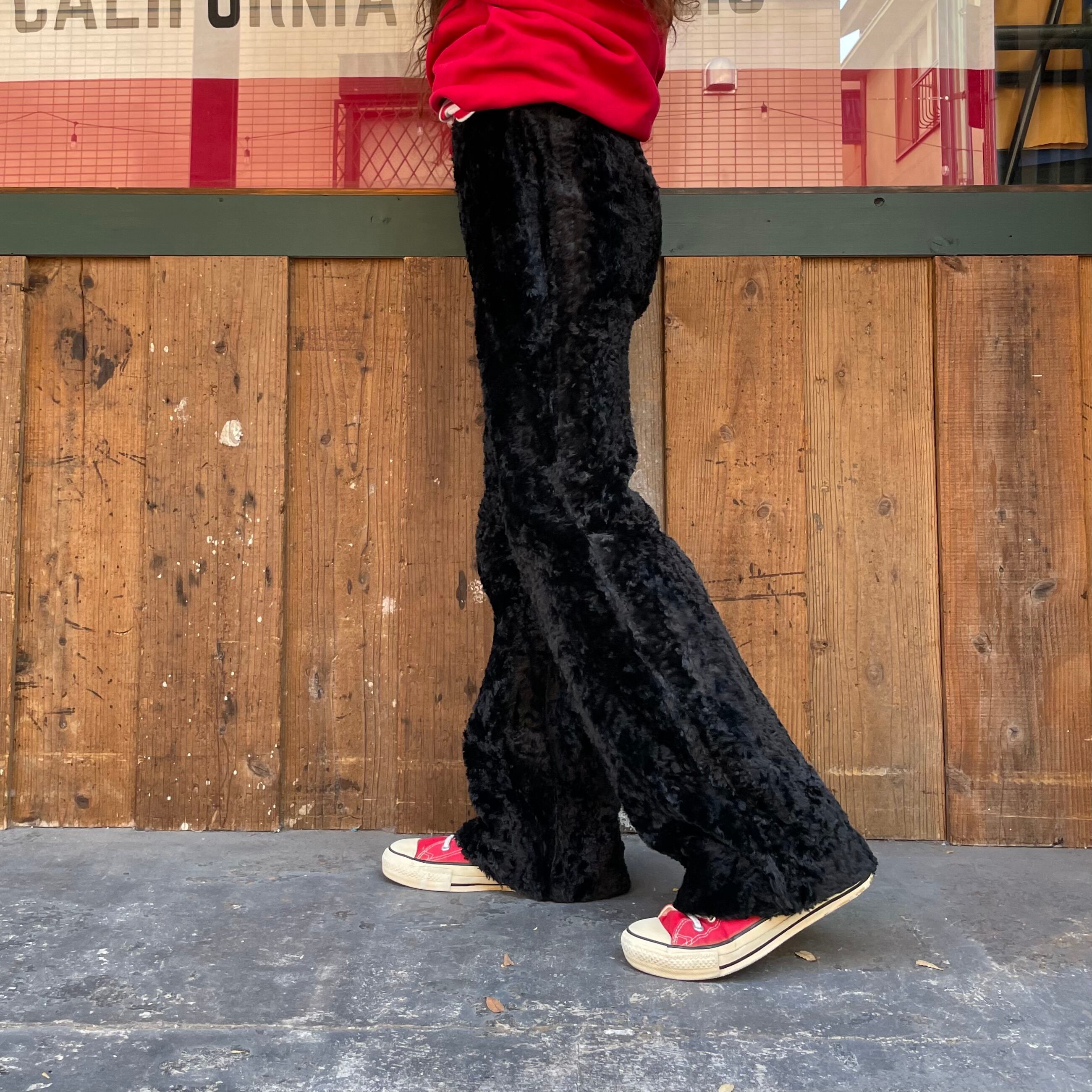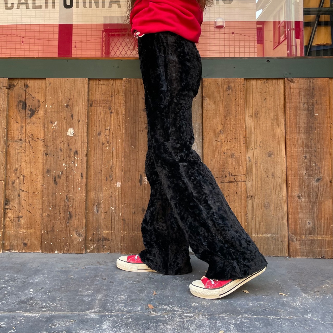 黒のフェイクファーがかわいい70年代頃のフレアパンツです。