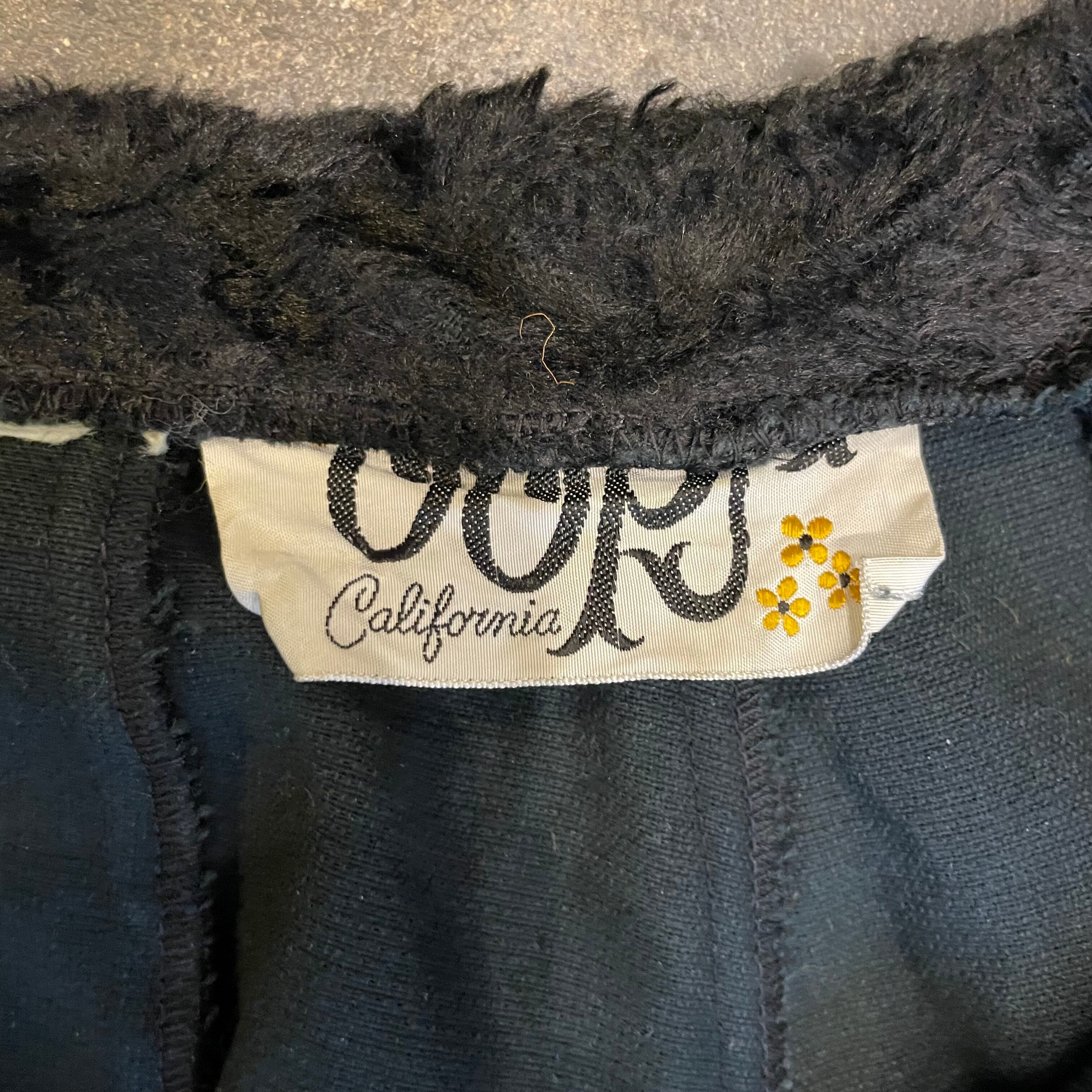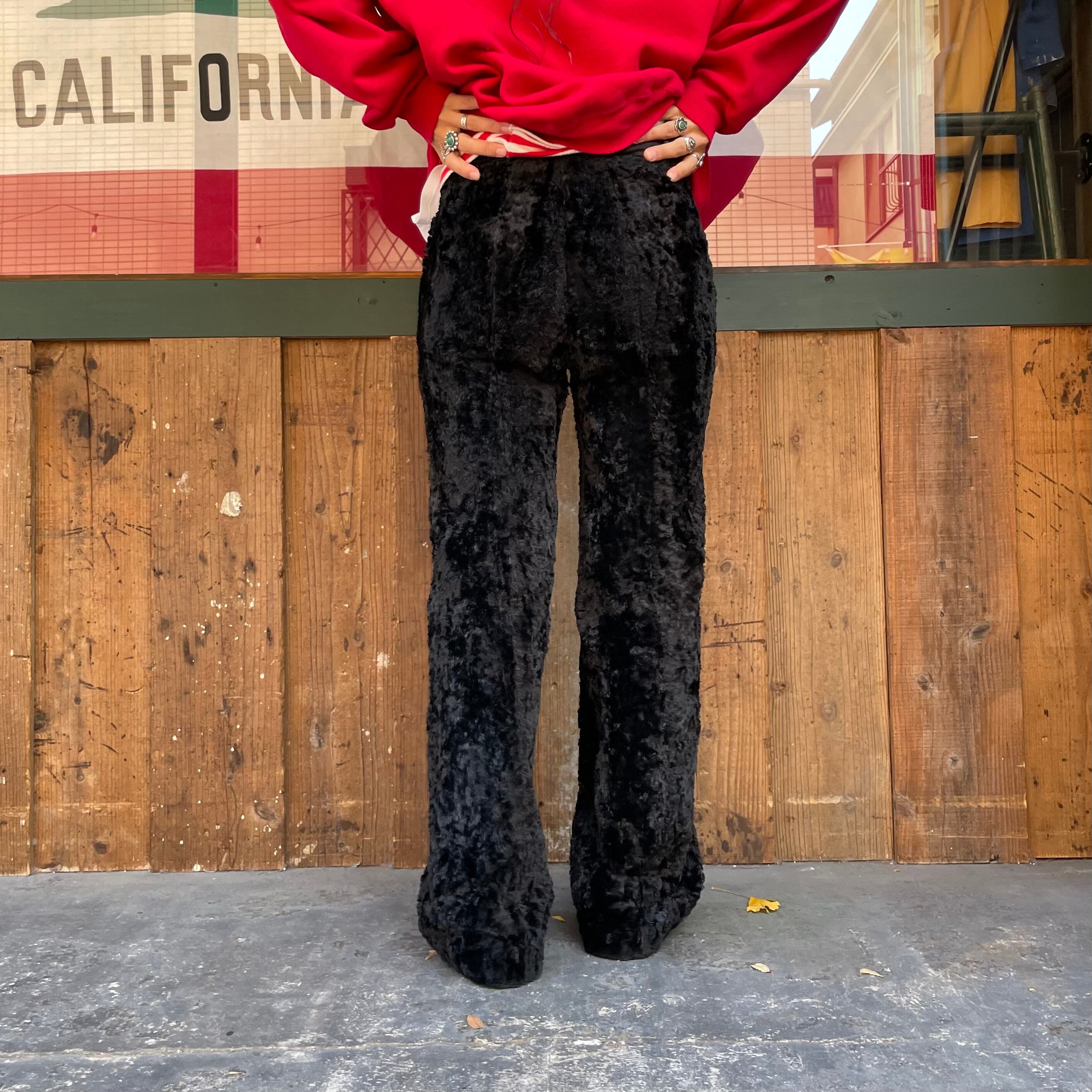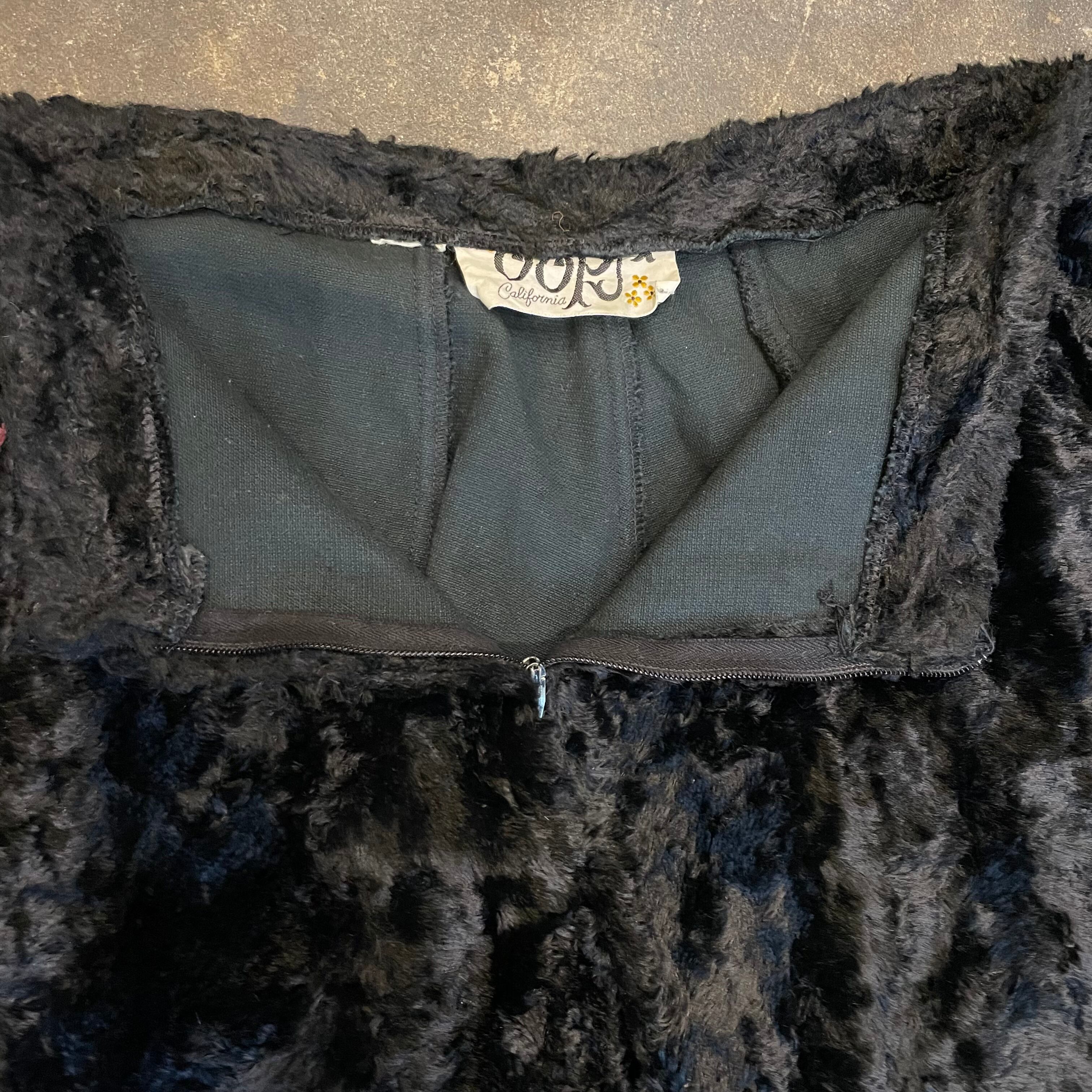 黒のフェイクファーがかわいい70年代頃のフレアパンツです。
