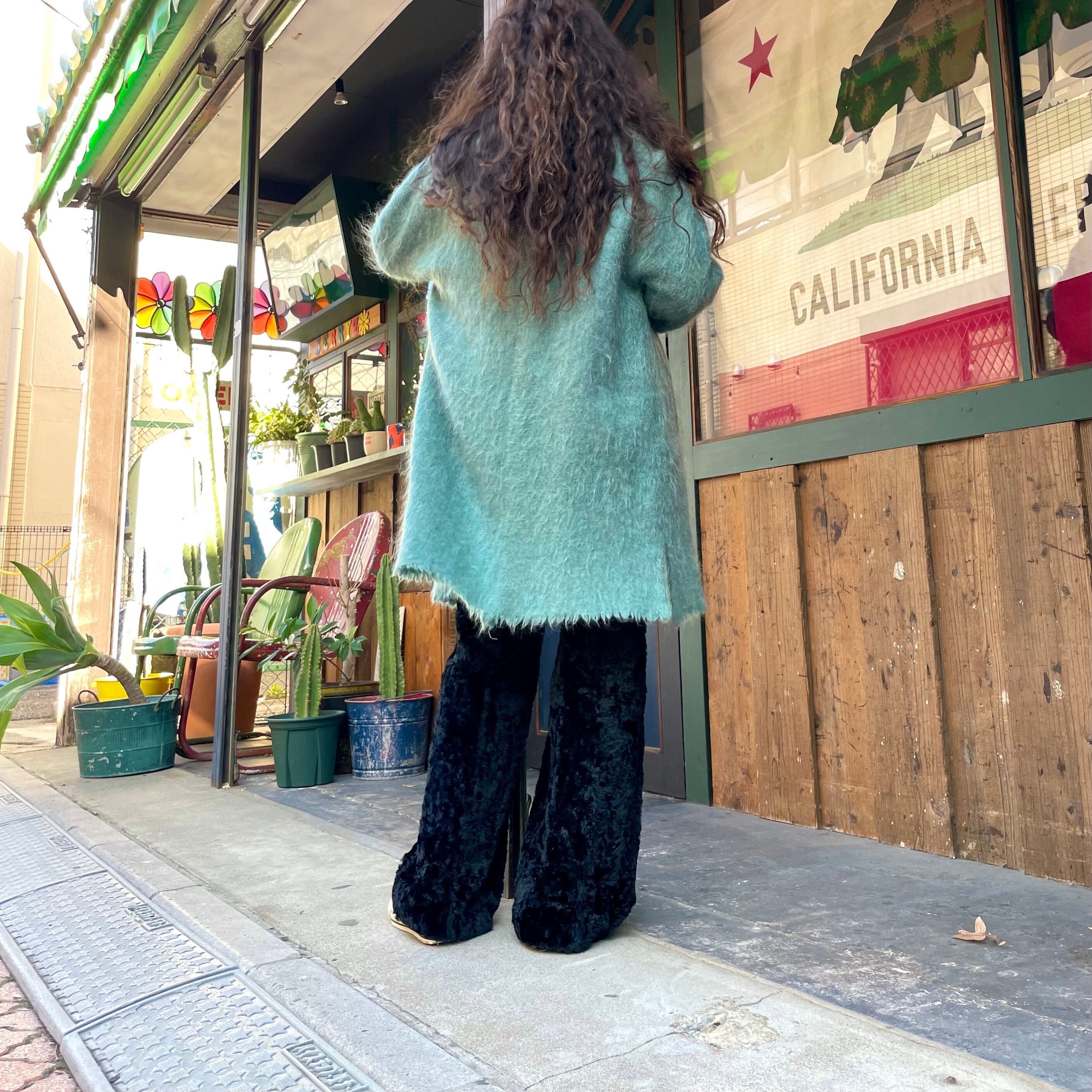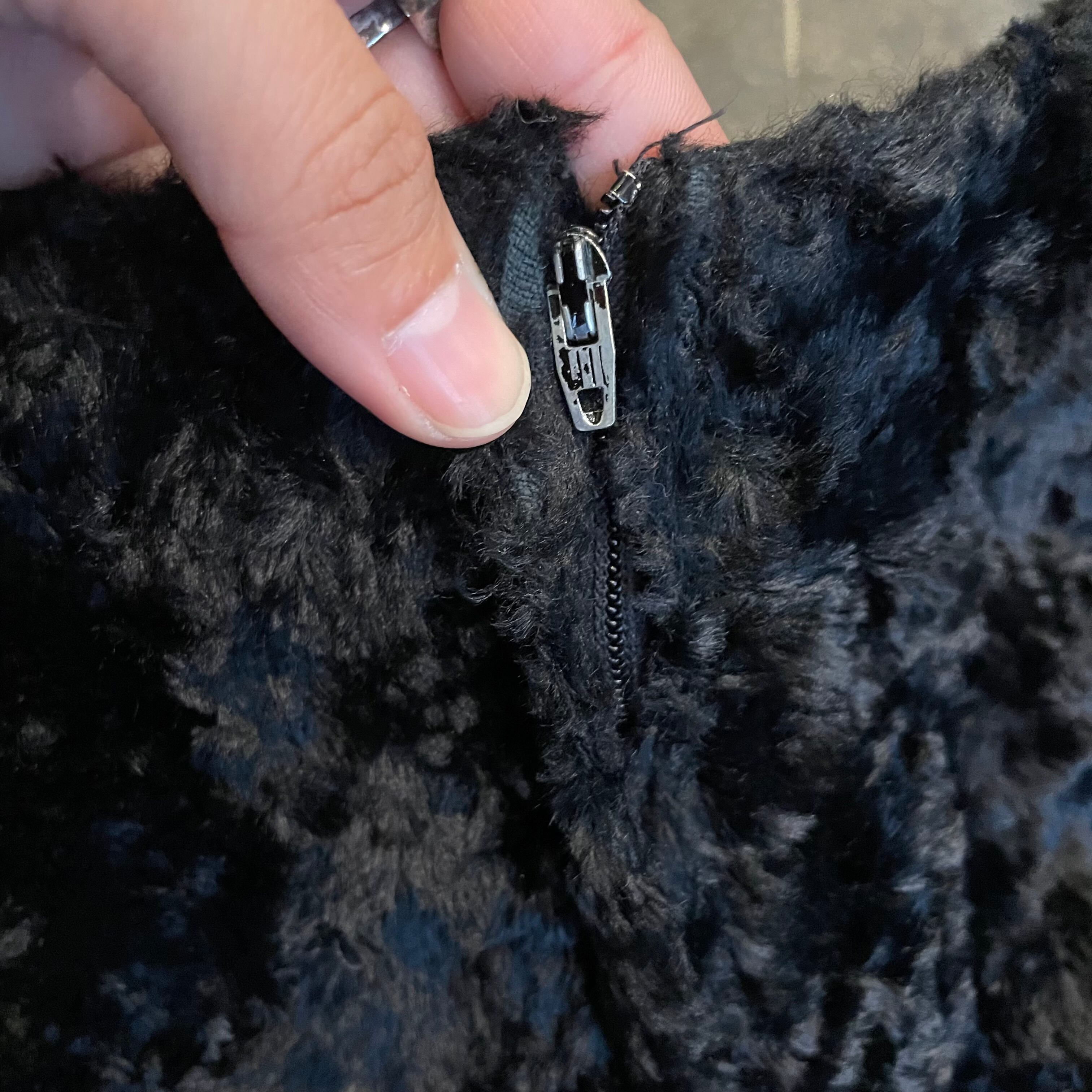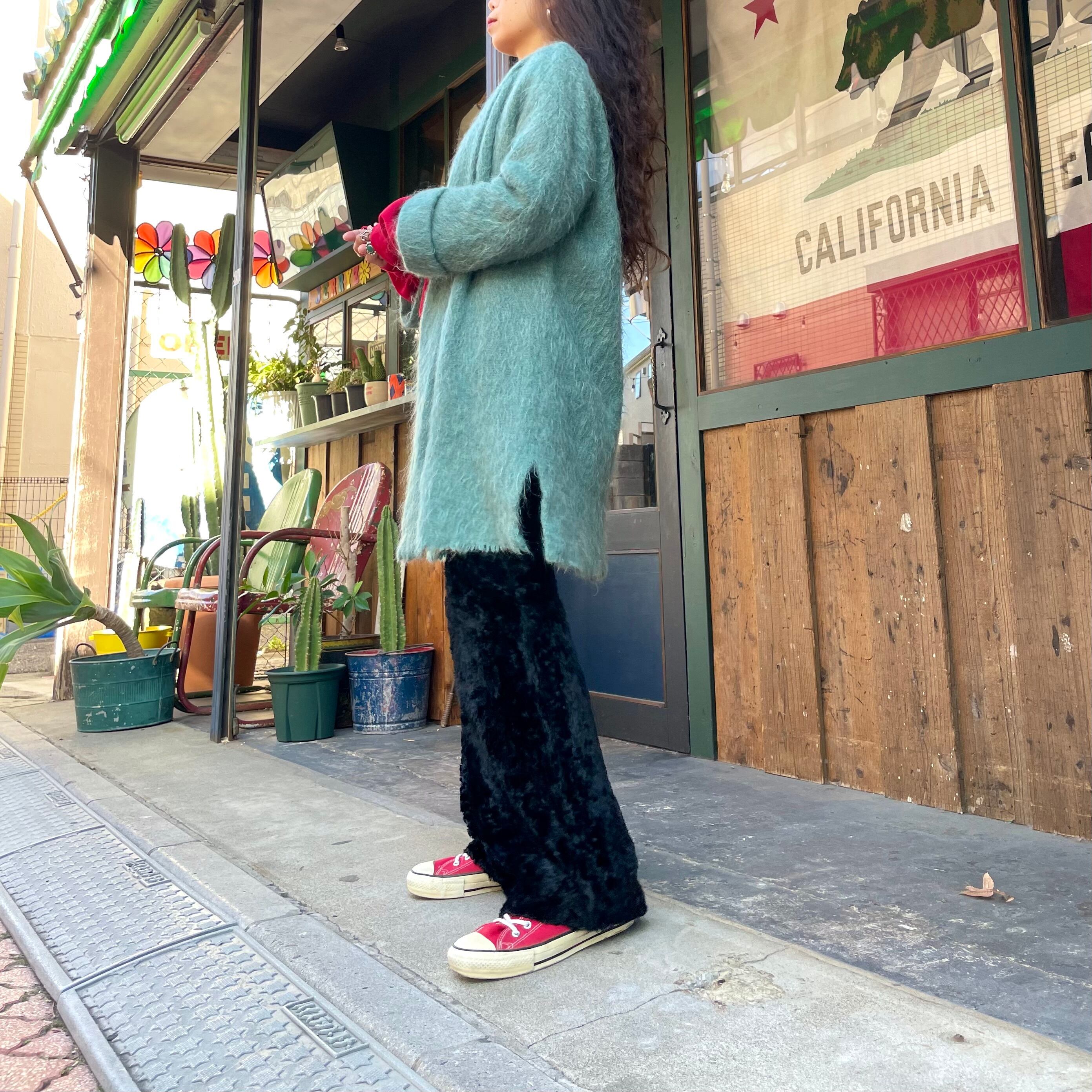 この毛足のある素材でパンツを作ろうと思ったデザイナーすごいなと思った1着です。柄でもなく真っ黒なのにとても表情があって存在感がありますし、なかなか珍しいと思います。