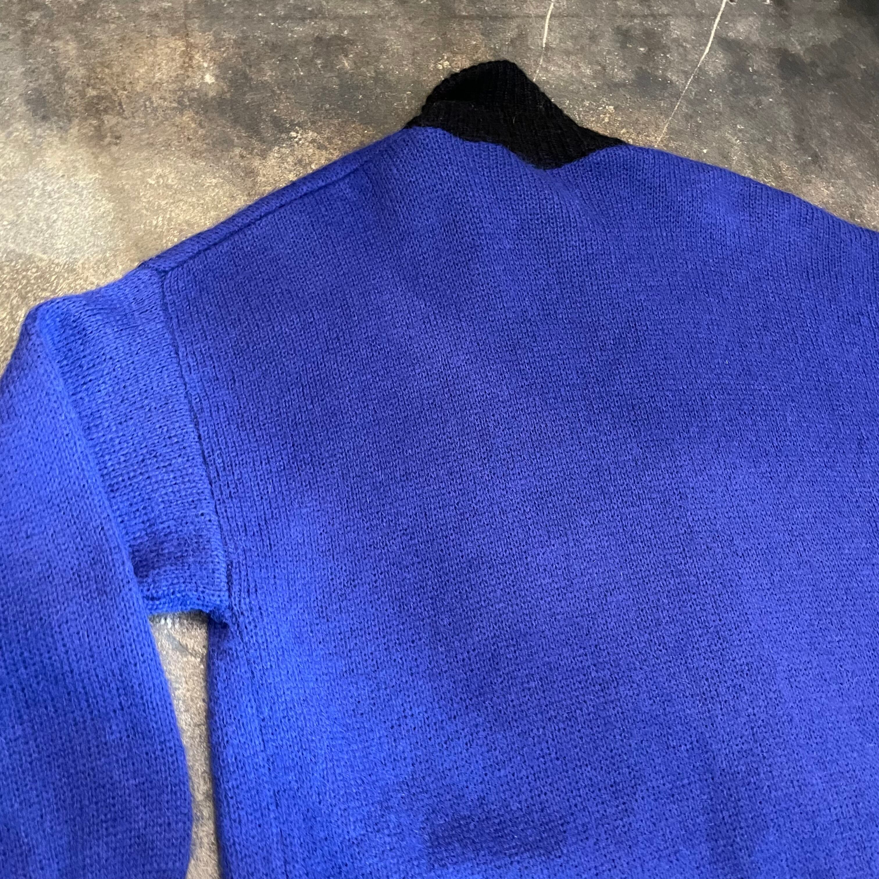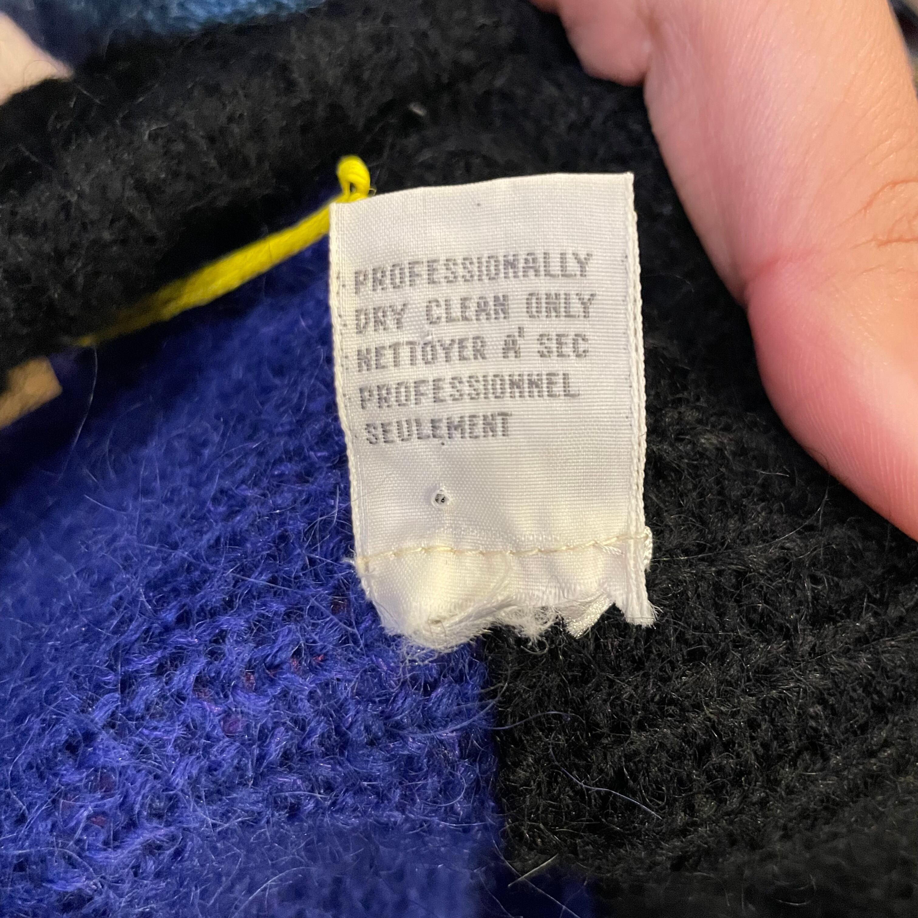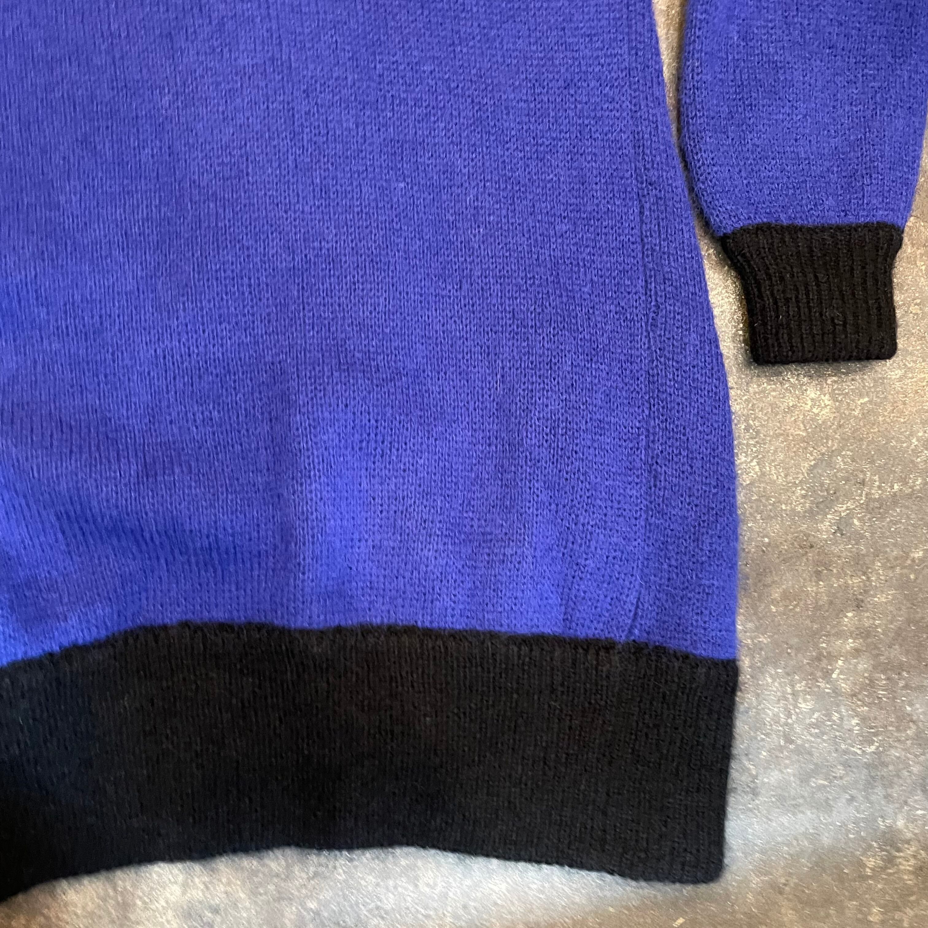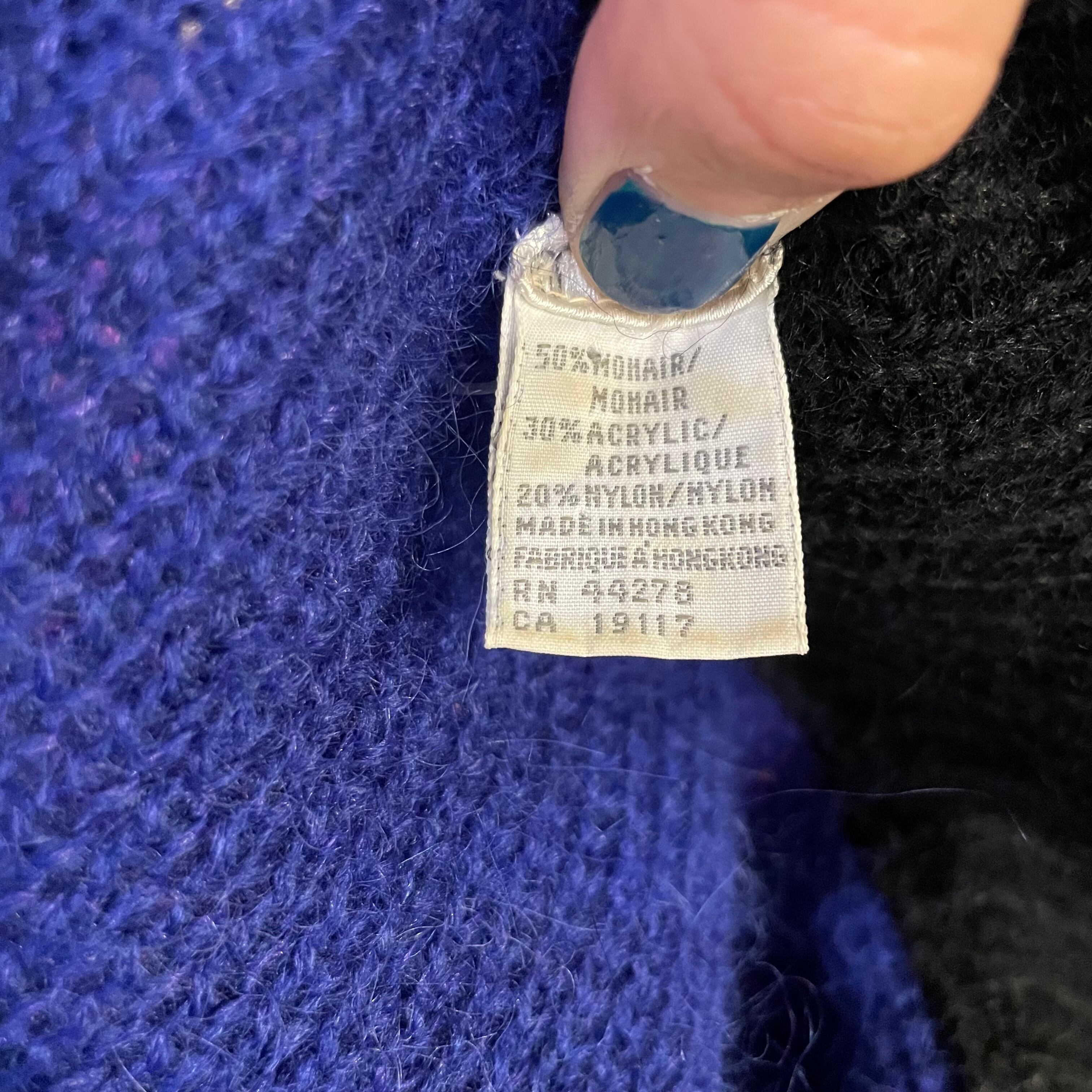 モヘアアクリルでふわっと毛足のある素材感が大人っぽい雰囲気ですね。全ての縁取りを黒のリブでデザインされているおかげで、グッと引き締まって合わせやすい一着かと思います。