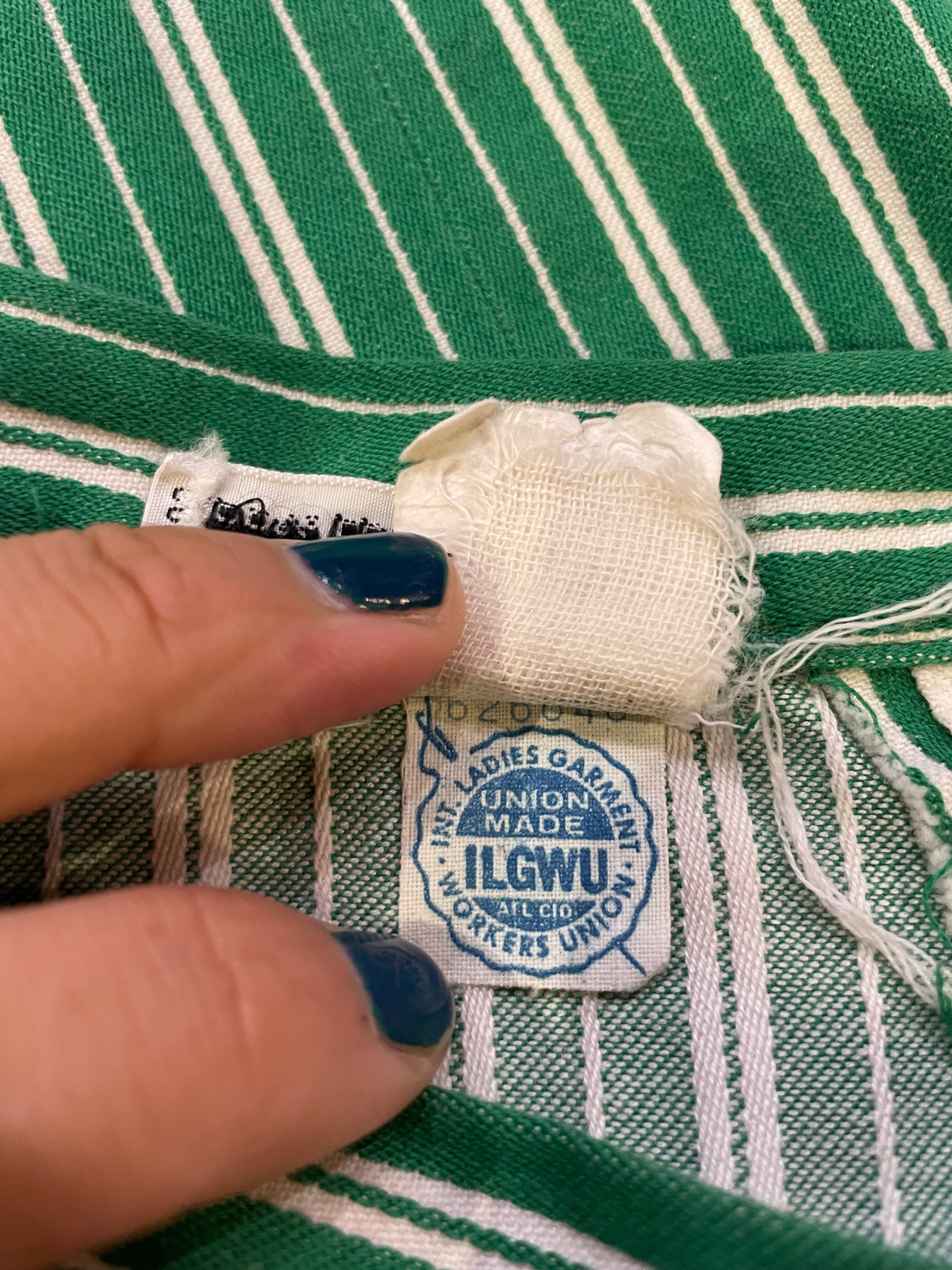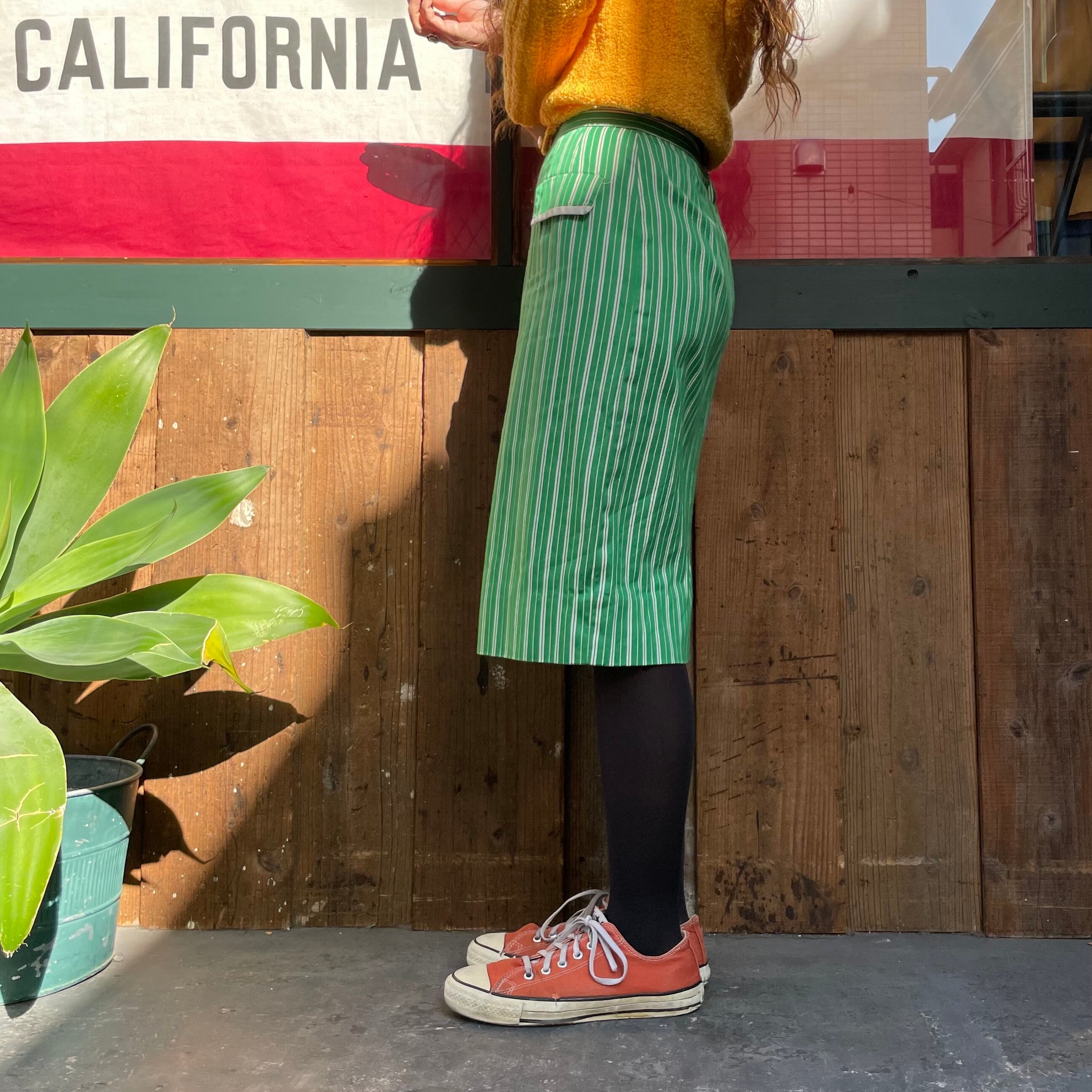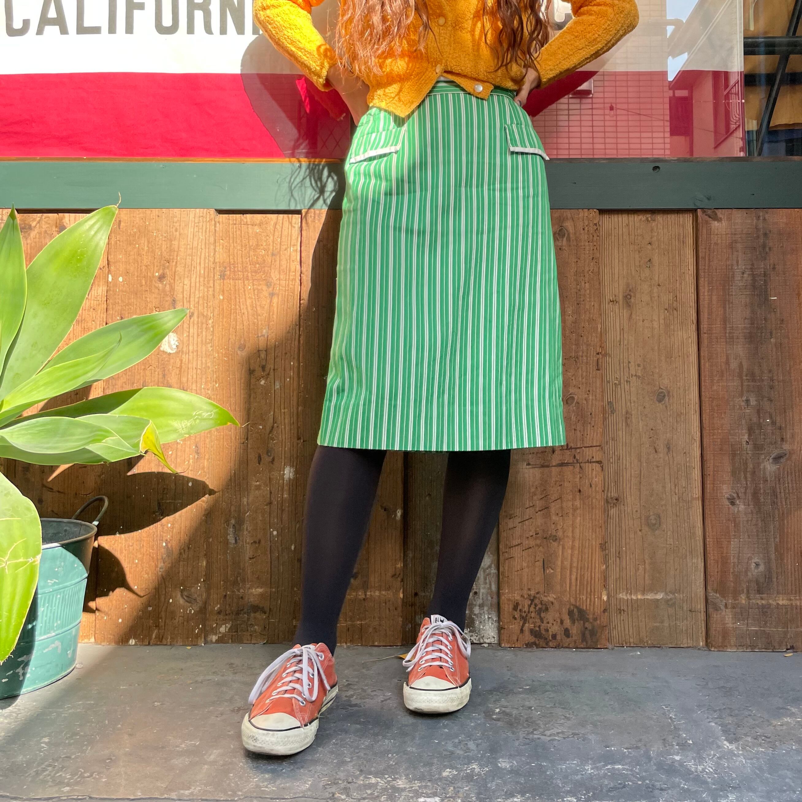丸い腰巻きエプロンを合わせてダイナーの制服っぽいコンディネートも楽しいですね。