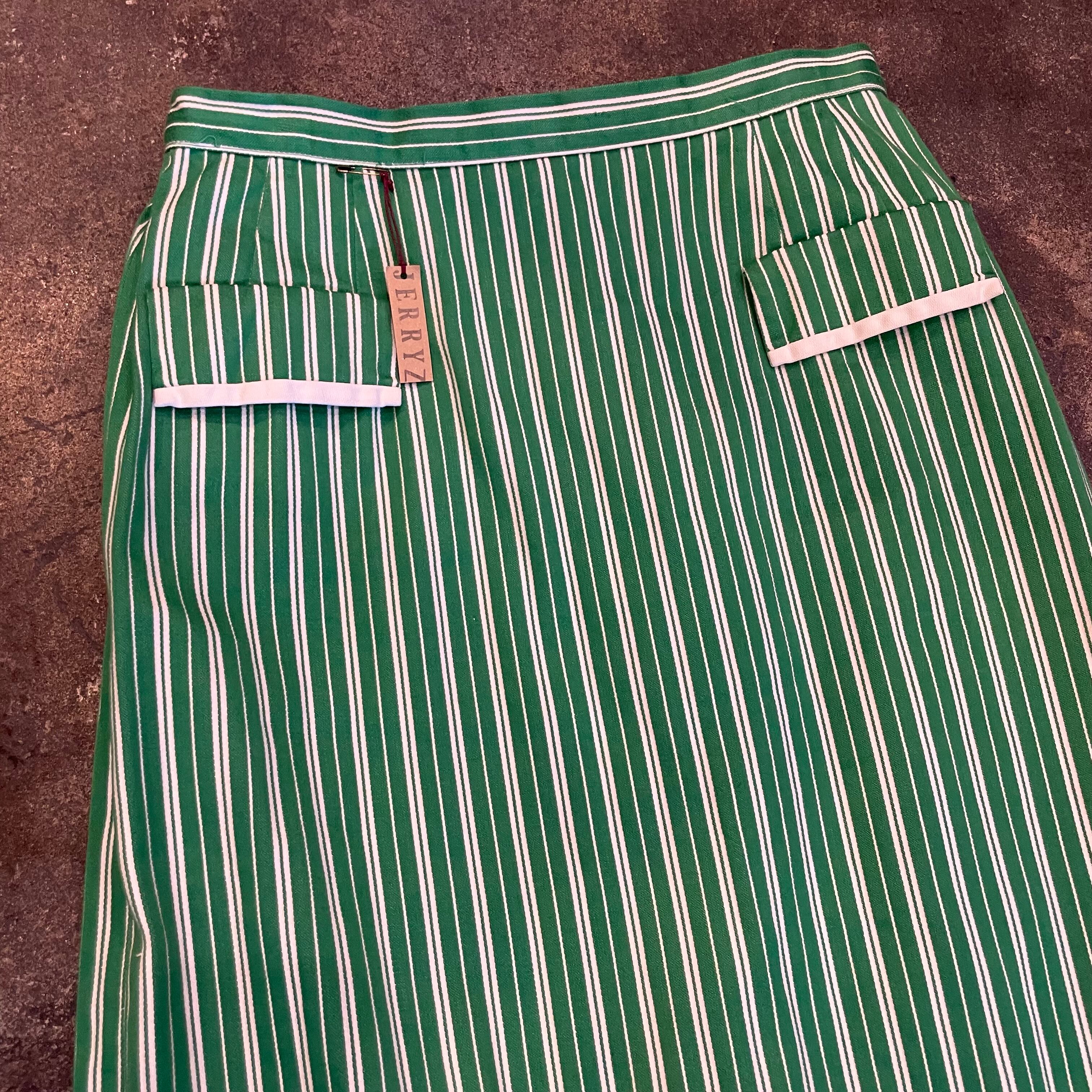 すっきりシルエットで膝下の丈感が大人っぽいんだけれども、ポップでやんちゃで絶妙なバランス感だと思います。ポケットはフェイクですが、飾りがあることによってポイントになって良いですね。