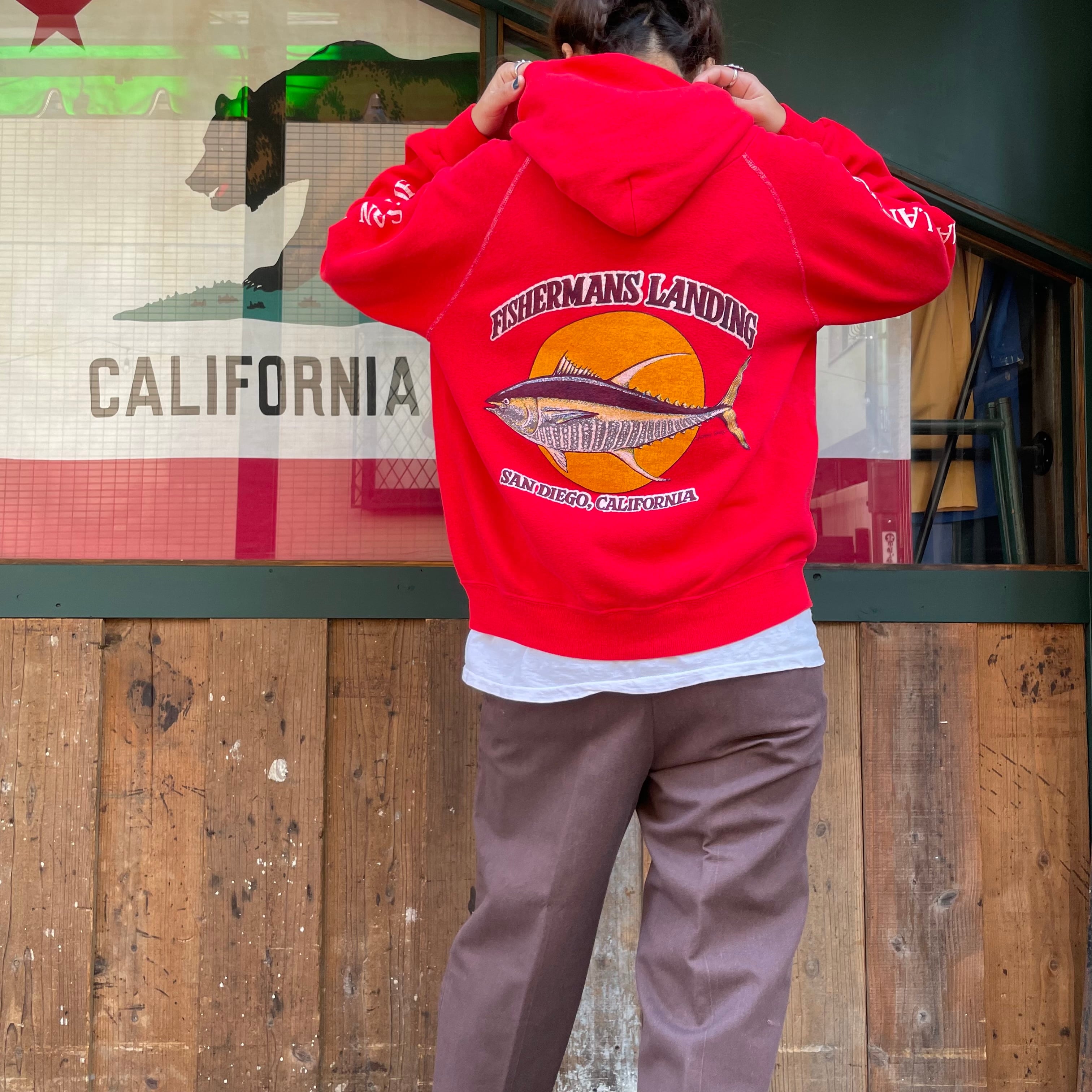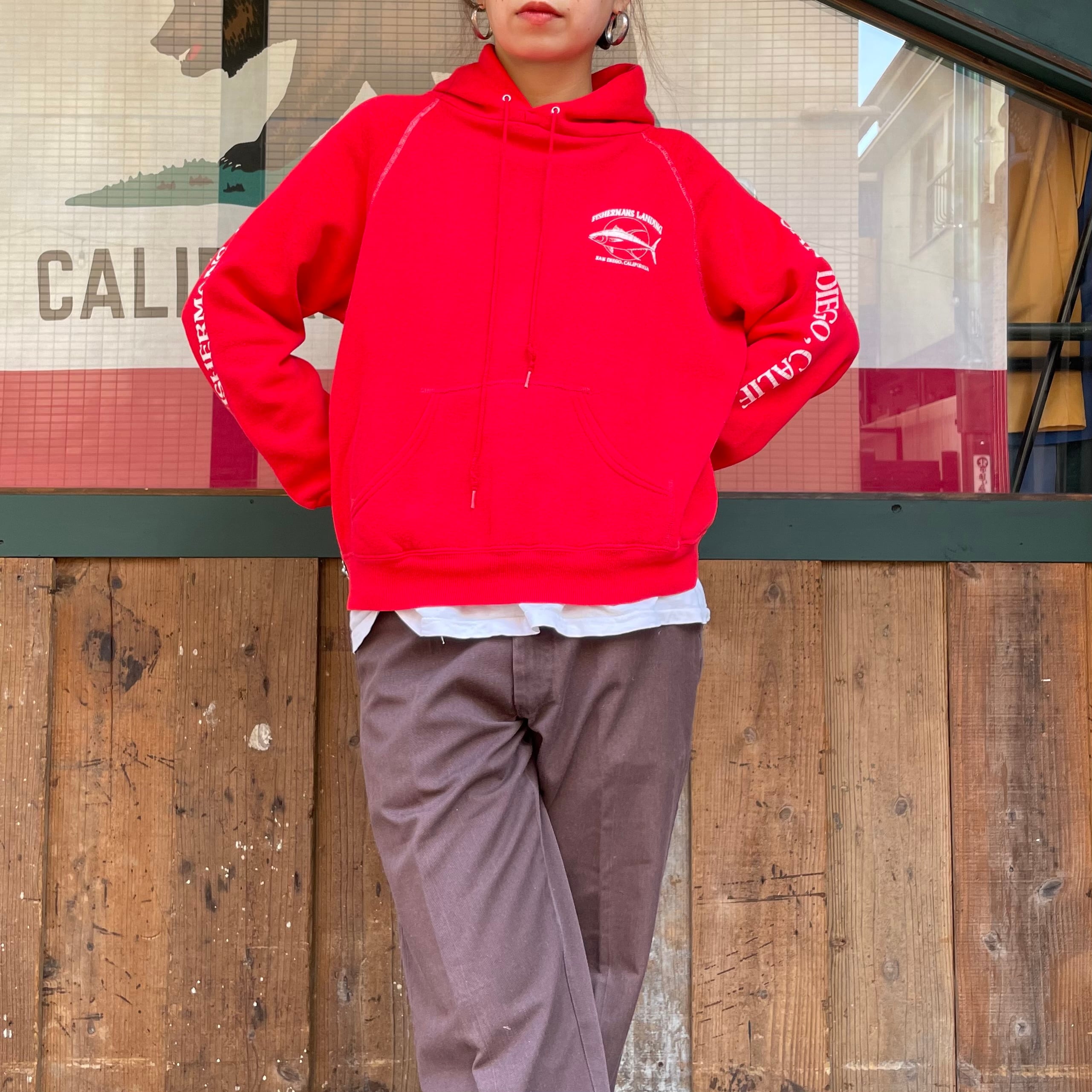 バックプリント、両袖プリントがかわいいパーカーです。タグが無くなっており詳細は不明ですが、80年代頃のもののような雰囲気です。