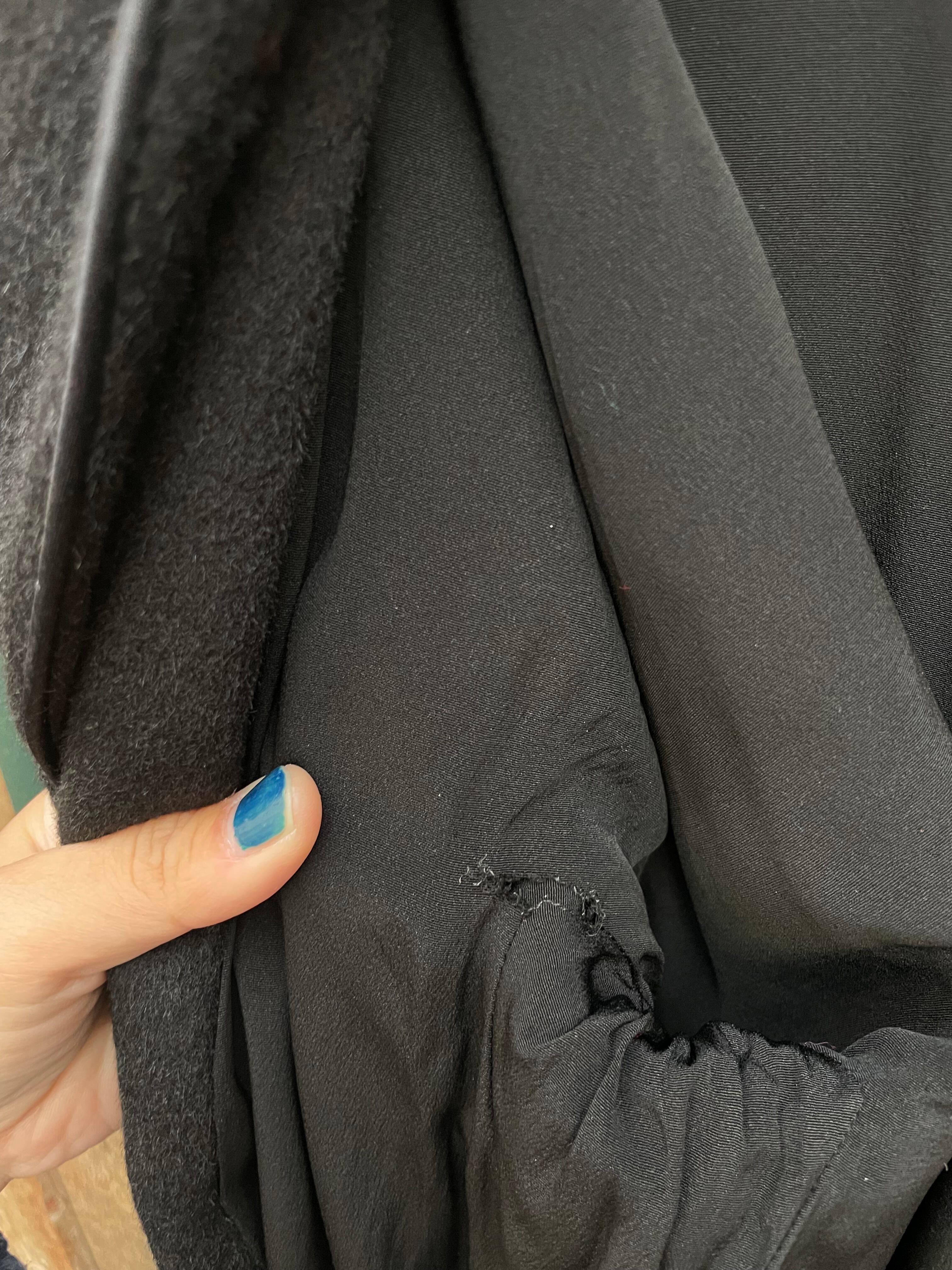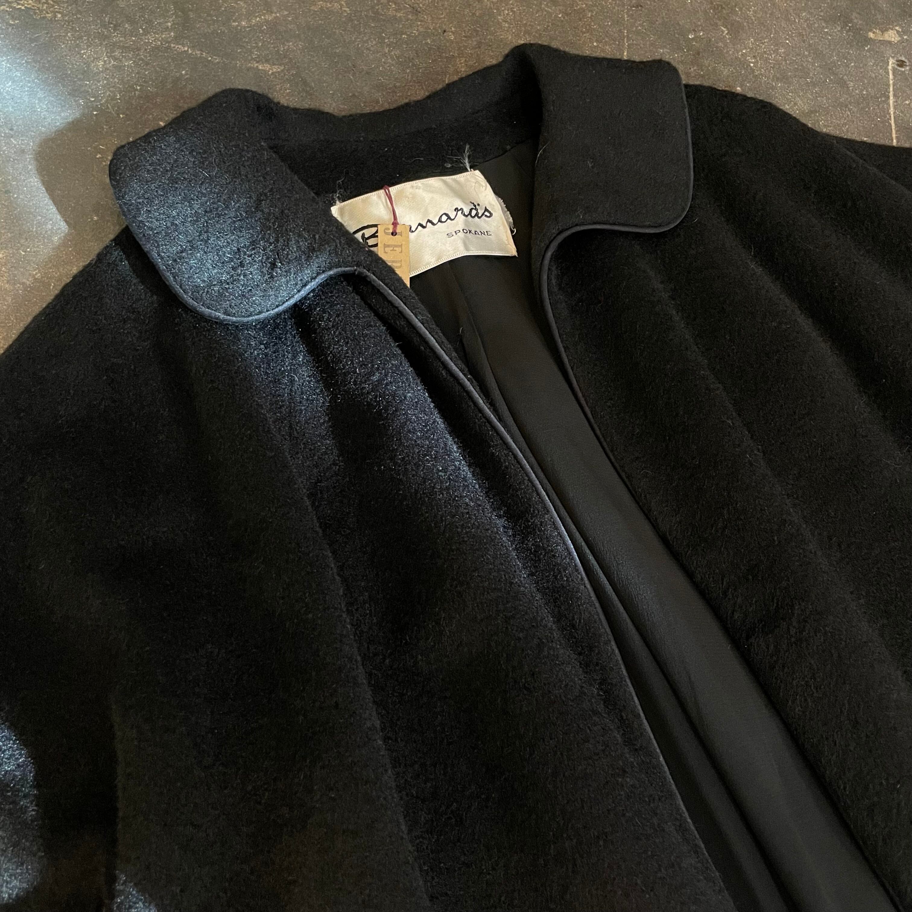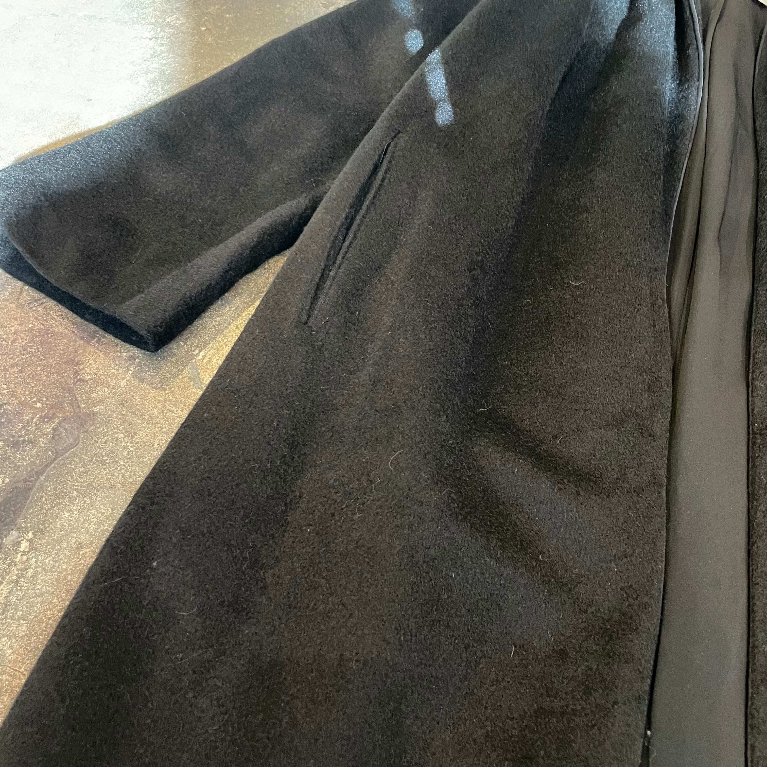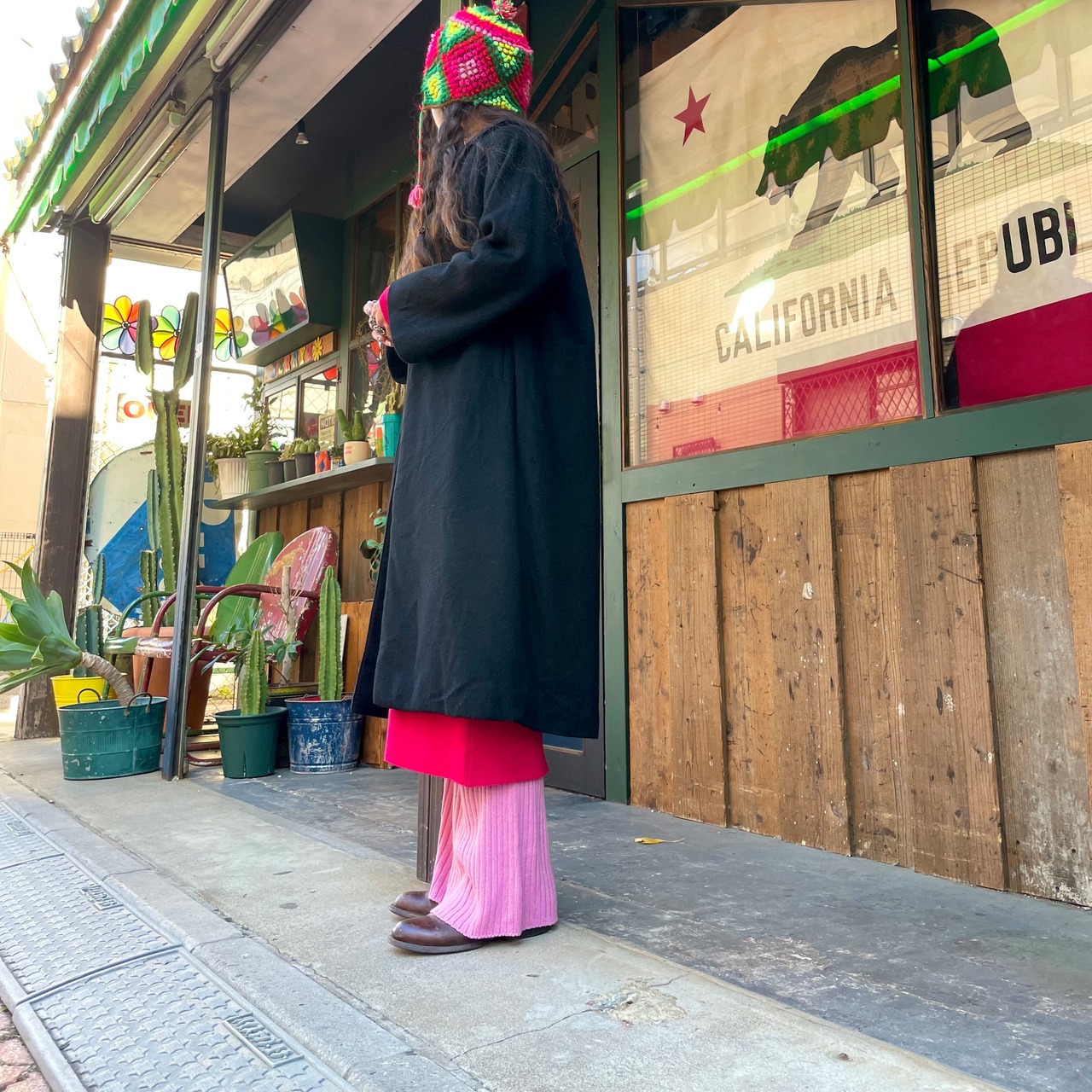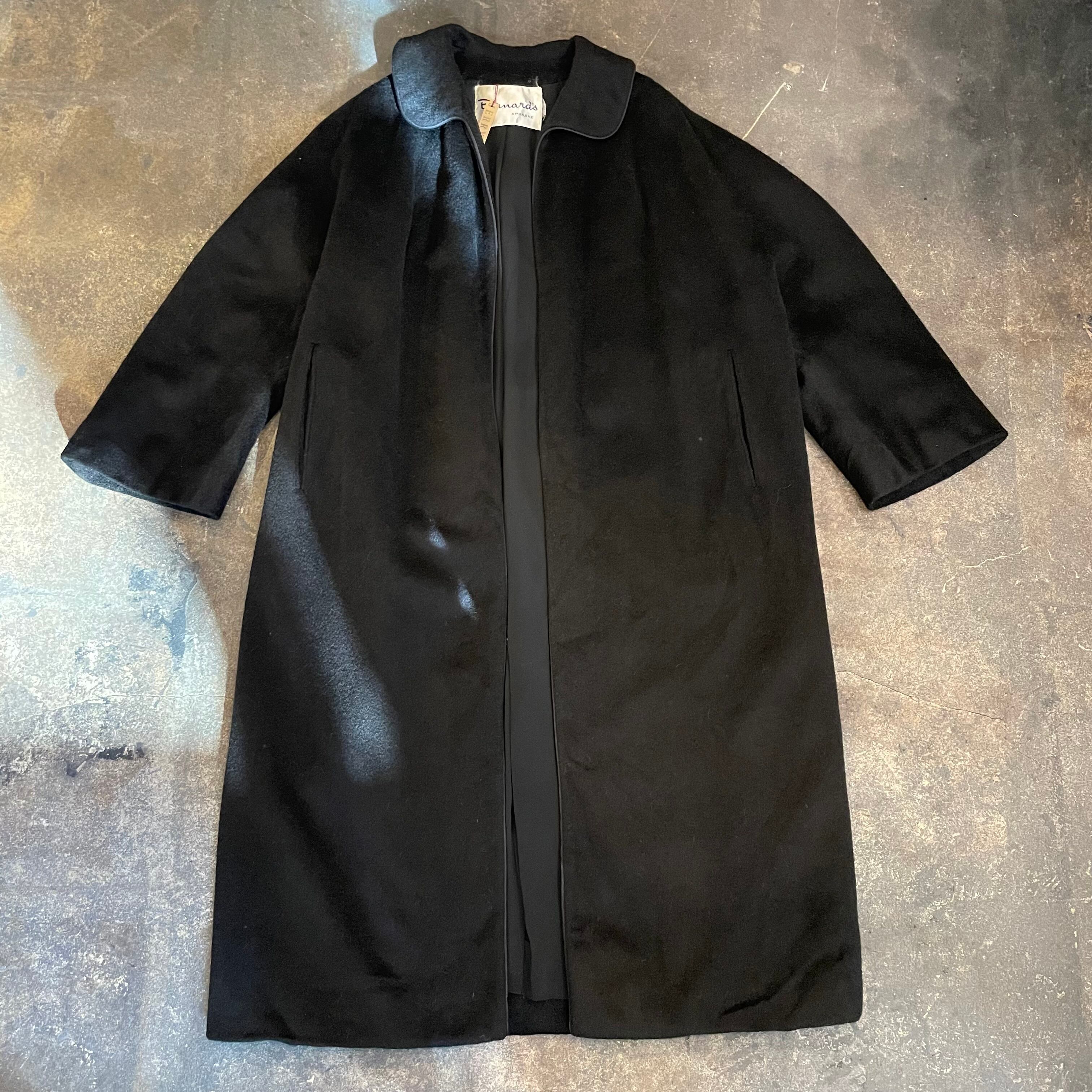 真っ黒で前は閉じないガウンタイプのとてもシンプルなコートです。