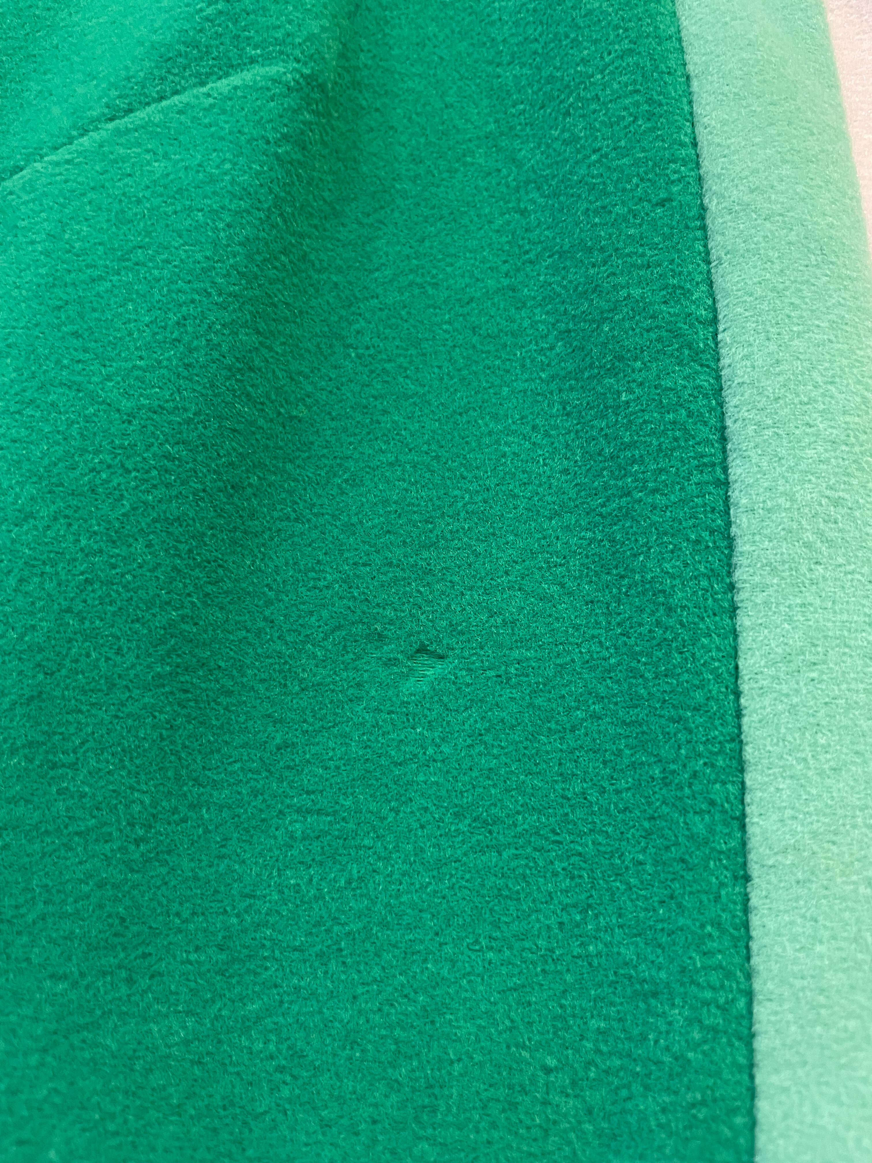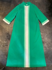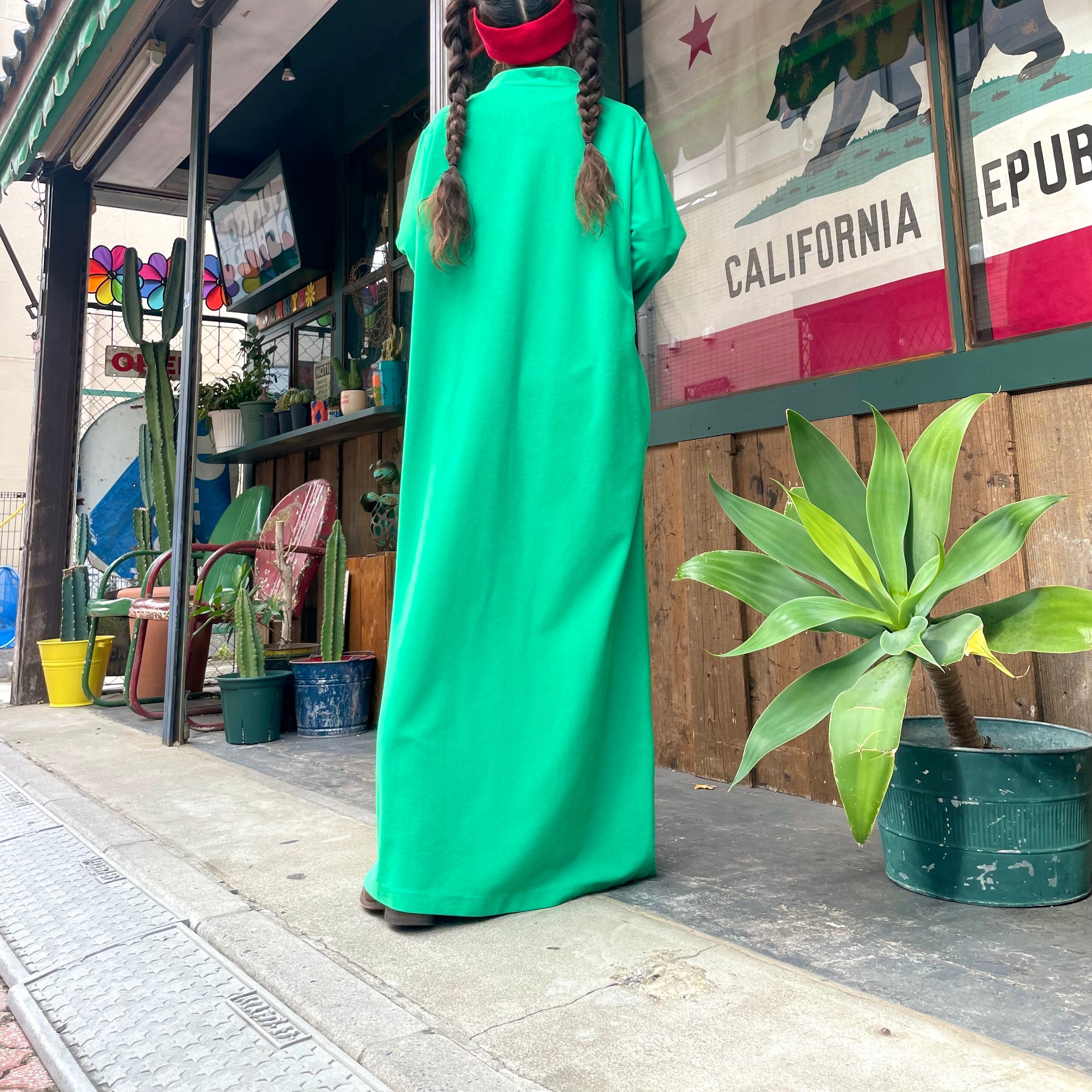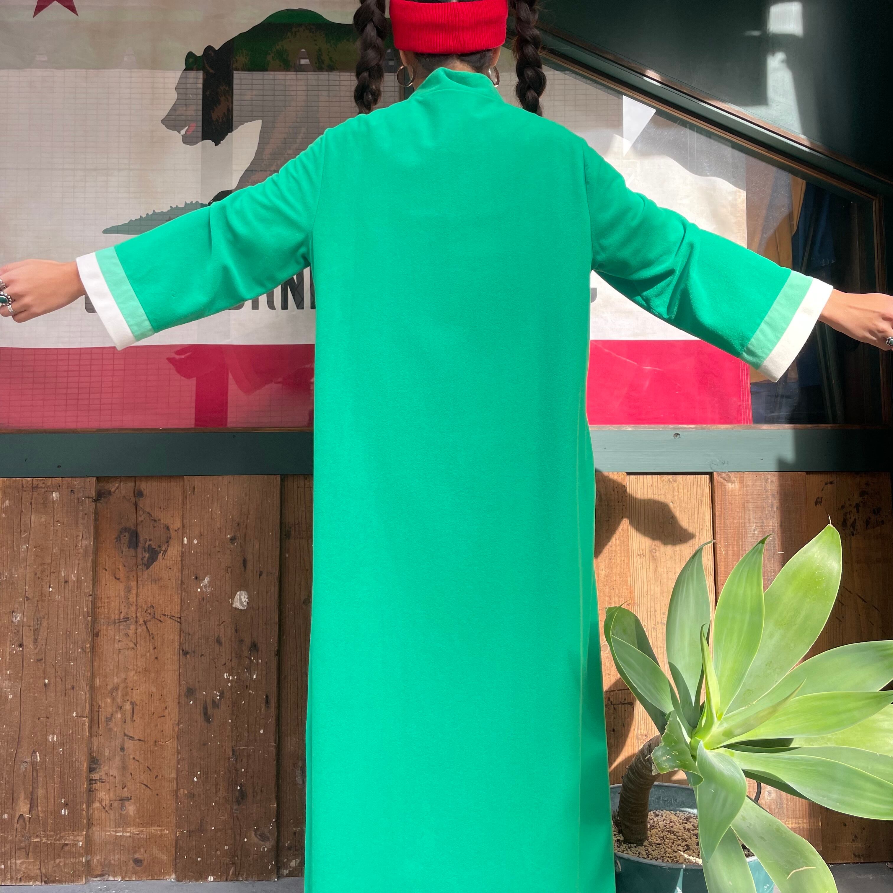 きれいなキミドリ色がかわいい70年代頃のフリースワンピースです。グラデーションになっている切り替えがこの年代らしくポップでかわいいですね。