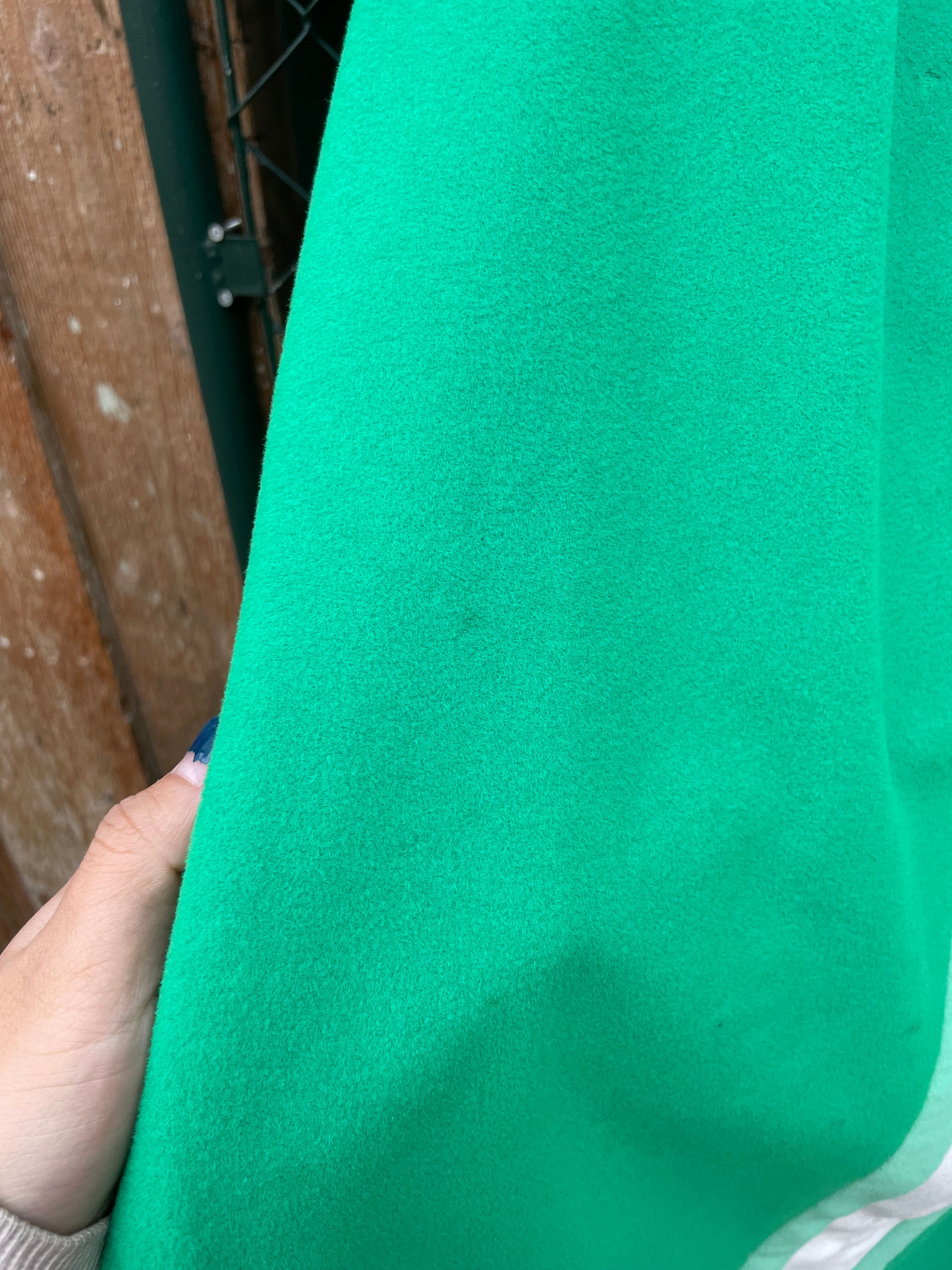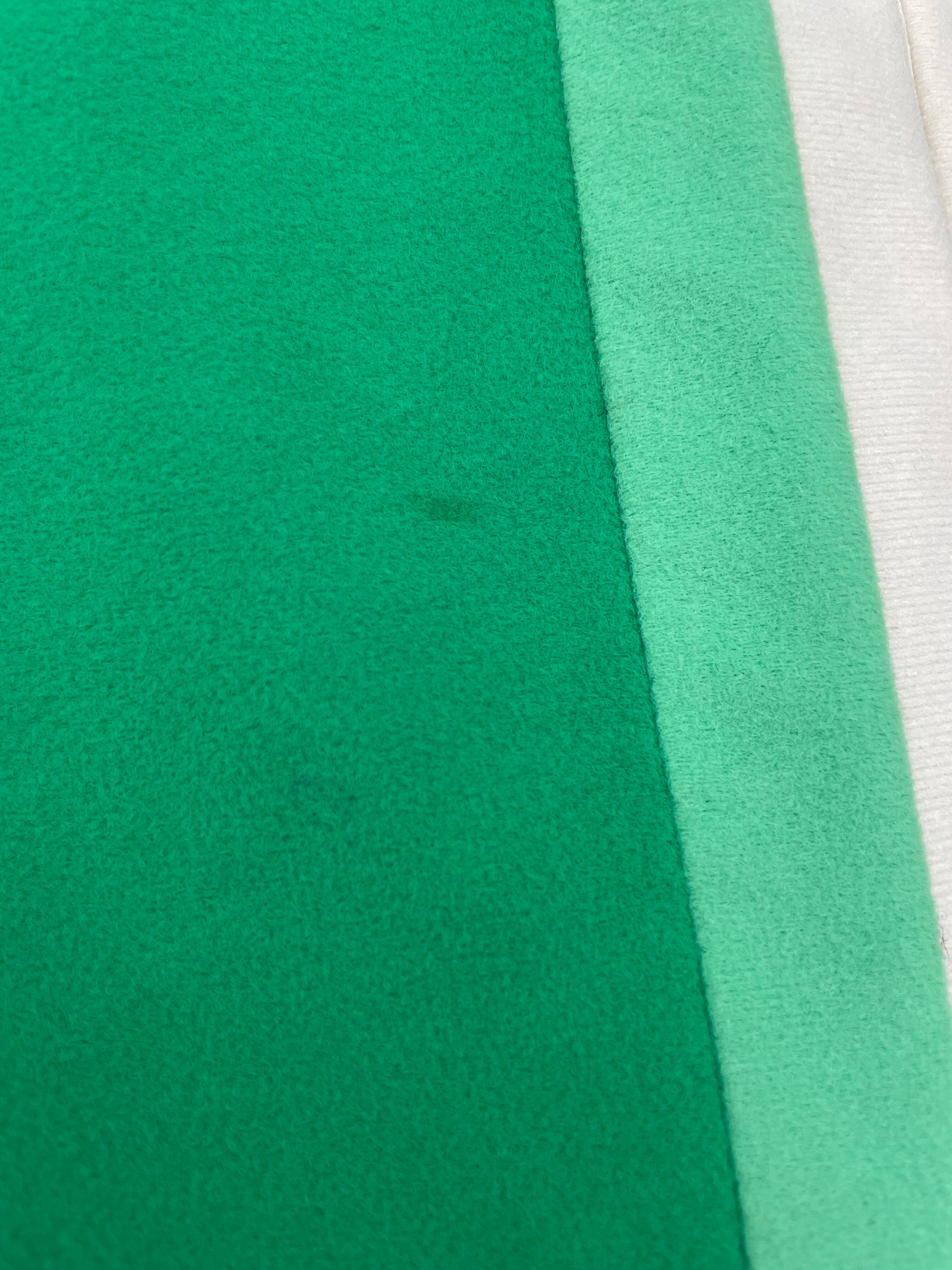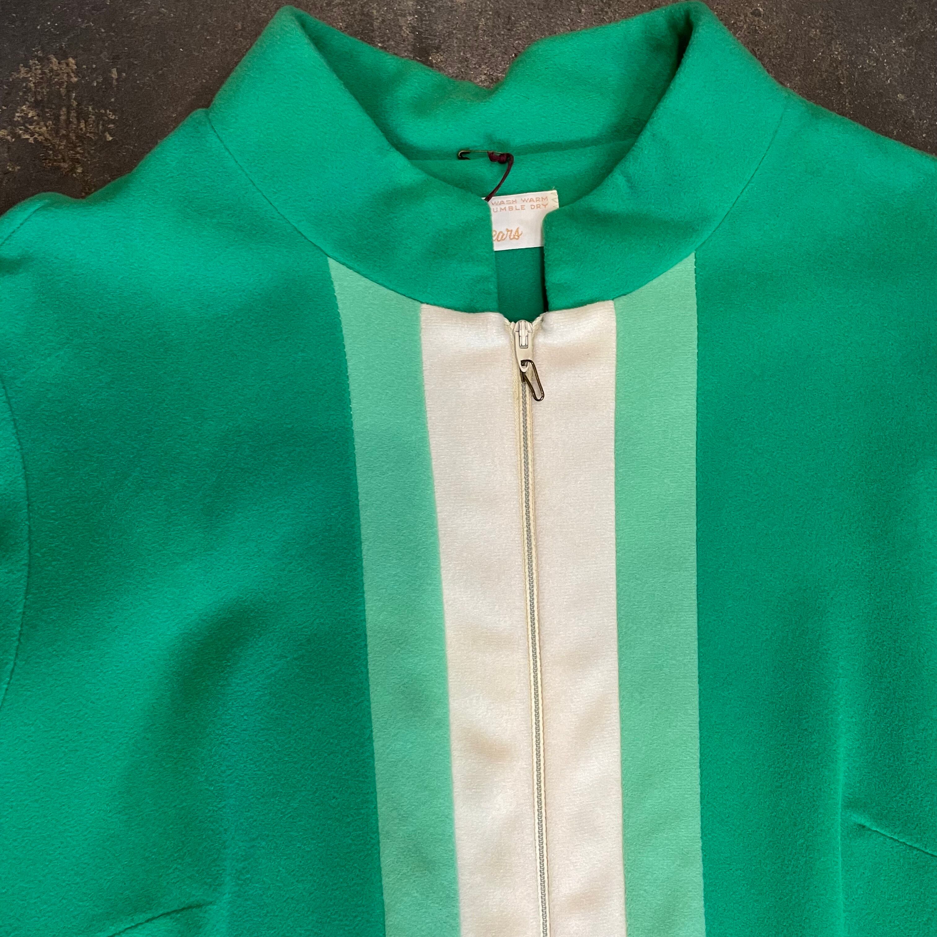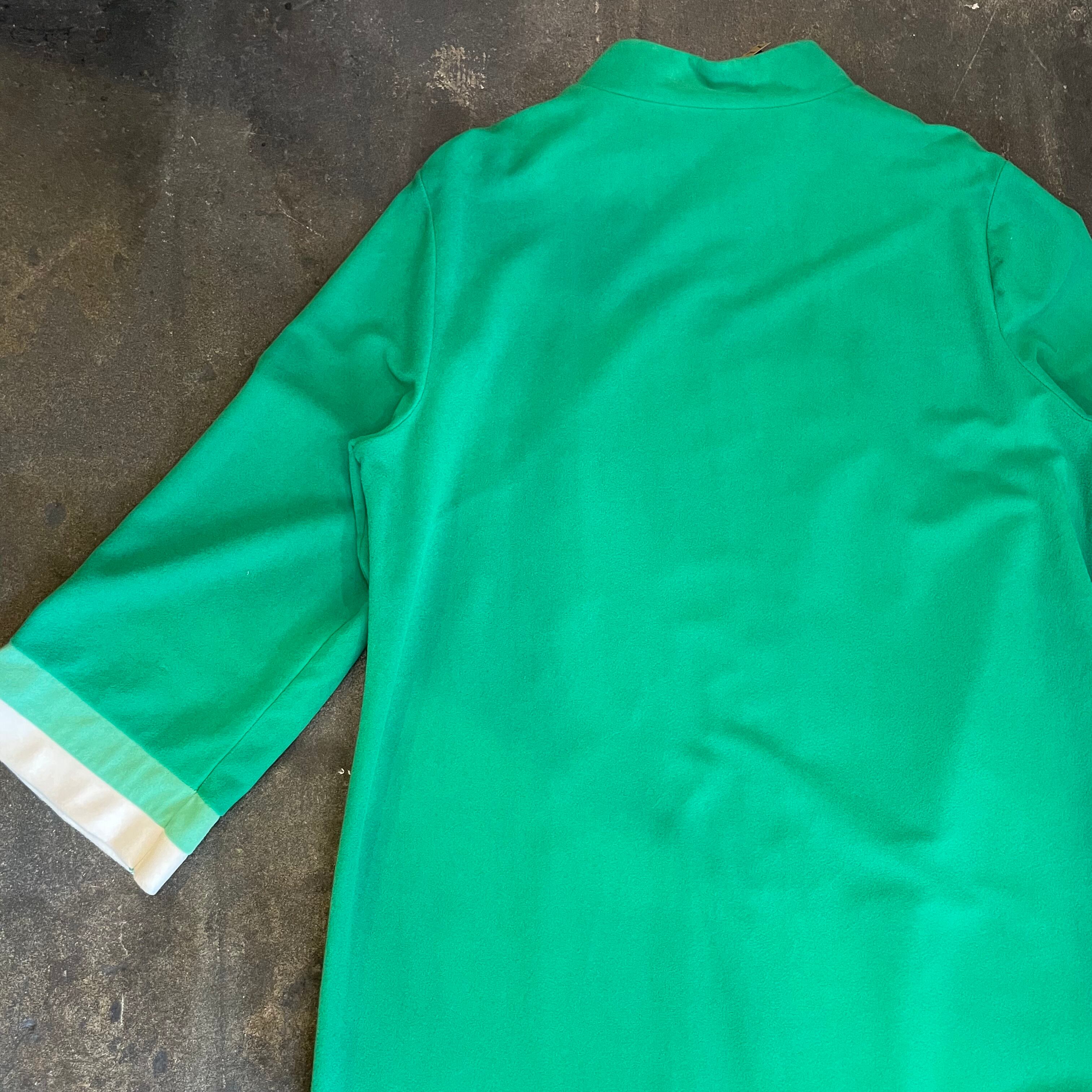 きれいなキミドリ色がかわいい70年代頃のフリースワンピースです。グラデーションになっている切り替えがこの年代らしくポップでかわいいですね。