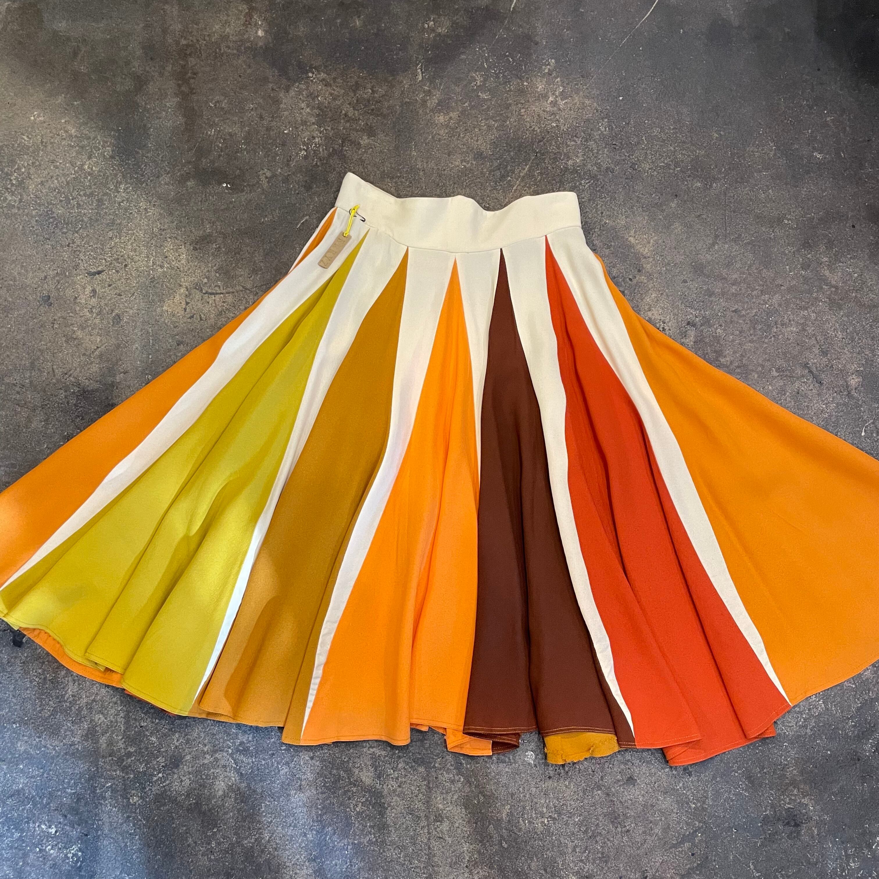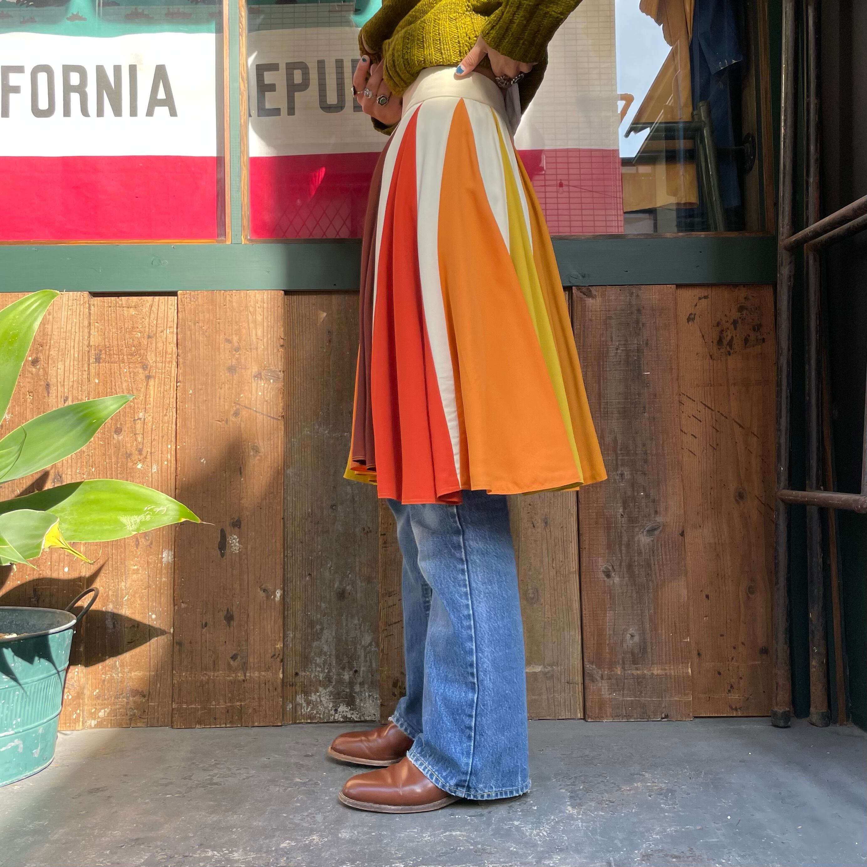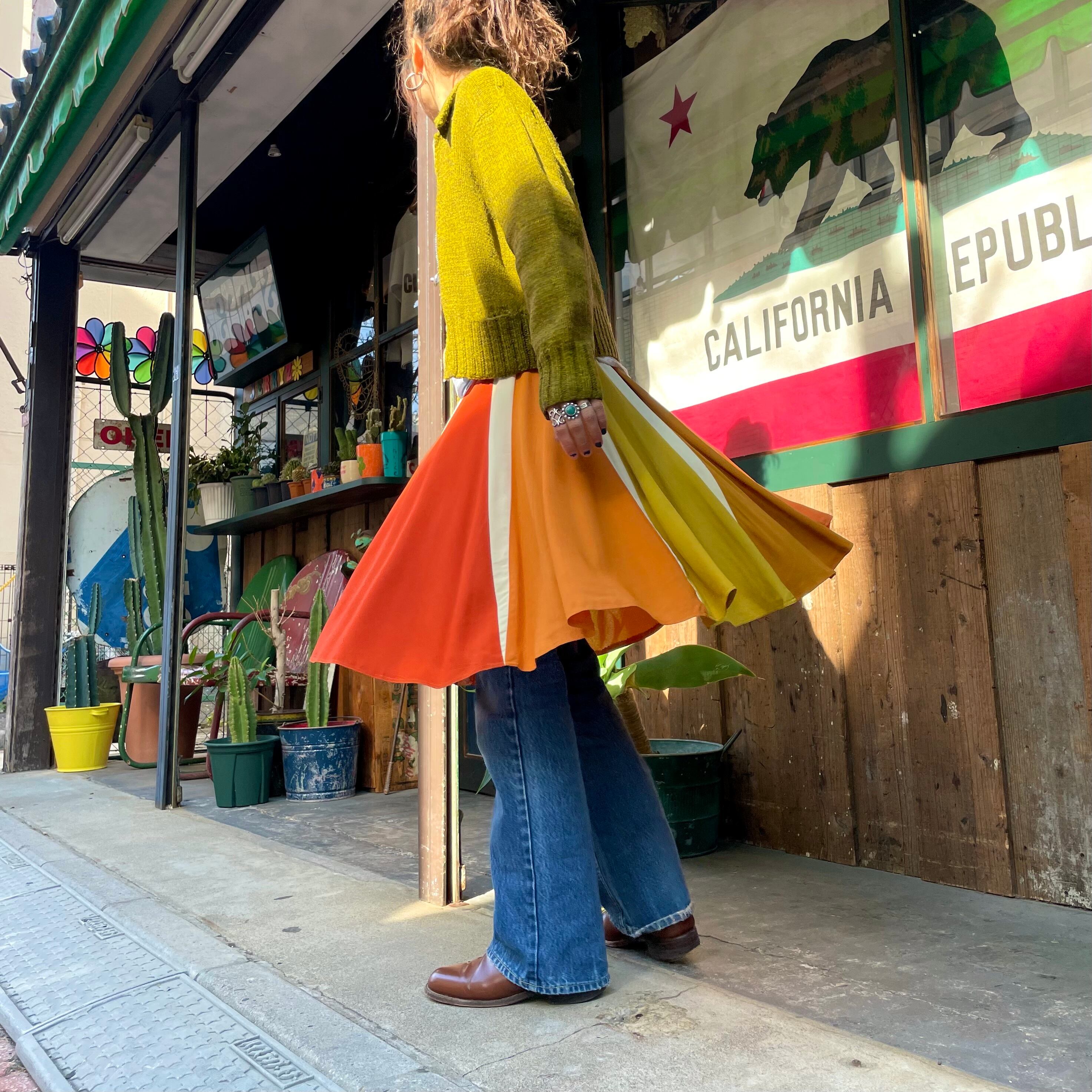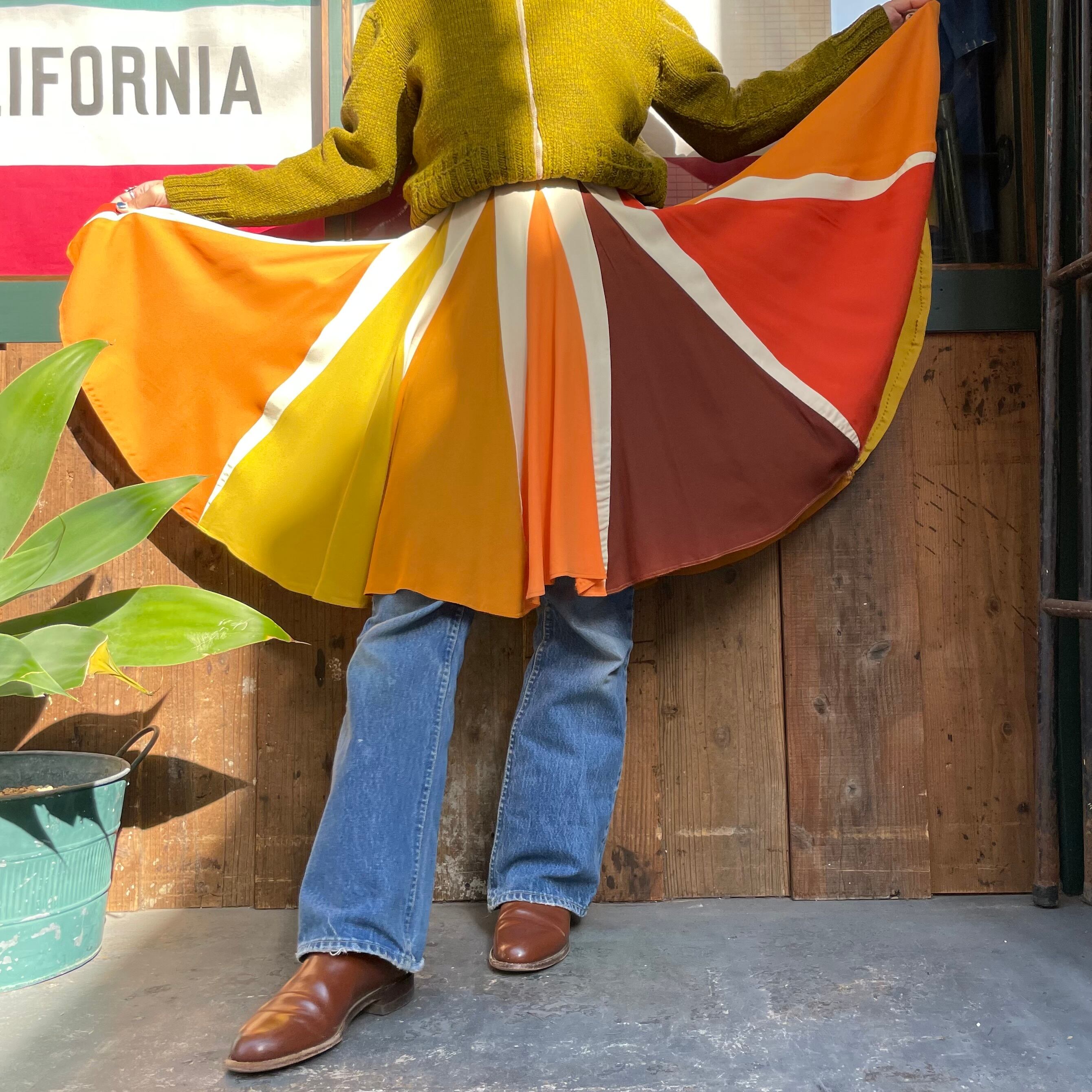 ギザギザの切り替えとグラデーションの色の切り替えがとても素敵な60年代頃のサーキュラースカートです。