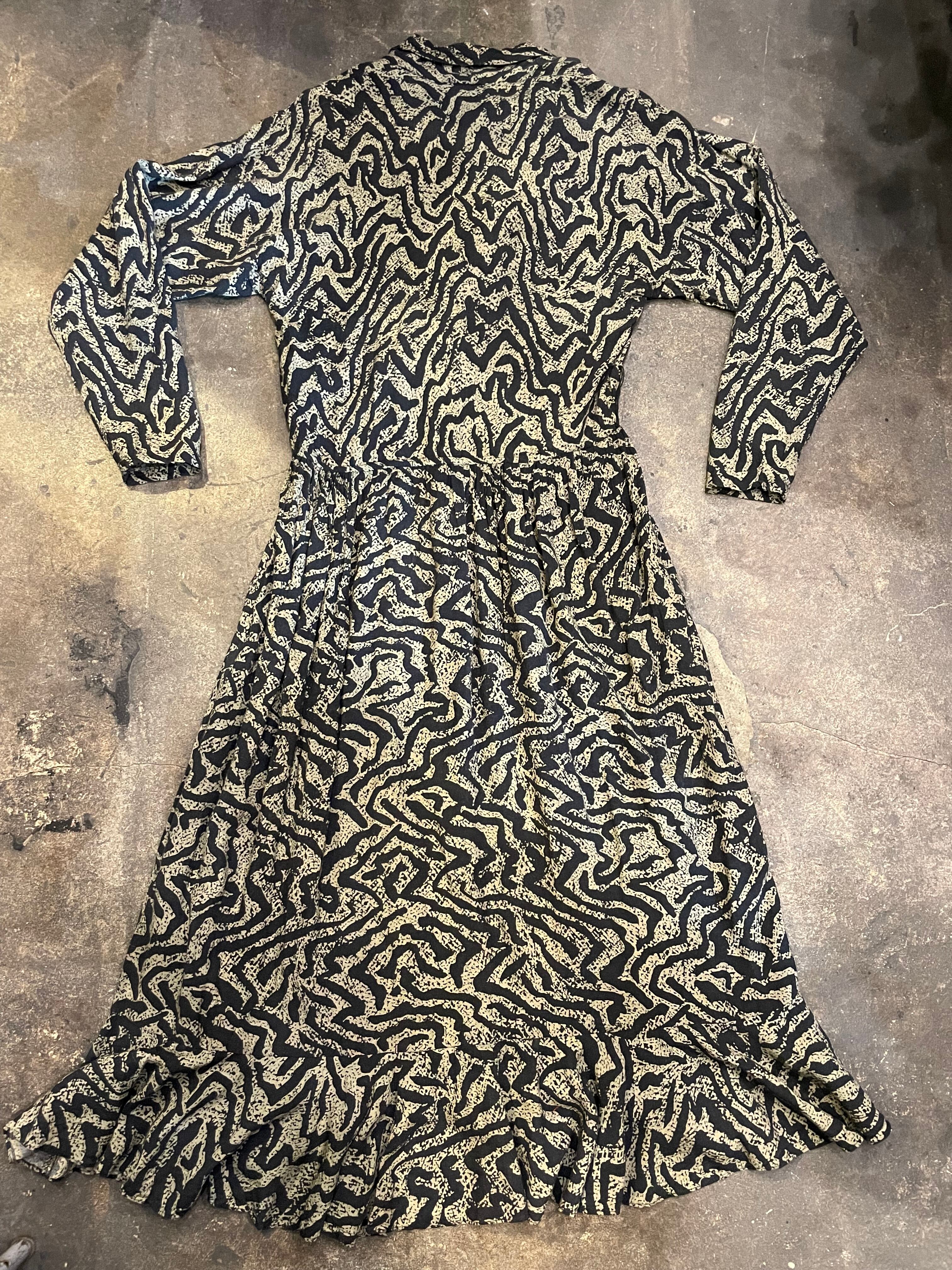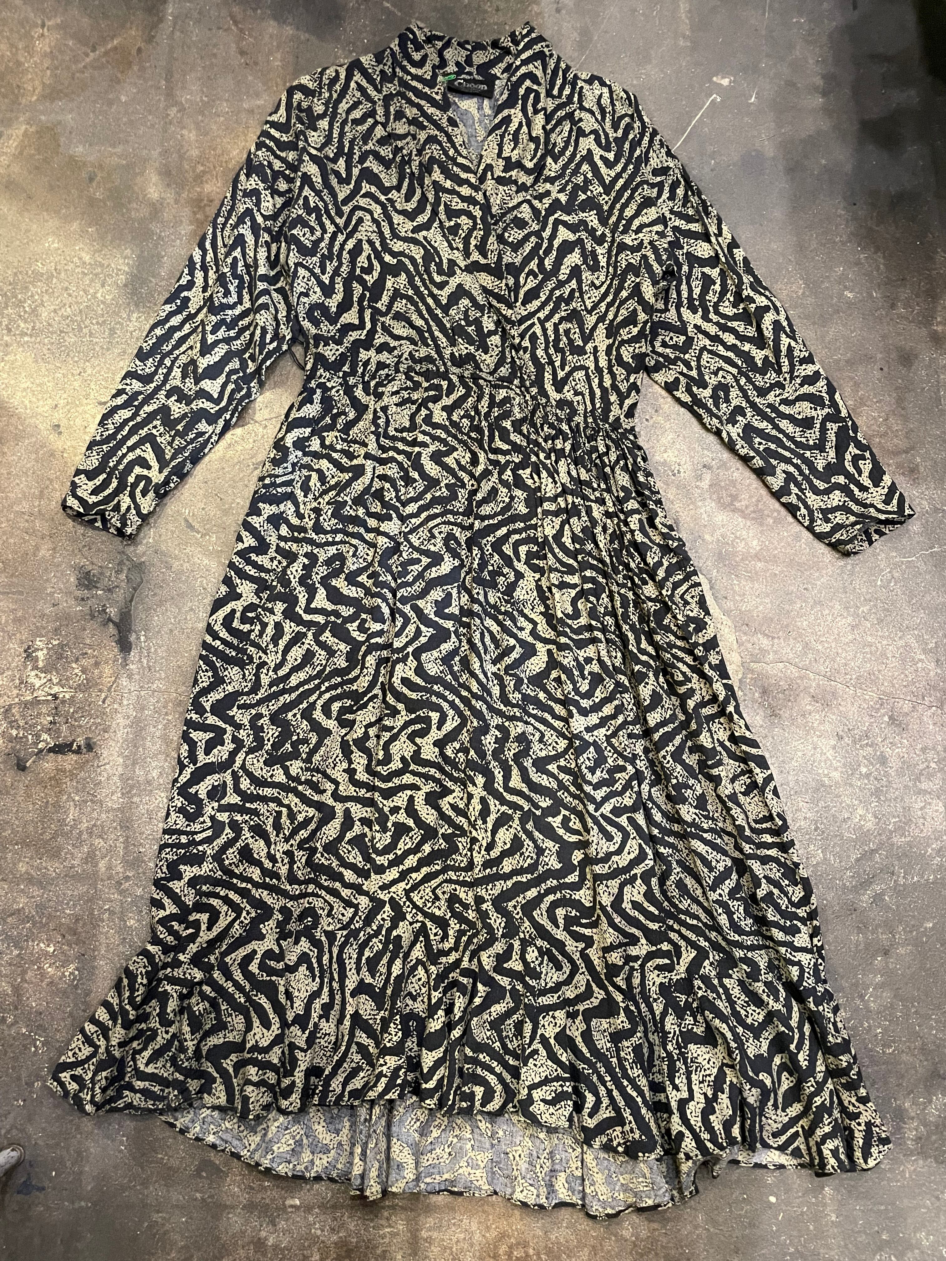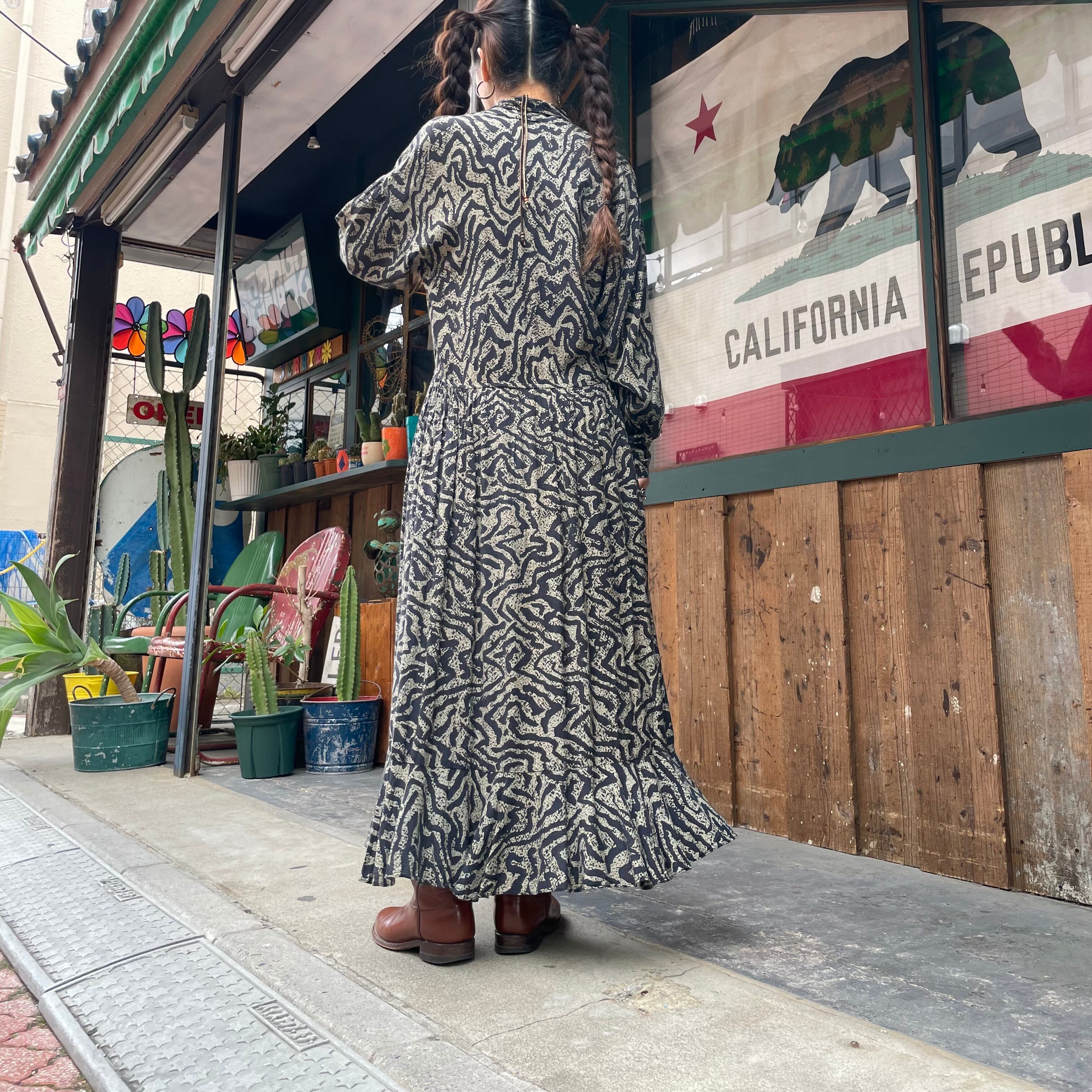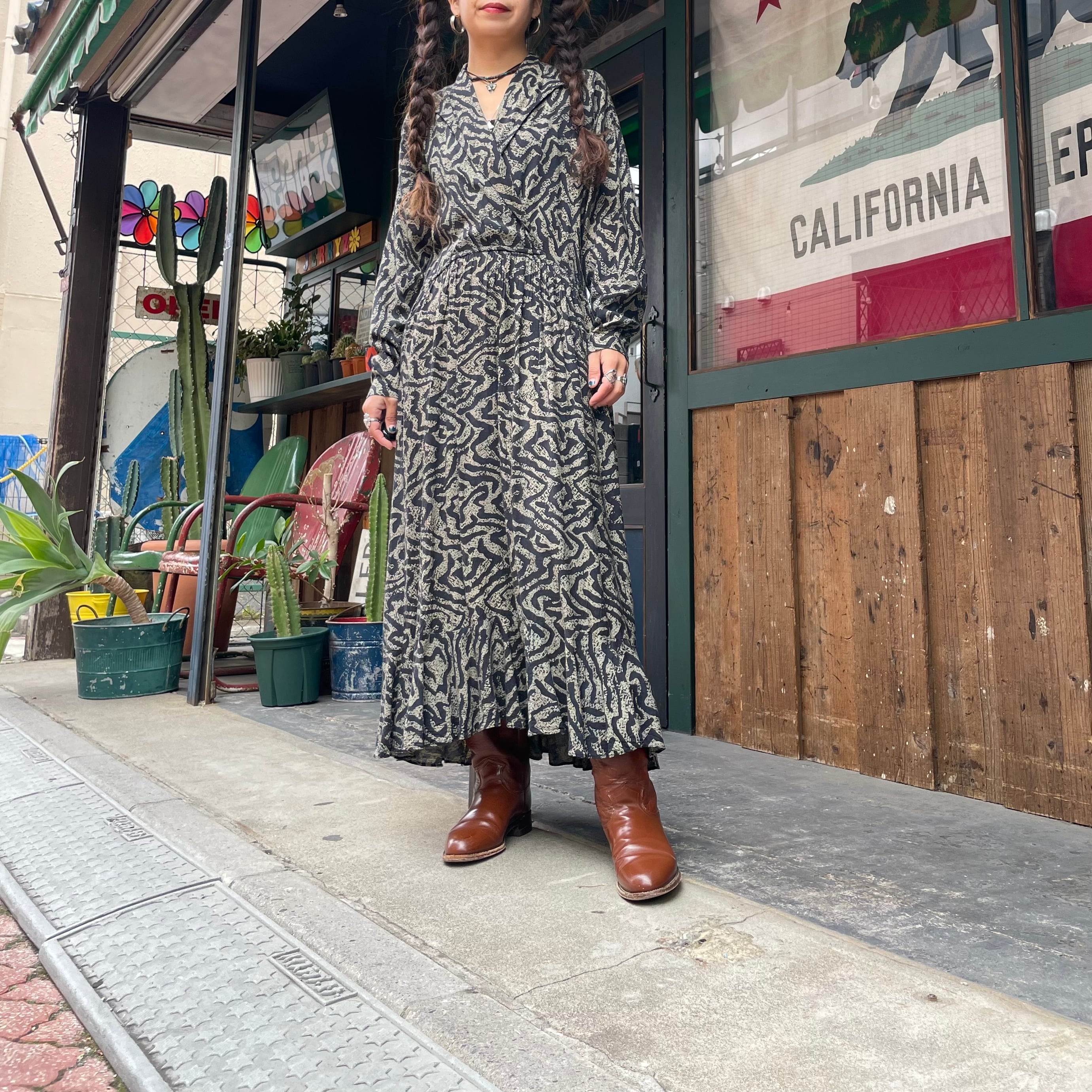 うねうねした模様と渋めなカラーが大人っぽくてかっこいいワンピースです。