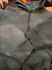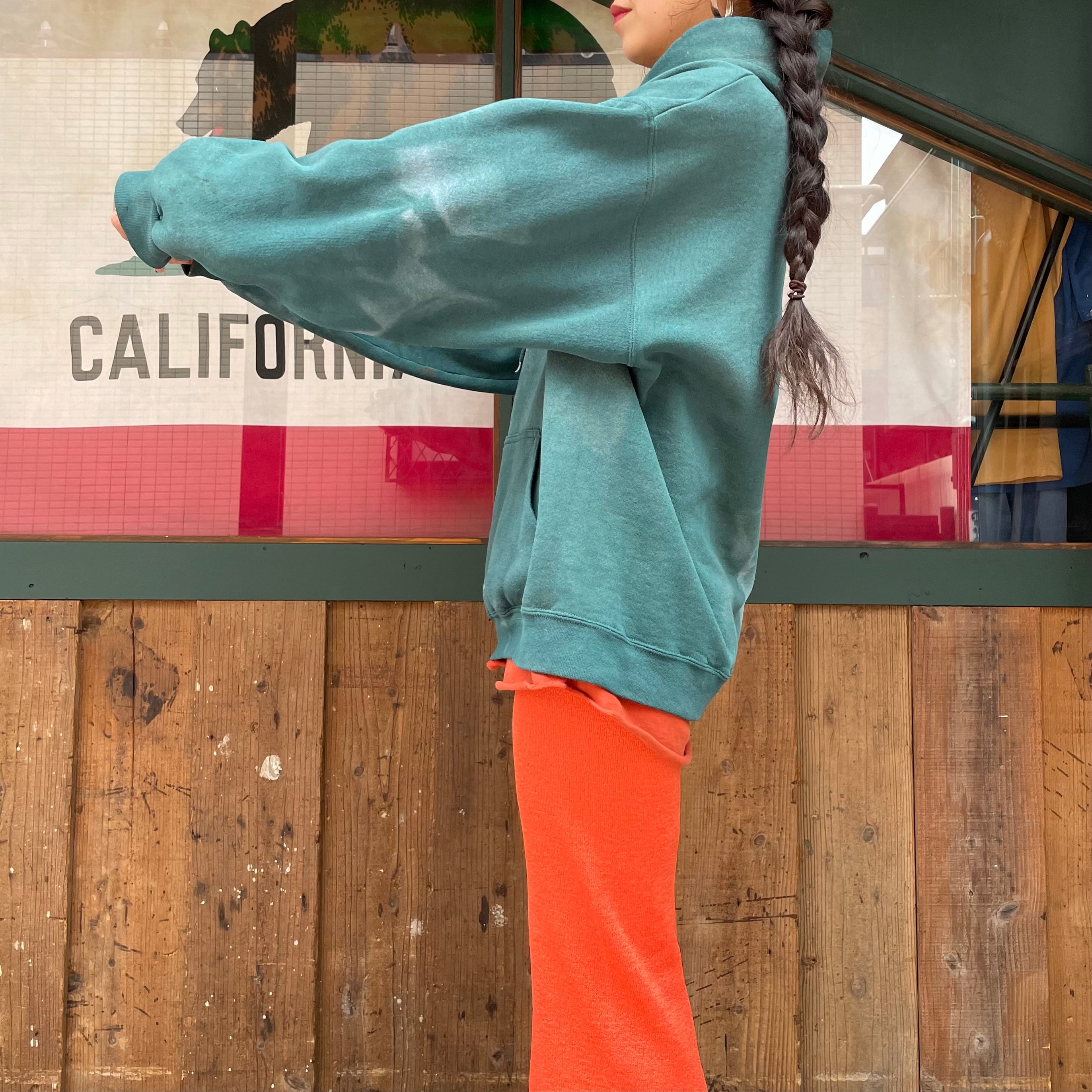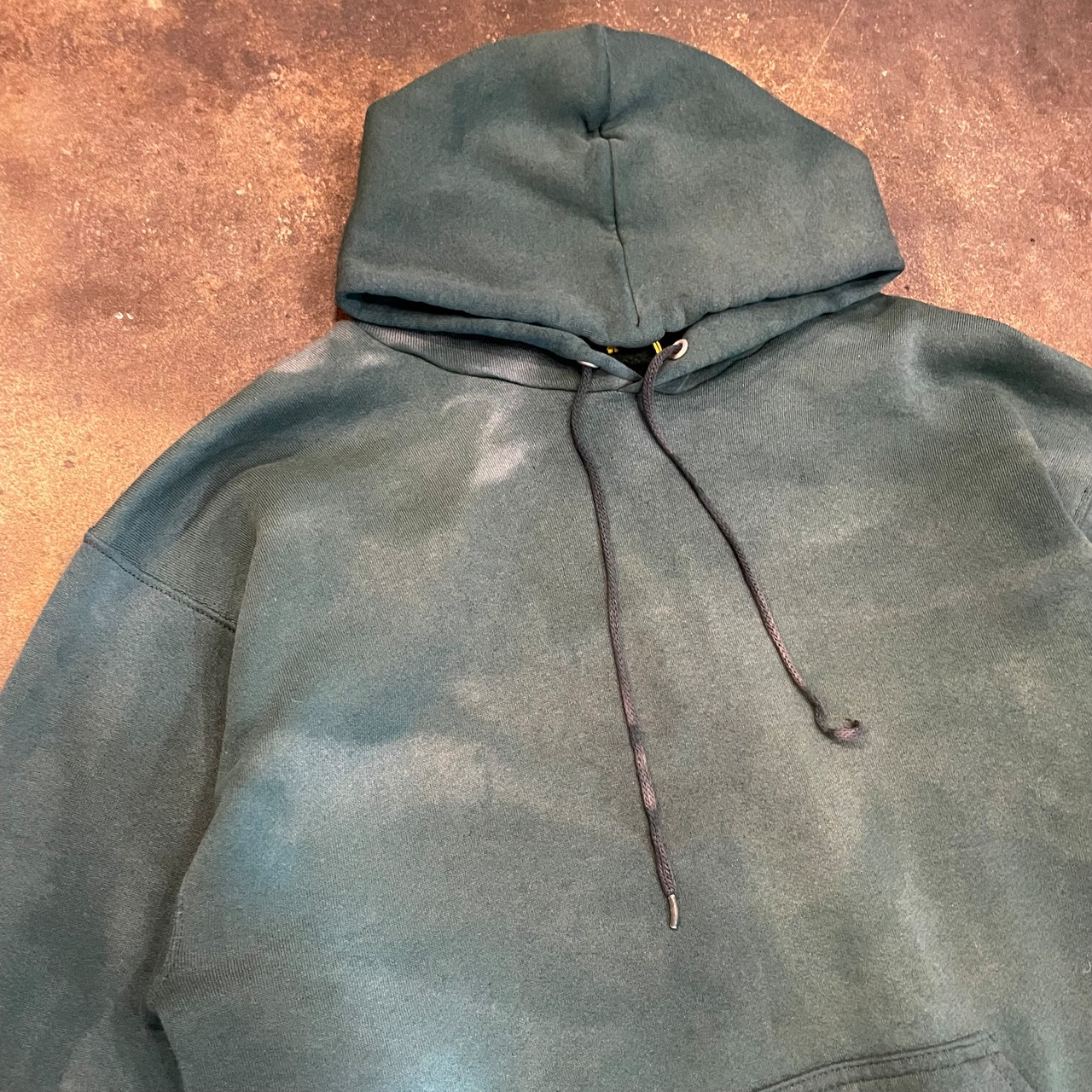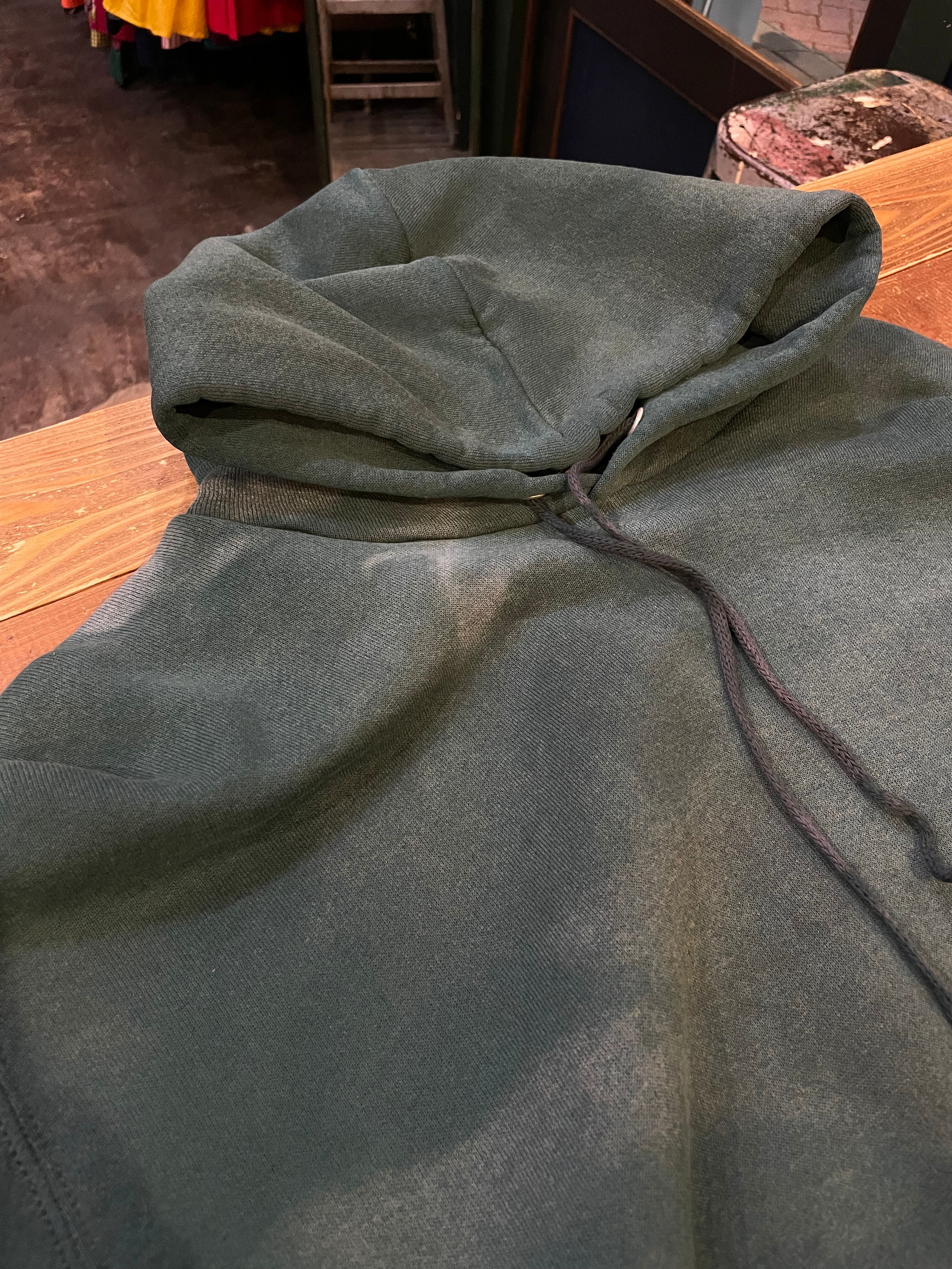 緑が部分的にフェードした雰囲気がかっこいい無地のパーカーです。