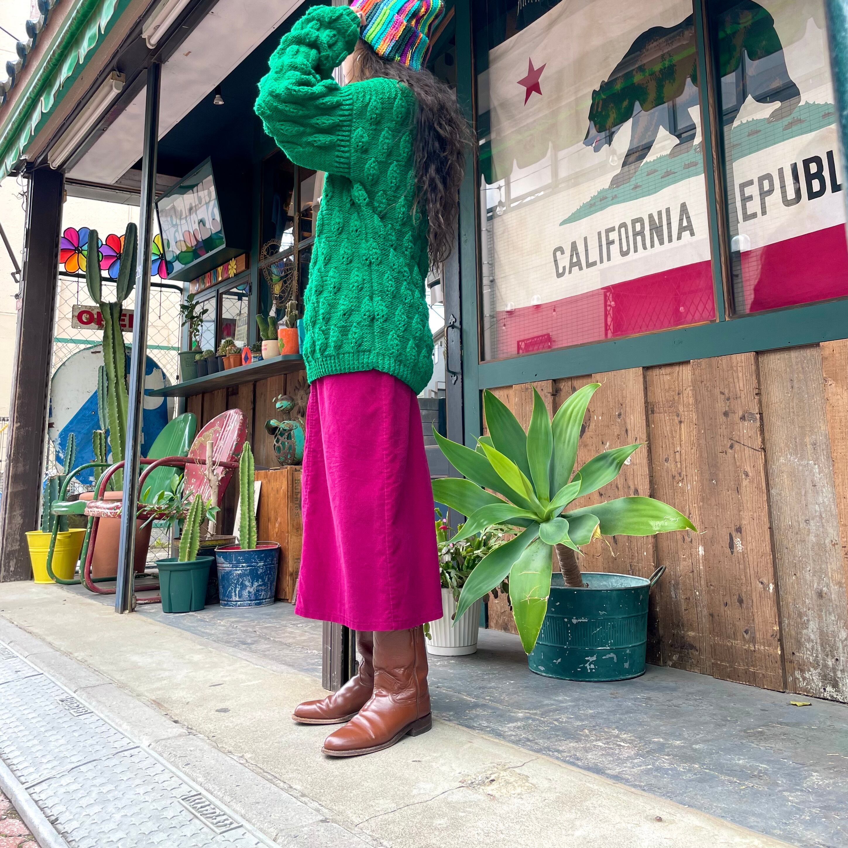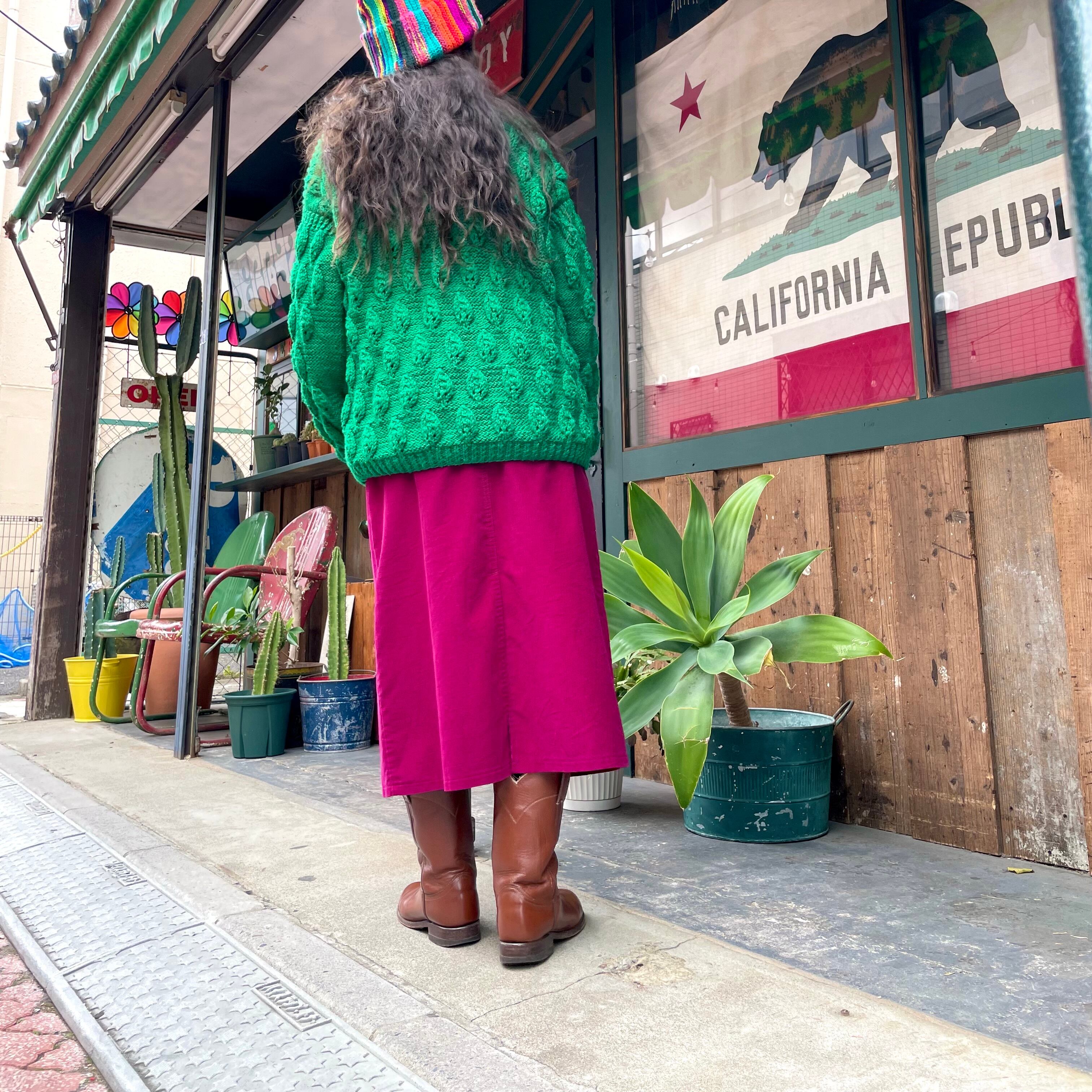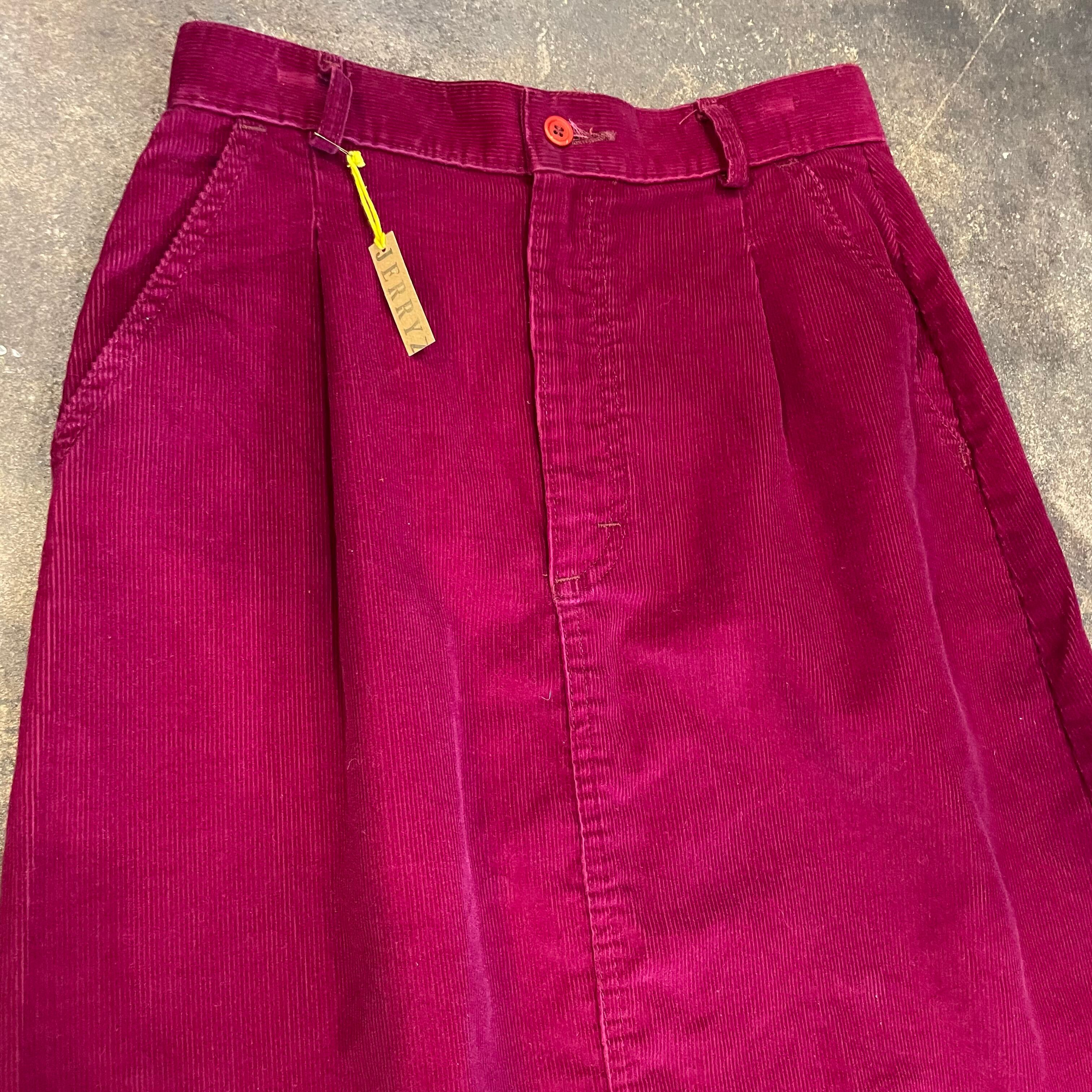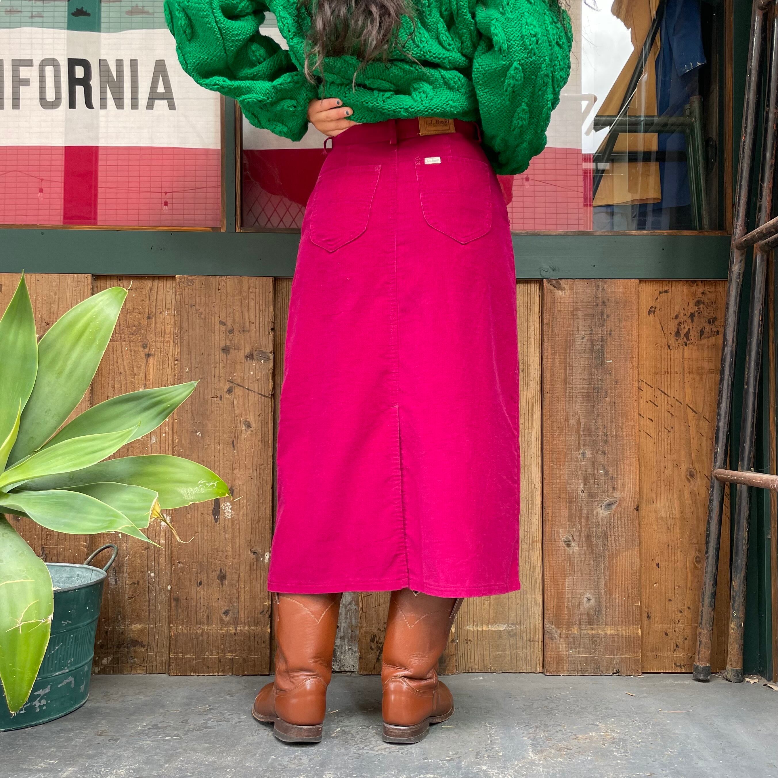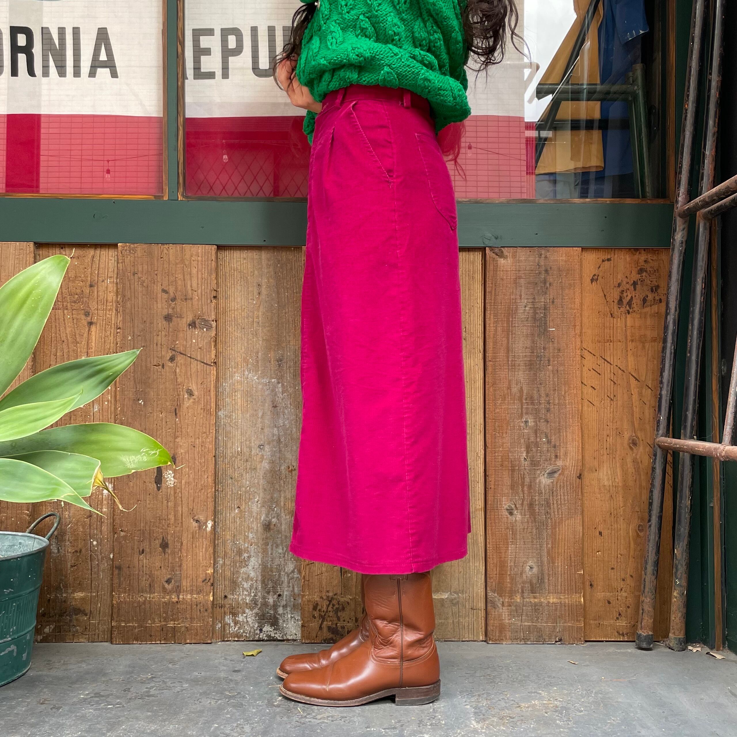 ピンクパープル?ピンクみのえんじ?のような絶妙な色味がかわいいコーデュロイのスカートです。