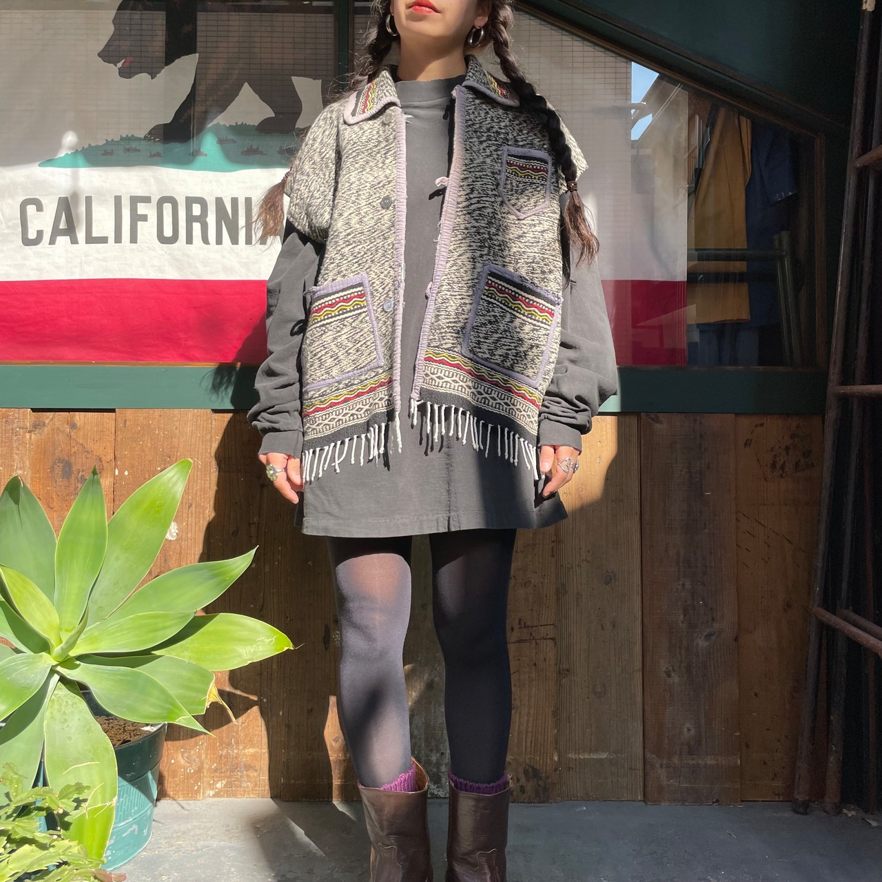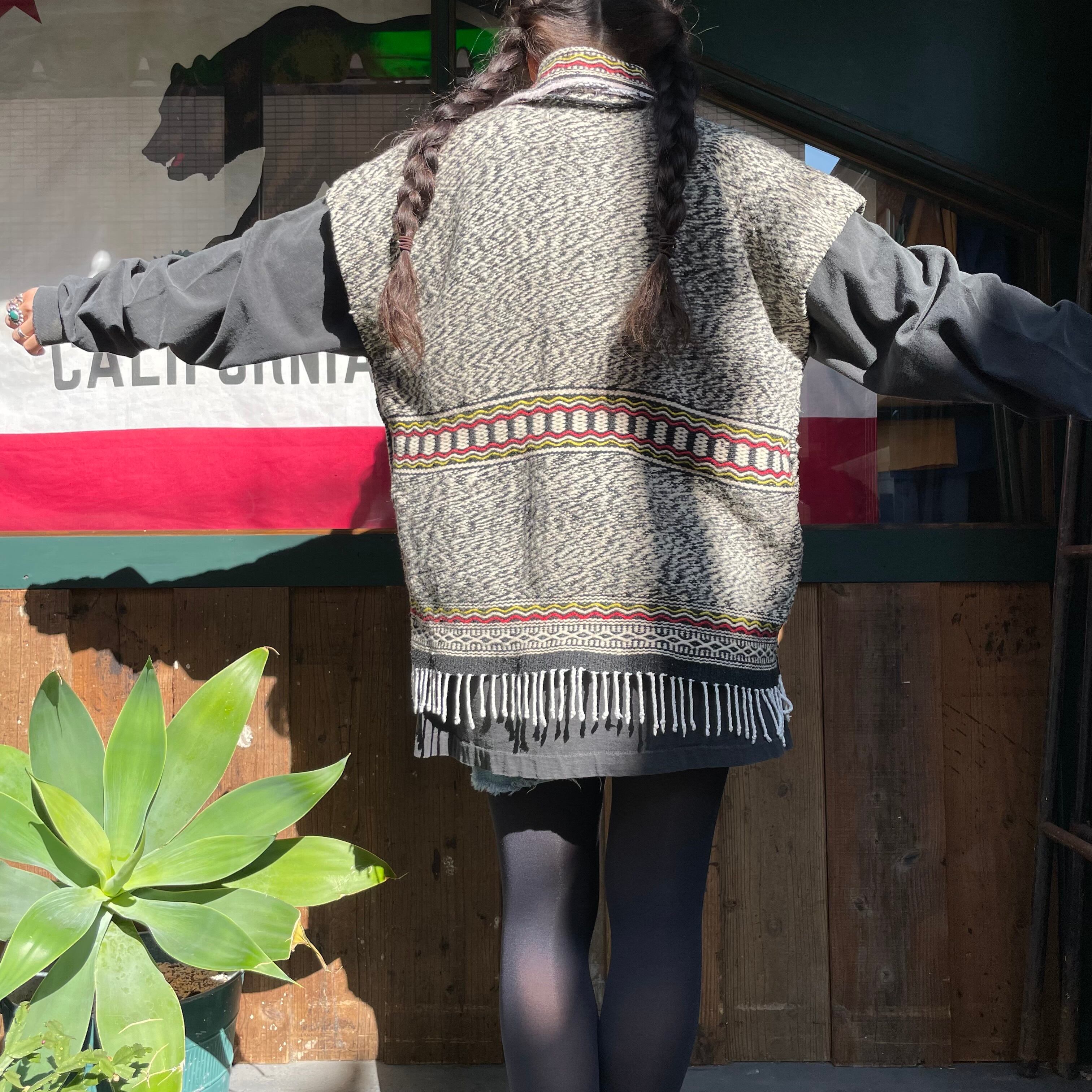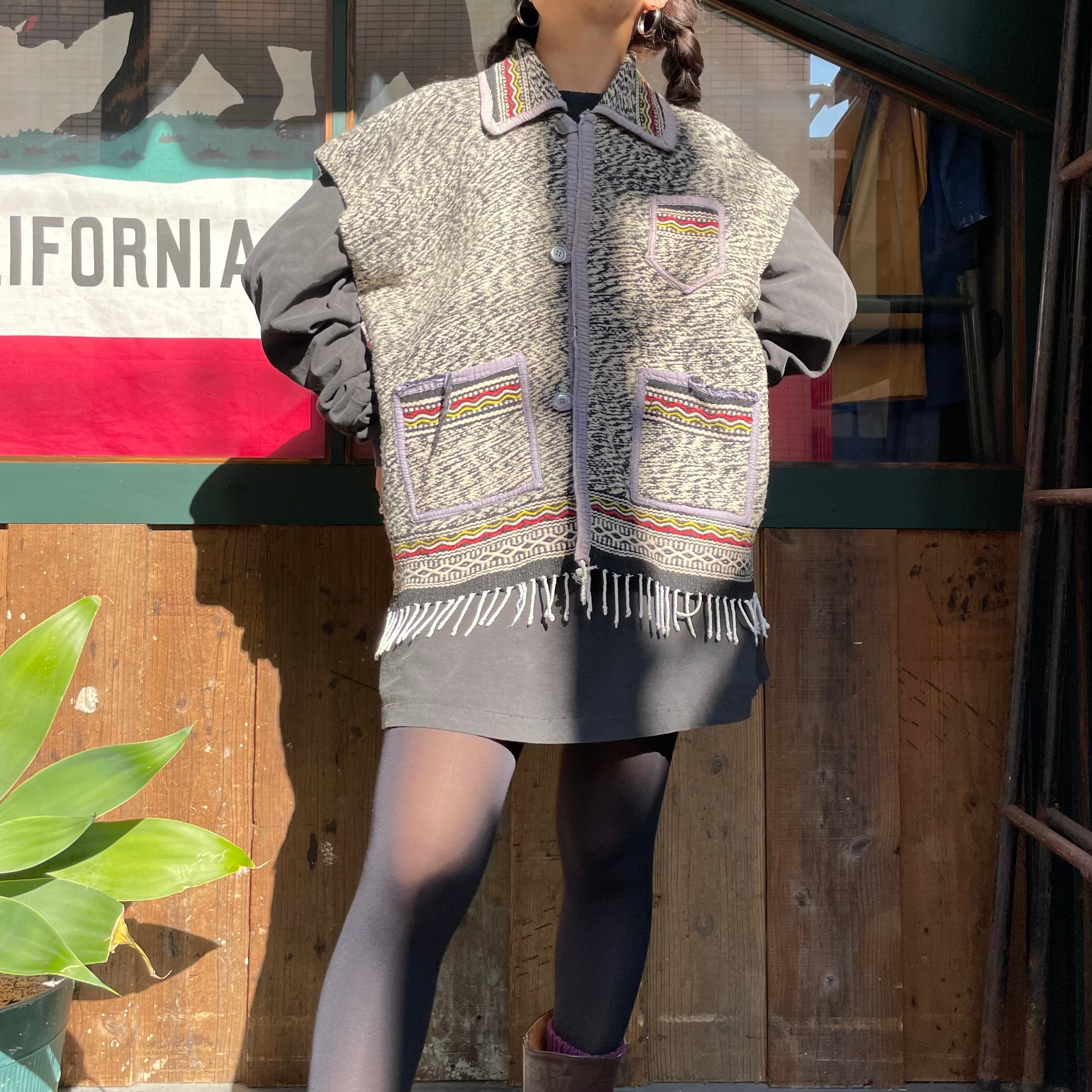 タグは無いので詳細は不明ですが、おそらくメキシコのラグのような織りがかわいいベストです。