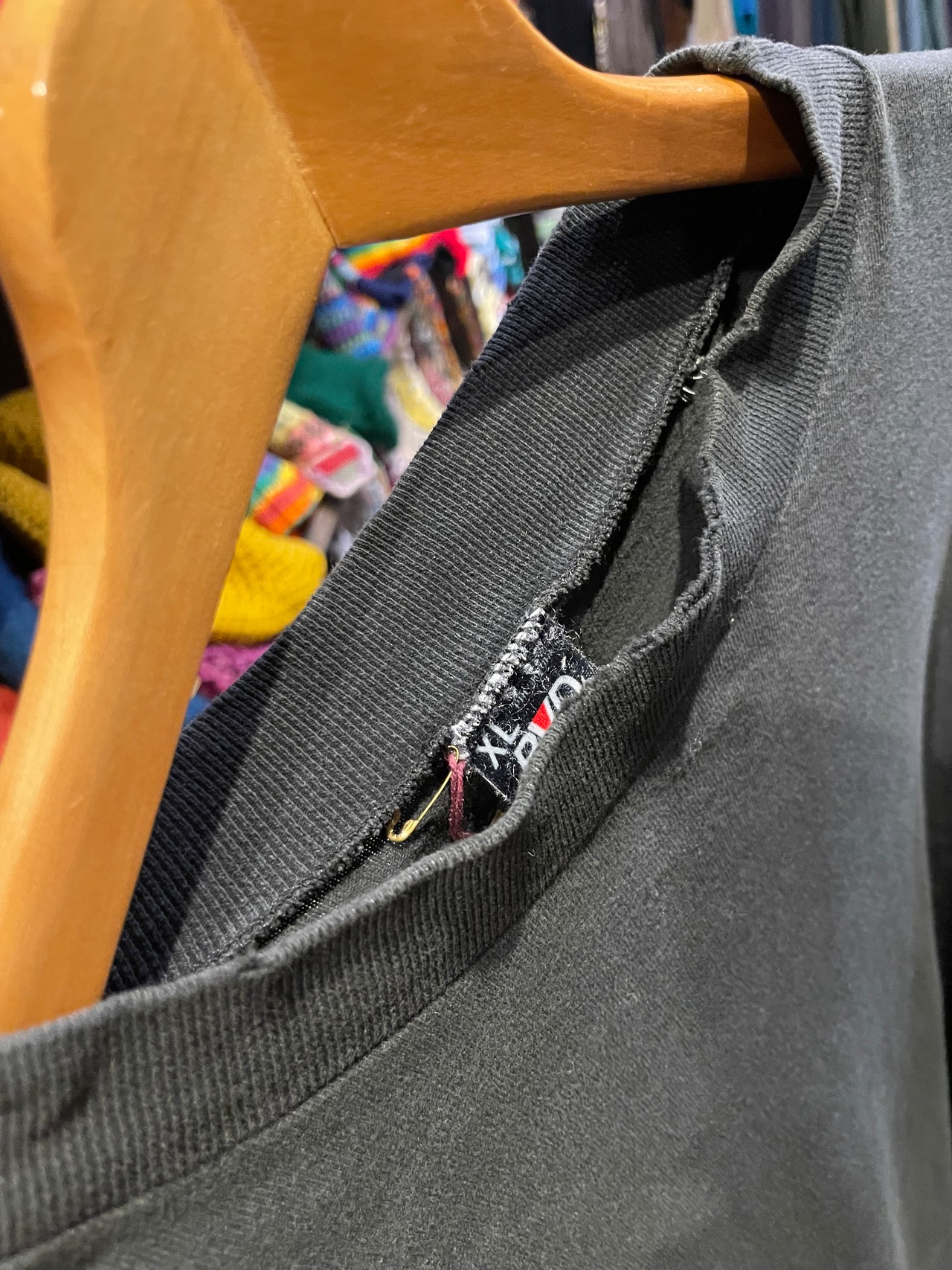 襟ぐりや袖口の傷、全体的な色褪せやシミ等ダメージのある商品です。古着にご理解のある方のご購入をお願い致します。