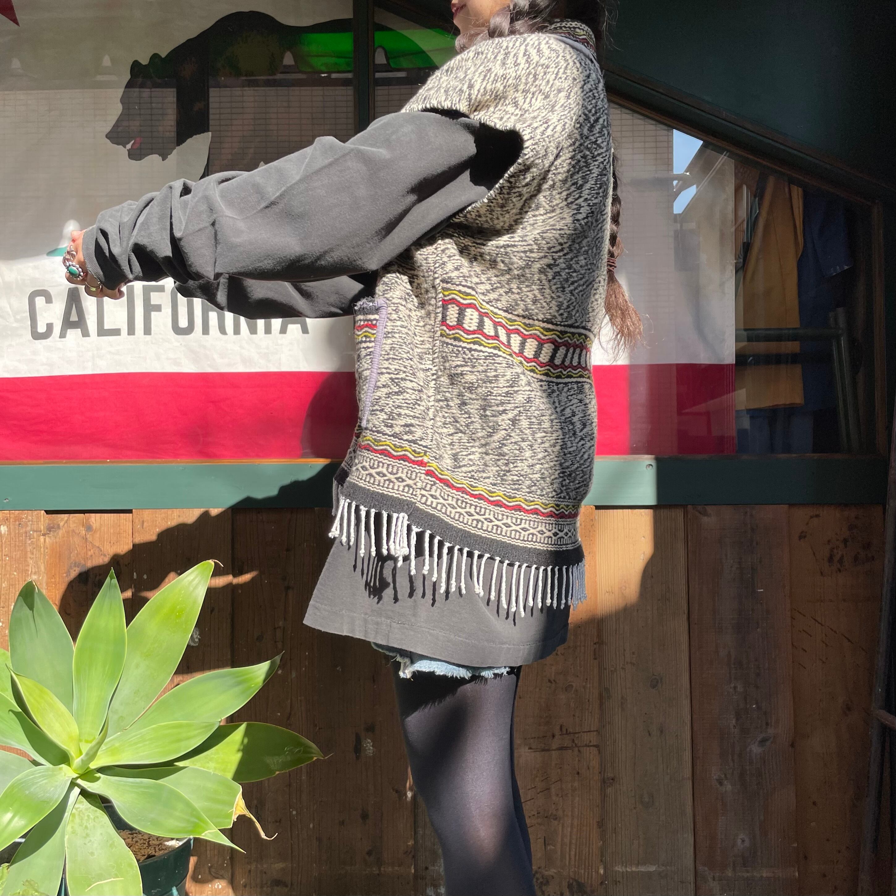 かなり大きめなシルエットがゆるくてかわいいですね。ミニワンピースのように着てニット帽に靴下スニーカーだけでもかわいいですし、柄のロングスカートやベルボトムとの相性も良さそうです。