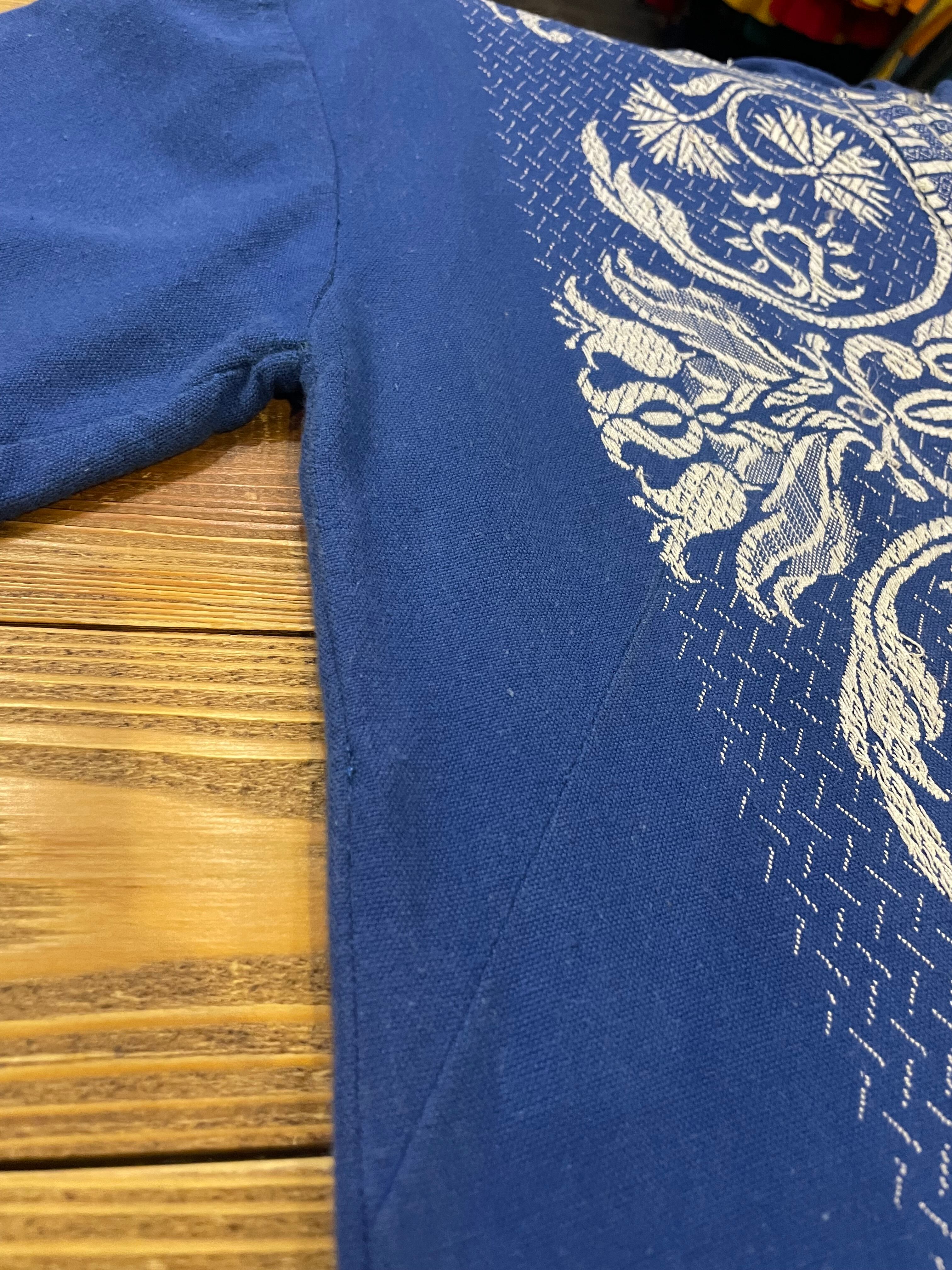 織りの模様が鳥やお花で全面に施されていてかわいい、ギリシャ製のフード付きワンピースです。