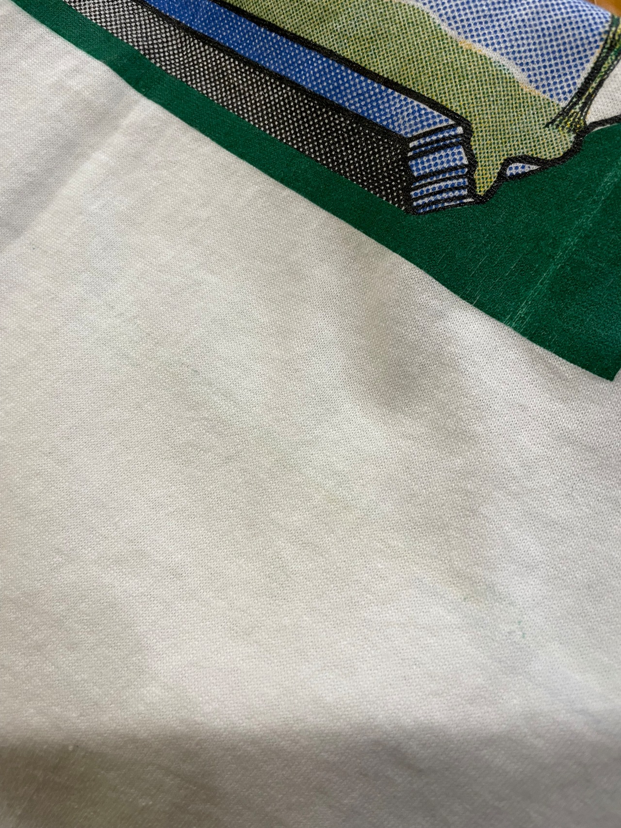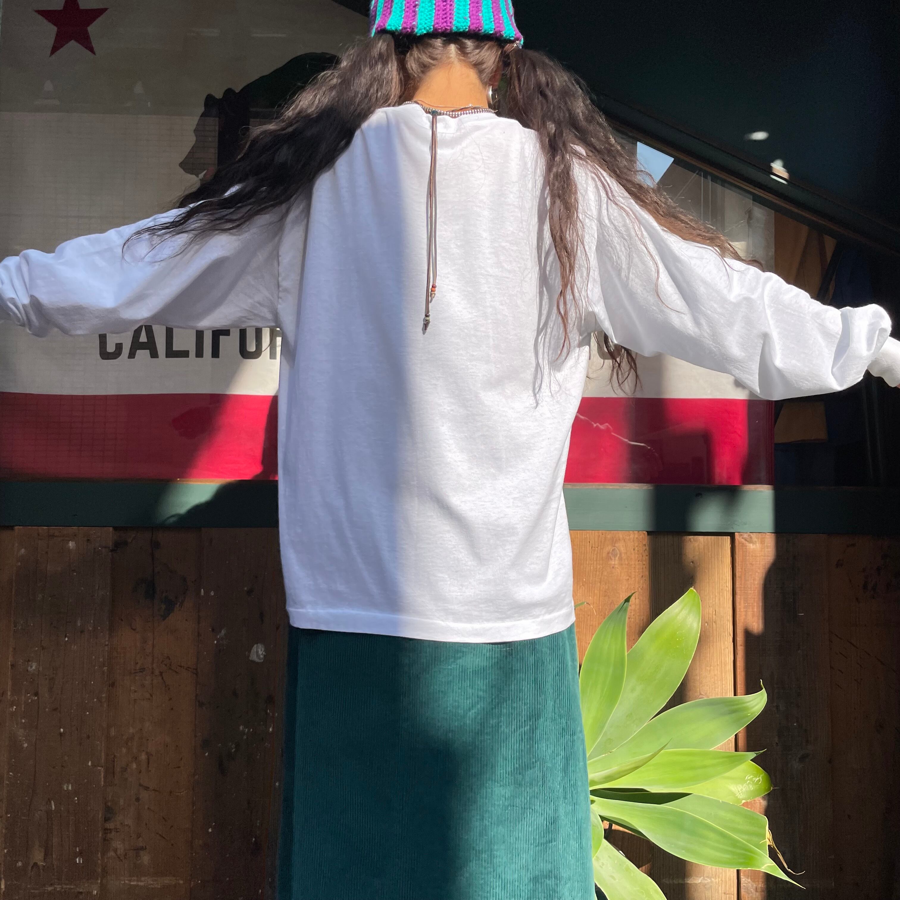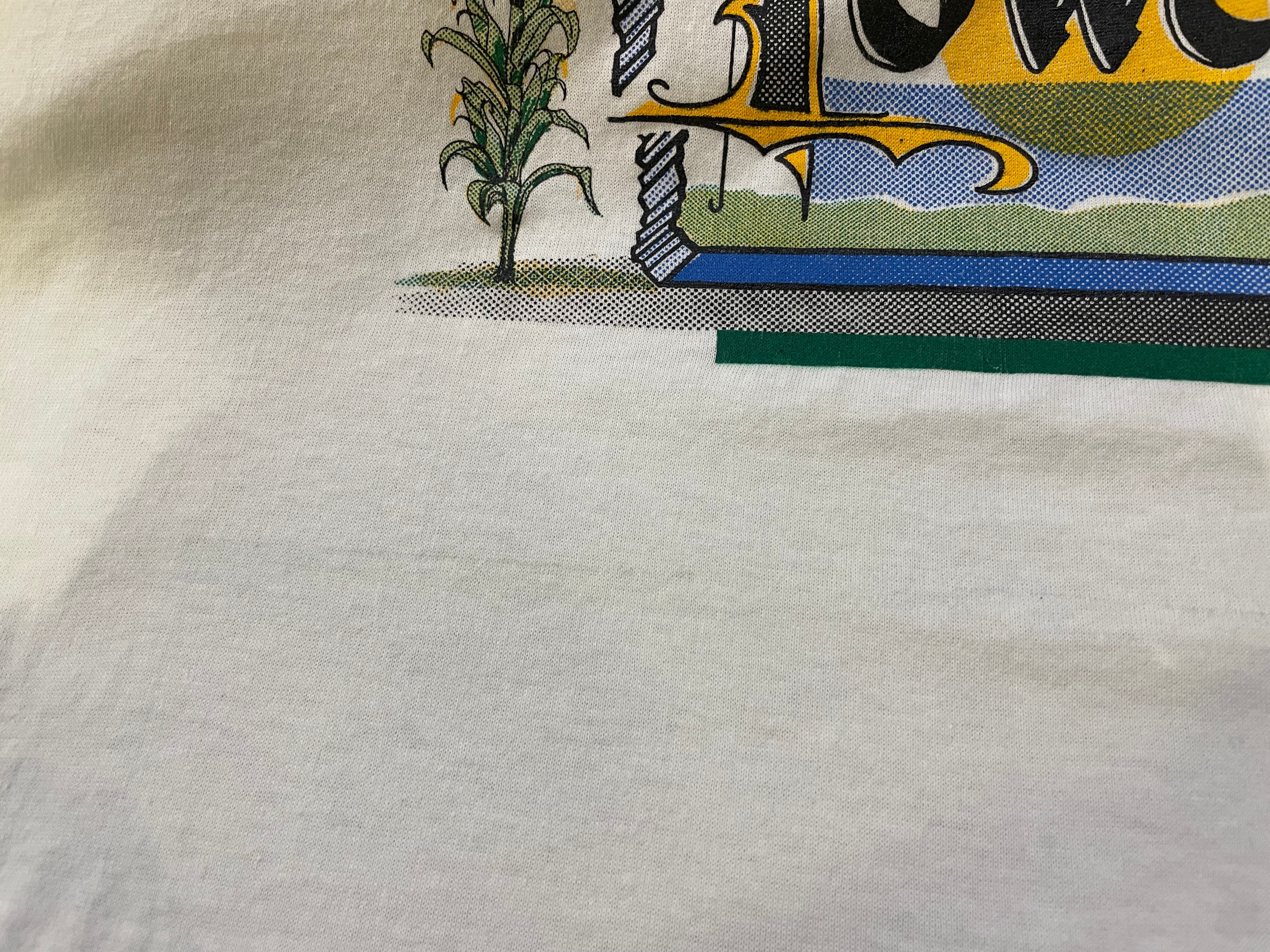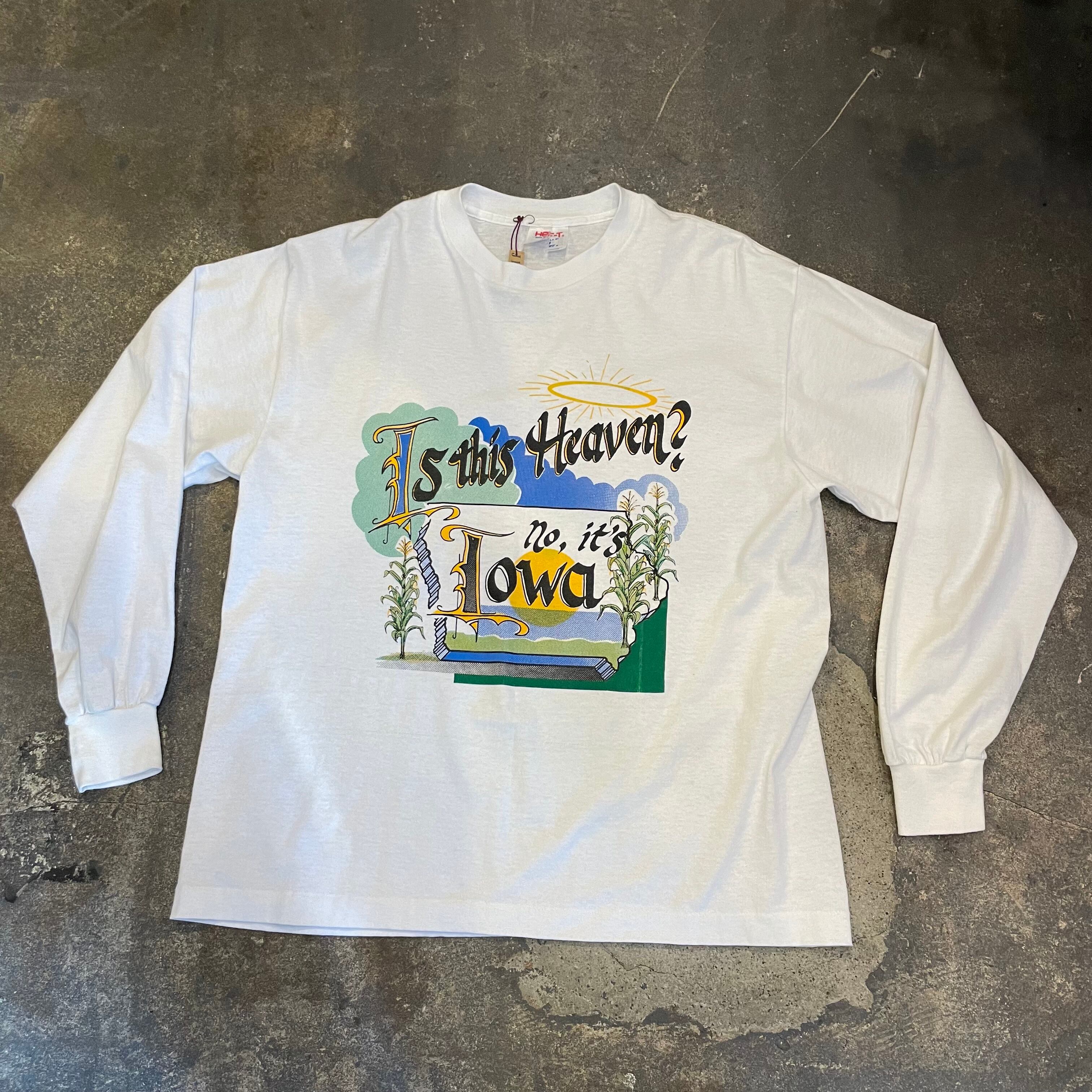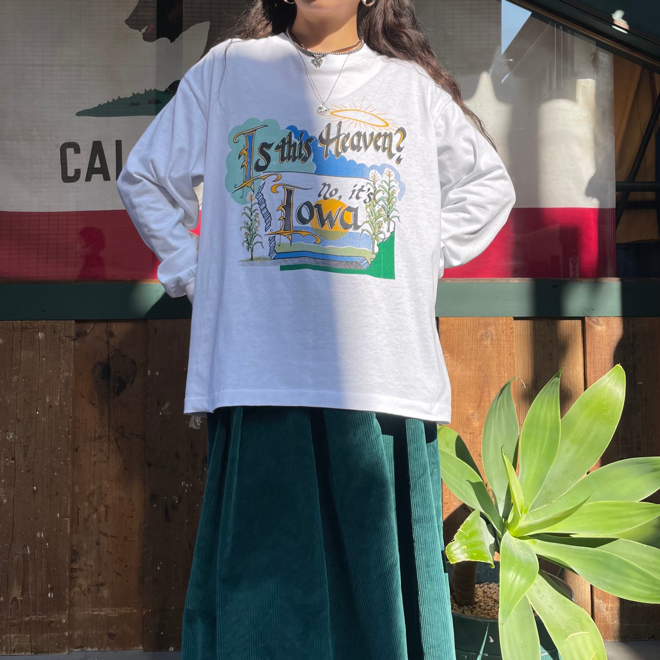 太陽、雲、とうもろこしなどのデザインがポップでかわいい90年代USA製のロンTです。