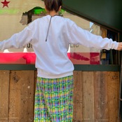 上にカーディガンやジャケット、シャツなどを重ねた時にプリントがポイントになりますし、赤が差し色になってかわいいと思います。