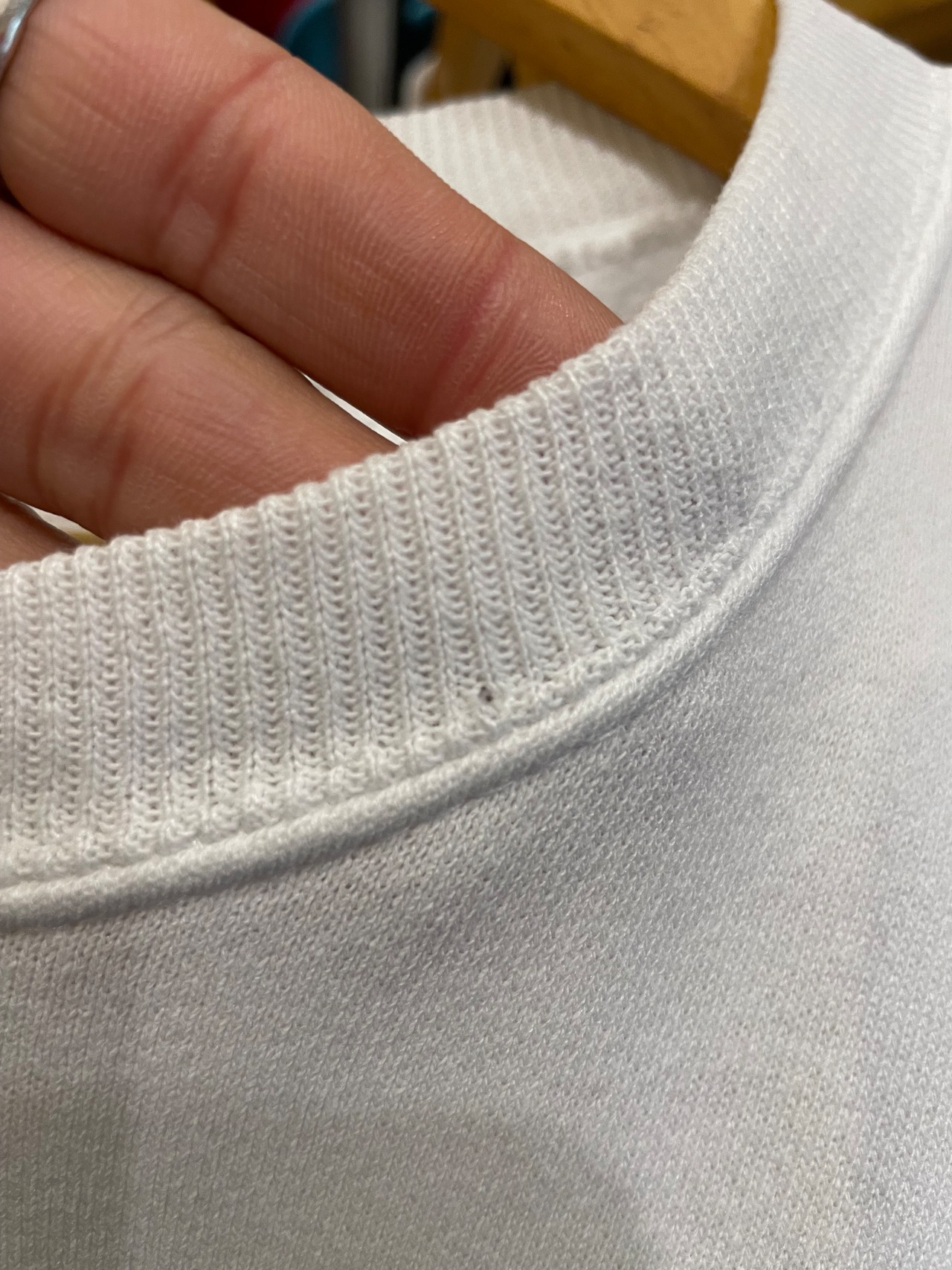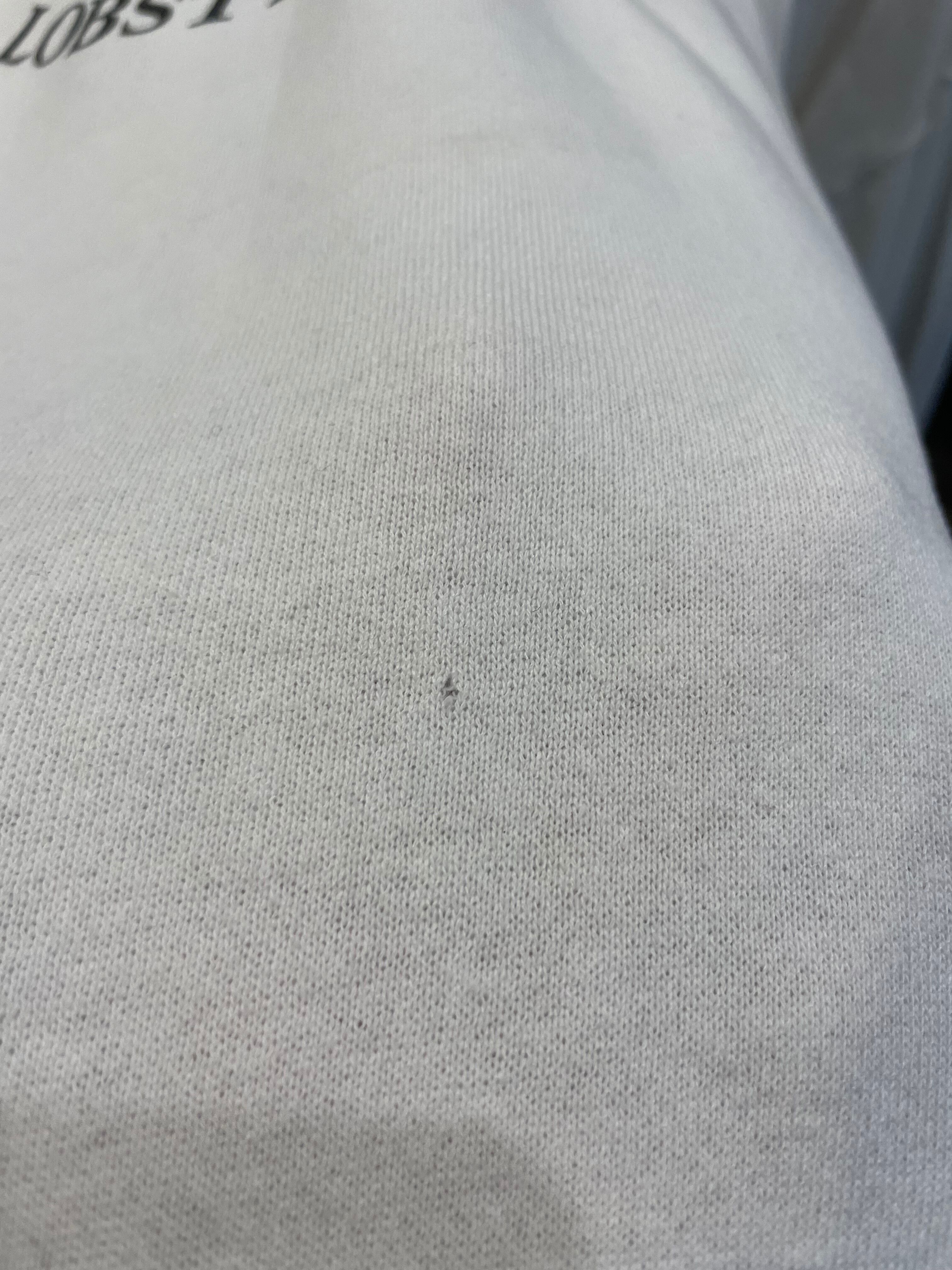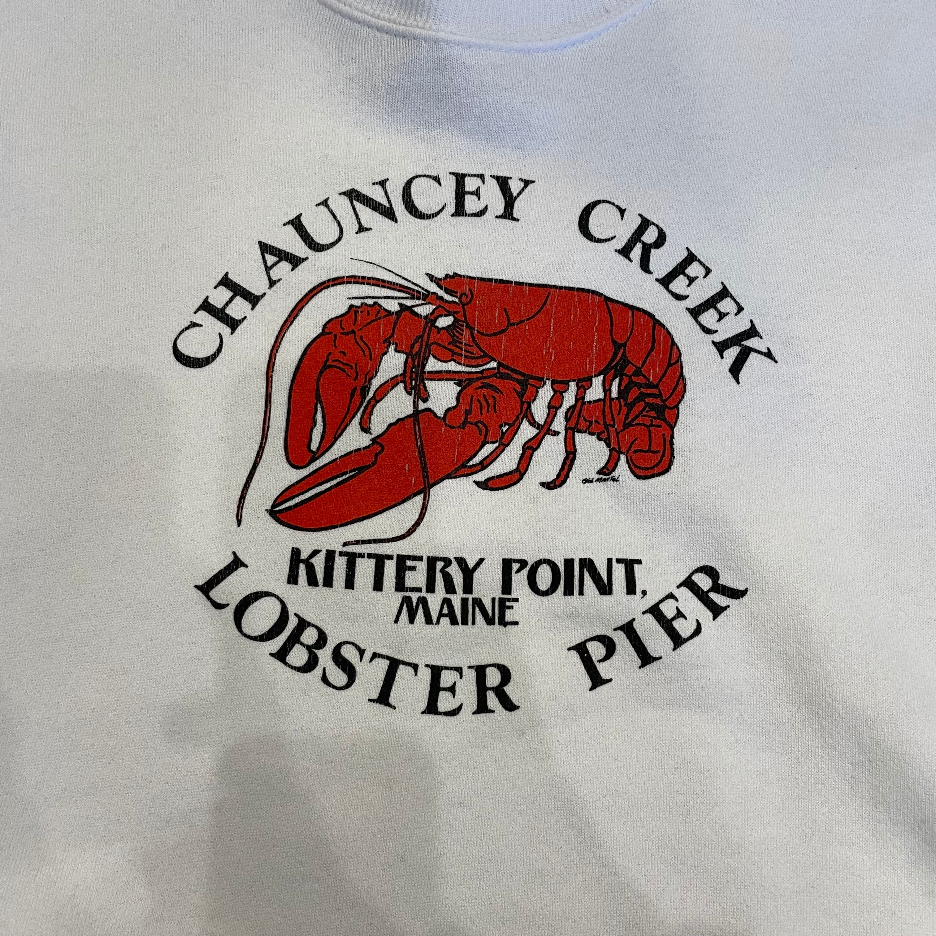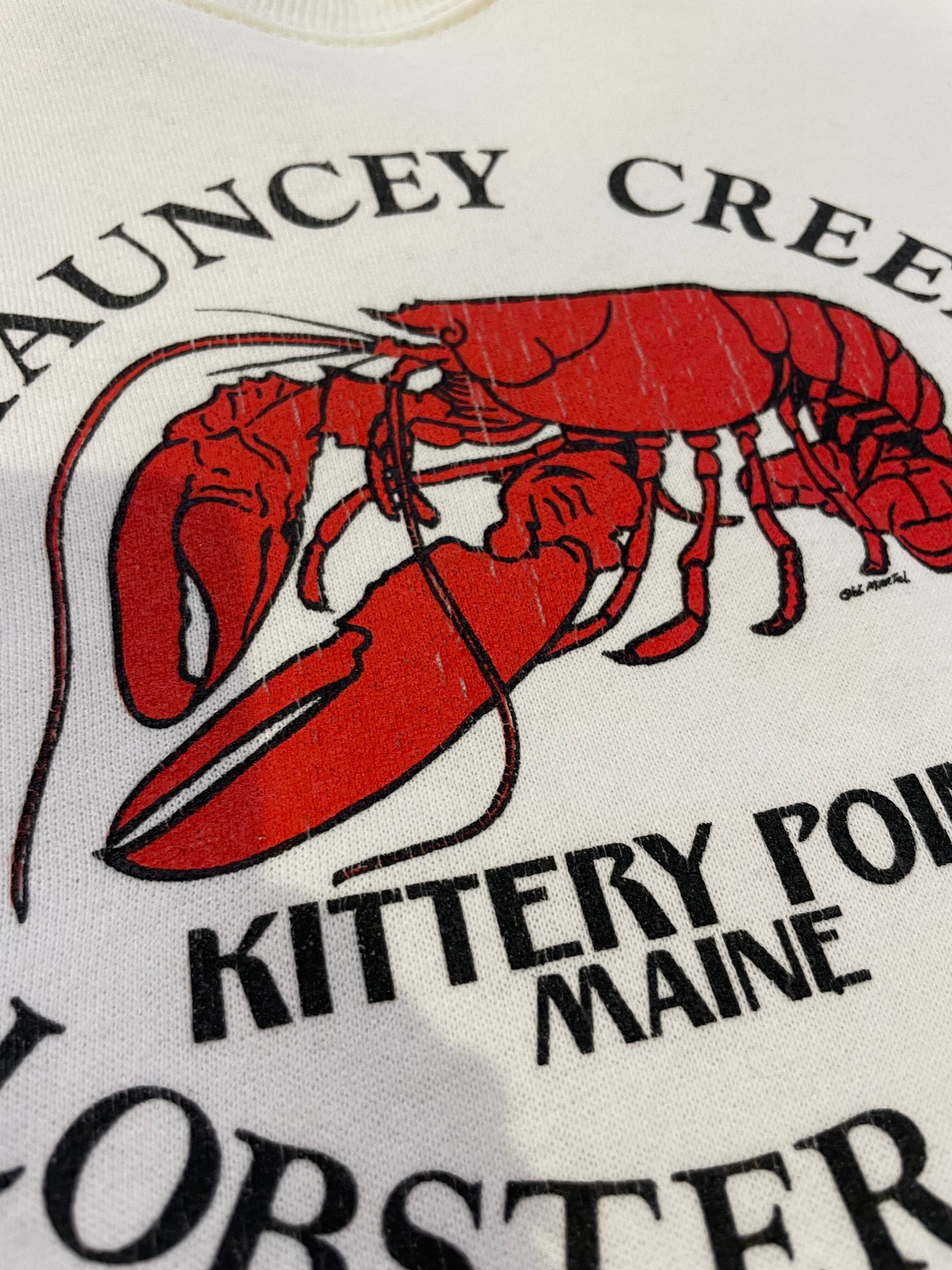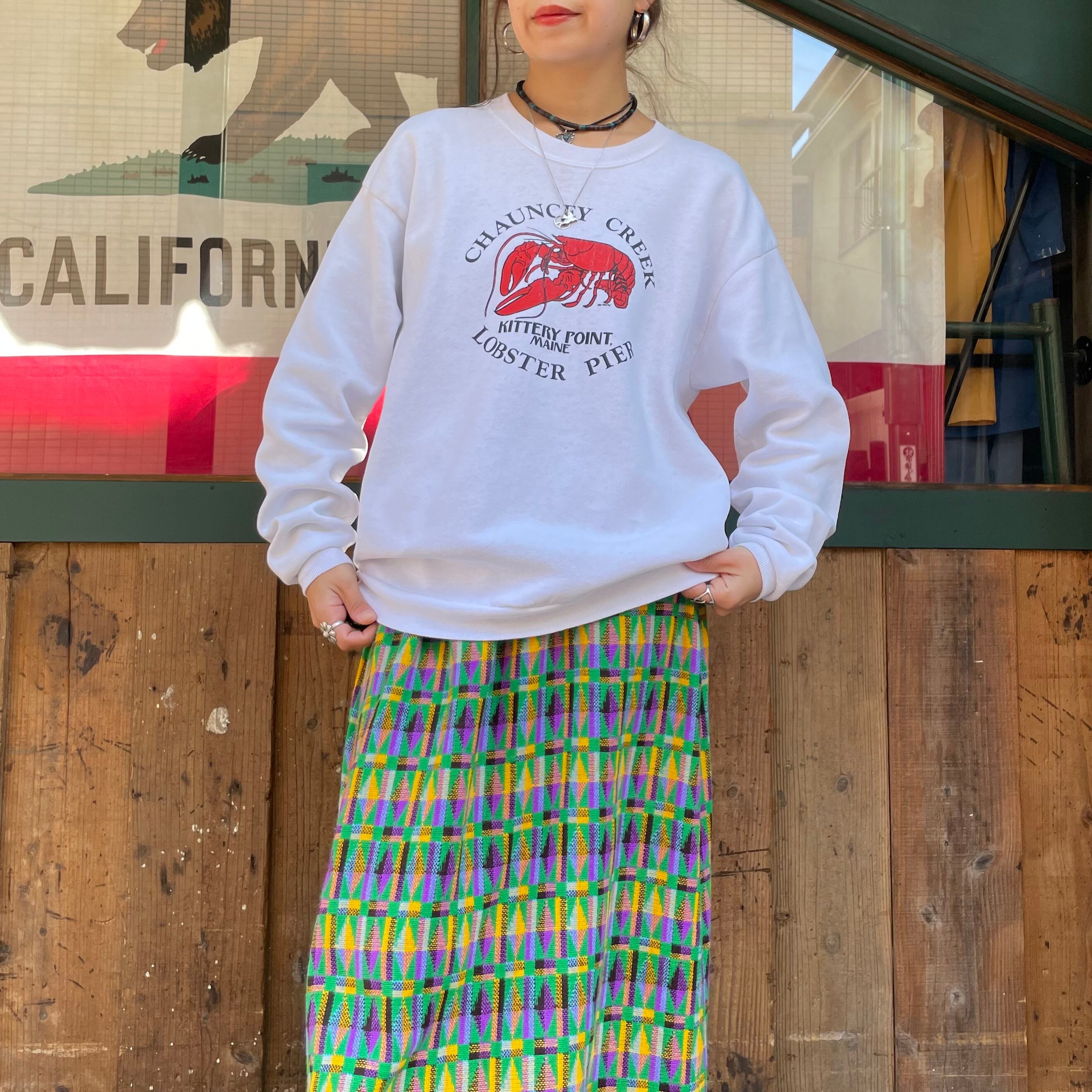 白ボディに赤いロブスターが映えていてかわいいプリントスウェットです。