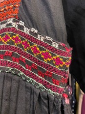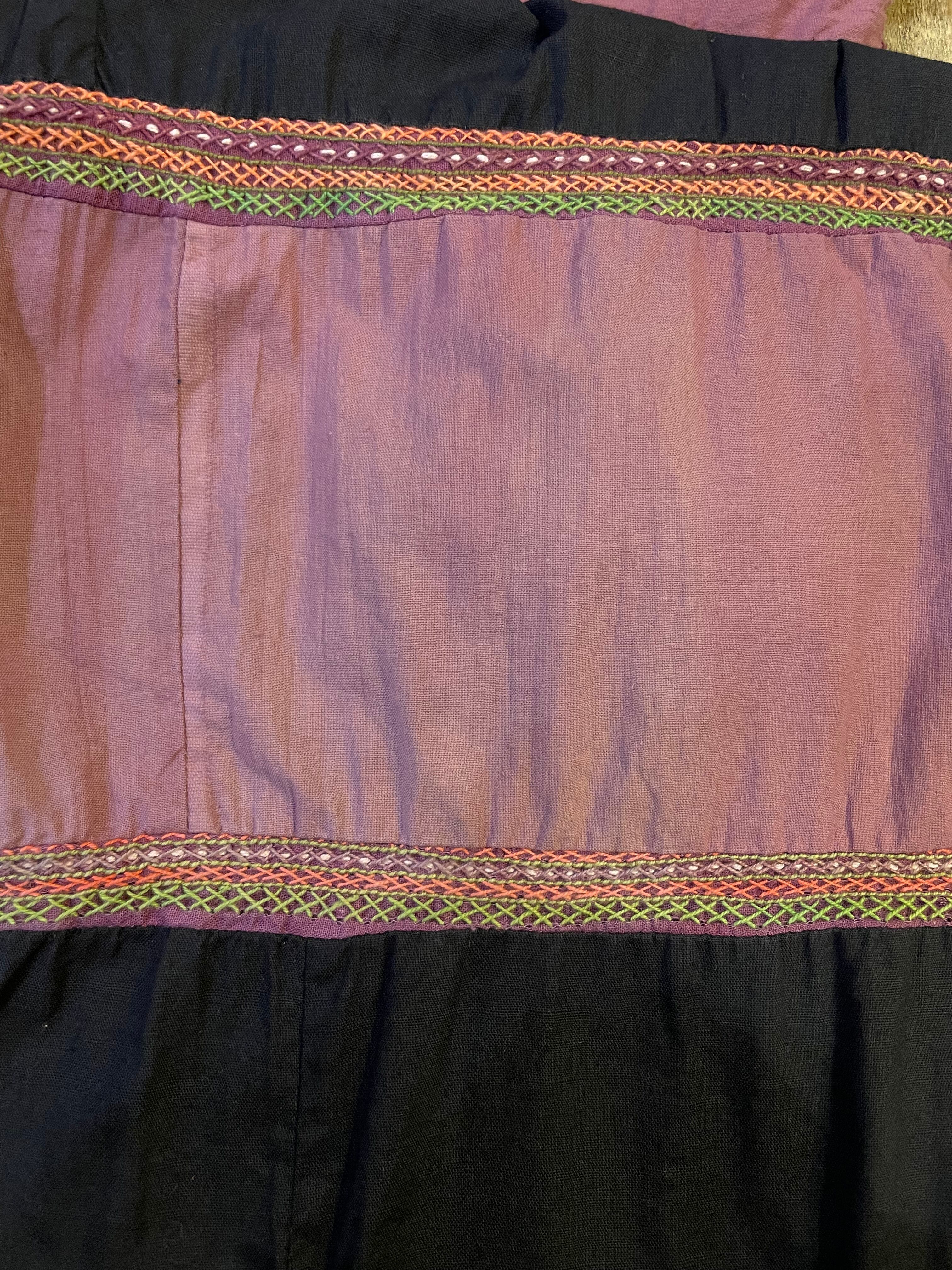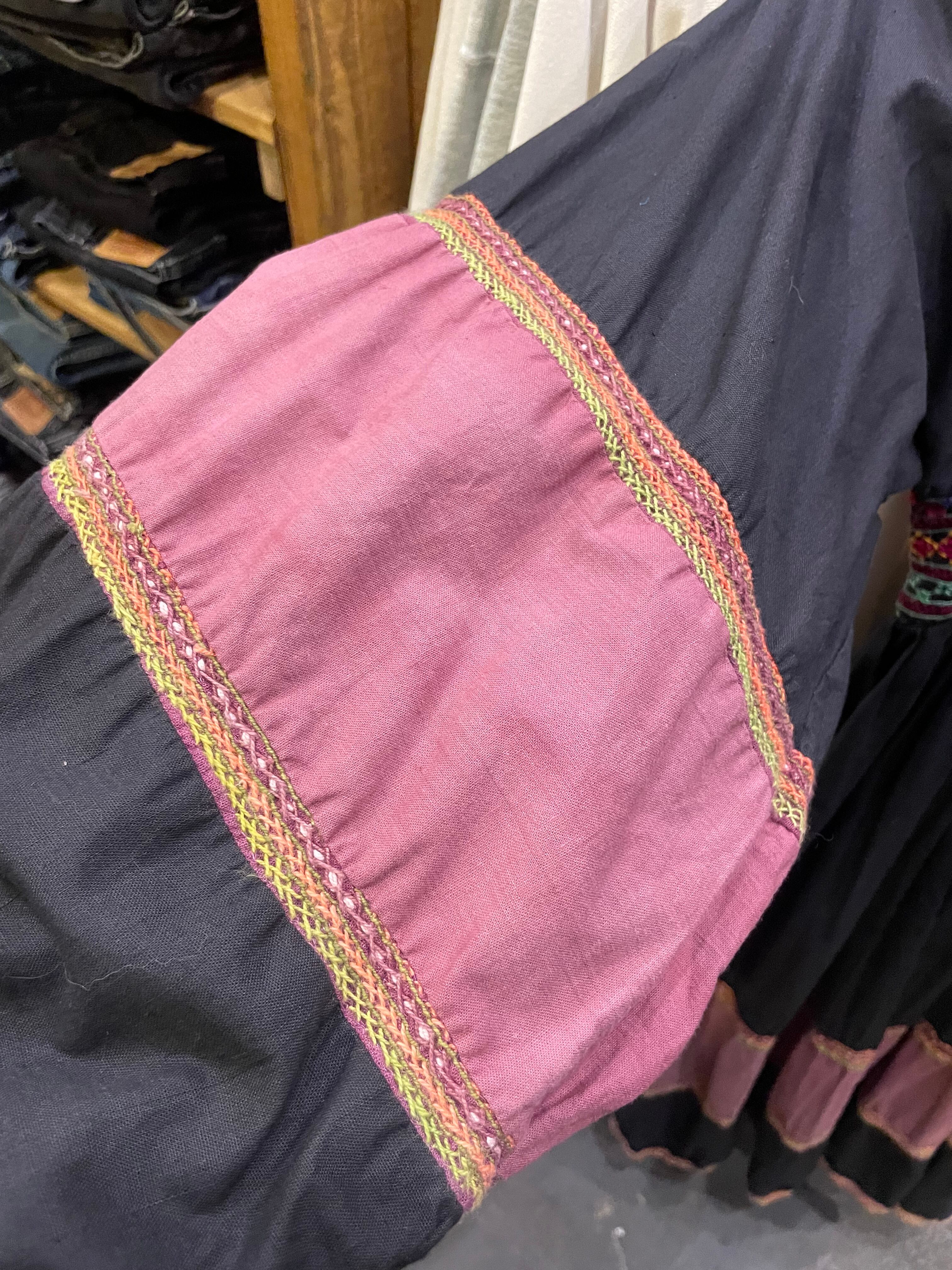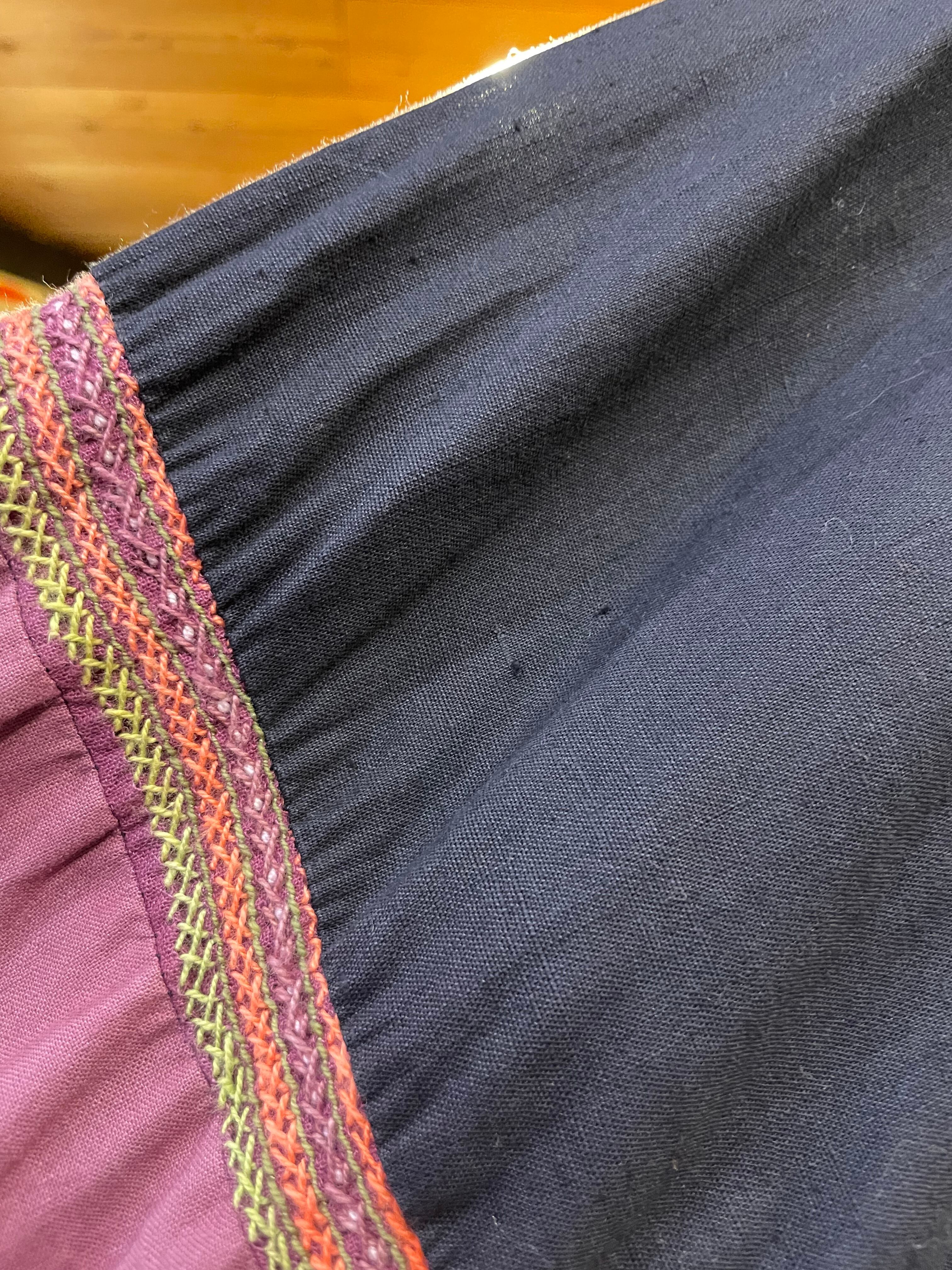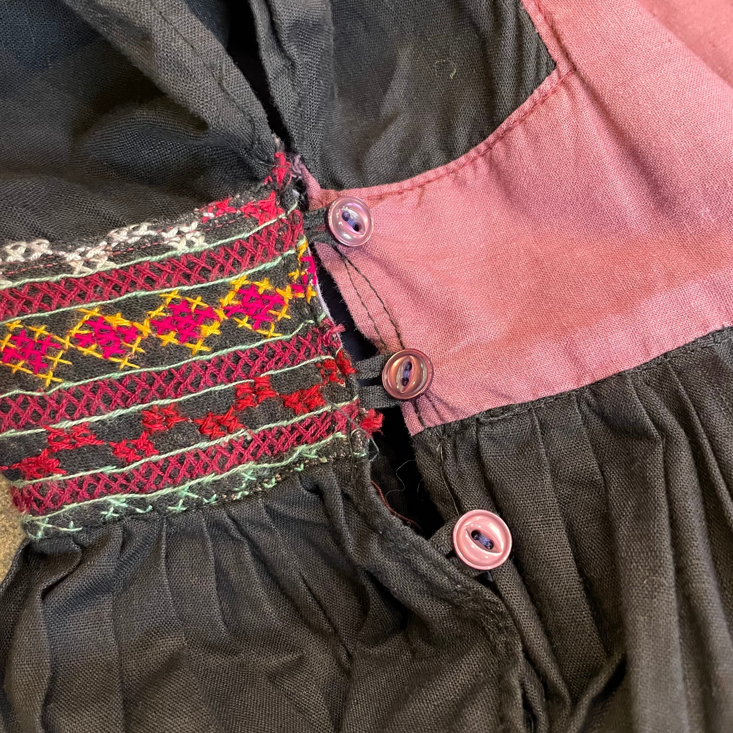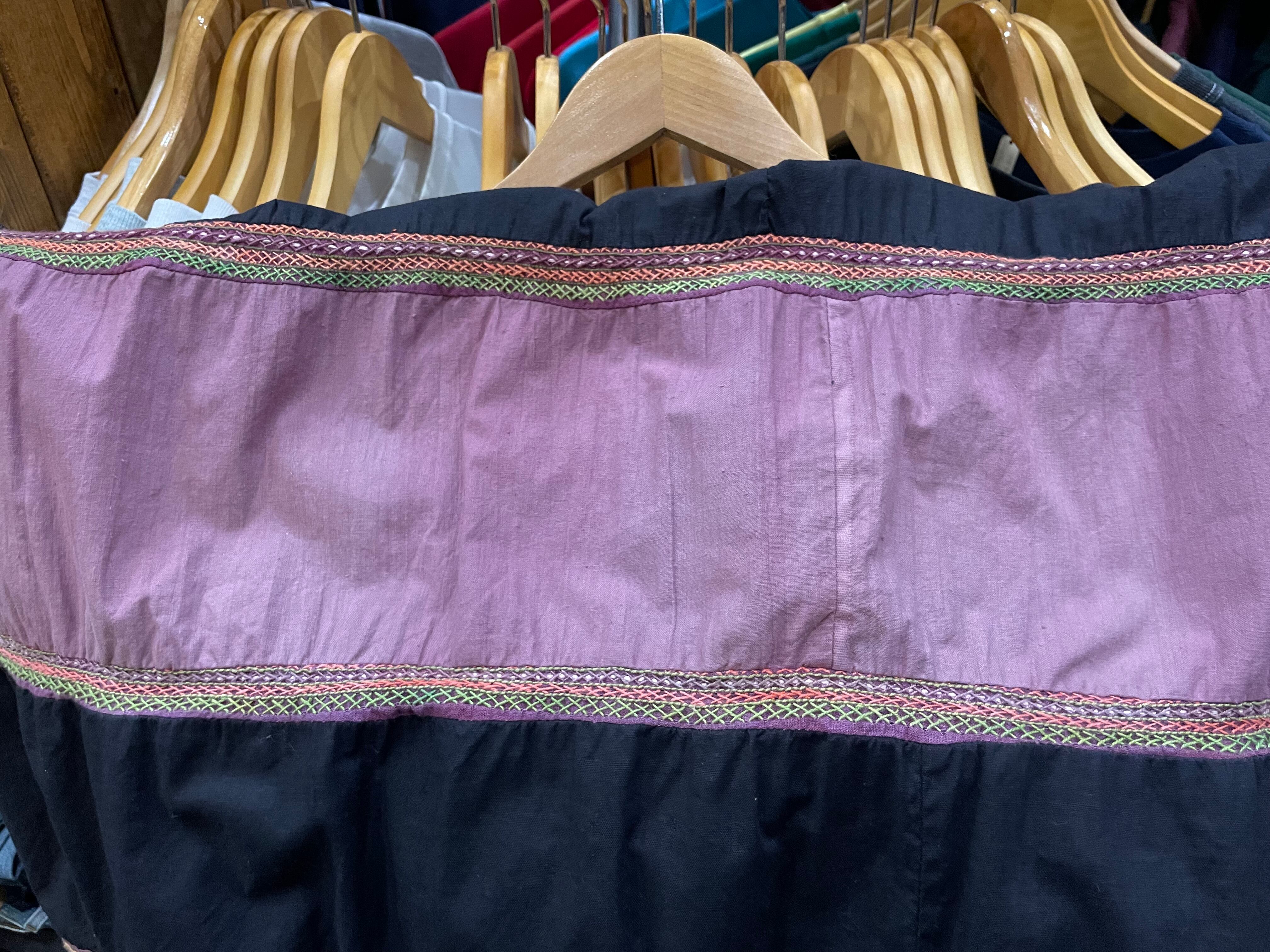 細かい手刺繍とシンプルな無地の切り替えがとても雰囲気のある一着です。コットンの生地感もヴィンテージ感と存在感のある良い感じですの肌触りです。